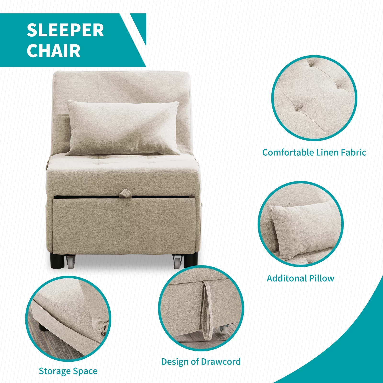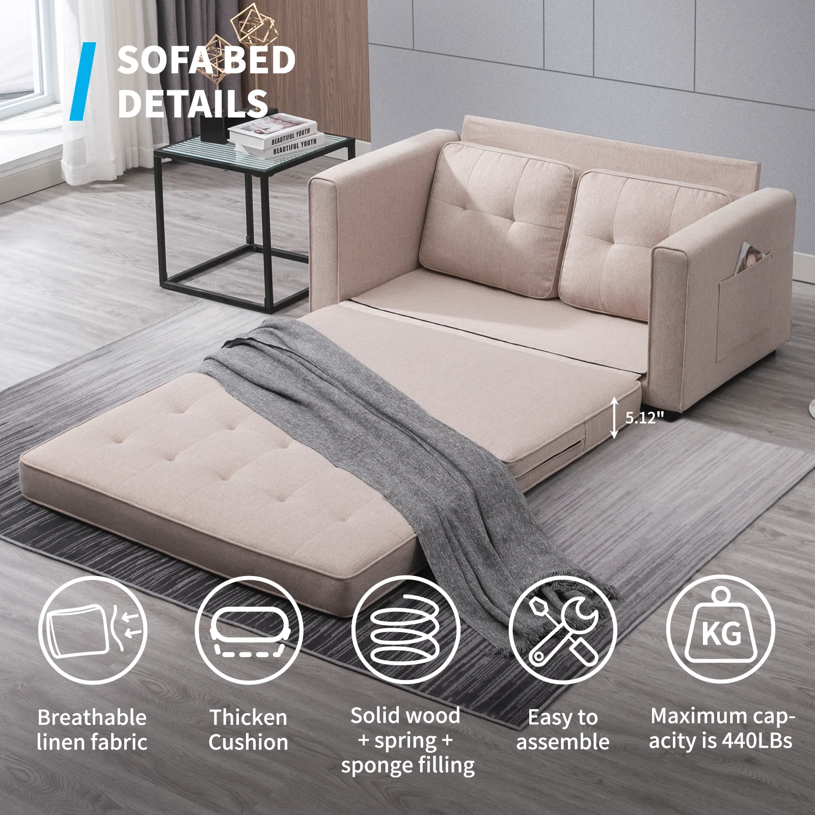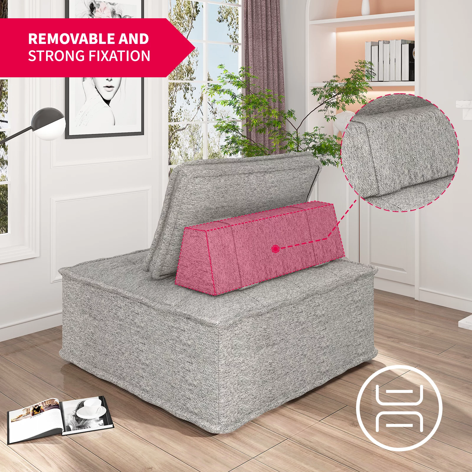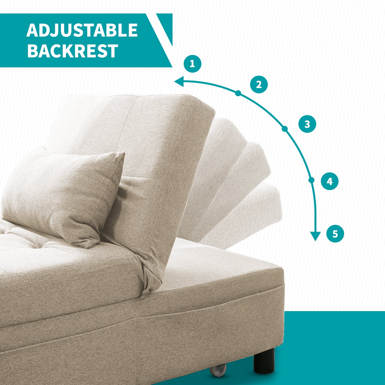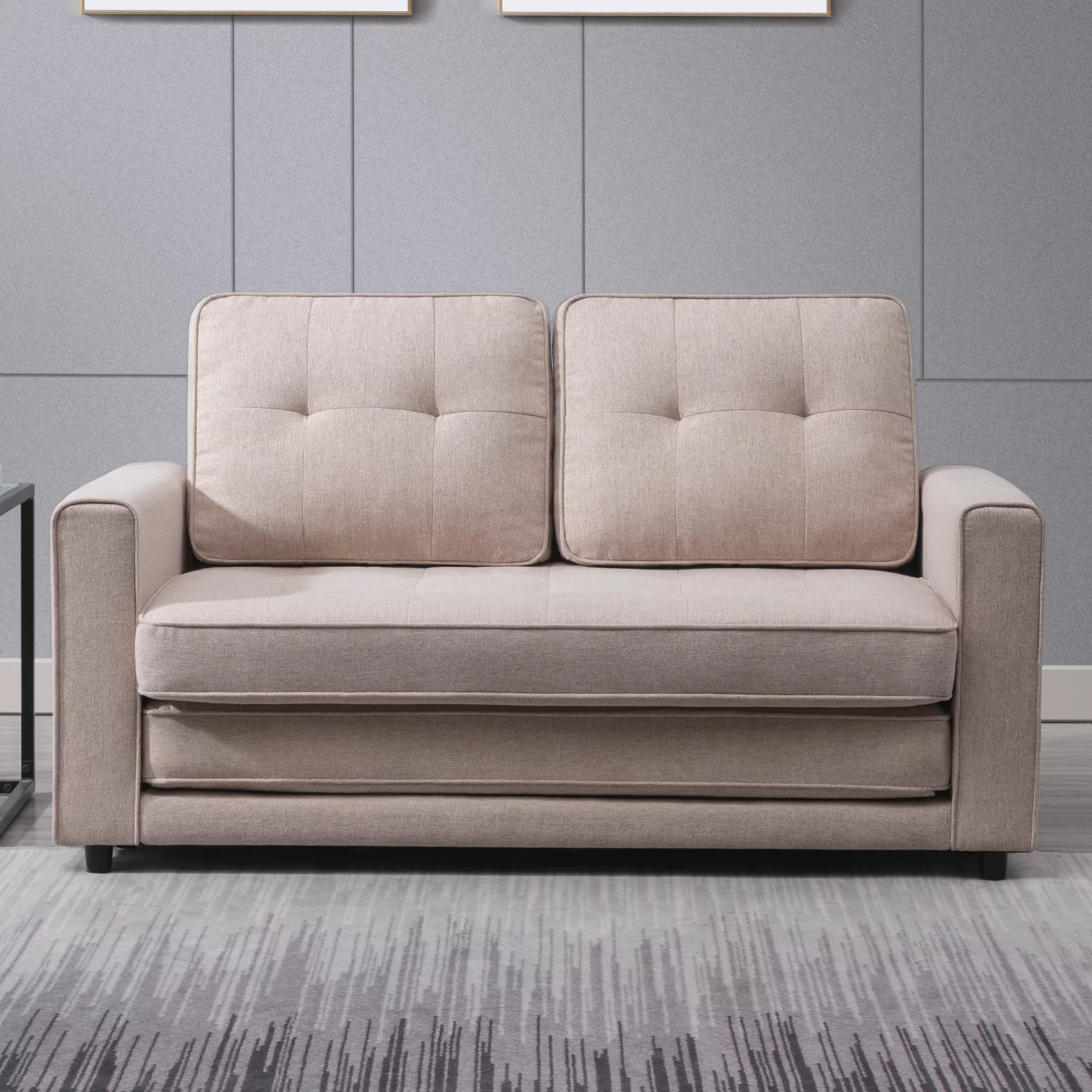 CECER Twin Size Folding Sofa Bed, Linen Floor Couch Bed with 10" Mattress, Fold Out Futon Sofa Bed,Light Grey