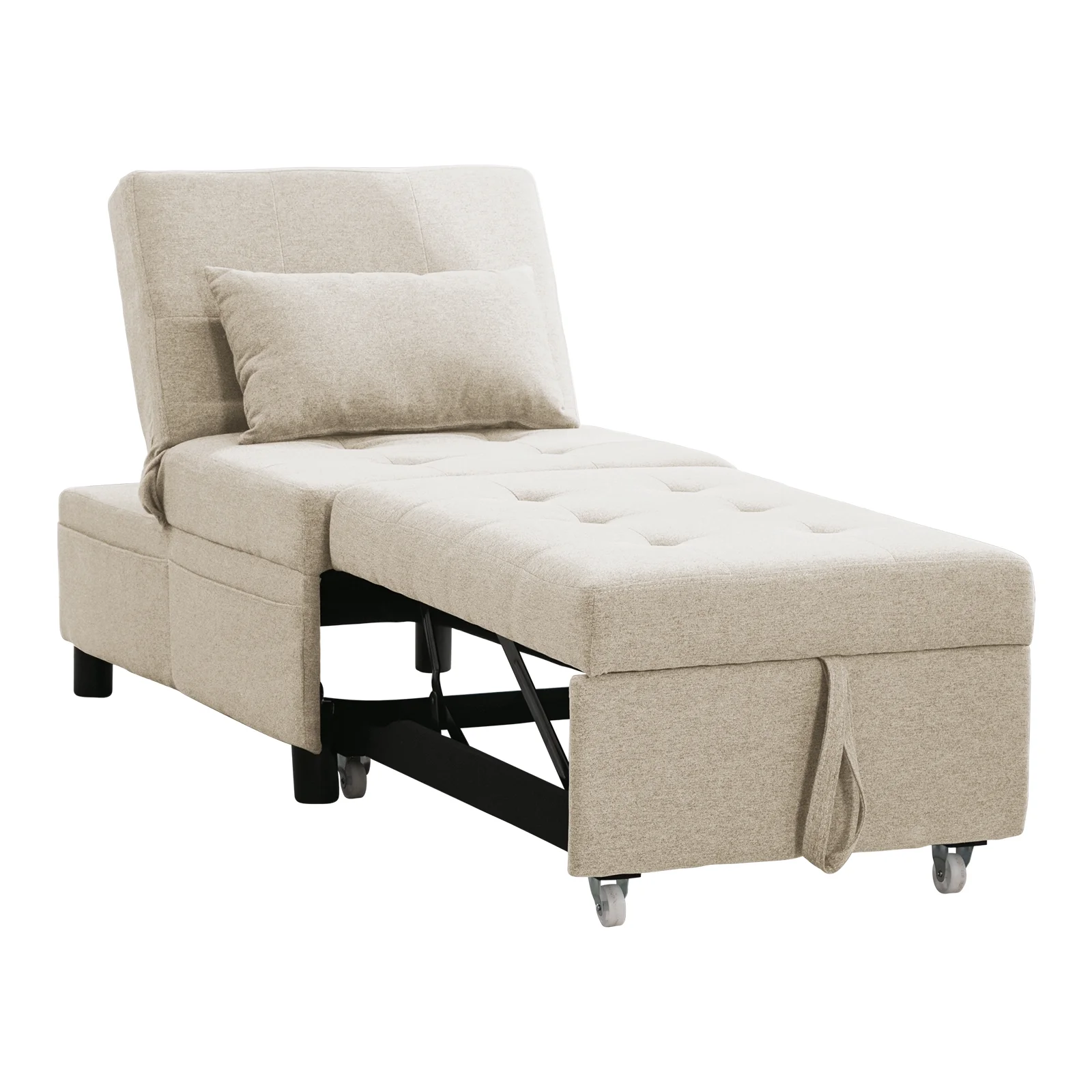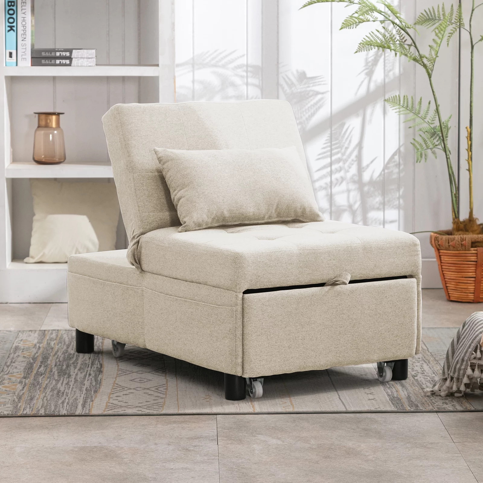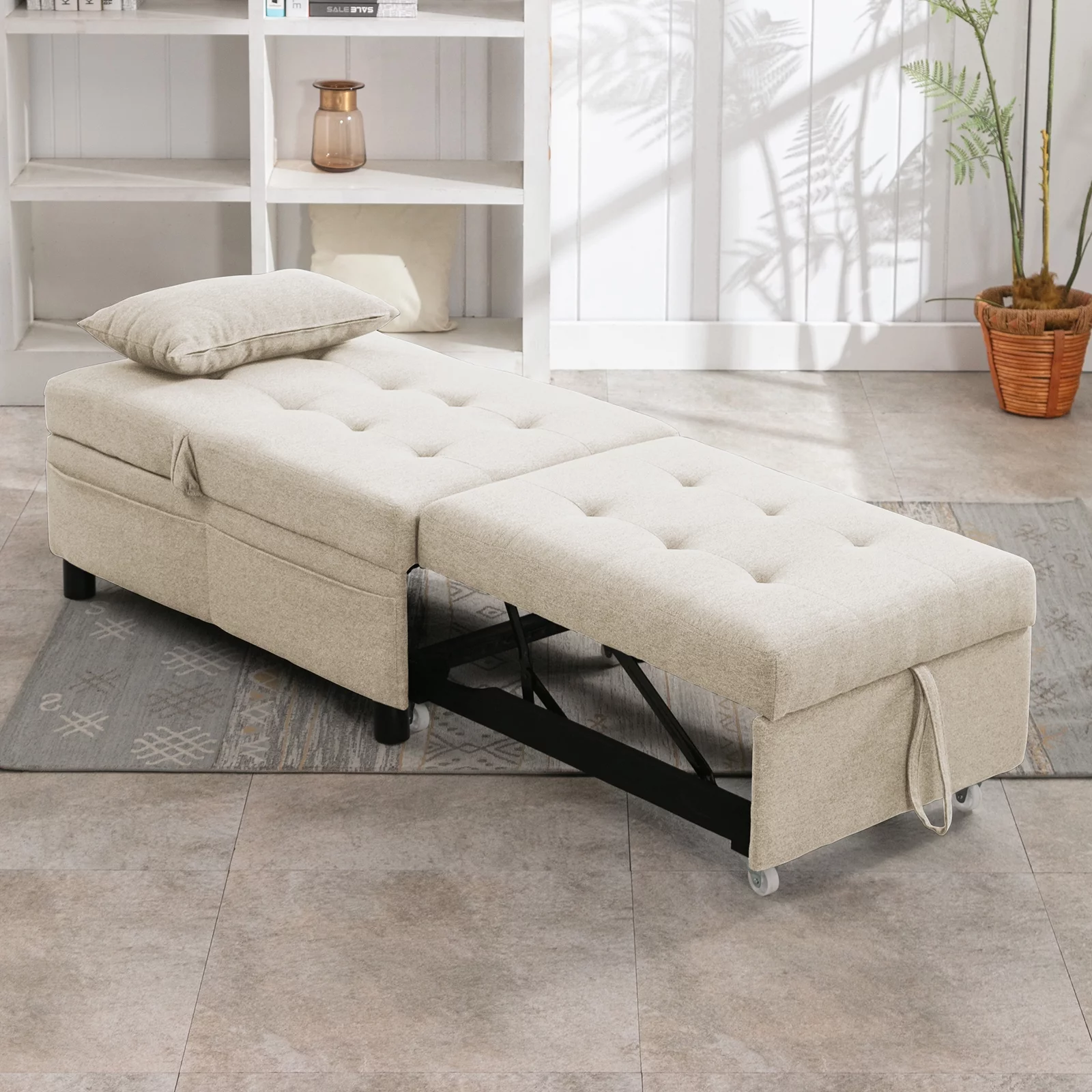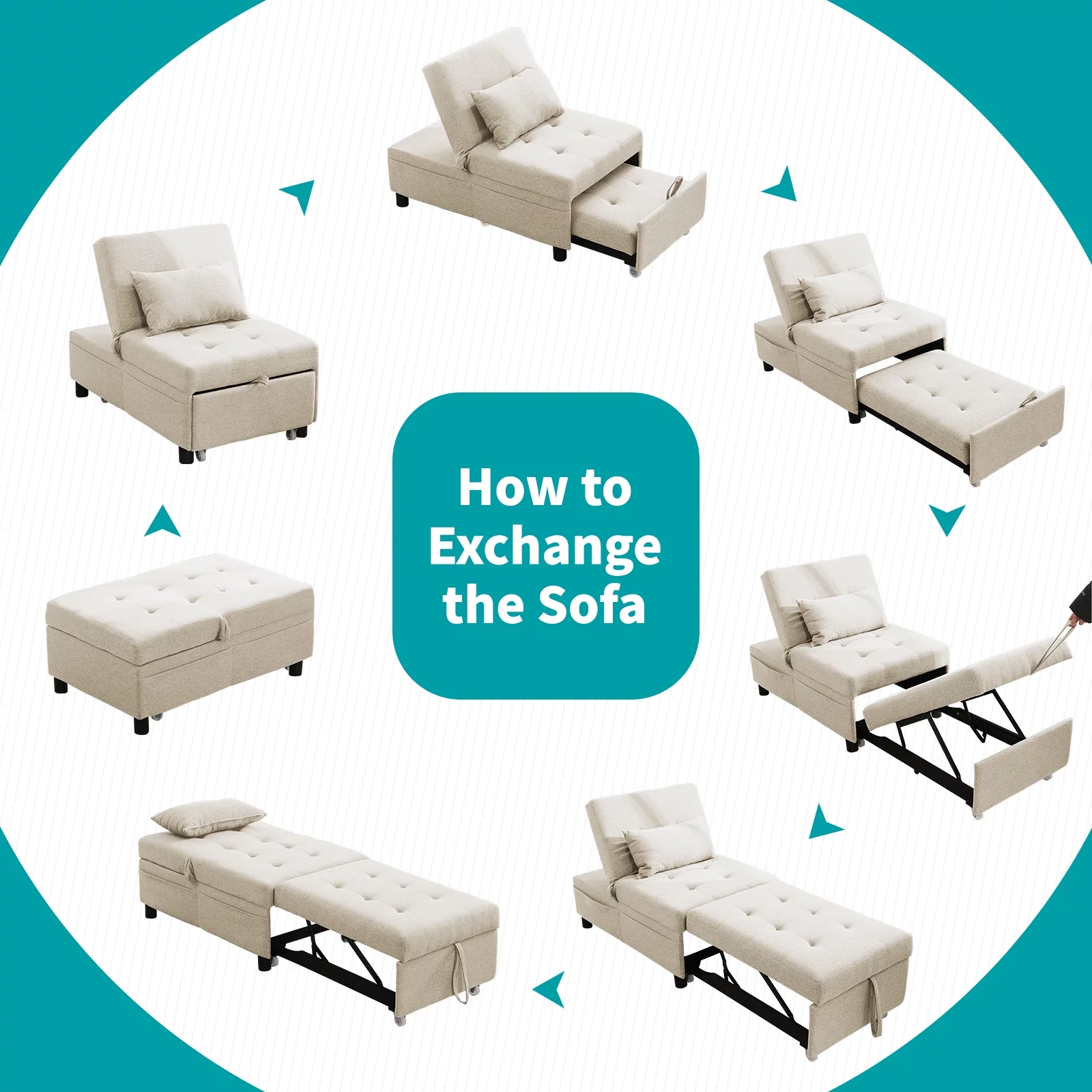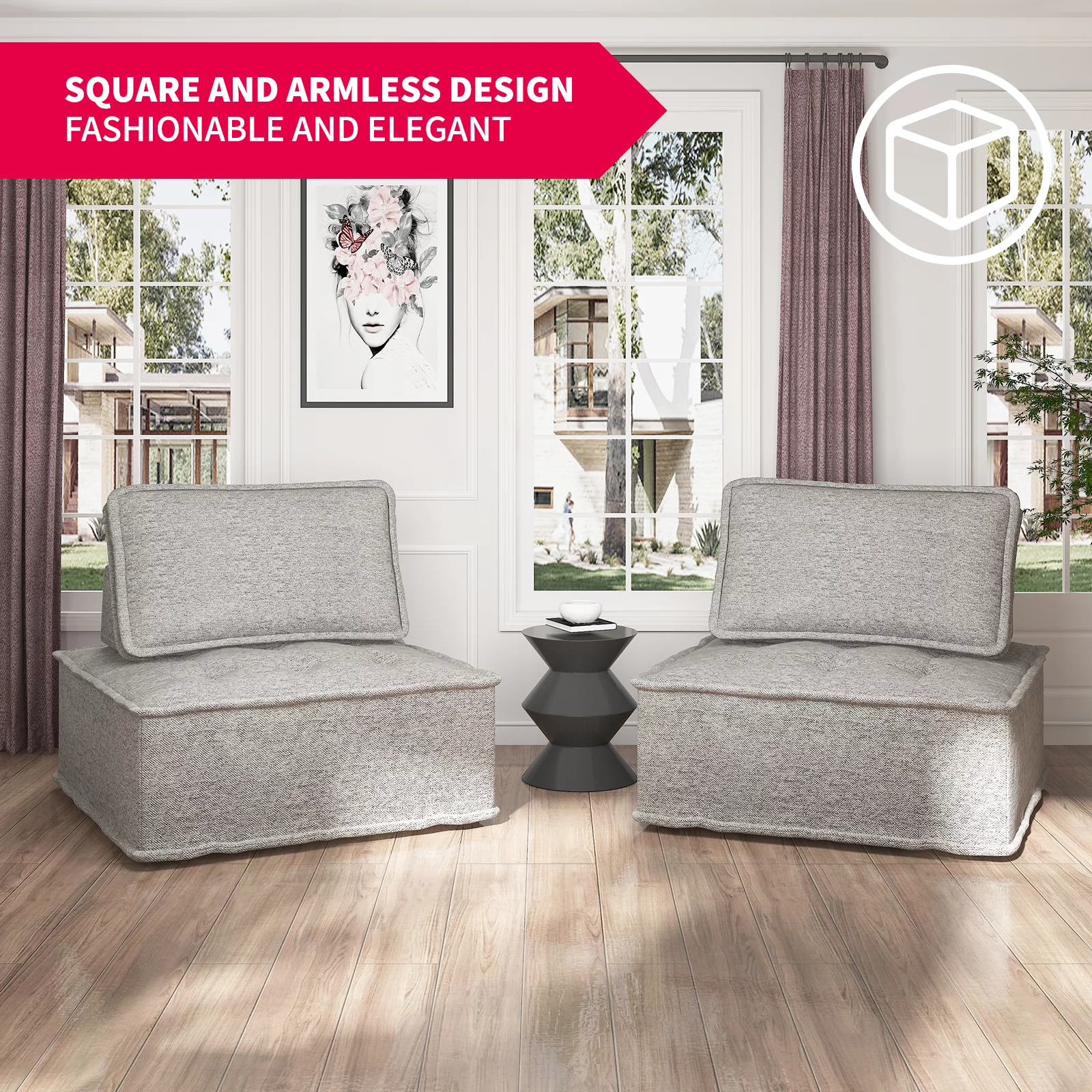 CECER Twin Size Folding Sofa Bed, Linen Floor Couch Bed with 10" Mattress, Fold Out Futon Sofa Bed,Light Grey