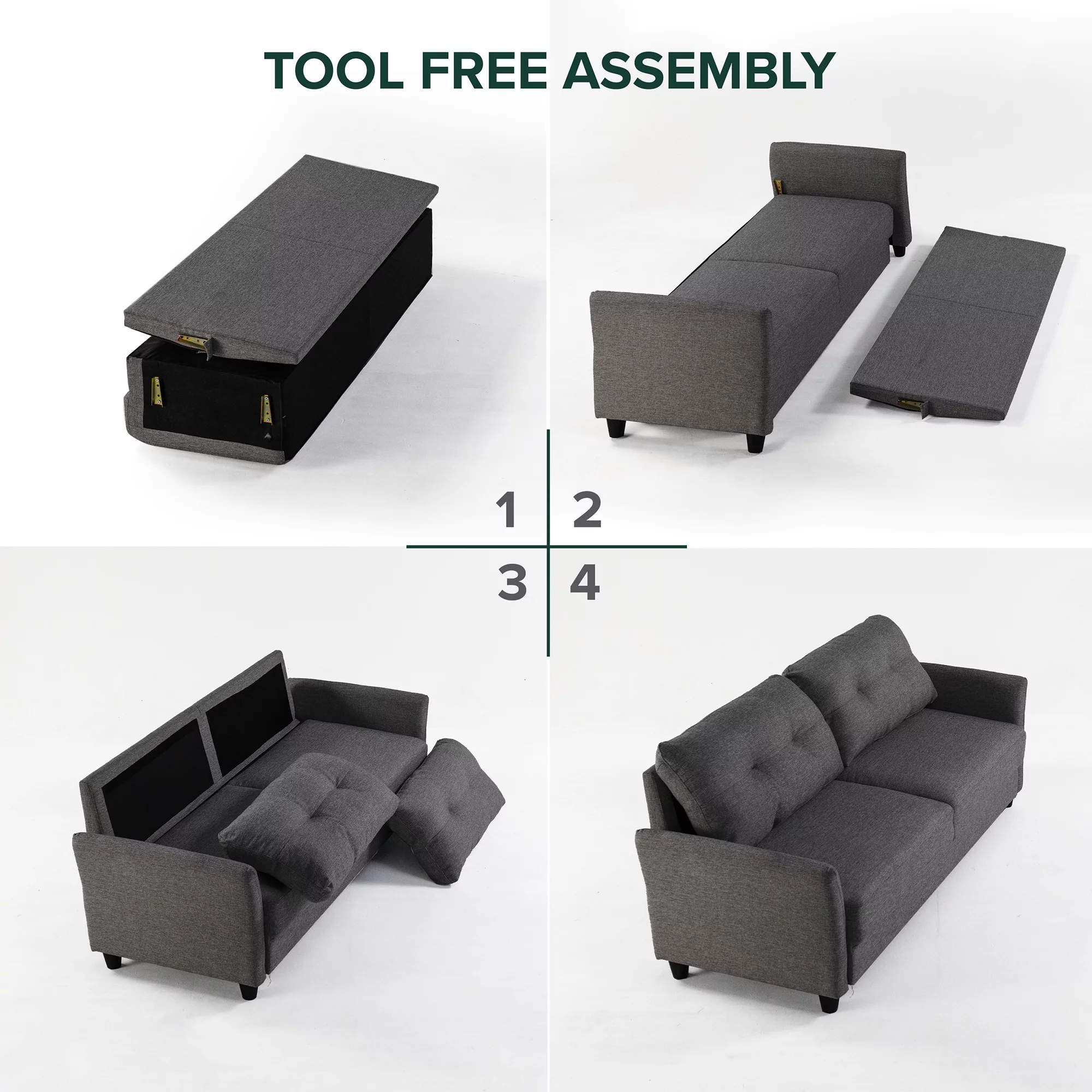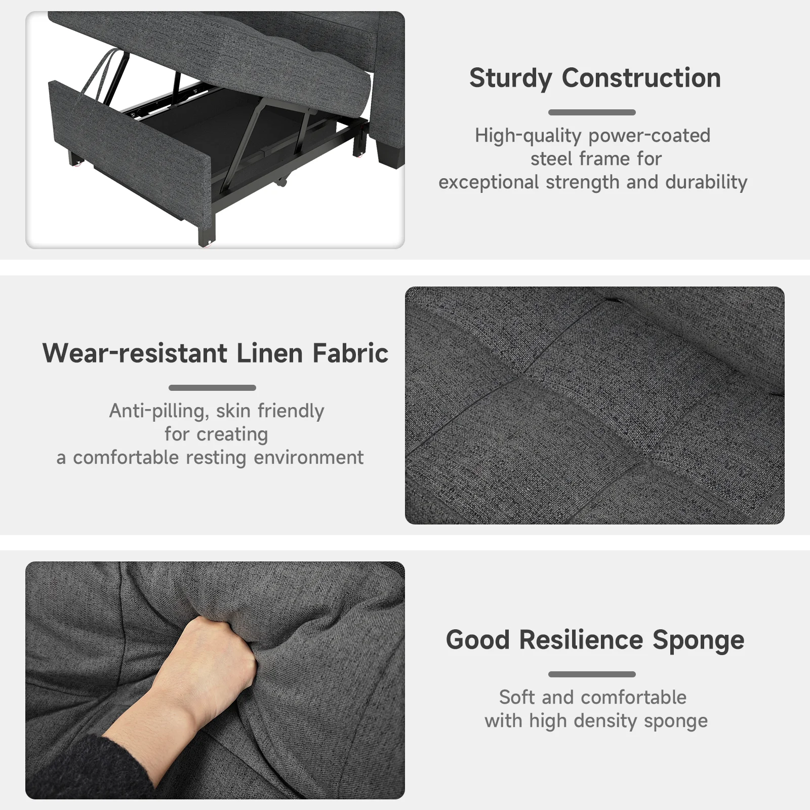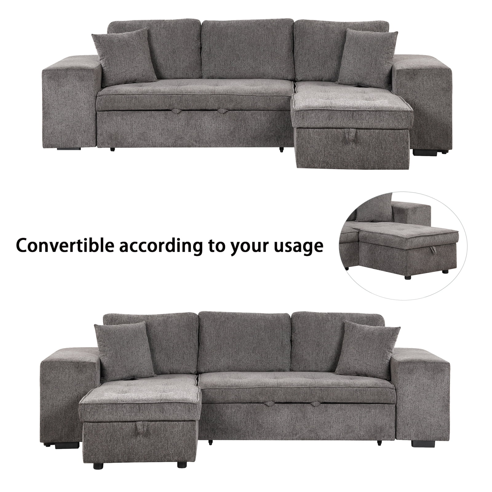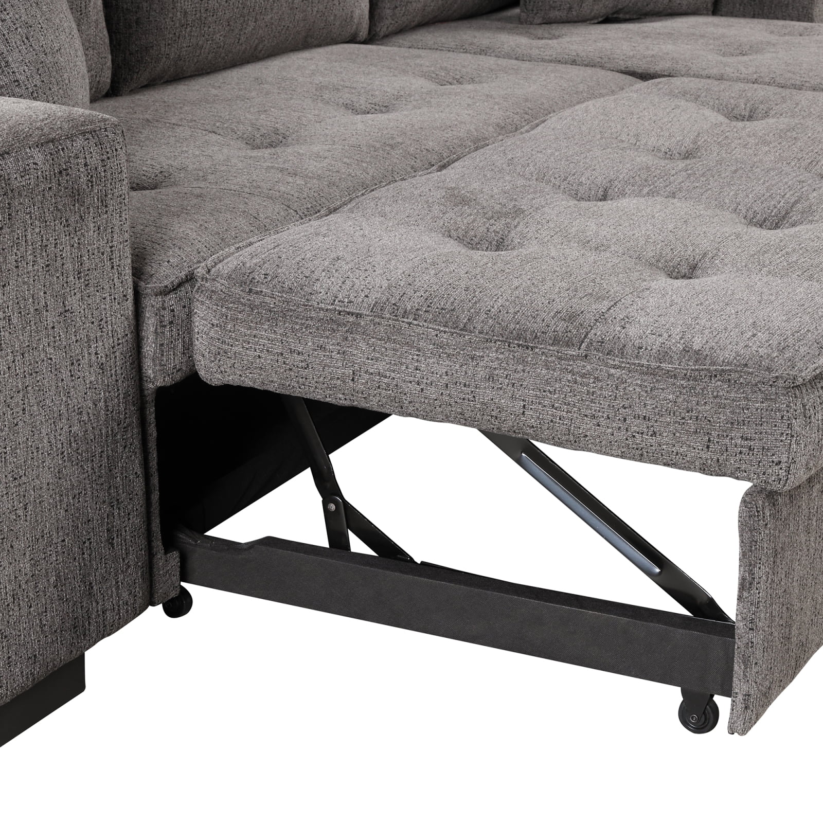 SunFurnn 104" Pull Out Sofa Bed, Modern Tufted Convertible Sleeper Sofa, L Shaped Sofa Couch with Storage Chaise, Dark Gray