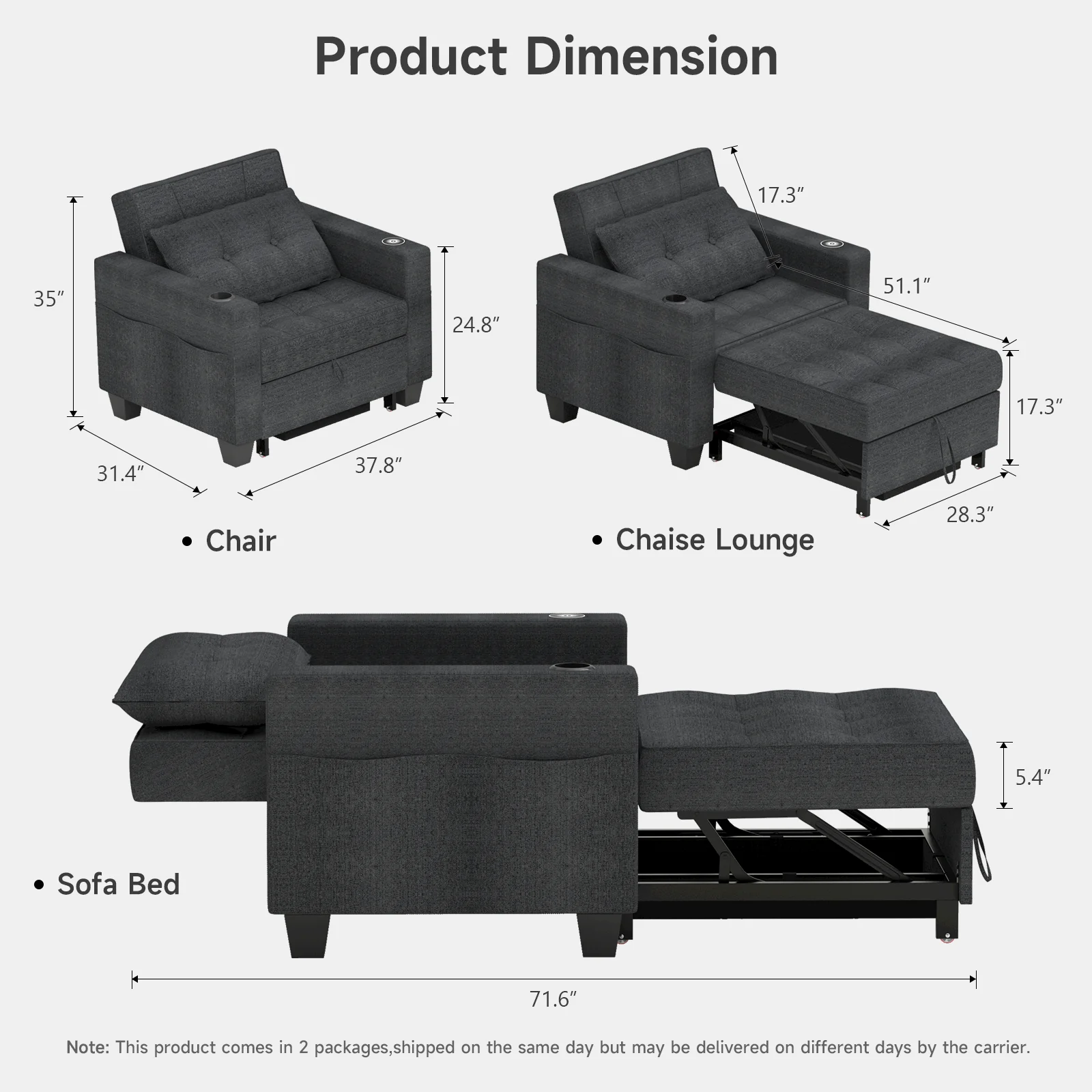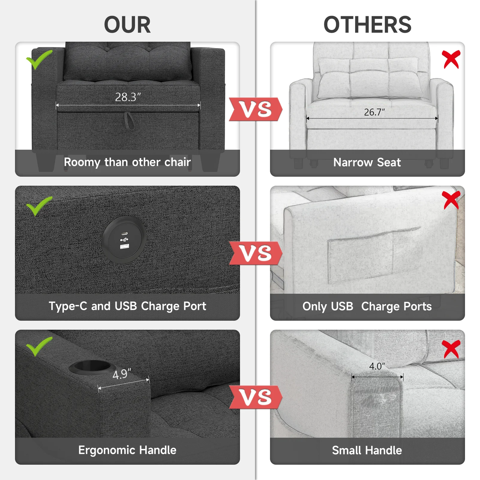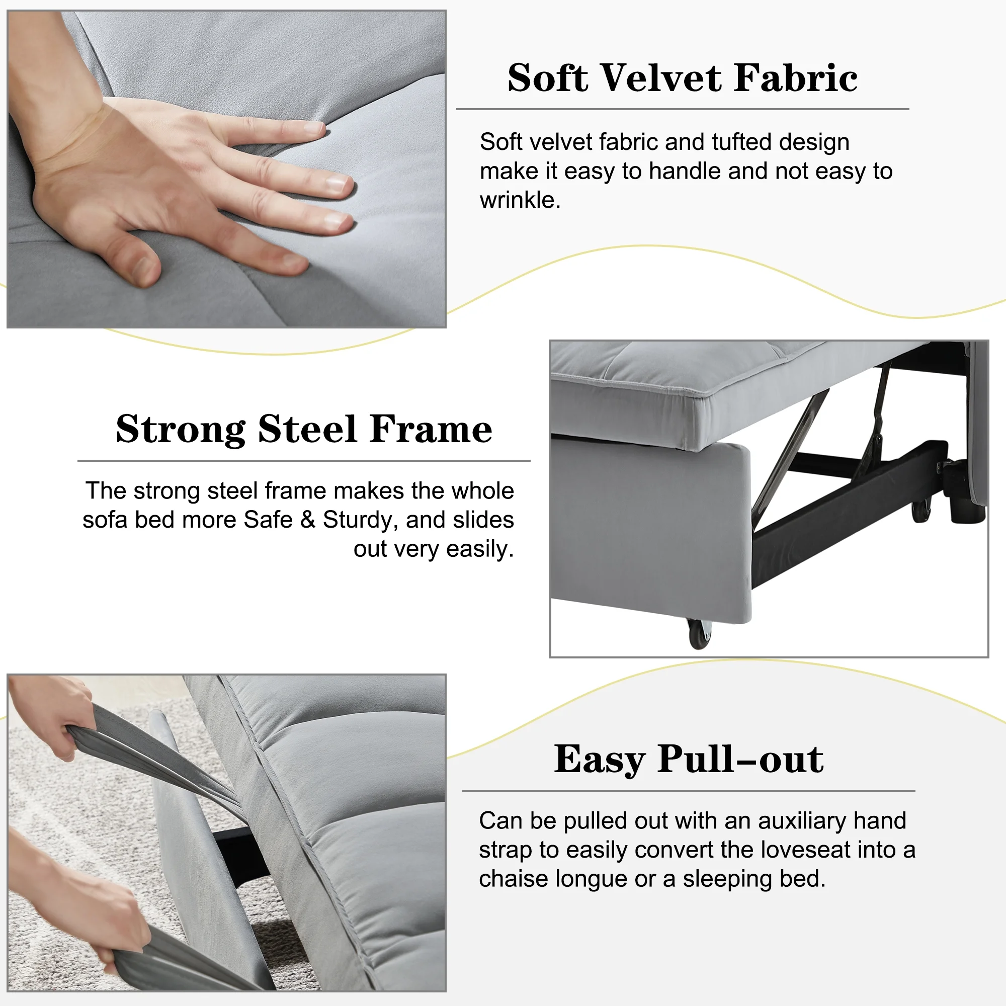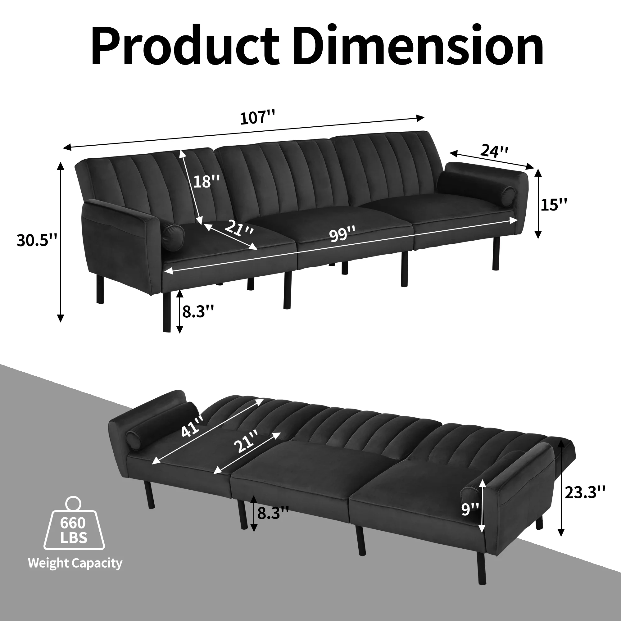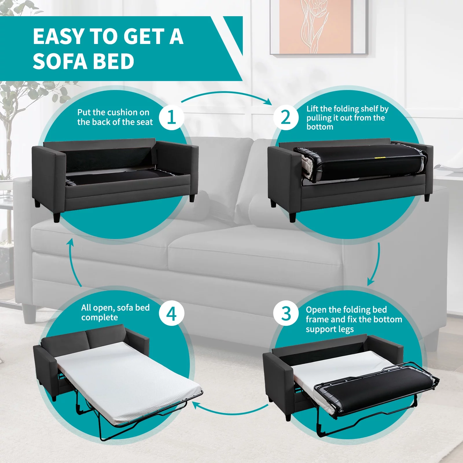 SunFurnn 104" Pull Out Sofa Bed, Modern Tufted Convertible Sleeper Sofa, L Shaped Sofa Couch with Storage Chaise, Dark Gray