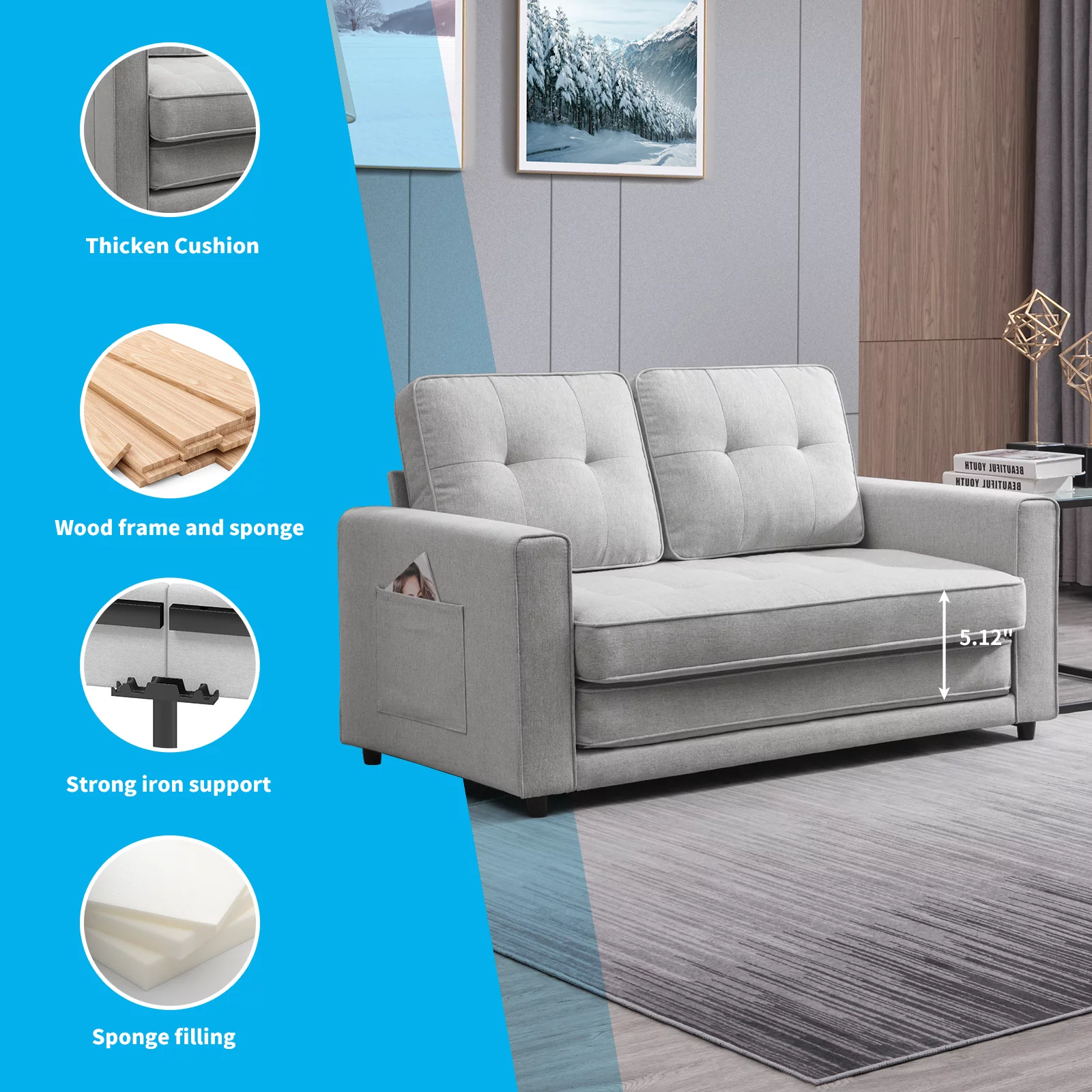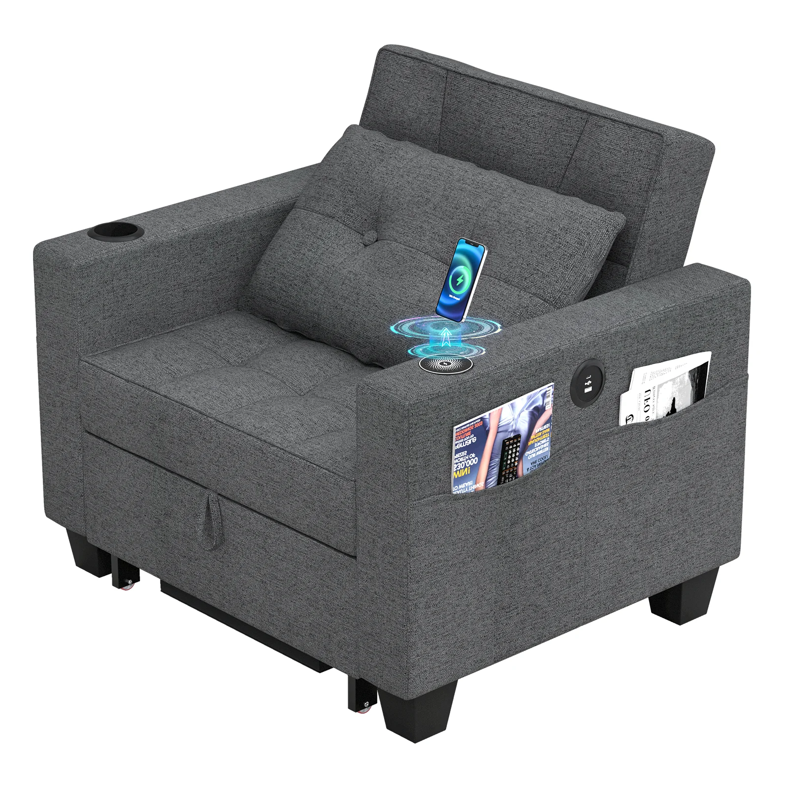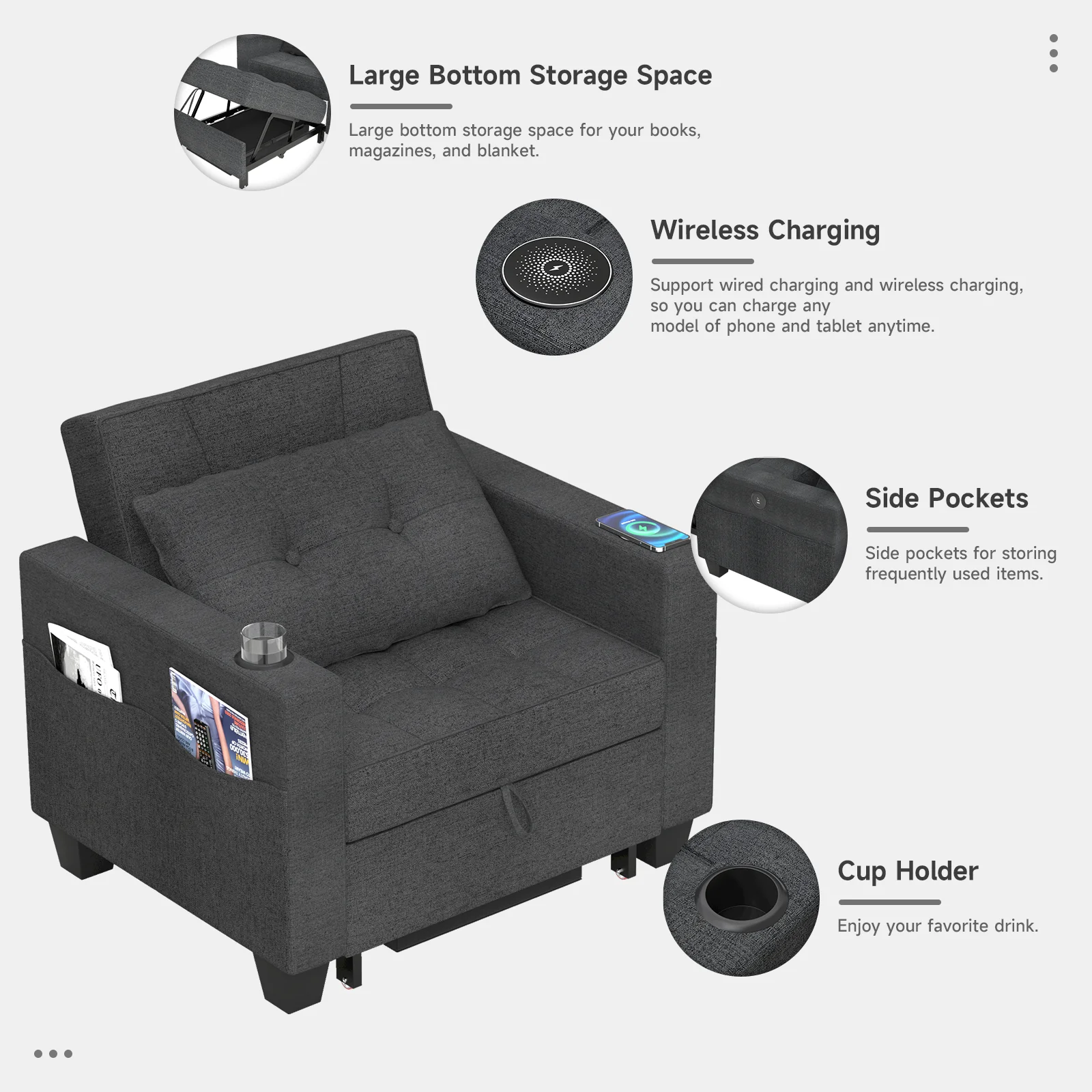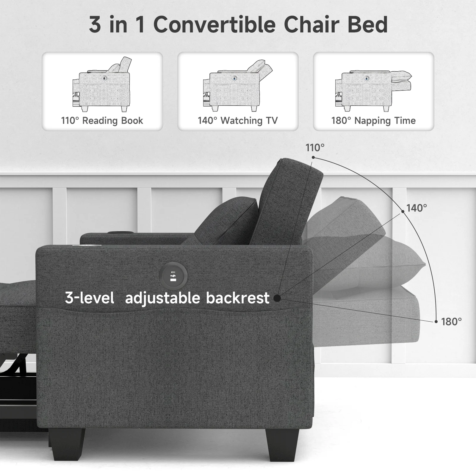 SunFurnn 104" Pull Out Sofa Bed, Modern Tufted Convertible Sleeper Sofa, L Shaped Sofa Couch with Storage Chaise, Dark Gray