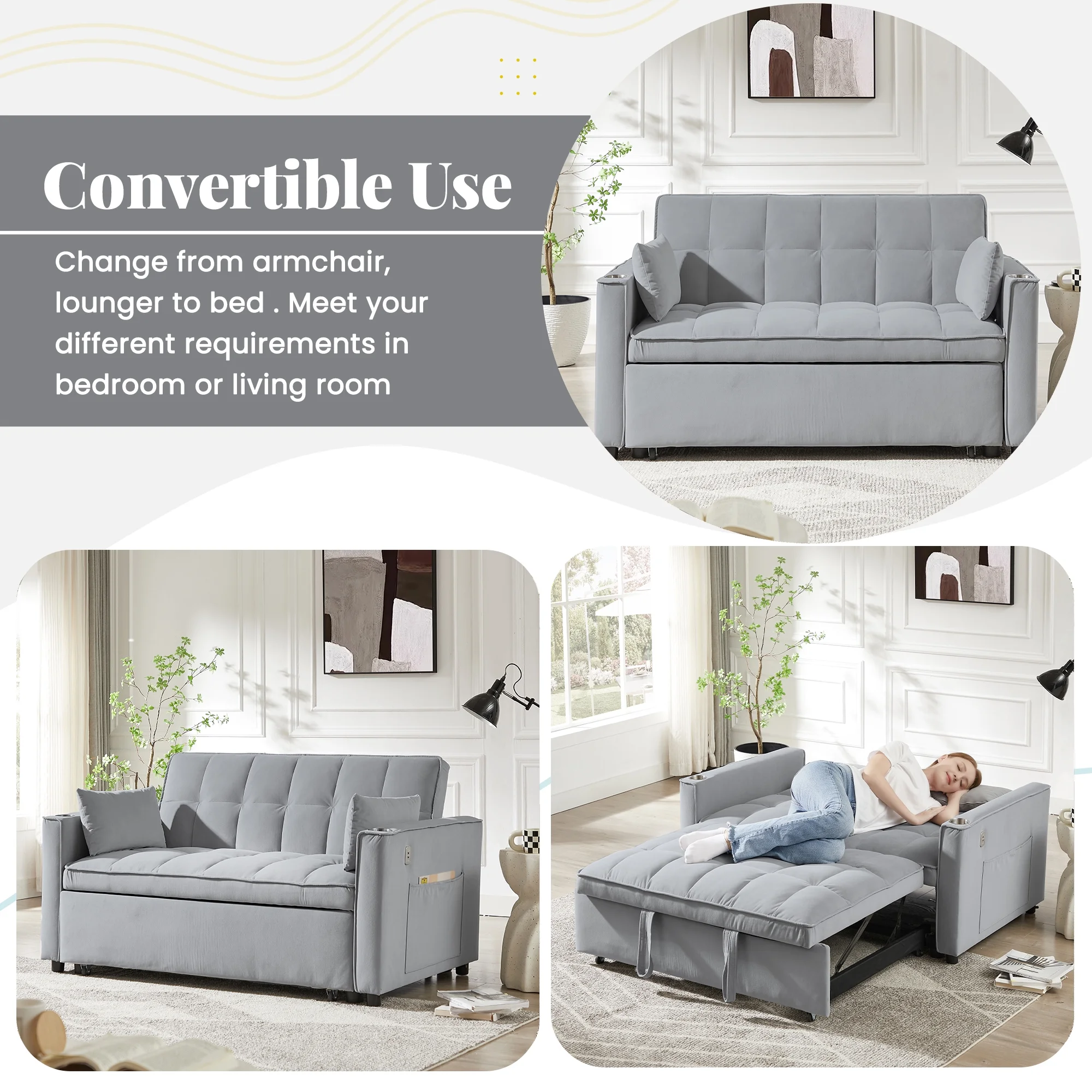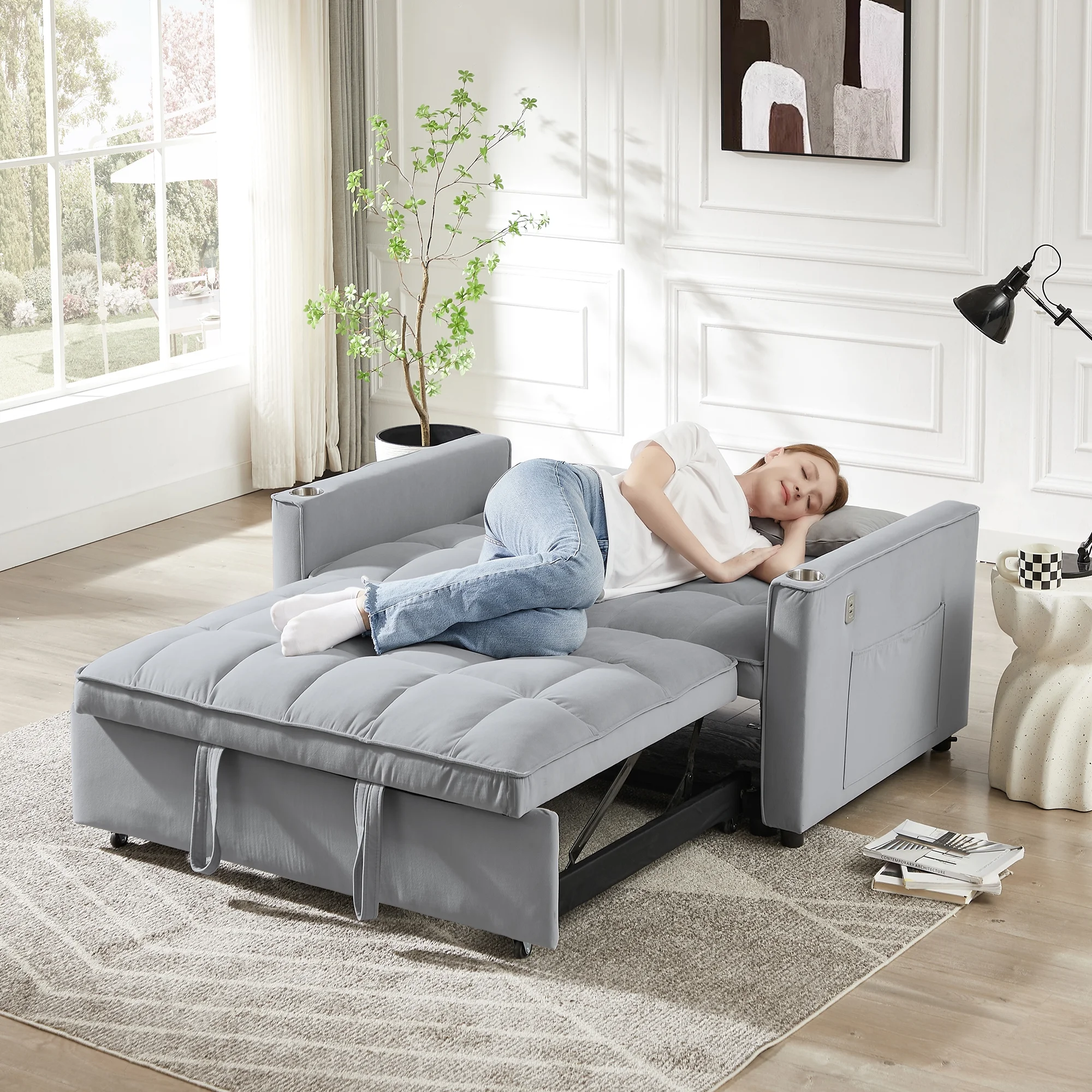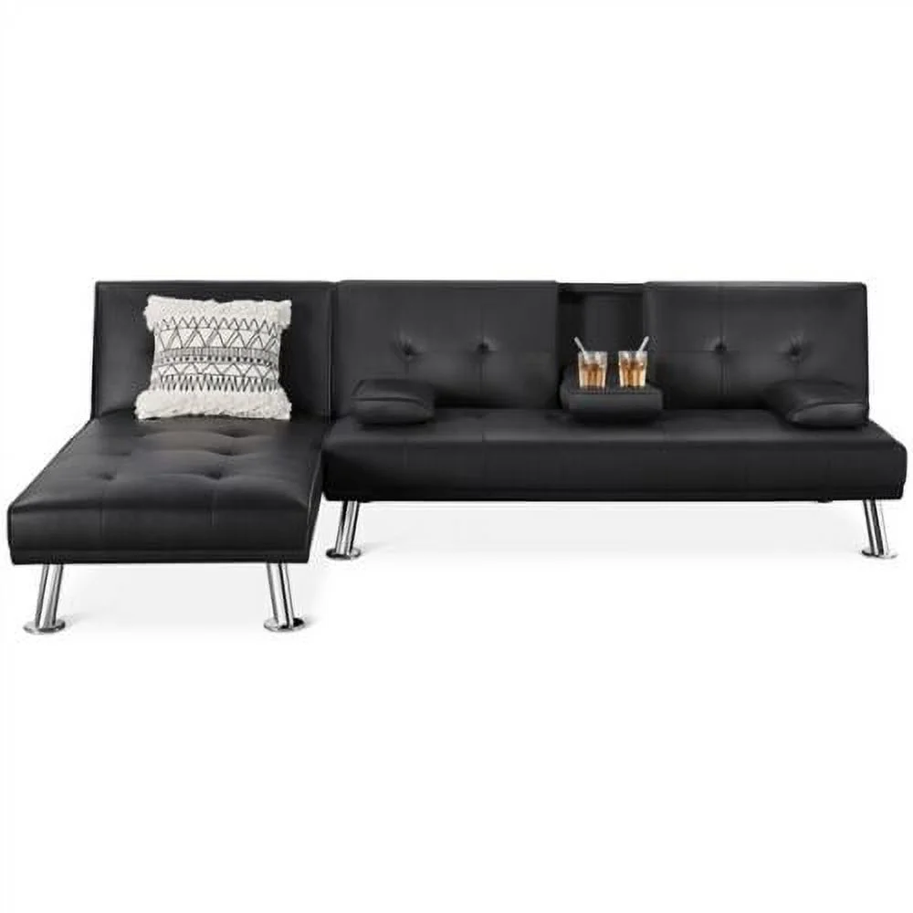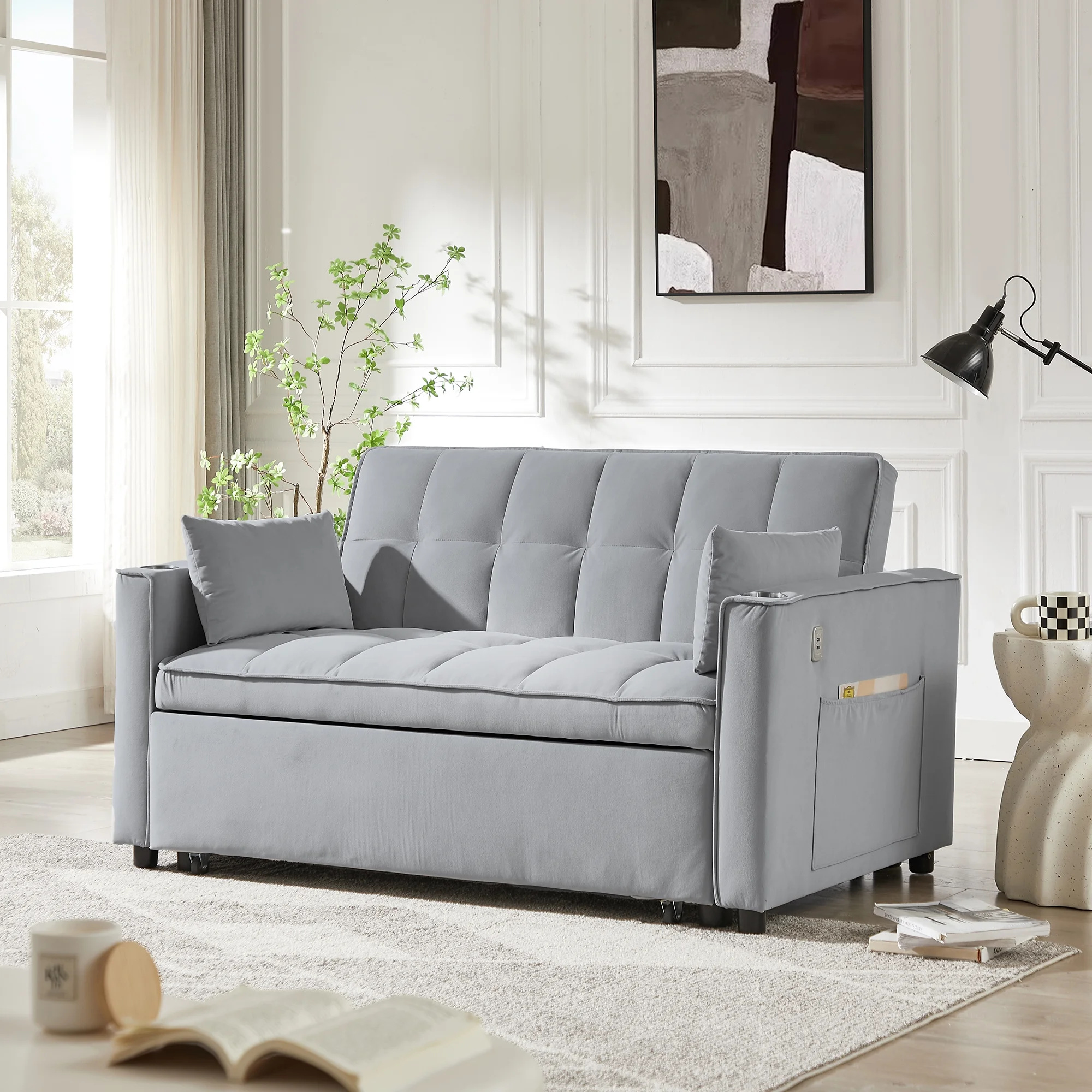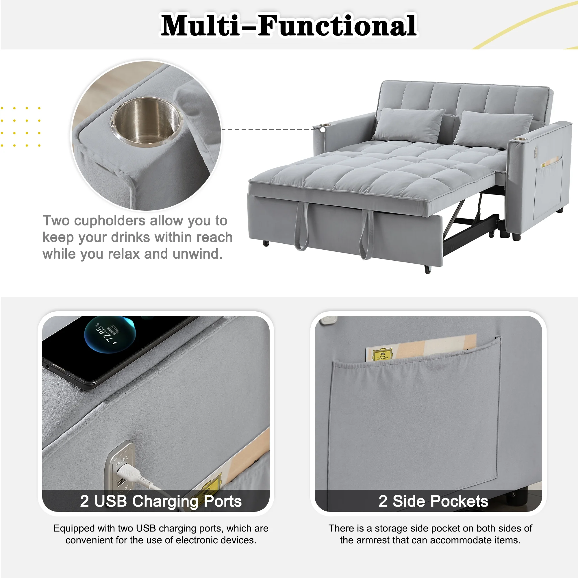 SunFurnn 104" Pull Out Sofa Bed, Modern Tufted Convertible Sleeper Sofa, L Shaped Sofa Couch with Storage Chaise, Dark Gray