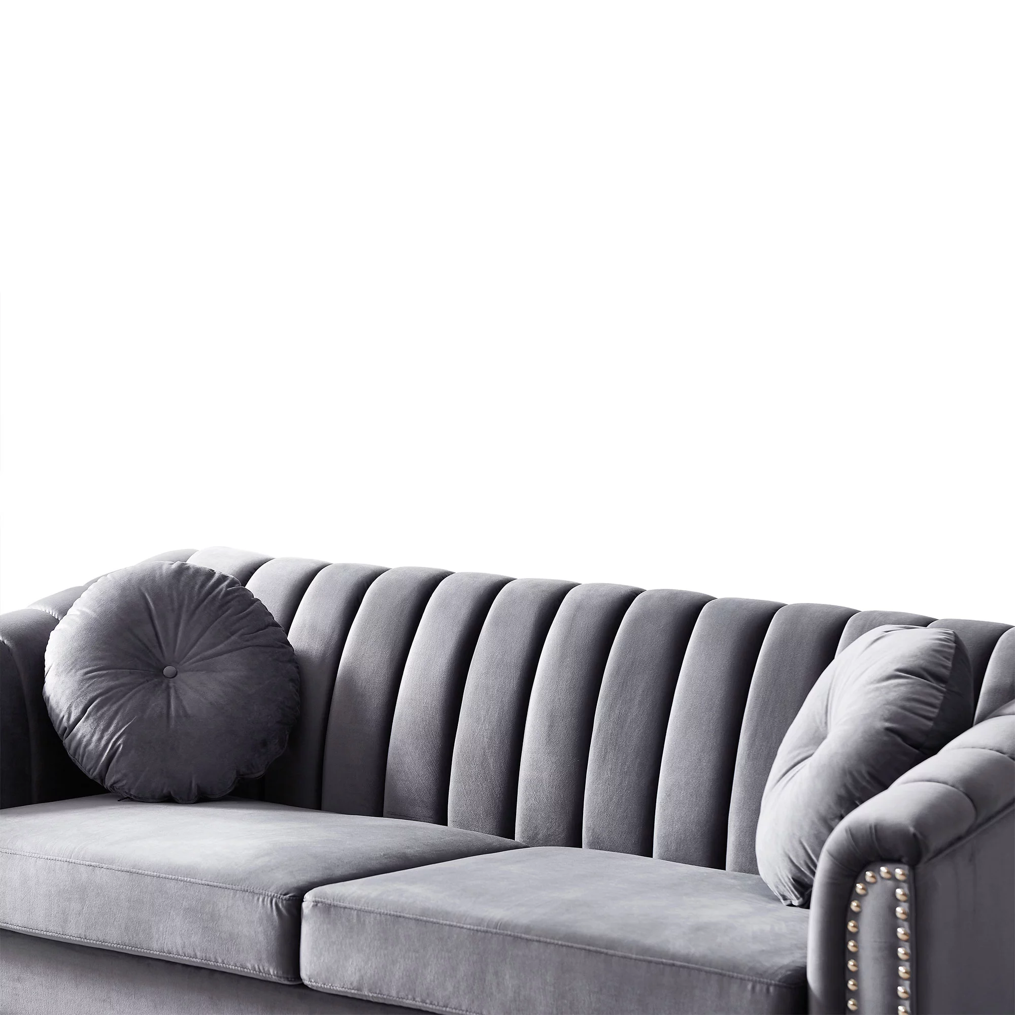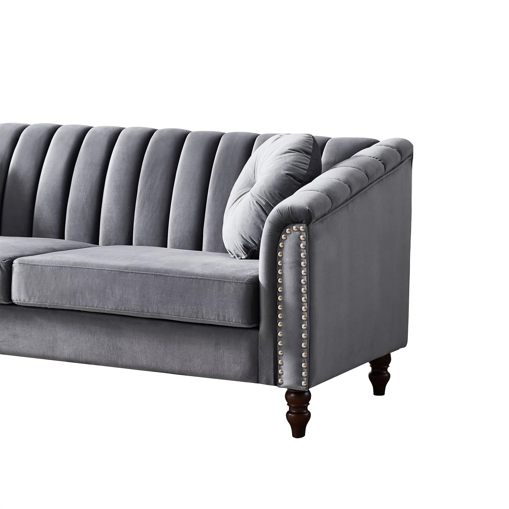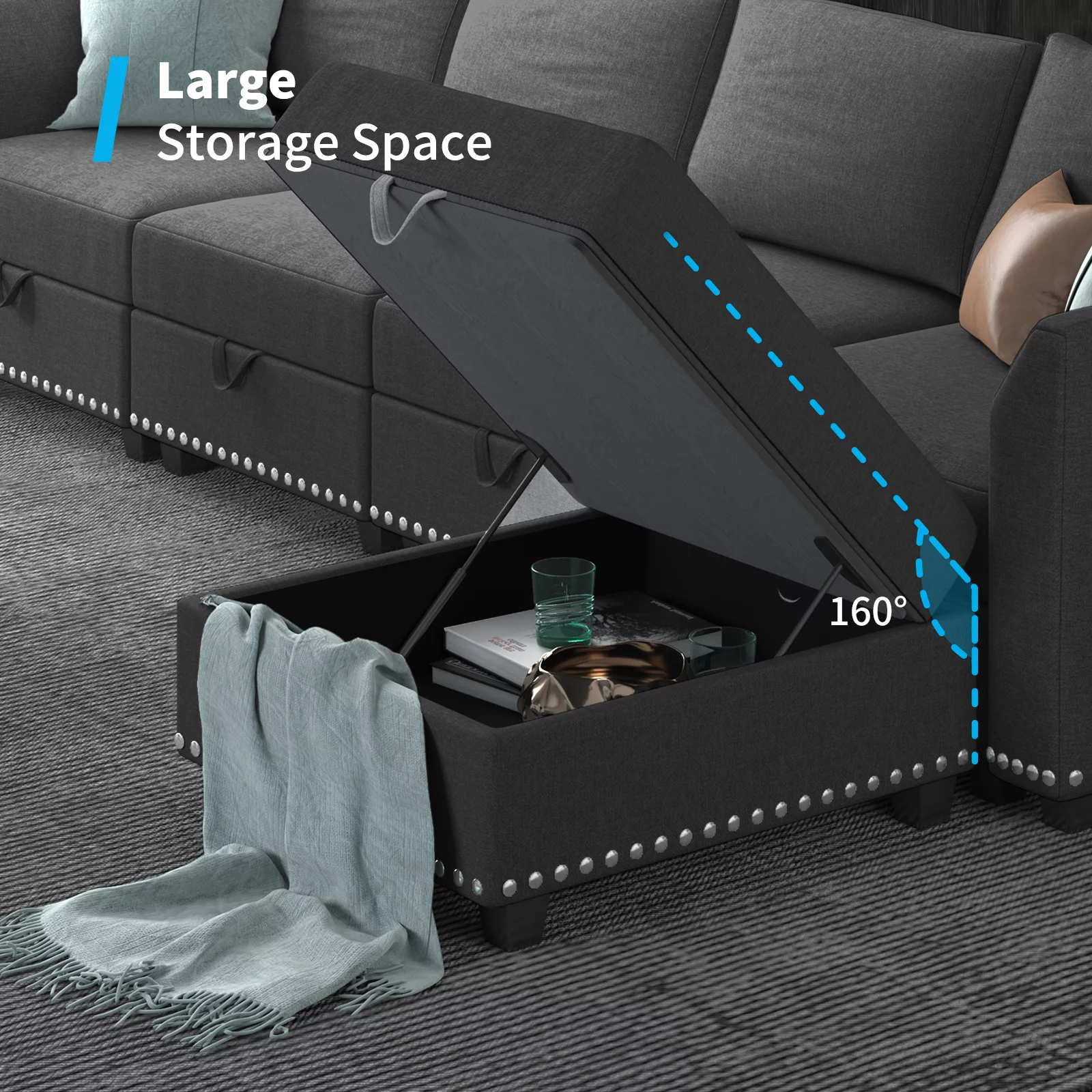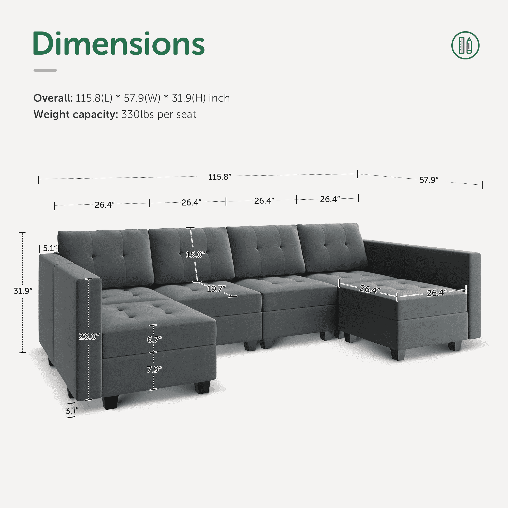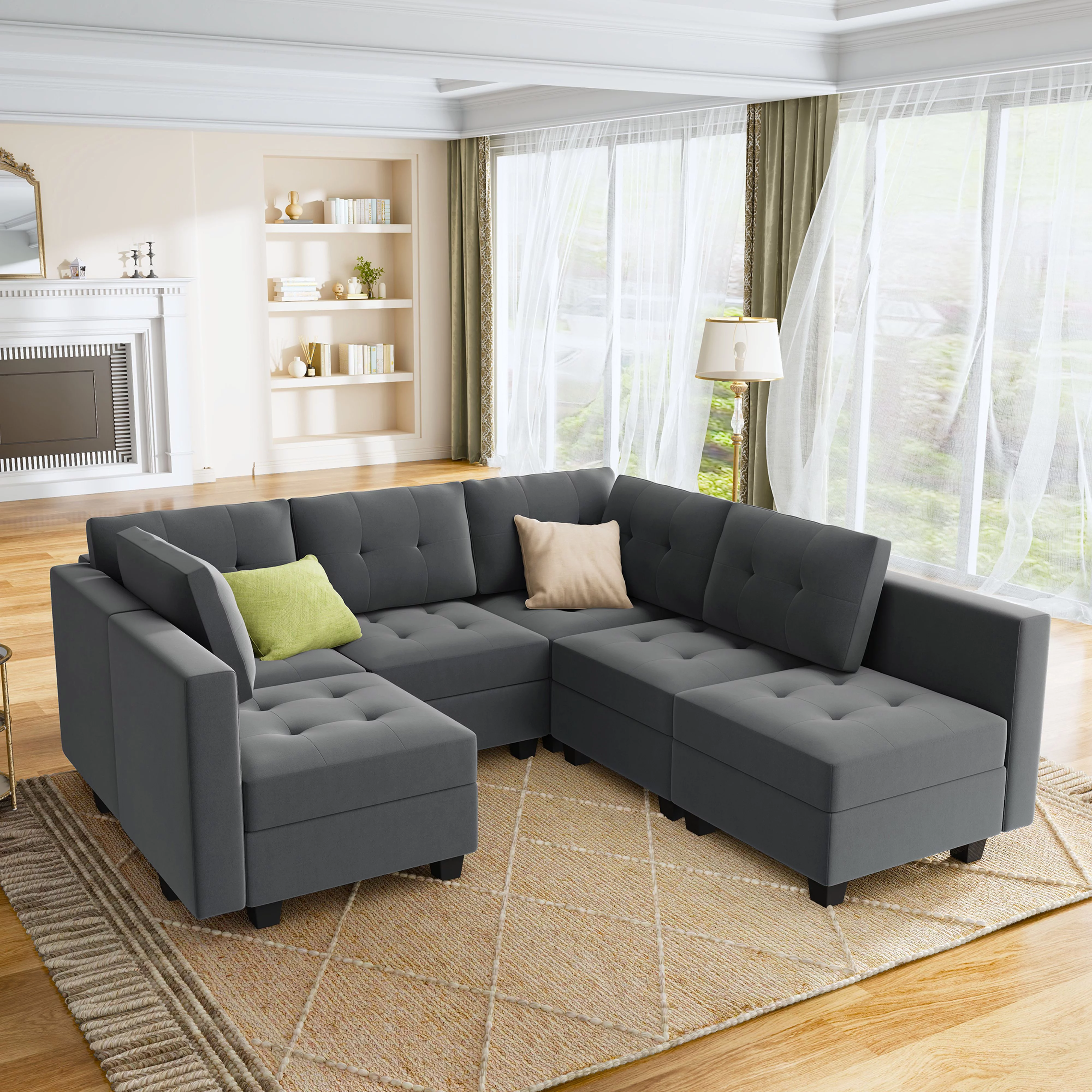 HONBAY Velvet Modular Sectional Sofa Couch Sets with Storage Ottoman with Tufted Design for Home Room, Bluish Grey