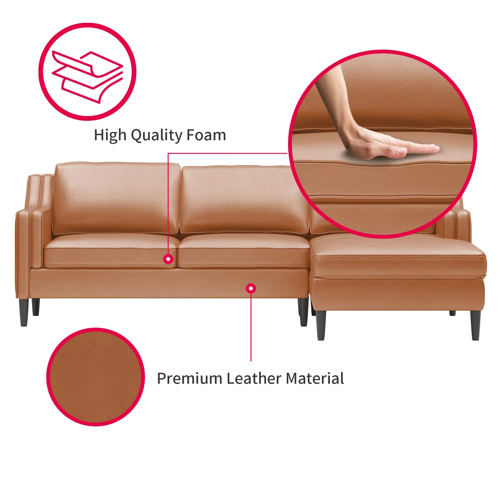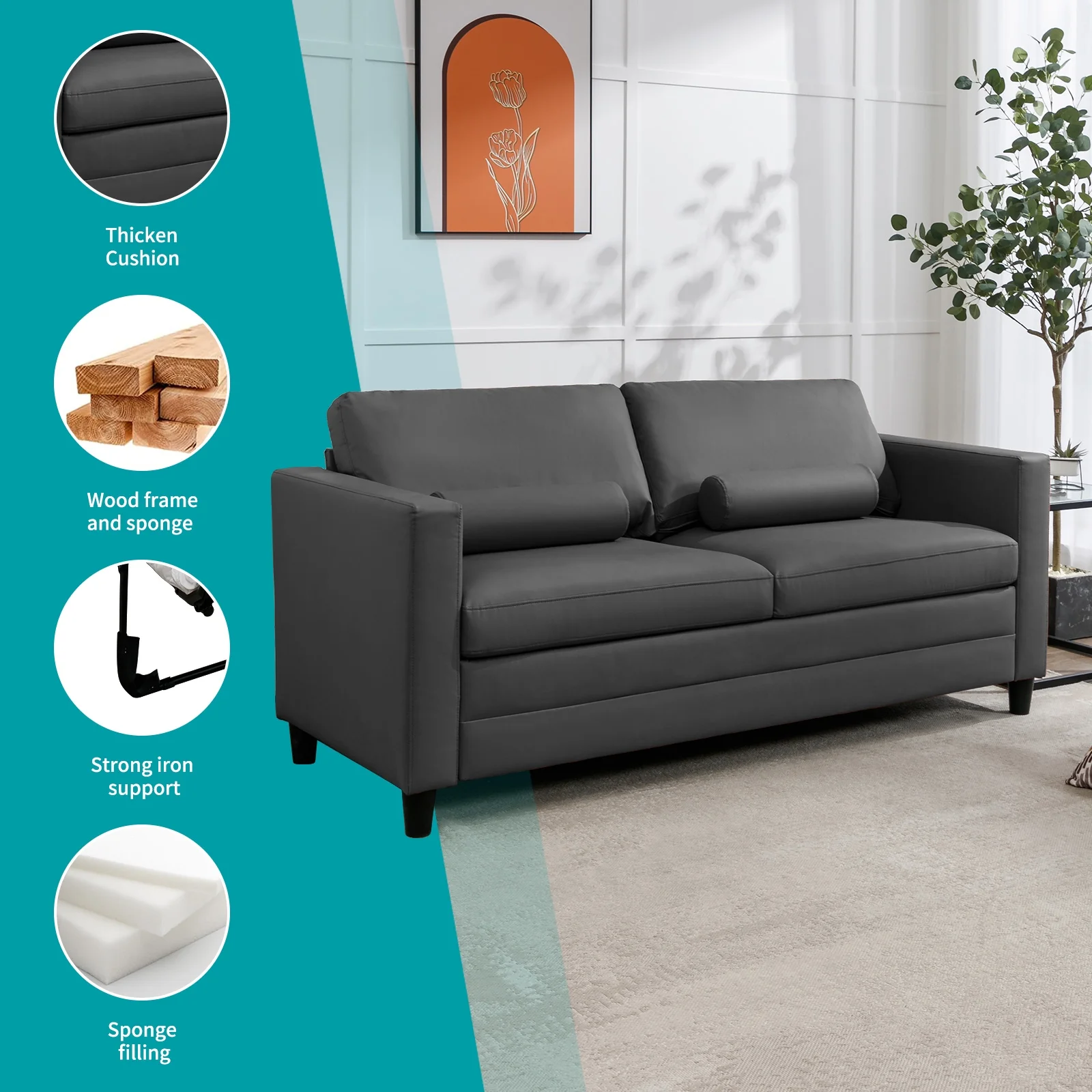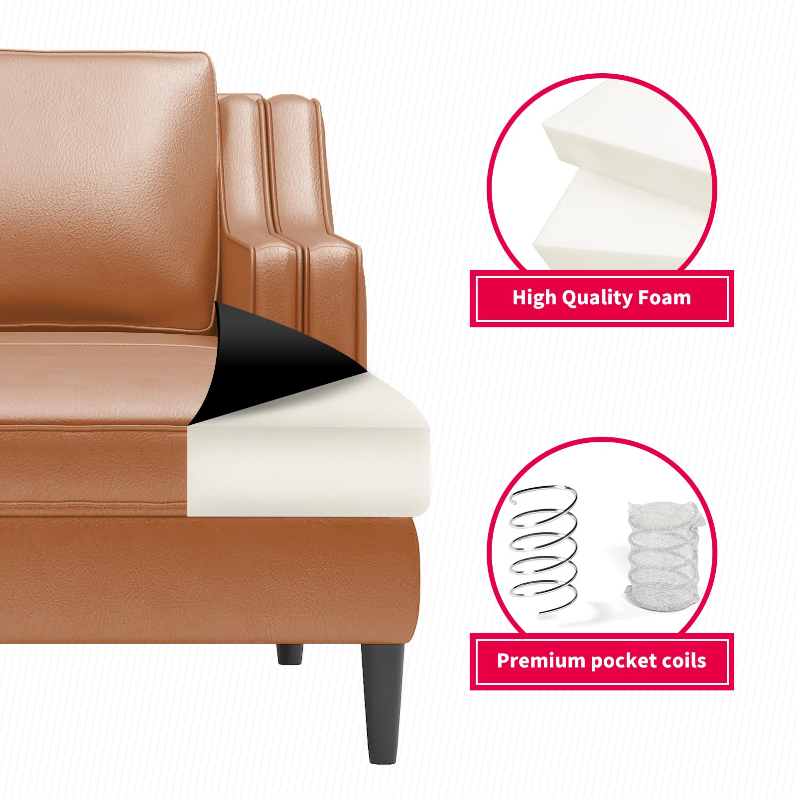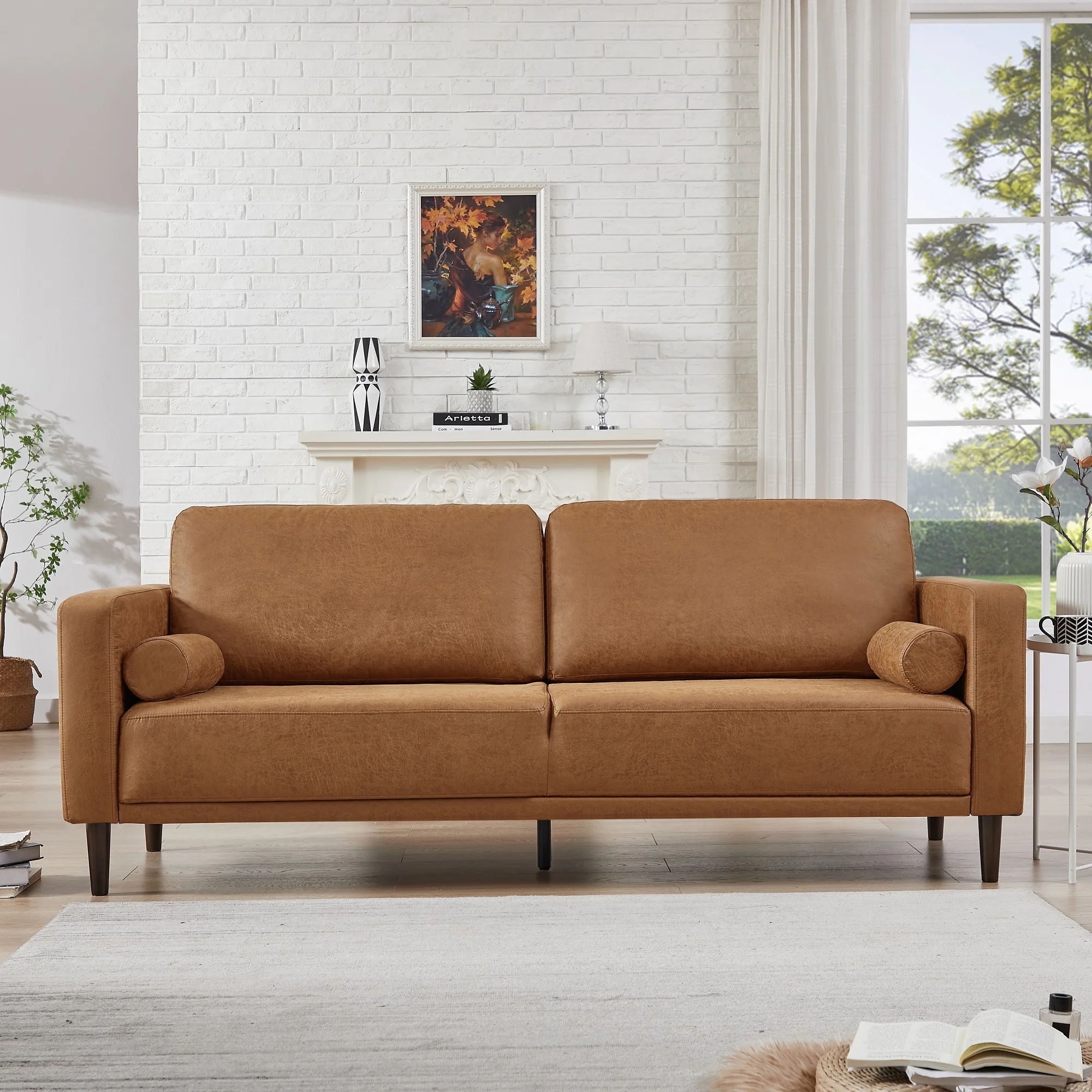 Homfa 3 Seat Sofa, 78.9'' Modern Large Upholstered PU Couch with Square Arm, Camel