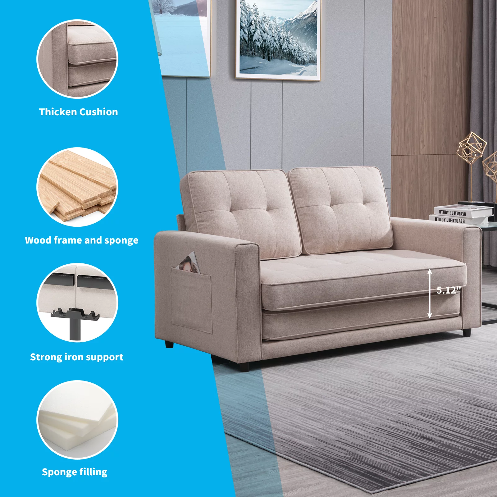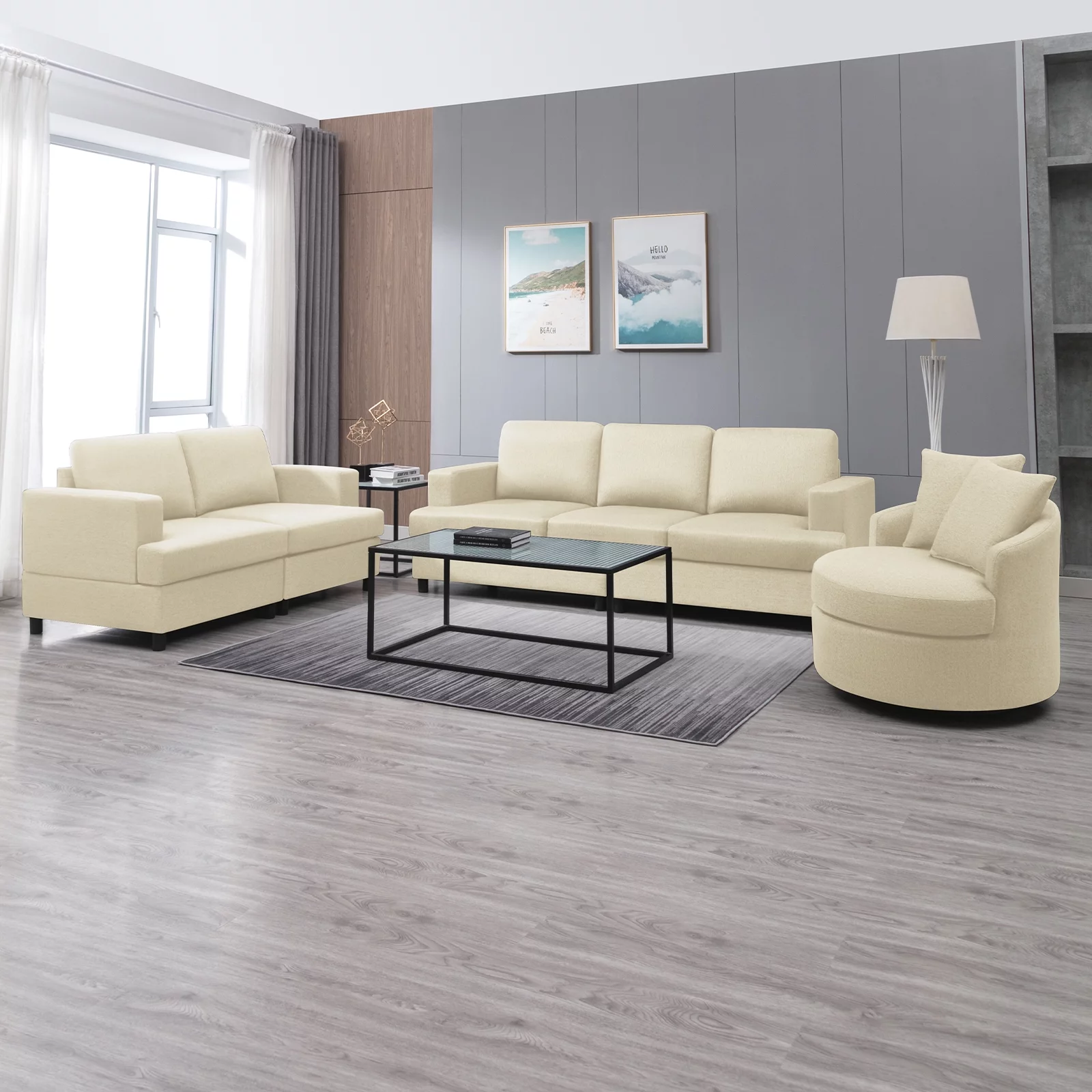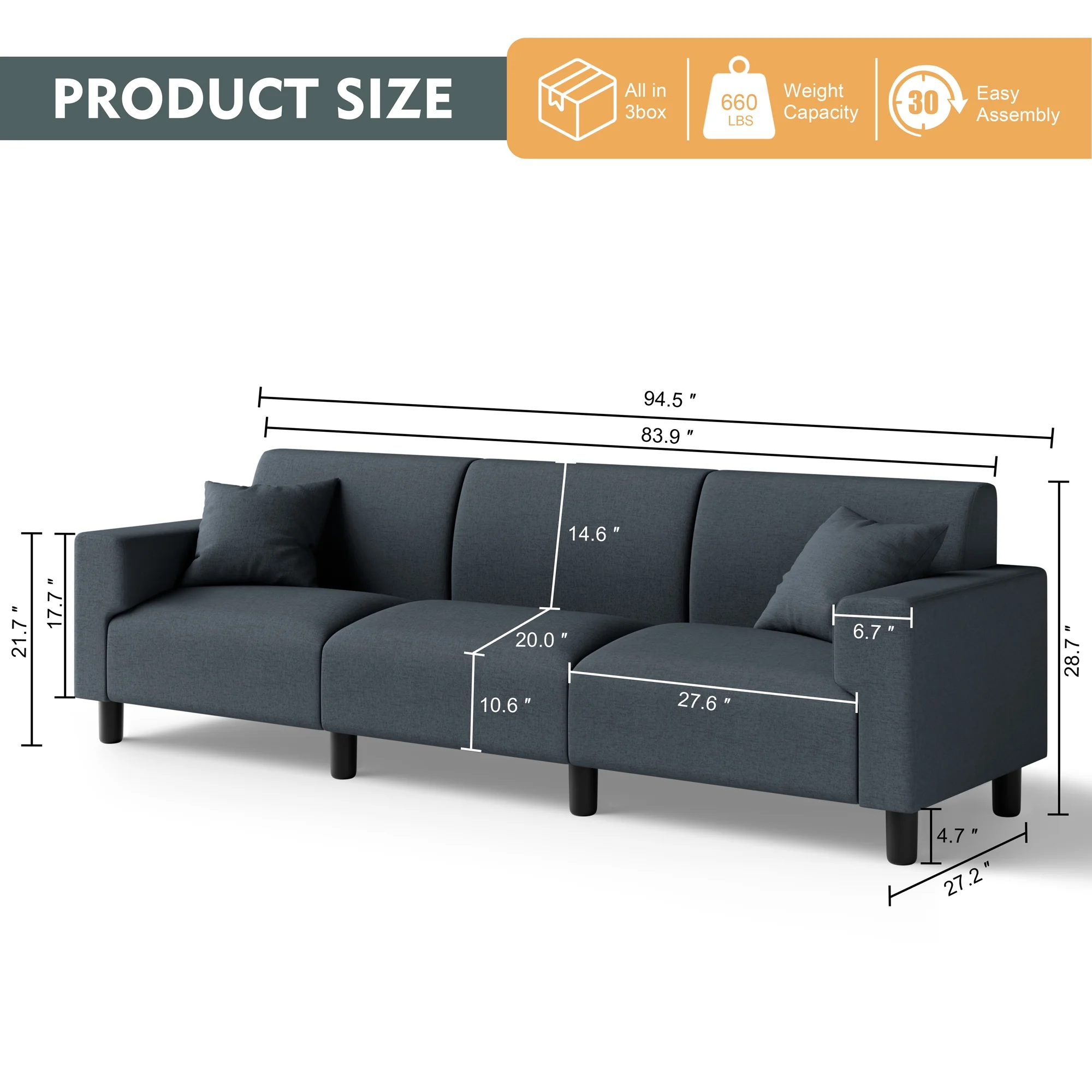 MUZZ Fabric 3-Seater Sofa, 90.1" Modern Sofa Furniture, Upholstered Sofa Couch for Living Room, Bedroom (Sofa, Beige)