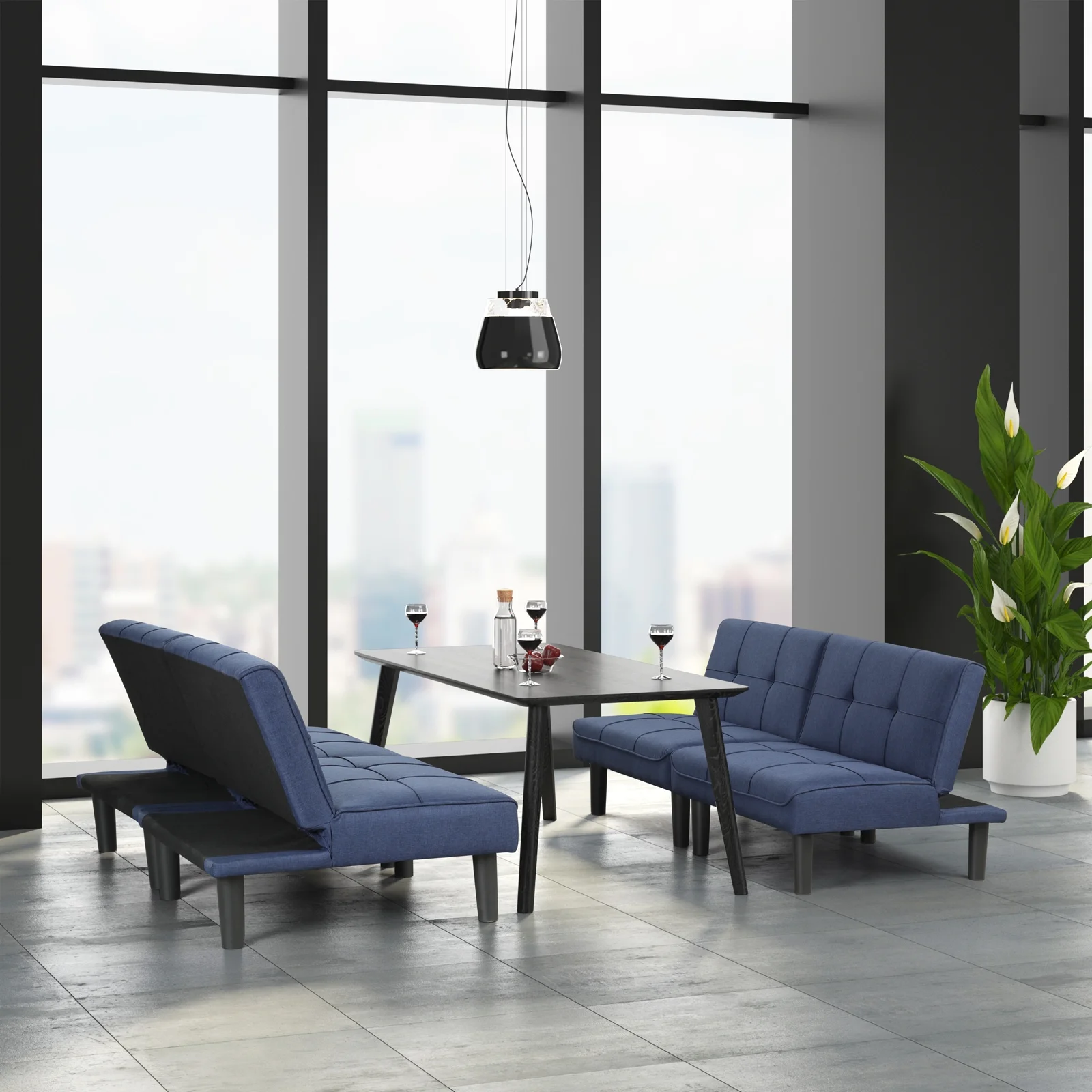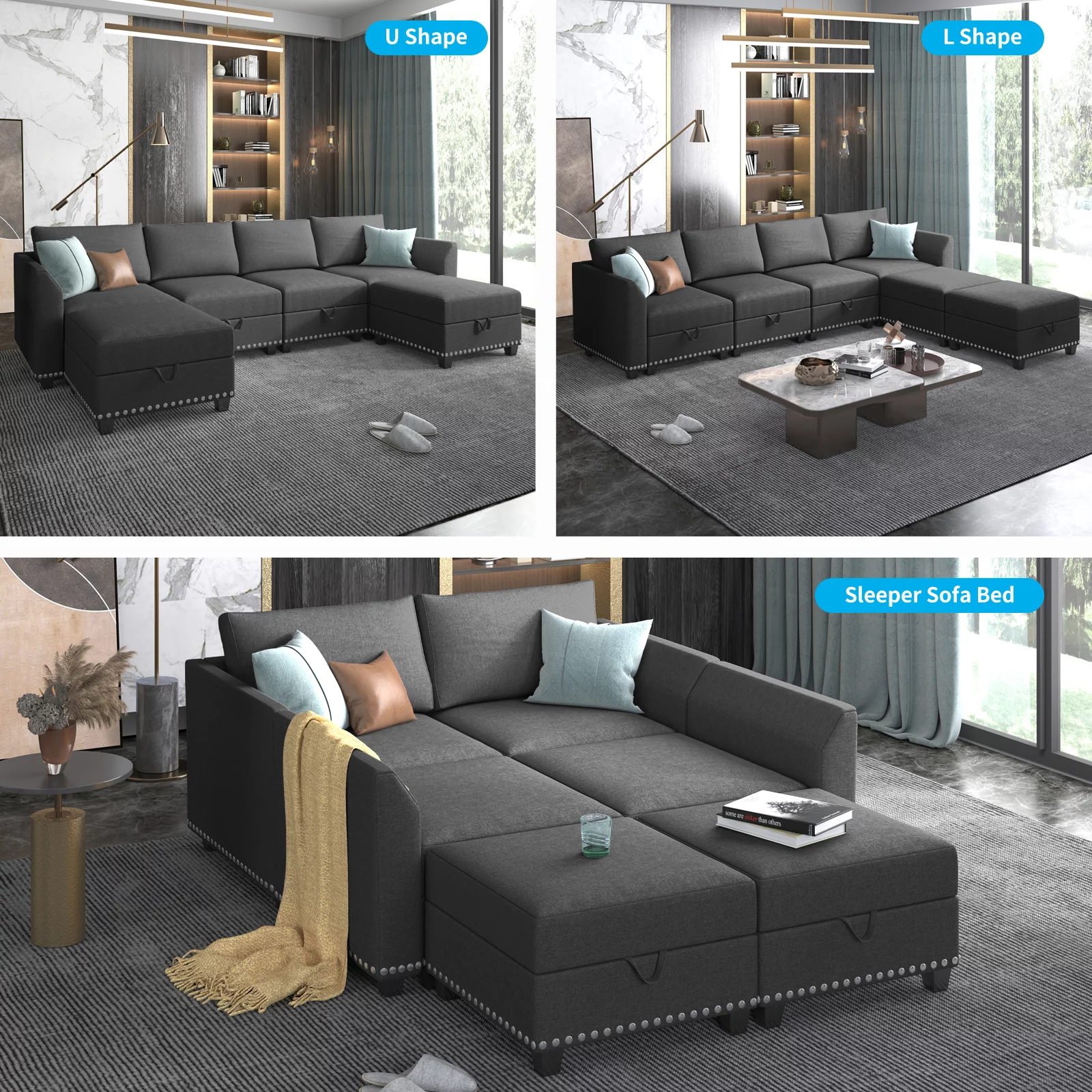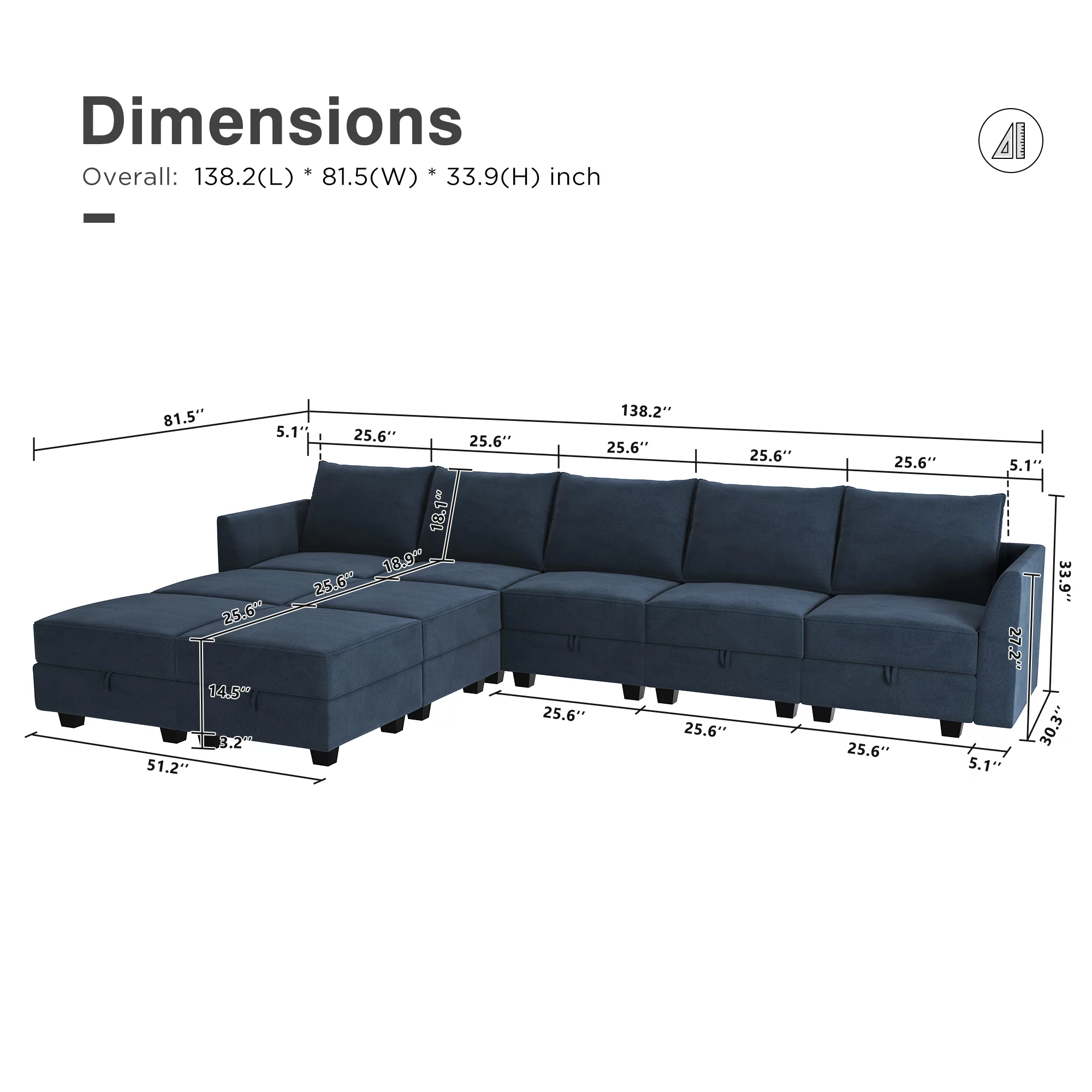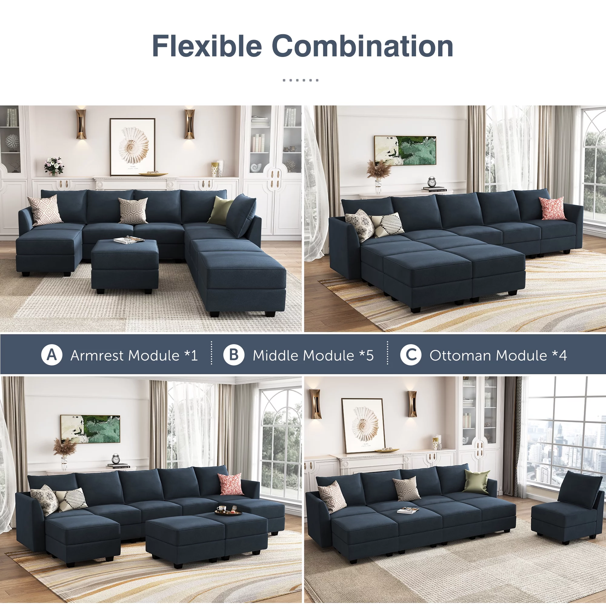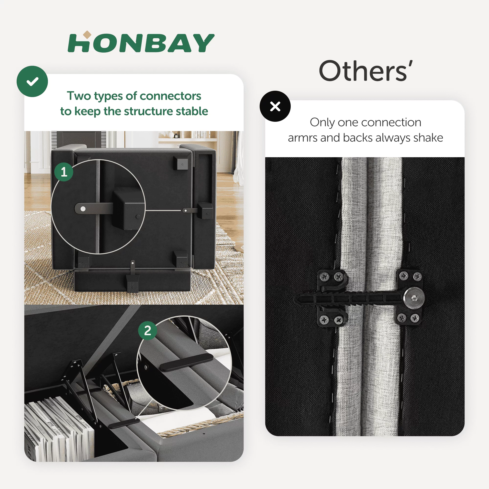 HONBAY Elegant Velvet Sectional Sofa Modular Couch, Sleeper Sofa Bed with Storage Ottomans, Navy Blue