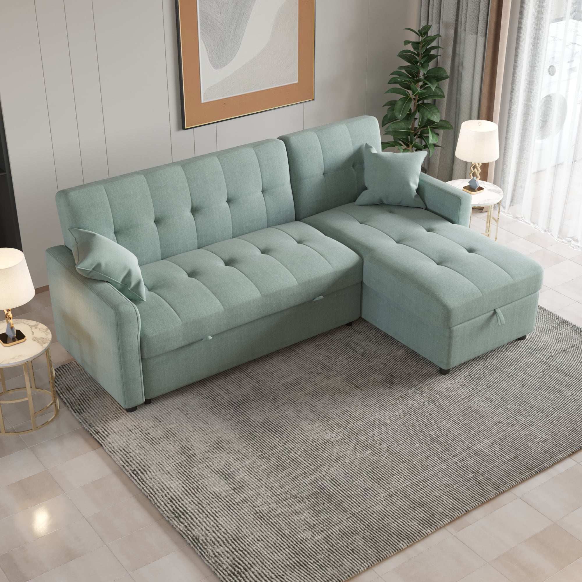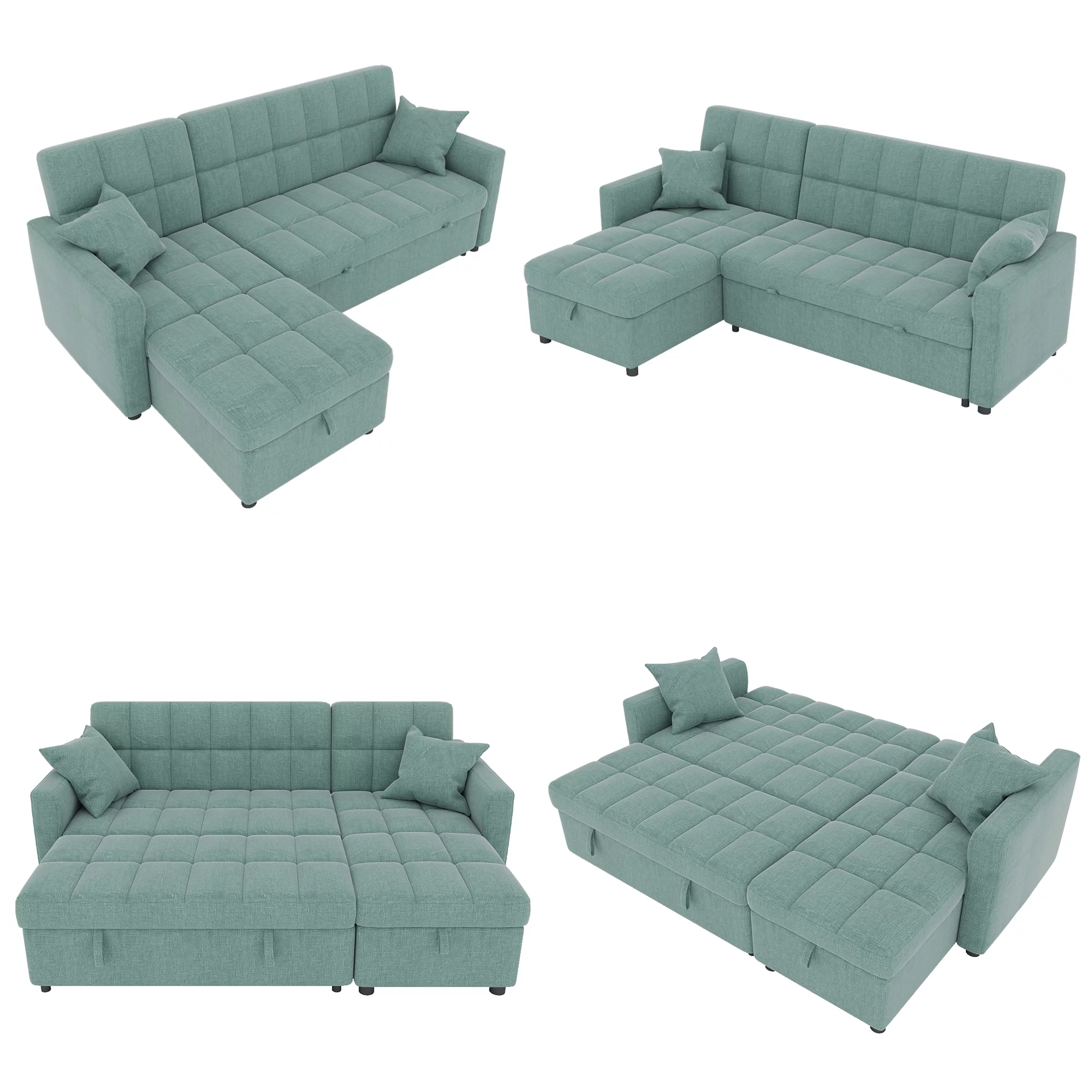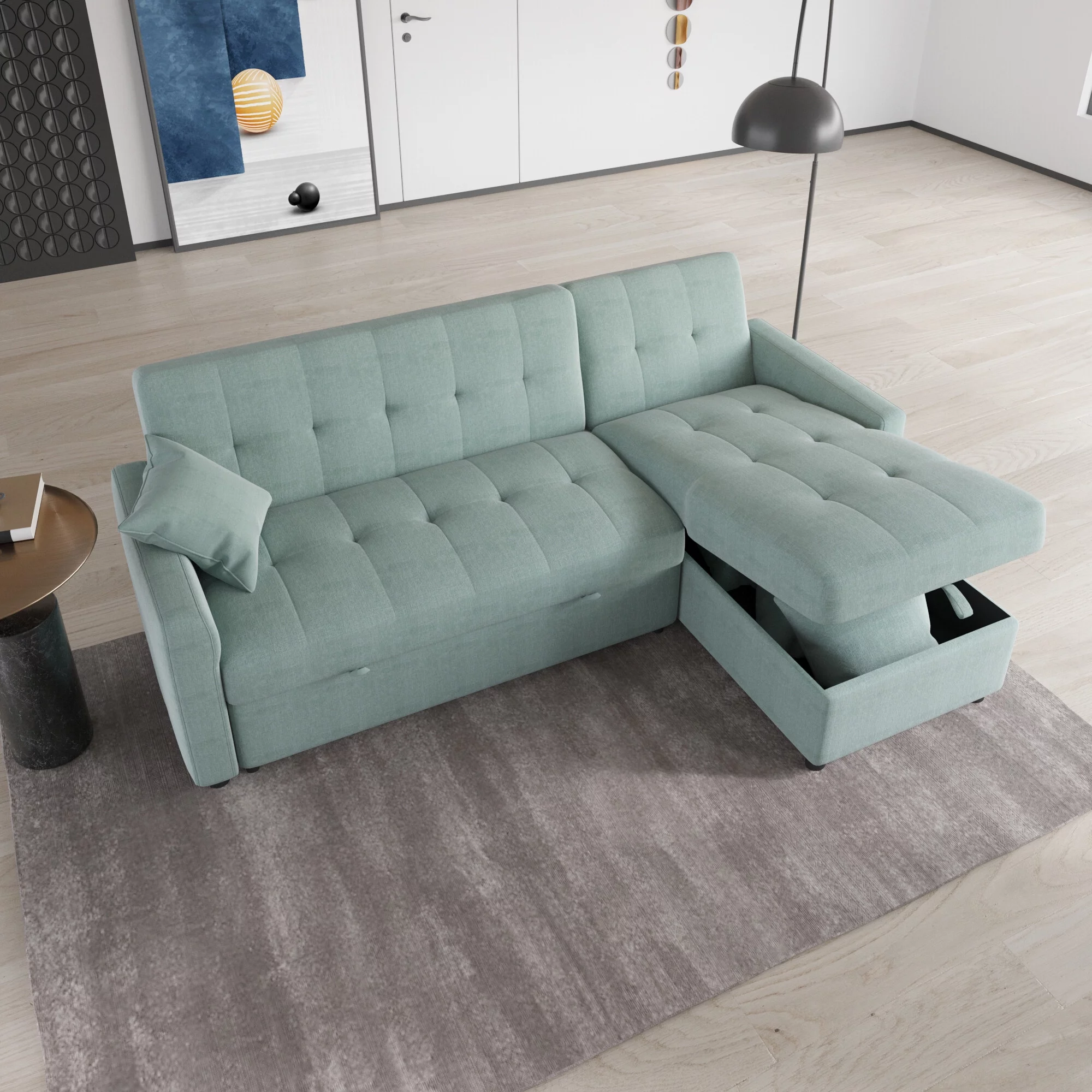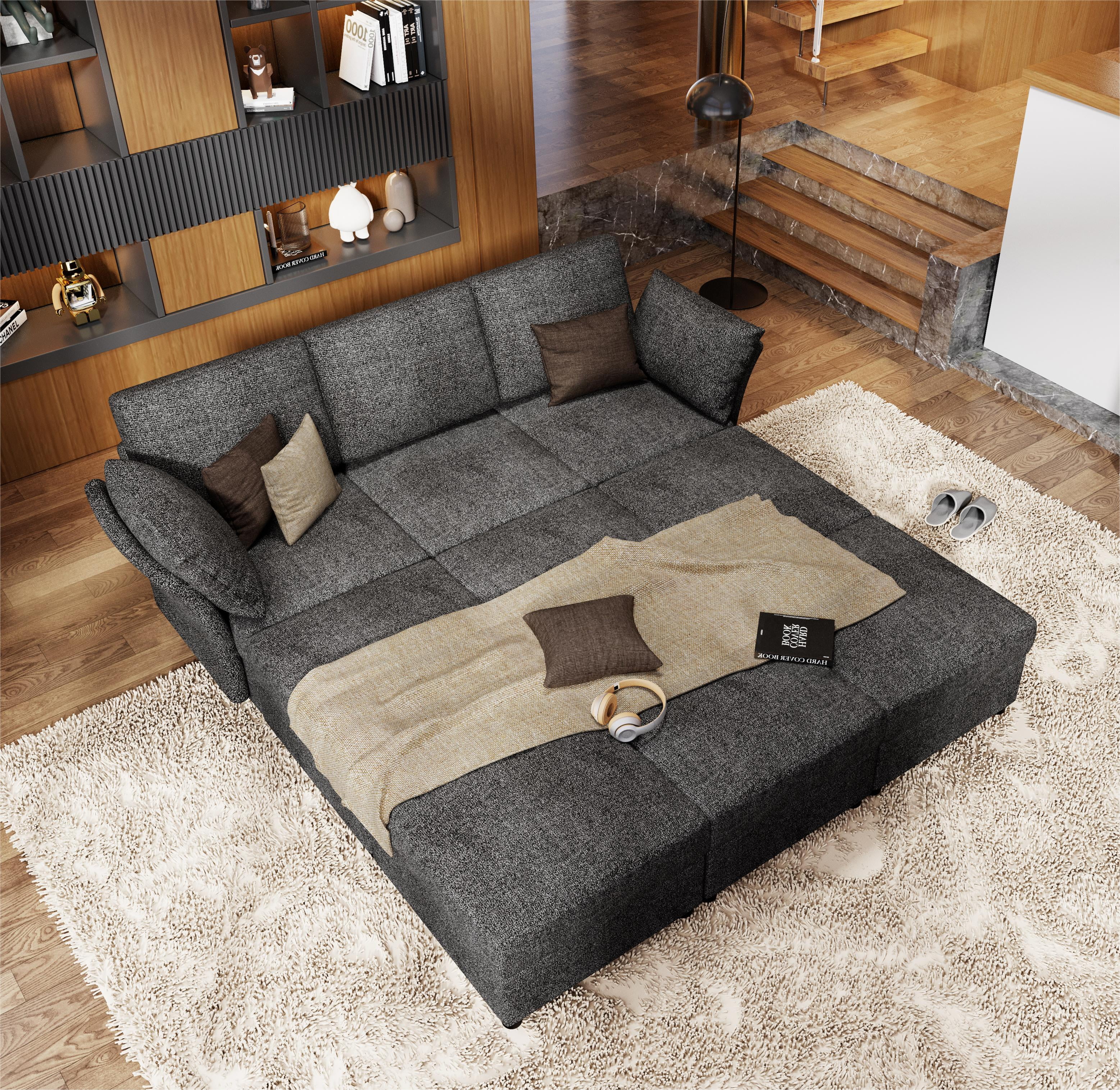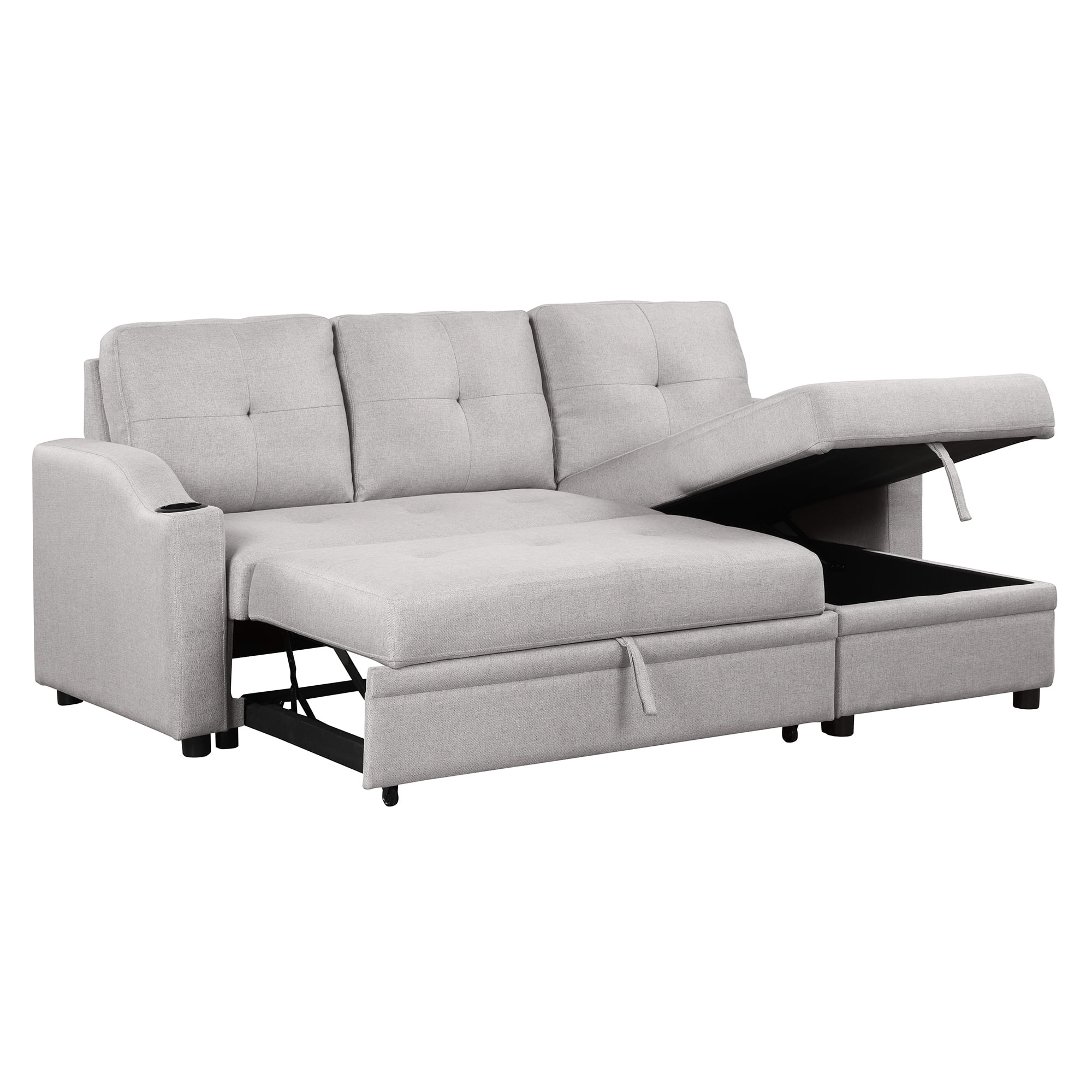 Euroco 80" Pull Out Sofa Bed L Shape Sofa with Storage Chaise and Cup Holder, Linen Fabric 3 Seater Couch, Gray