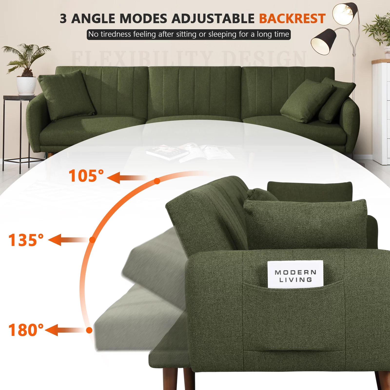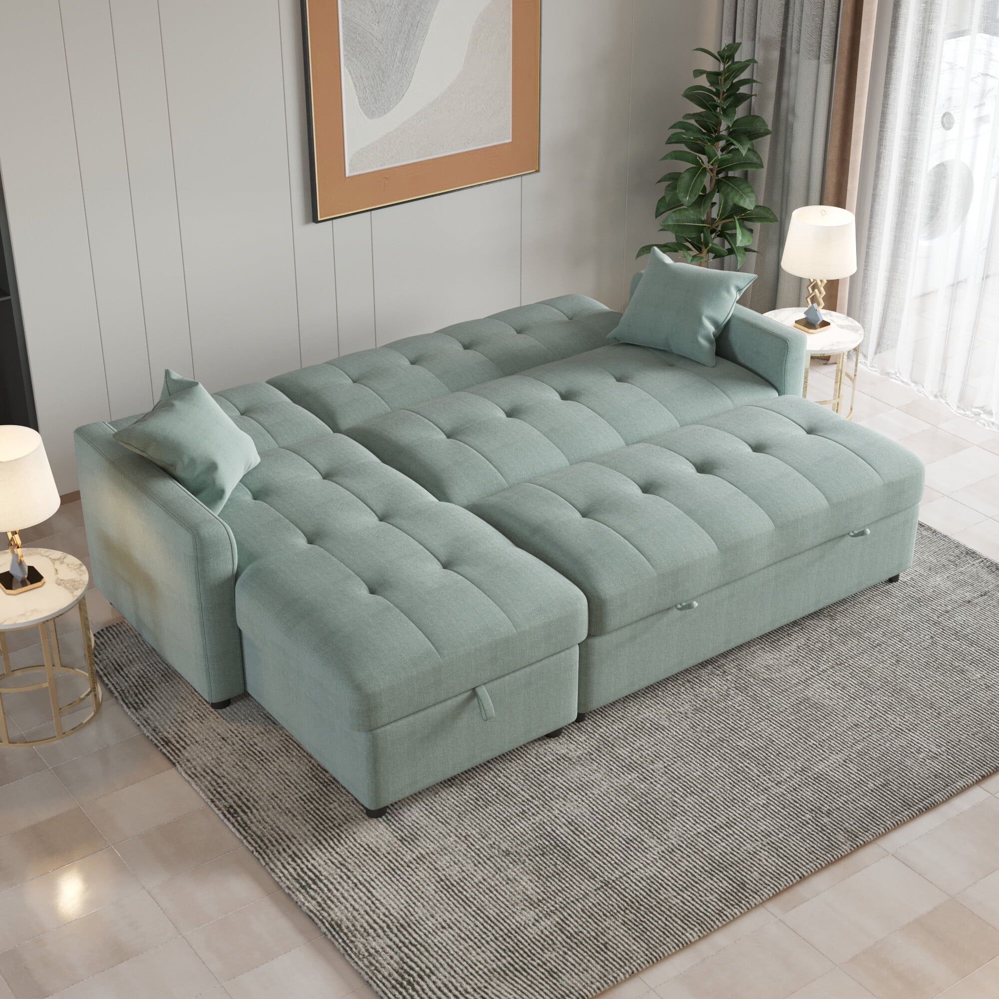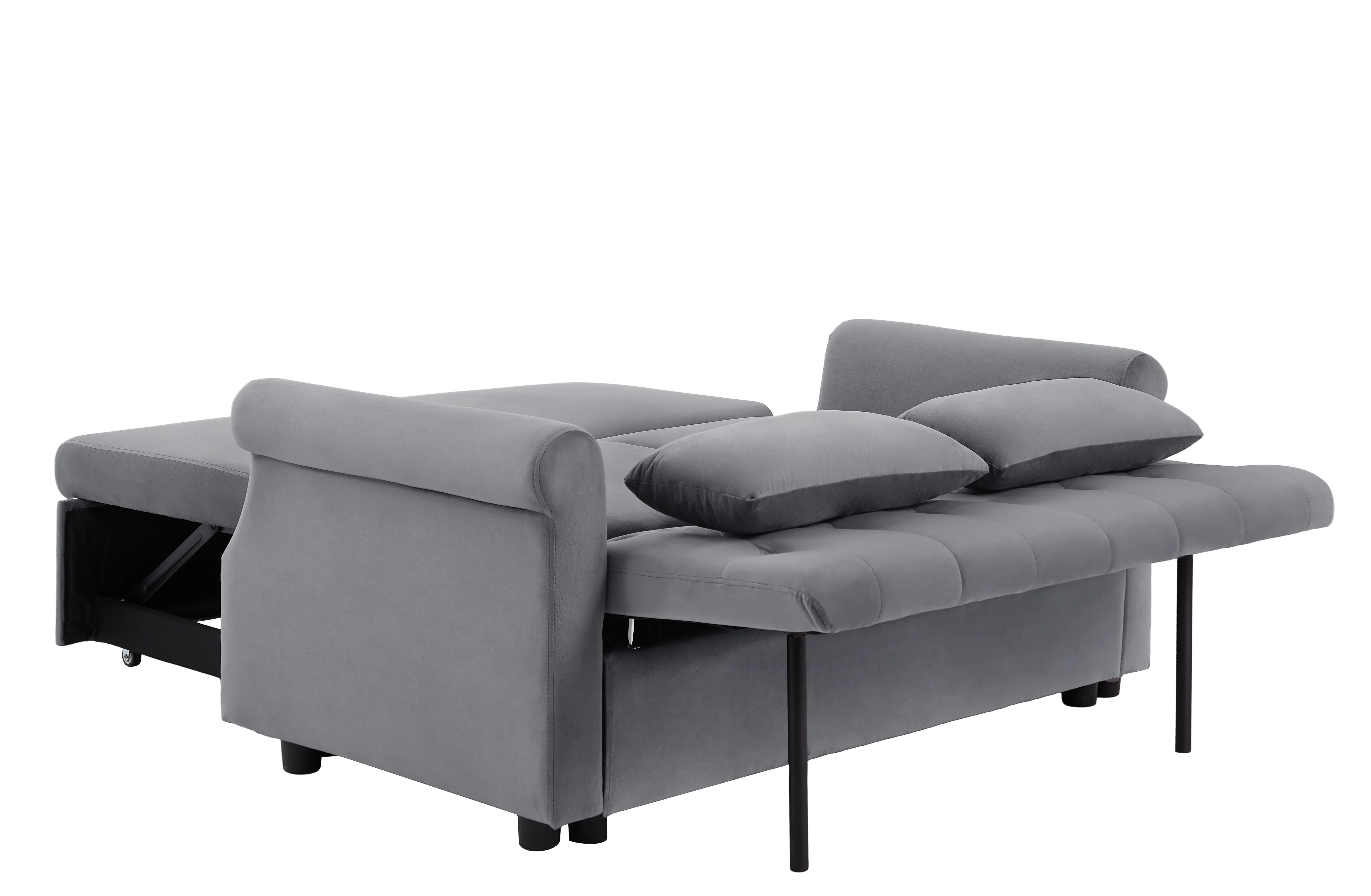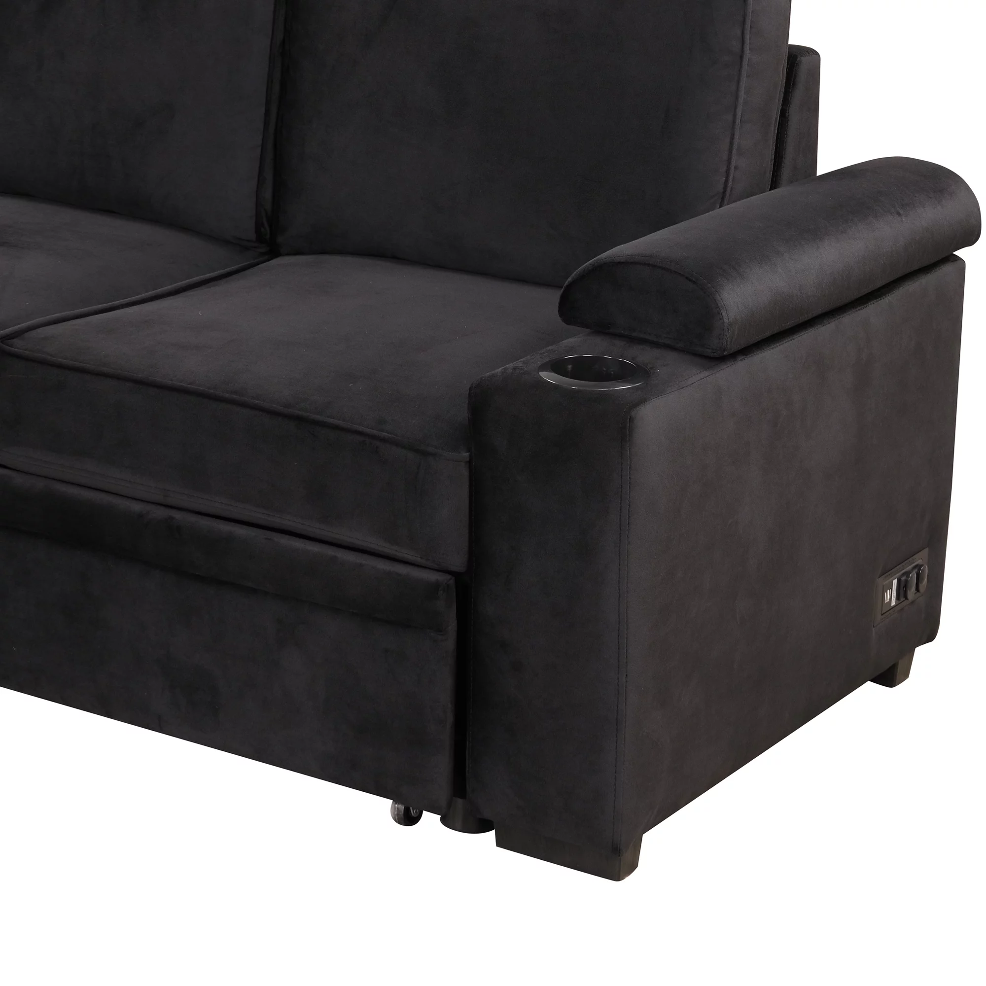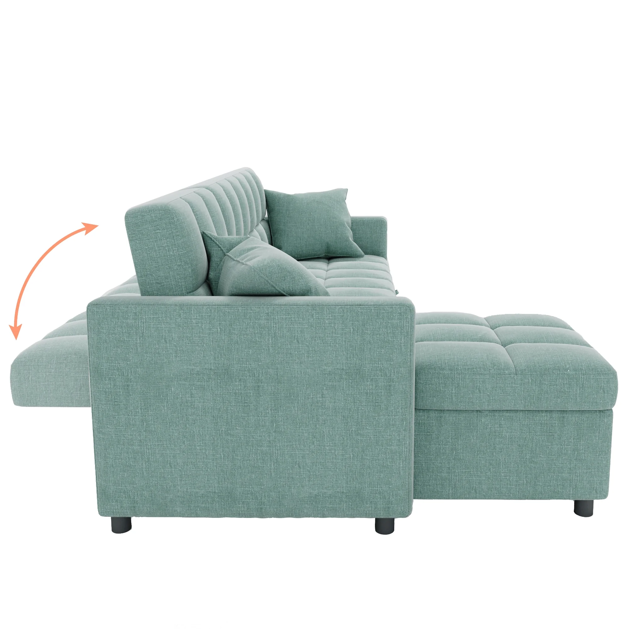 Euroco 80" Pull Out Sofa Bed L Shape Sofa with Storage Chaise and Cup Holder, Linen Fabric 3 Seater Couch, Gray