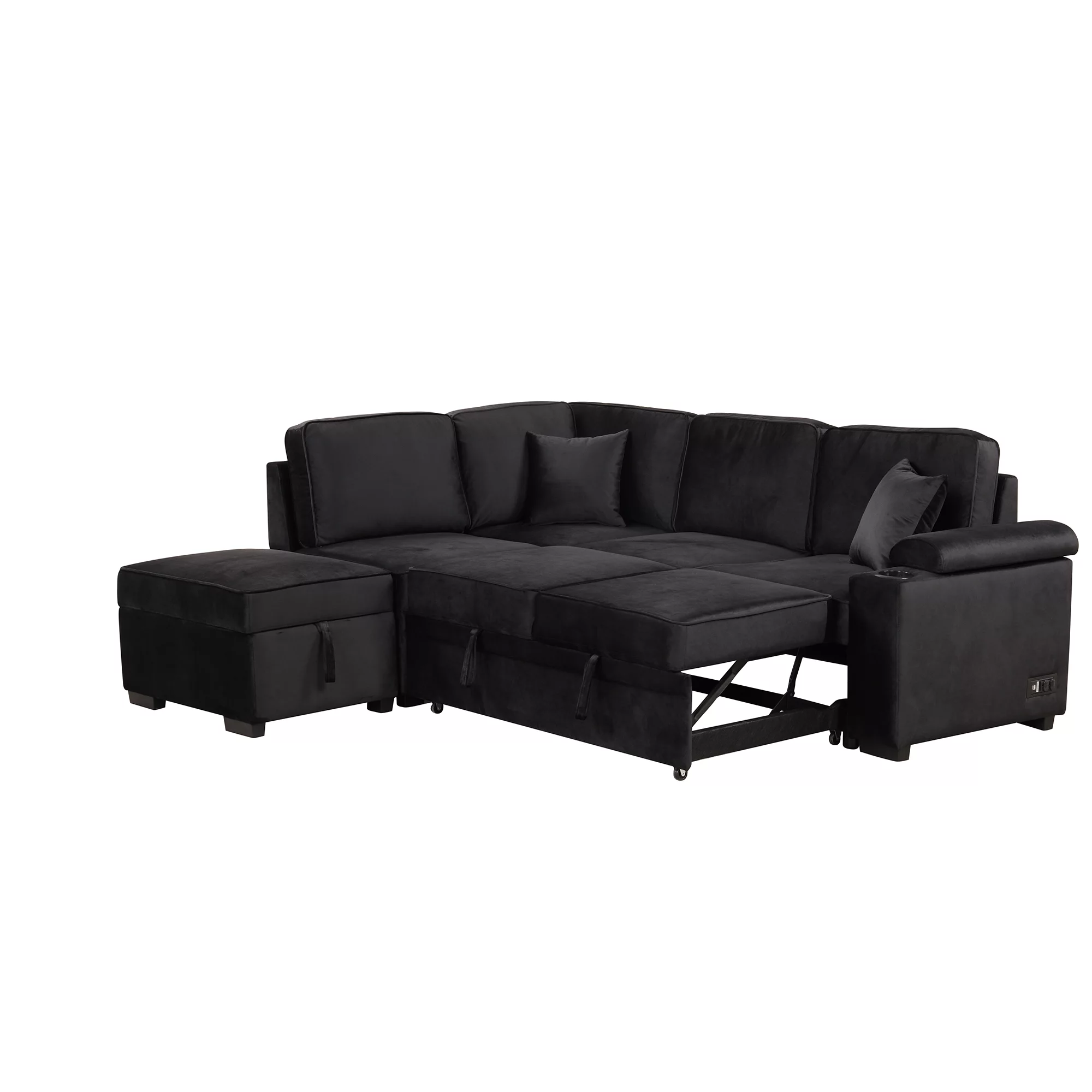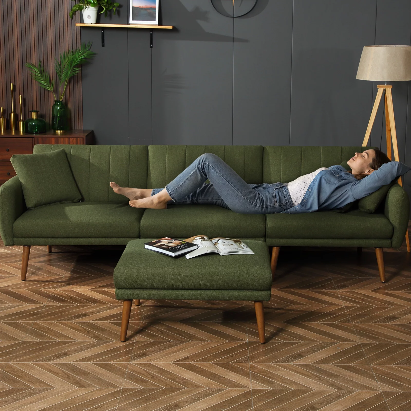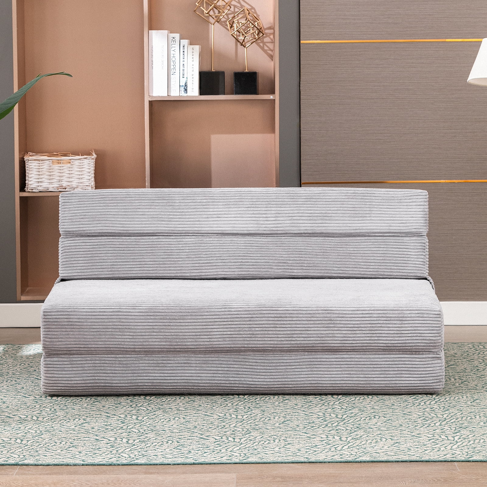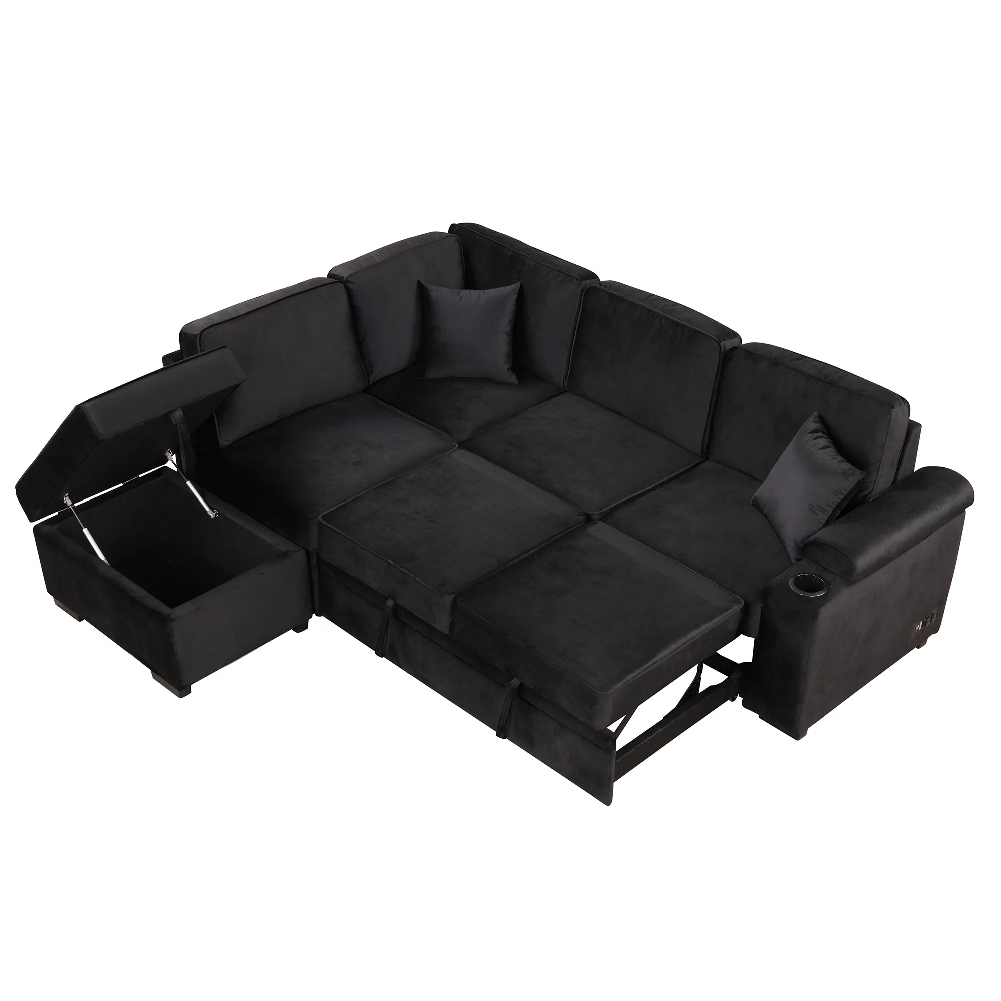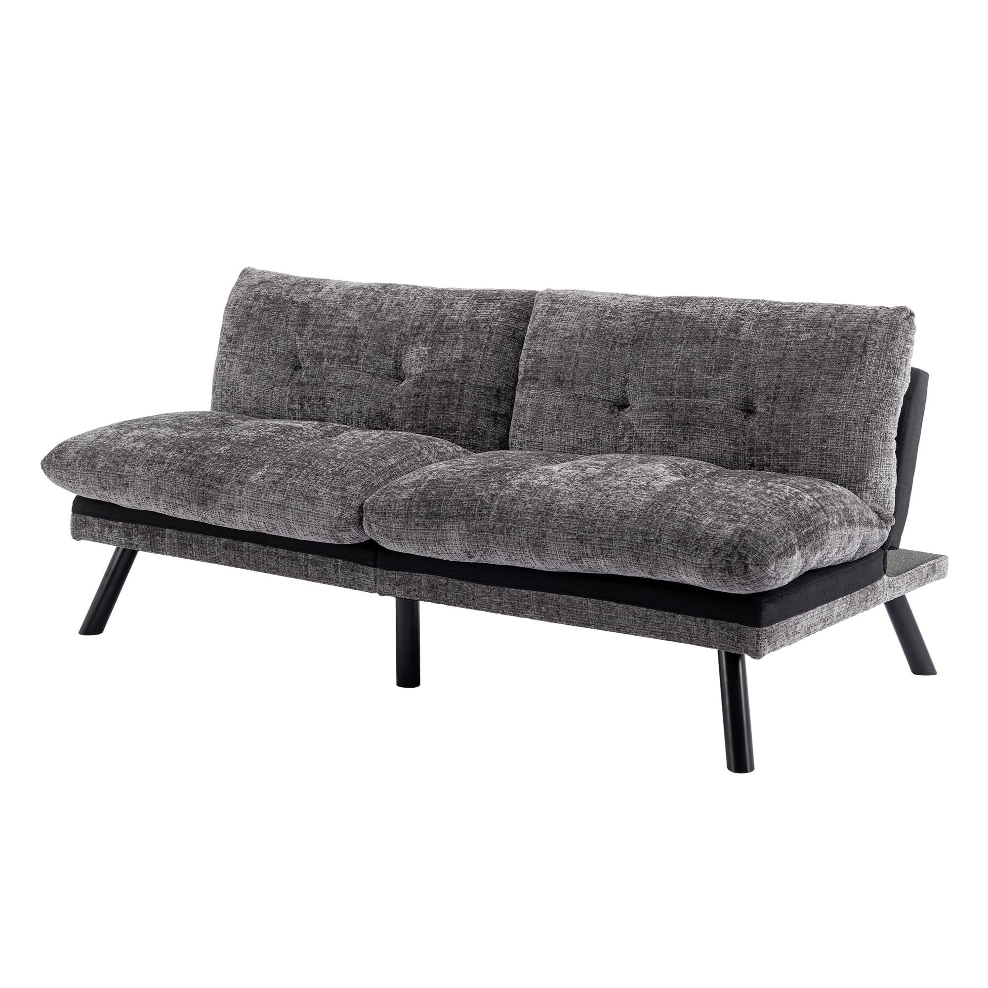 Euroco 80" Pull Out Sofa Bed L Shape Sofa with Storage Chaise and Cup Holder, Linen Fabric 3 Seater Couch, Gray