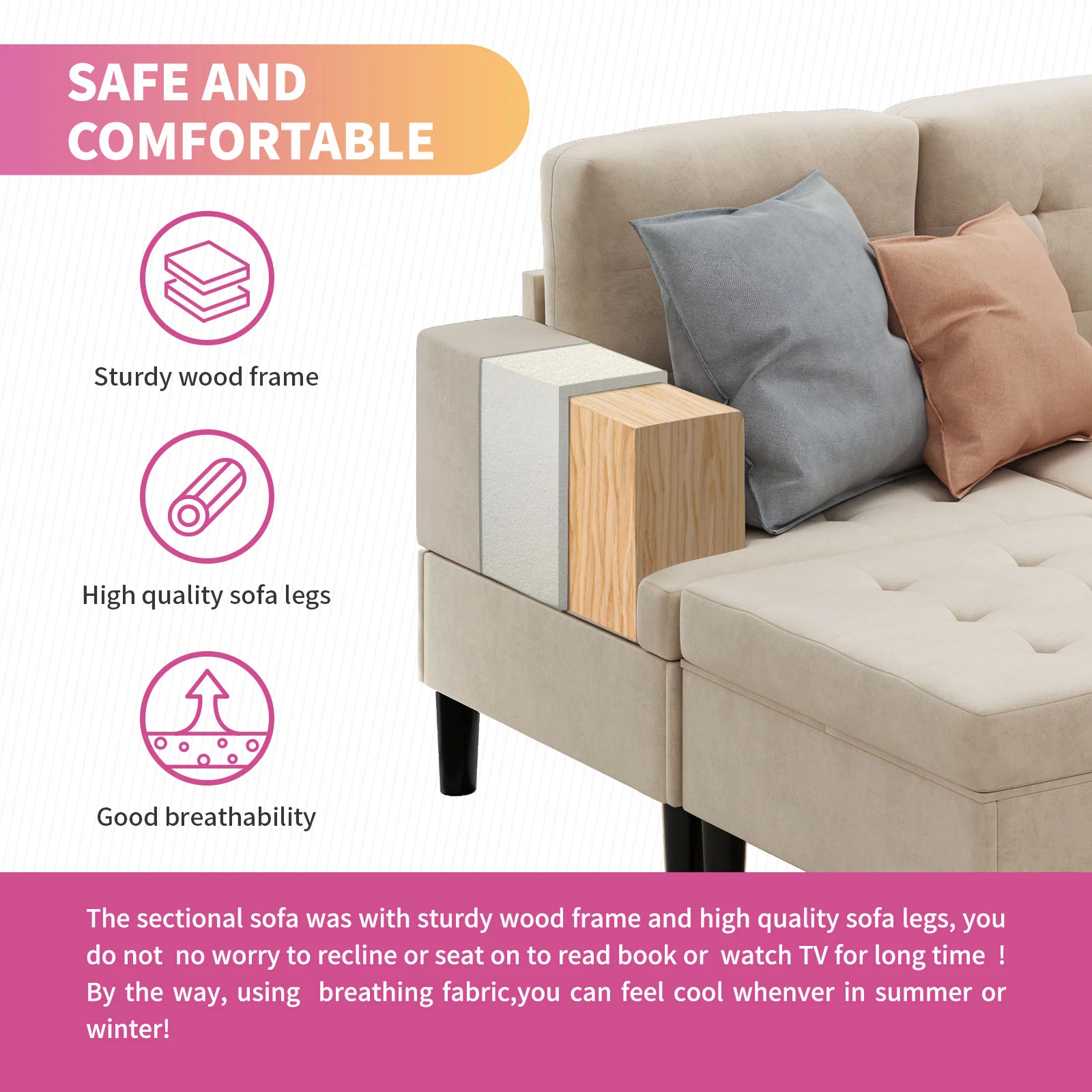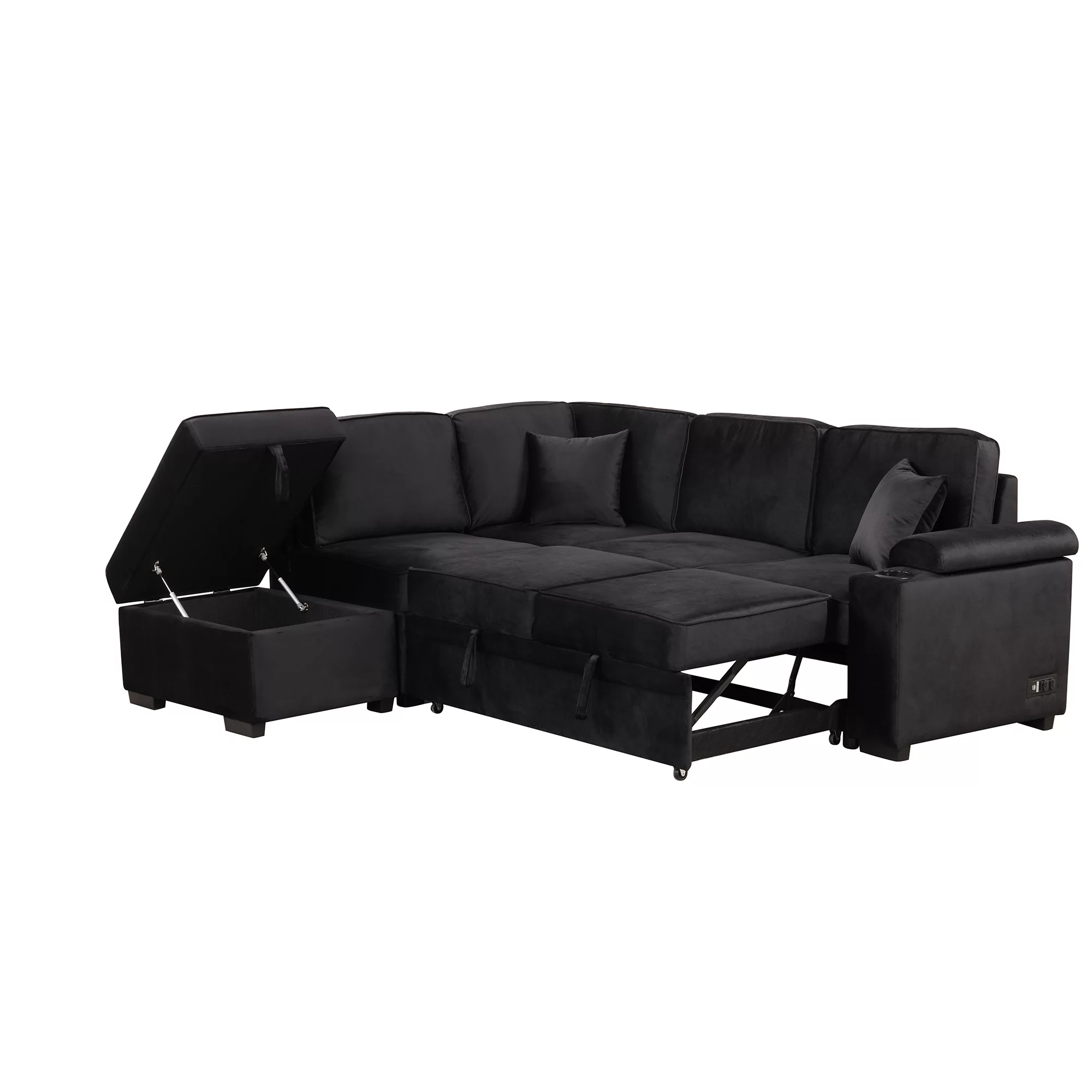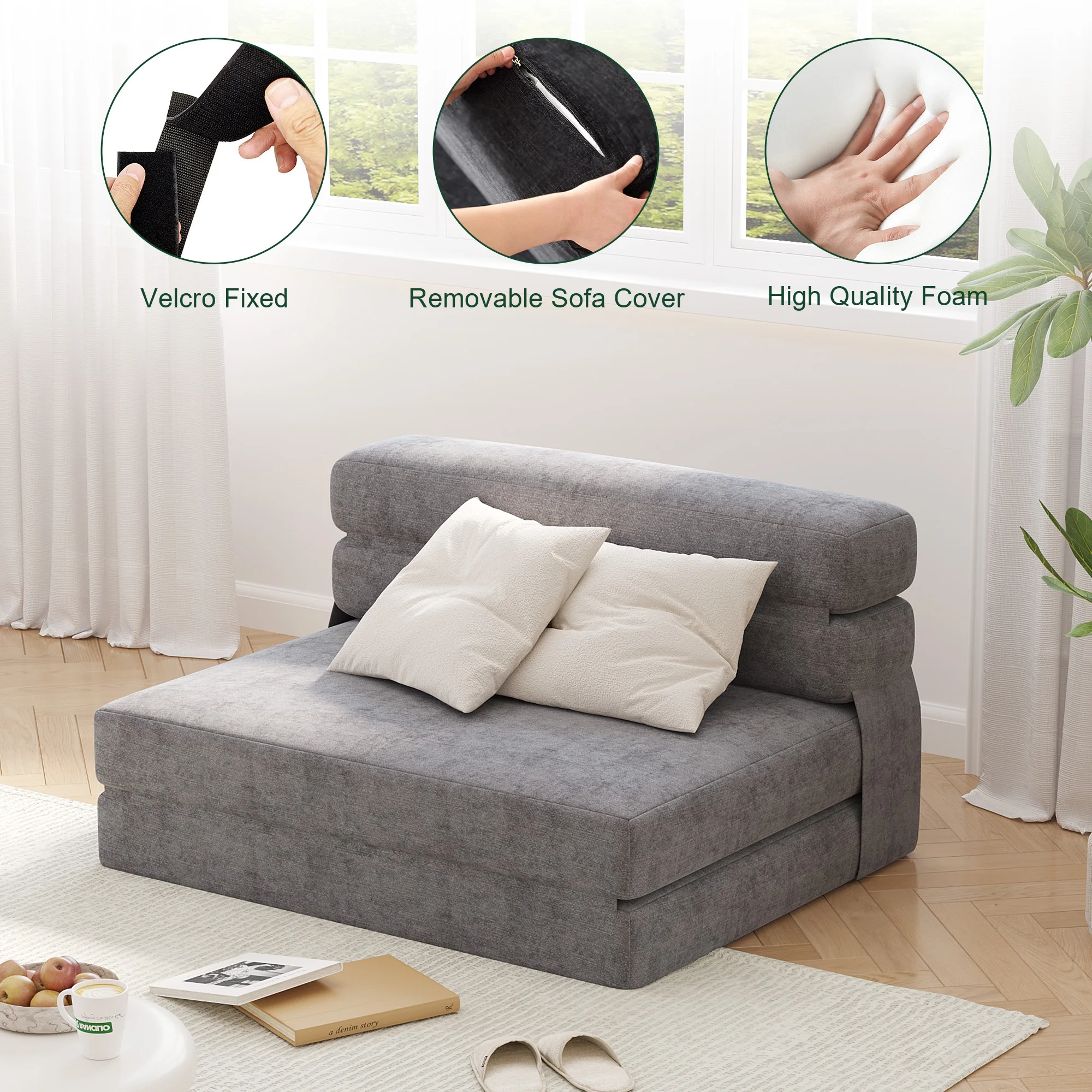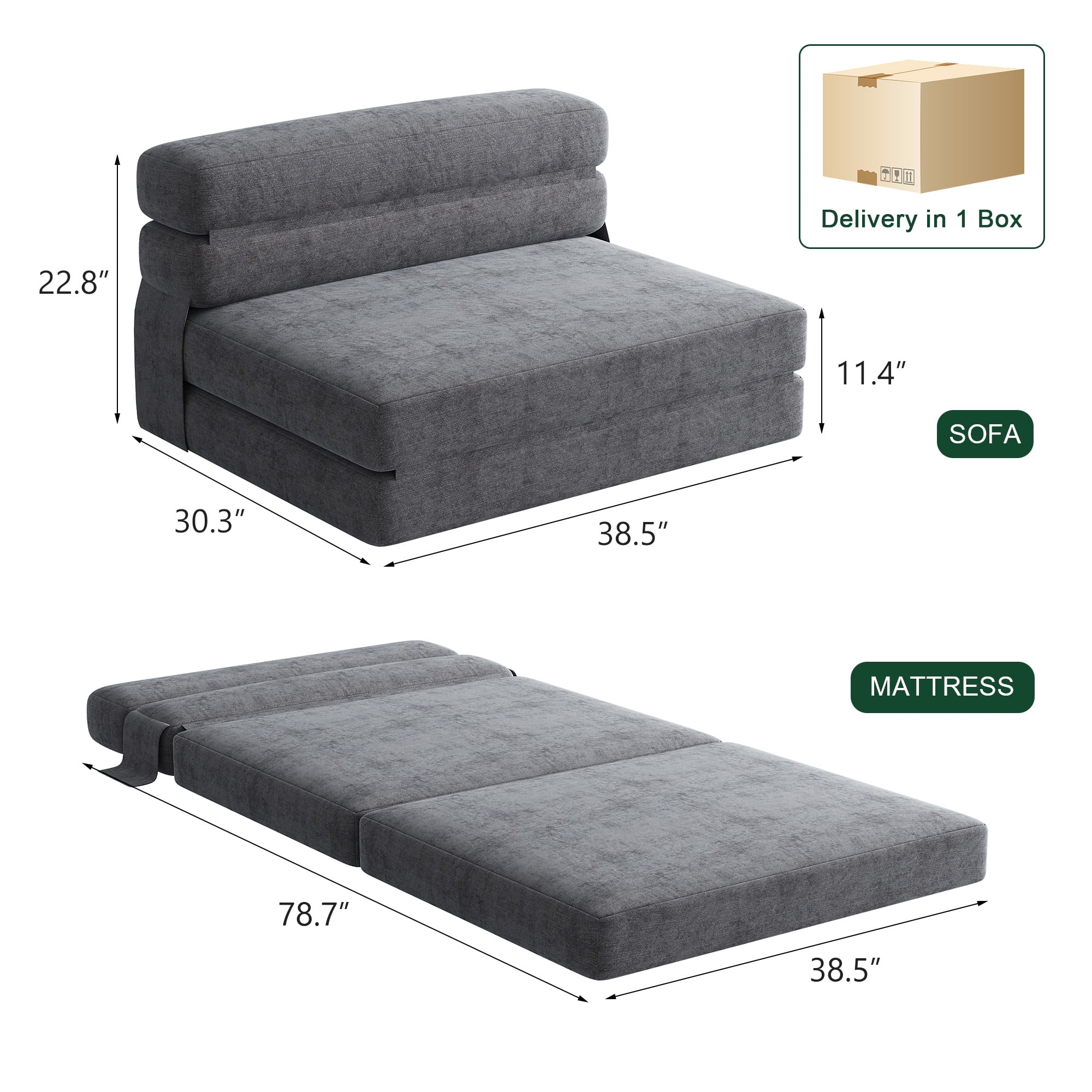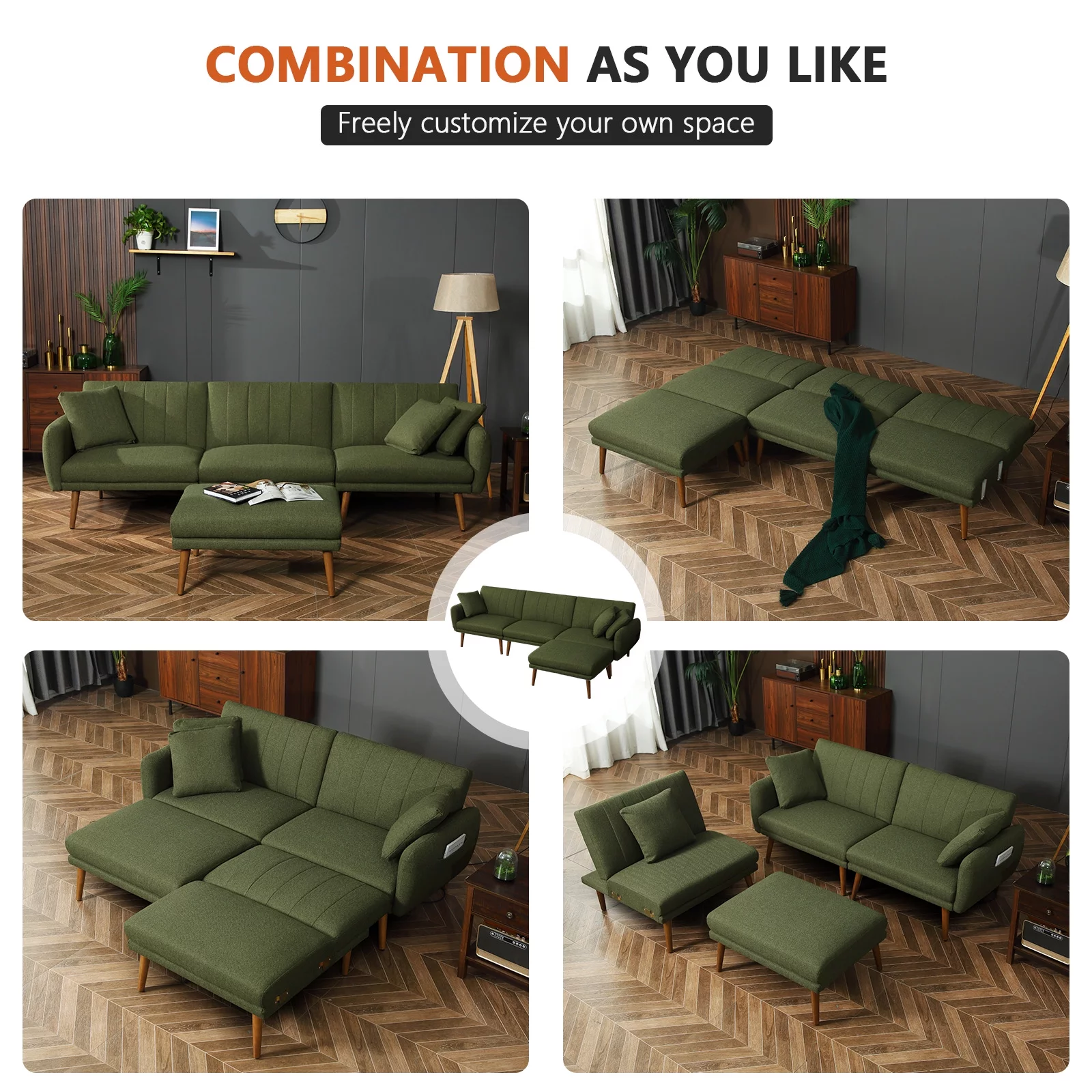 Euroco 80" Pull Out Sofa Bed L Shape Sofa with Storage Chaise and Cup Holder, Linen Fabric 3 Seater Couch, Gray