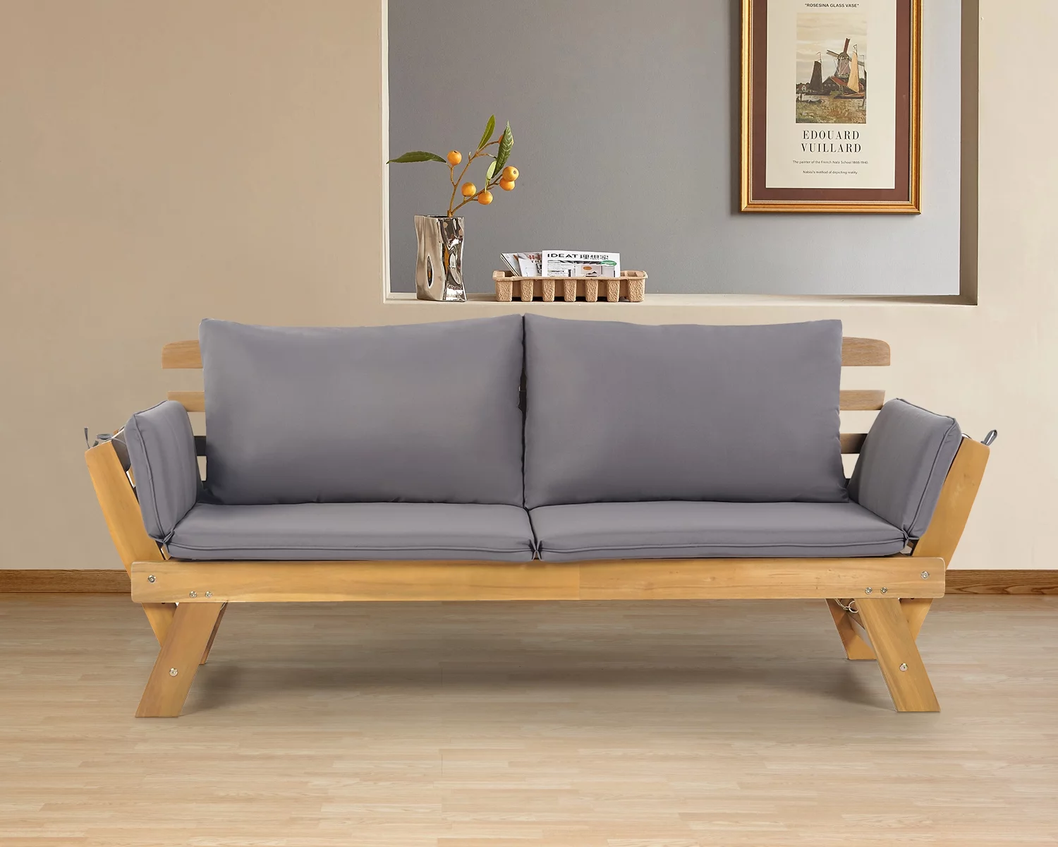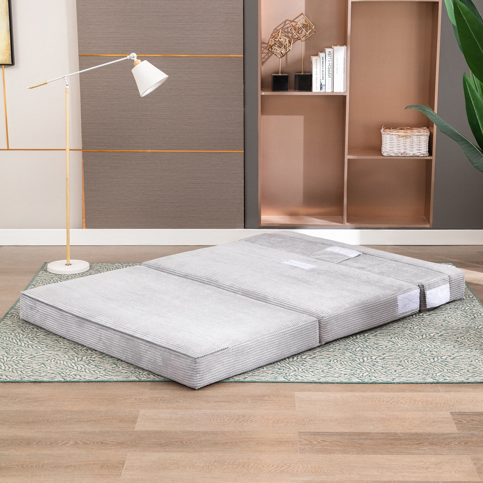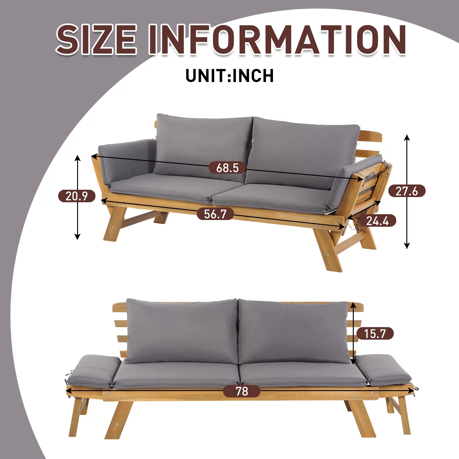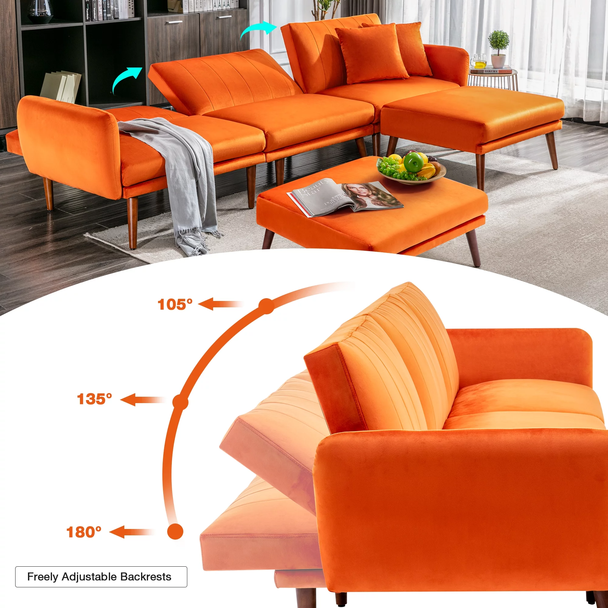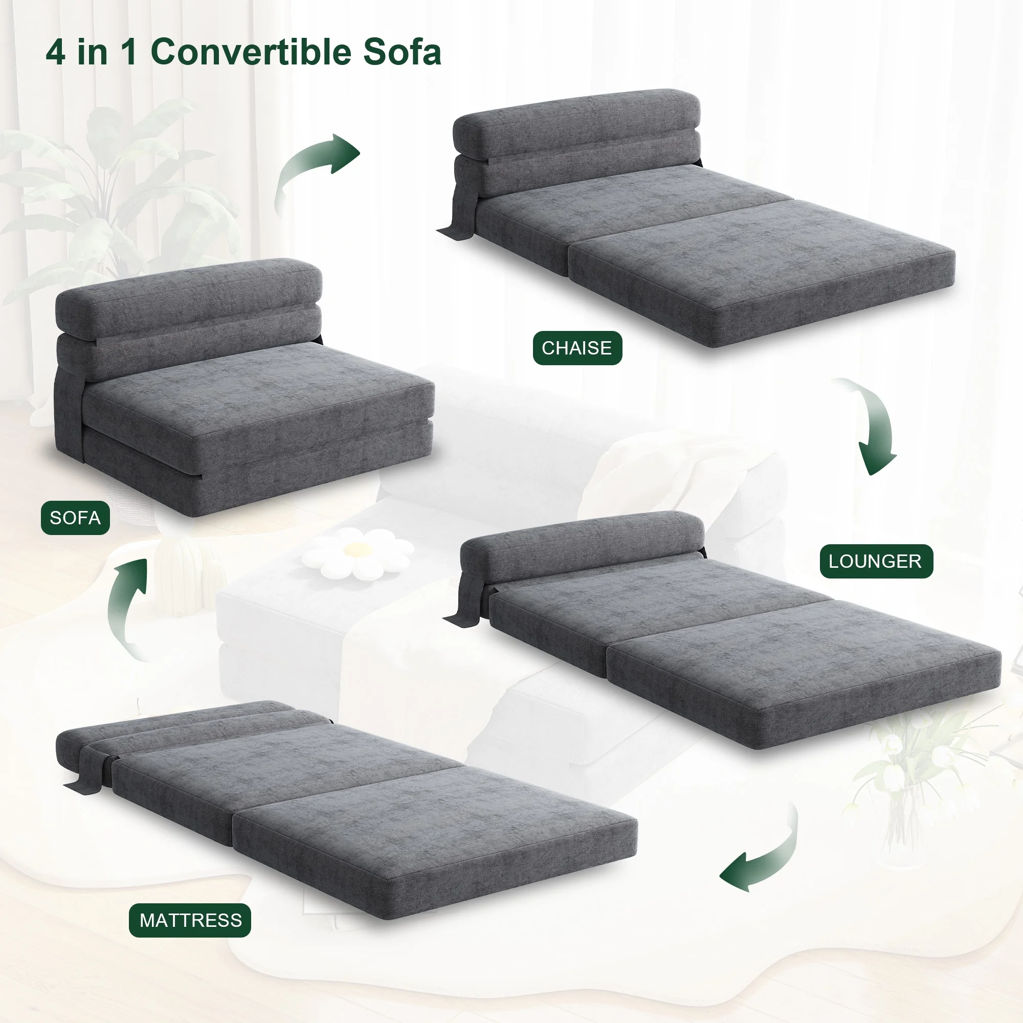 Euroco 80" Pull Out Sofa Bed L Shape Sofa with Storage Chaise and Cup Holder, Linen Fabric 3 Seater Couch, Gray