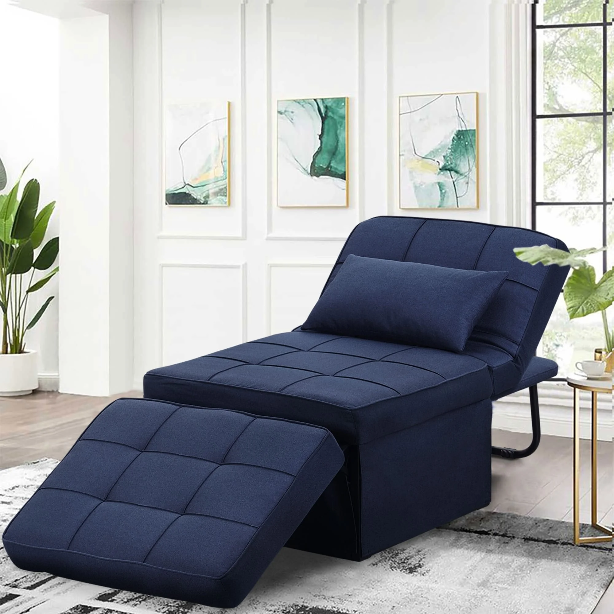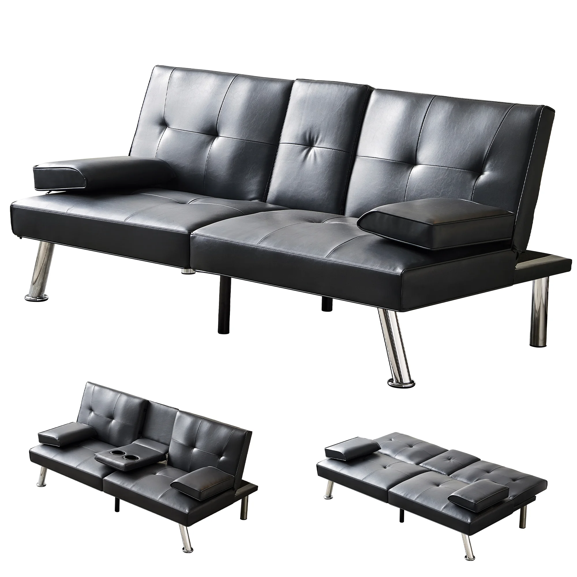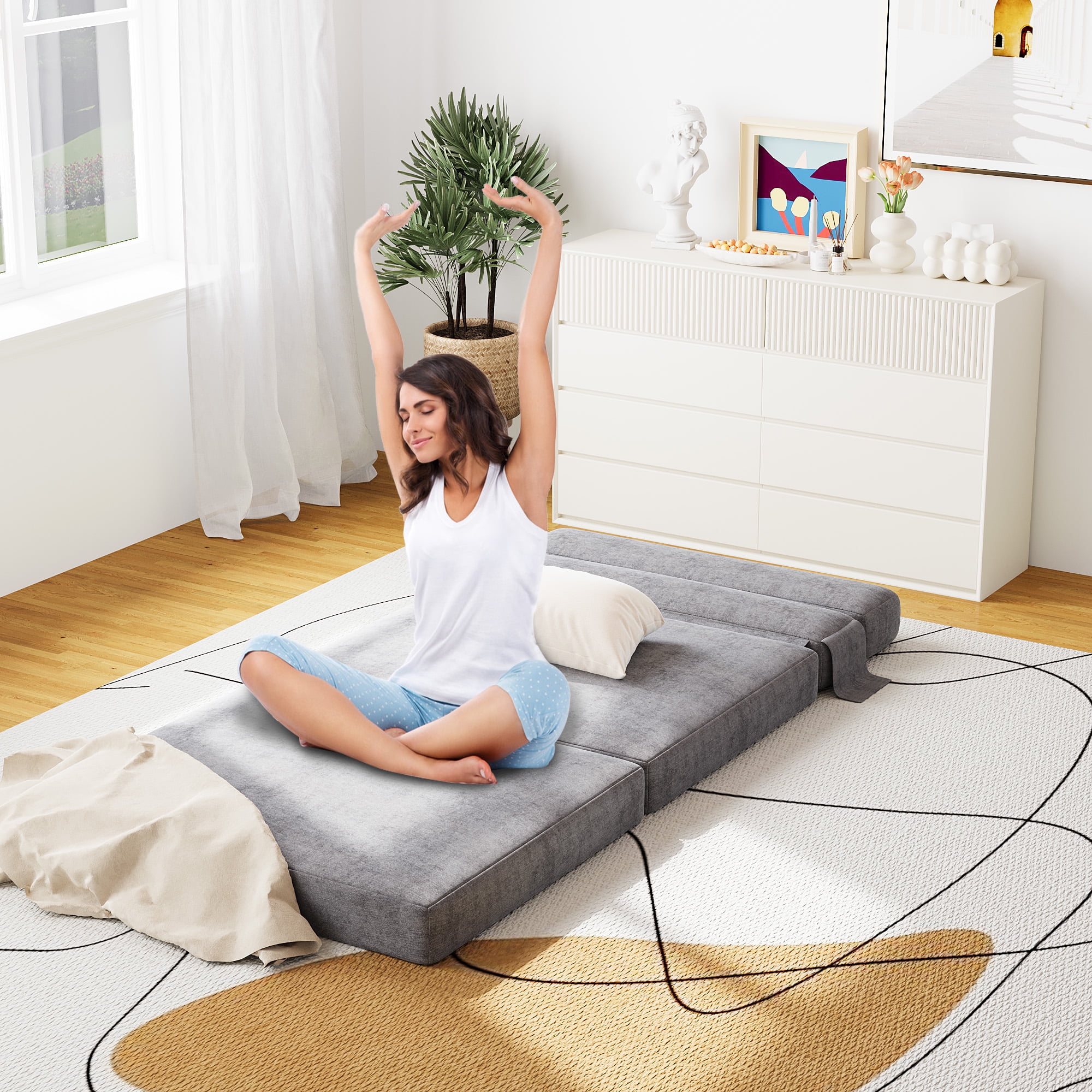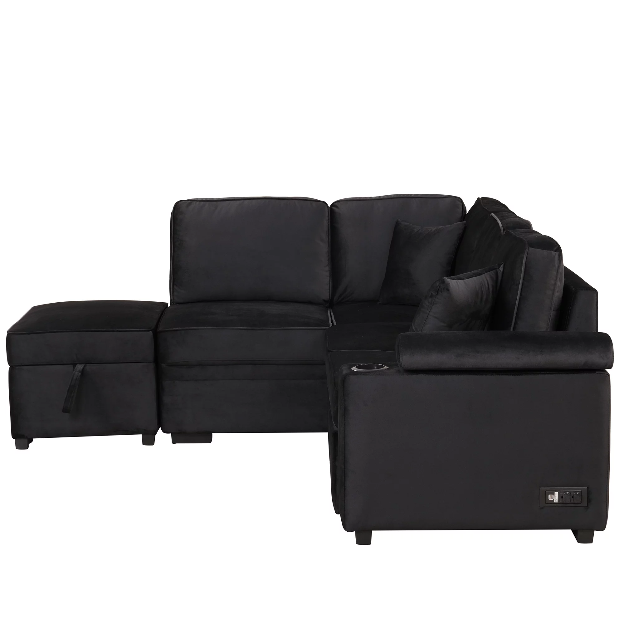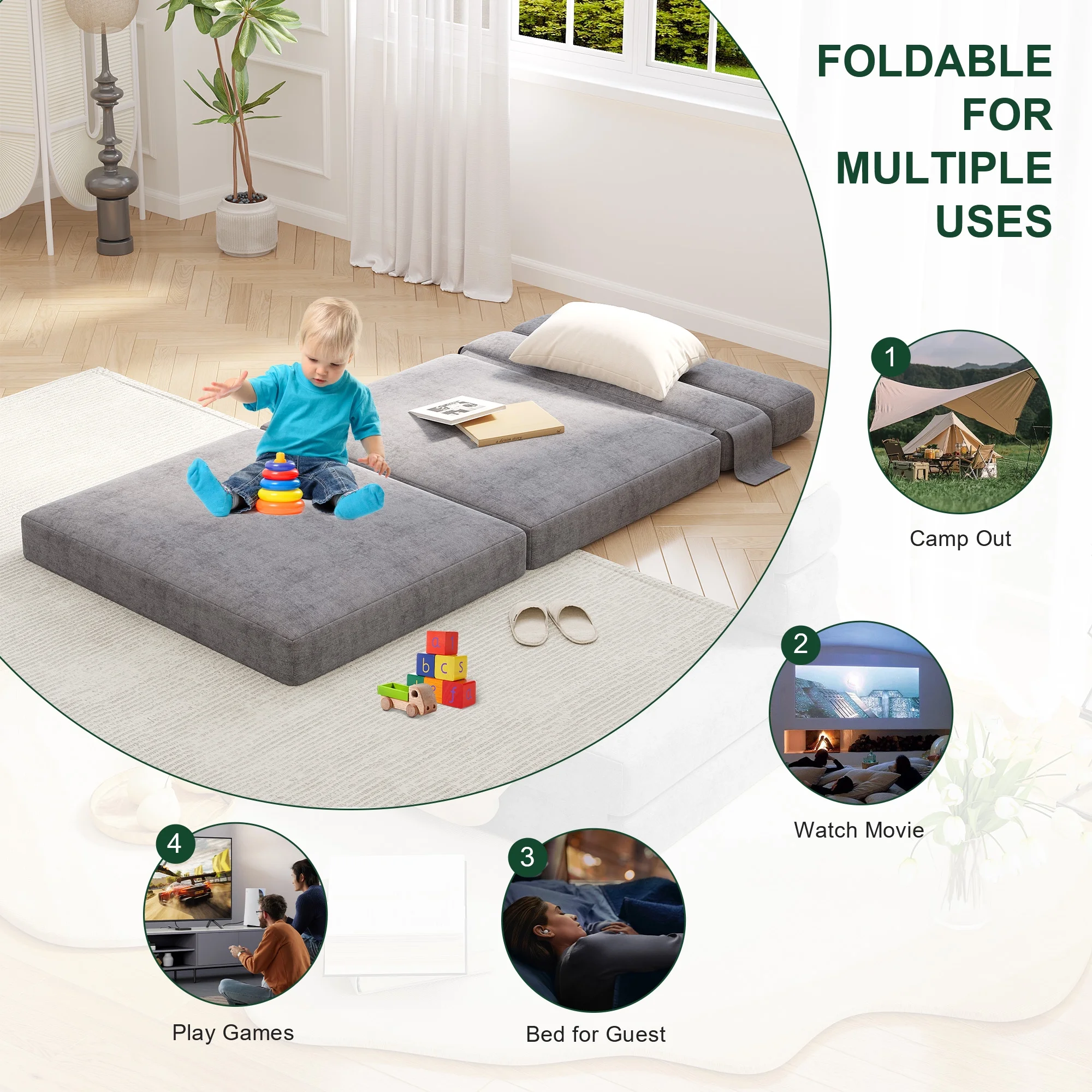 Euroco 80" Pull Out Sofa Bed L Shape Sofa with Storage Chaise and Cup Holder, Linen Fabric 3 Seater Couch, Gray