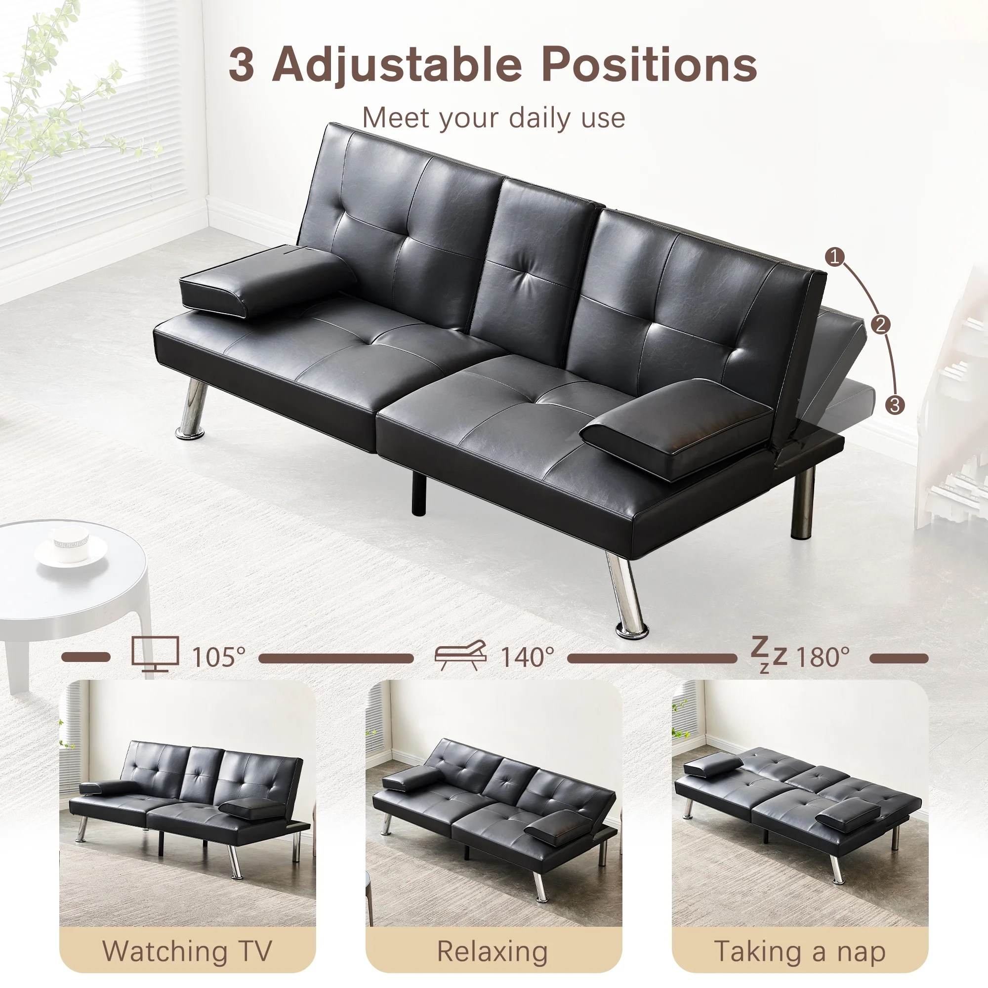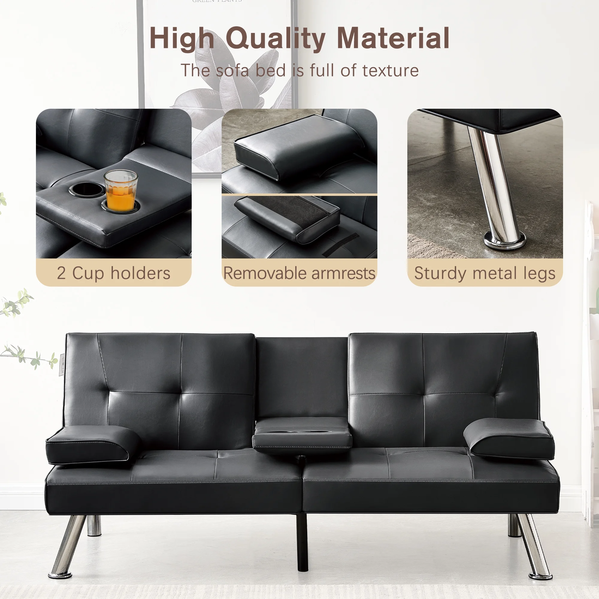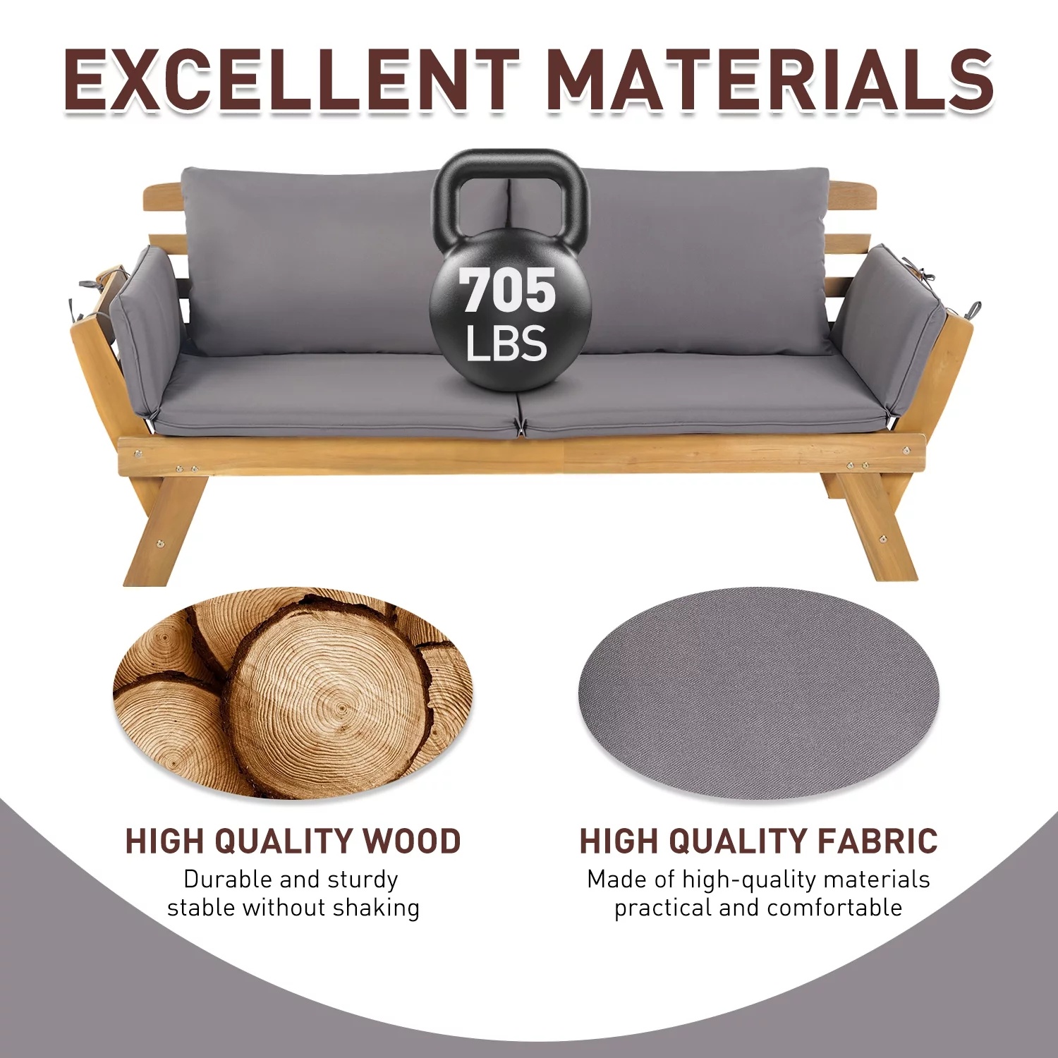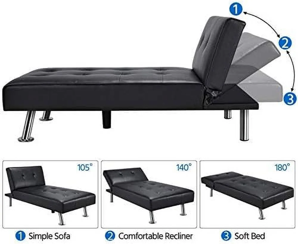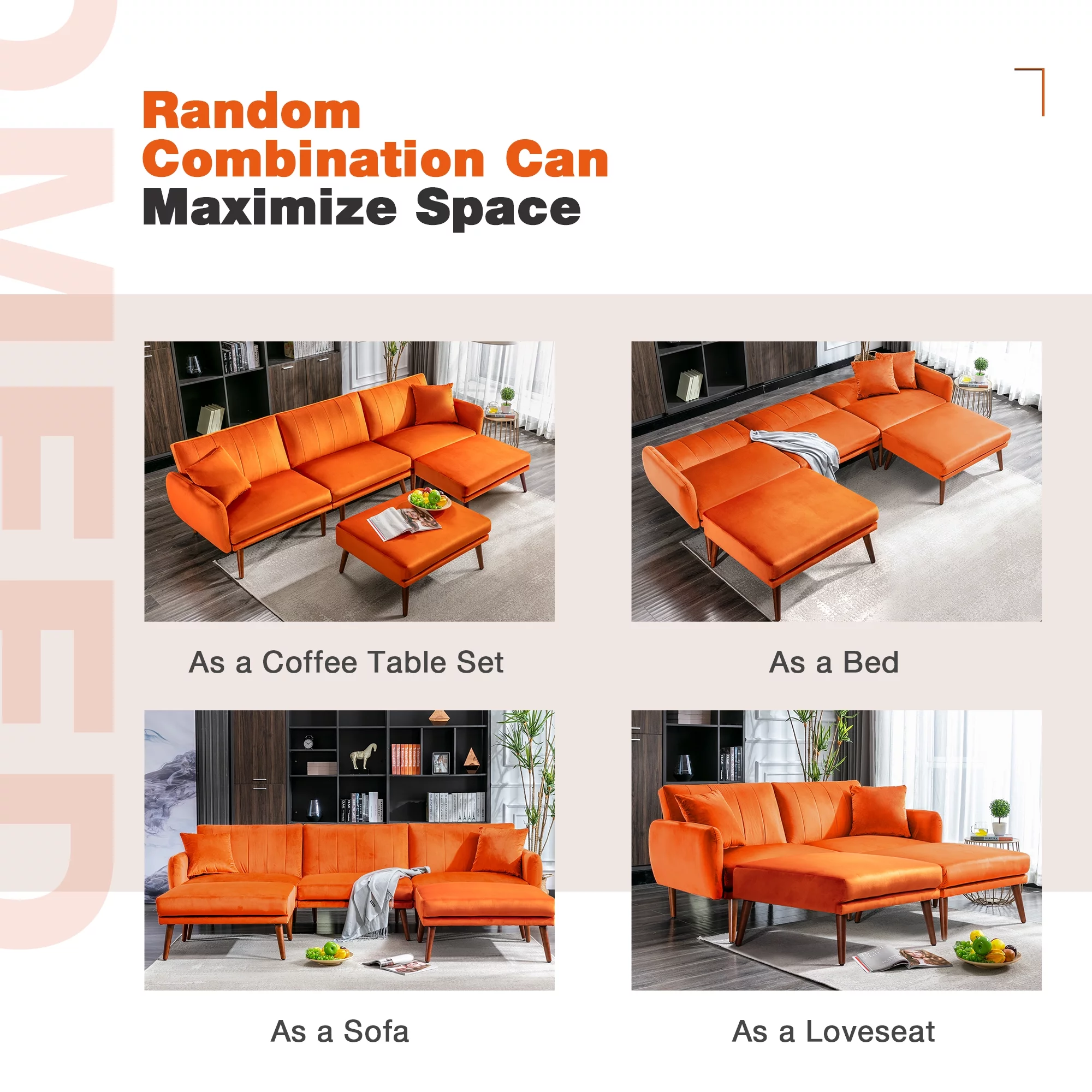 Euroco 80" Pull Out Sofa Bed L Shape Sofa with Storage Chaise and Cup Holder, Linen Fabric 3 Seater Couch, Gray