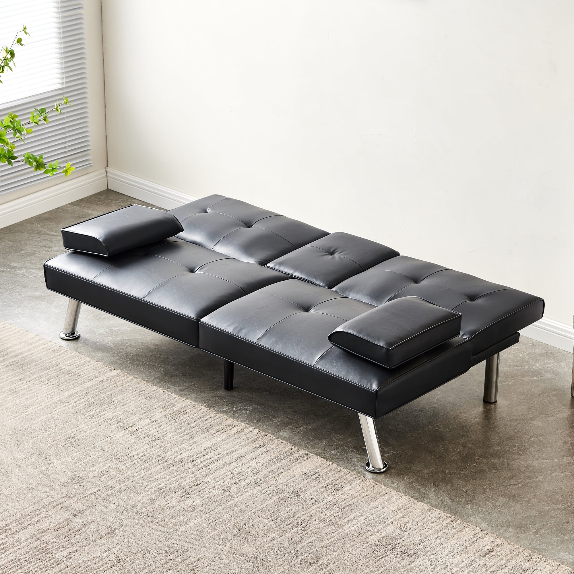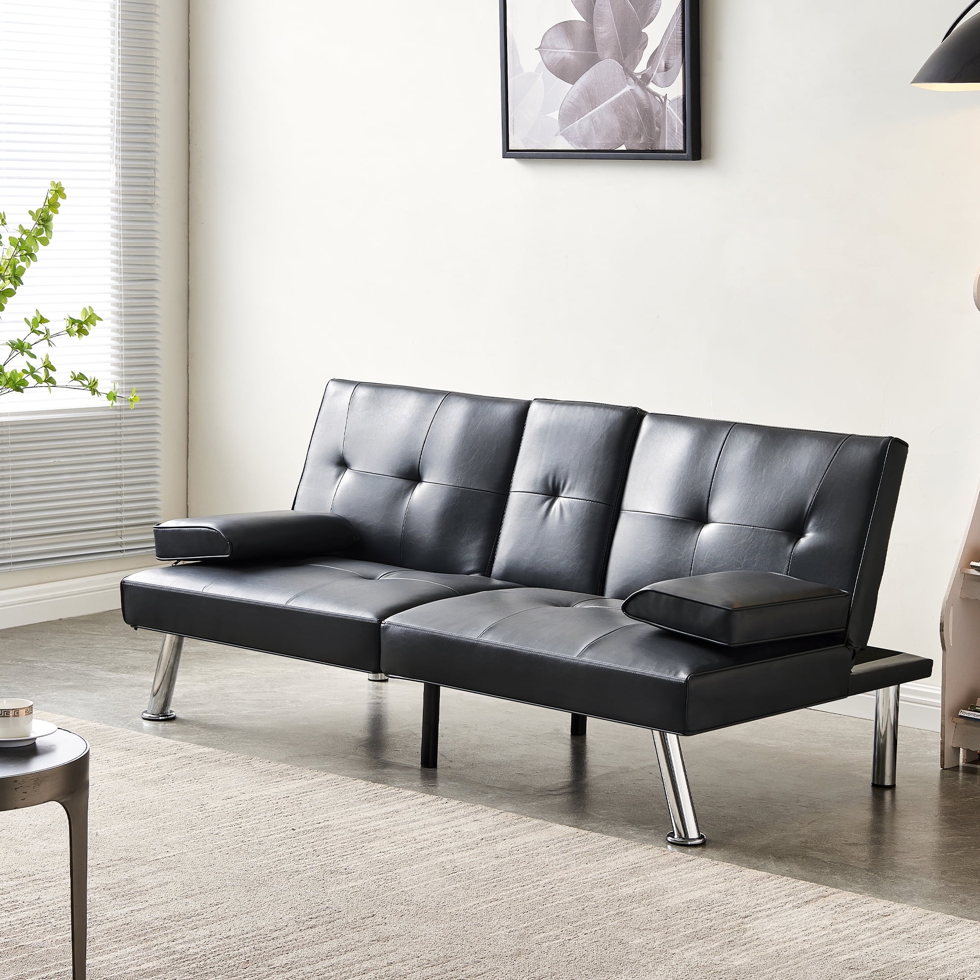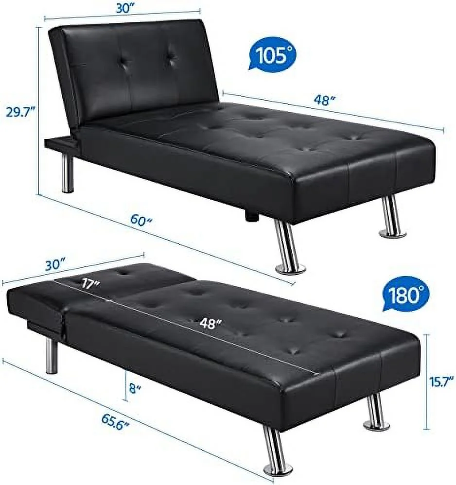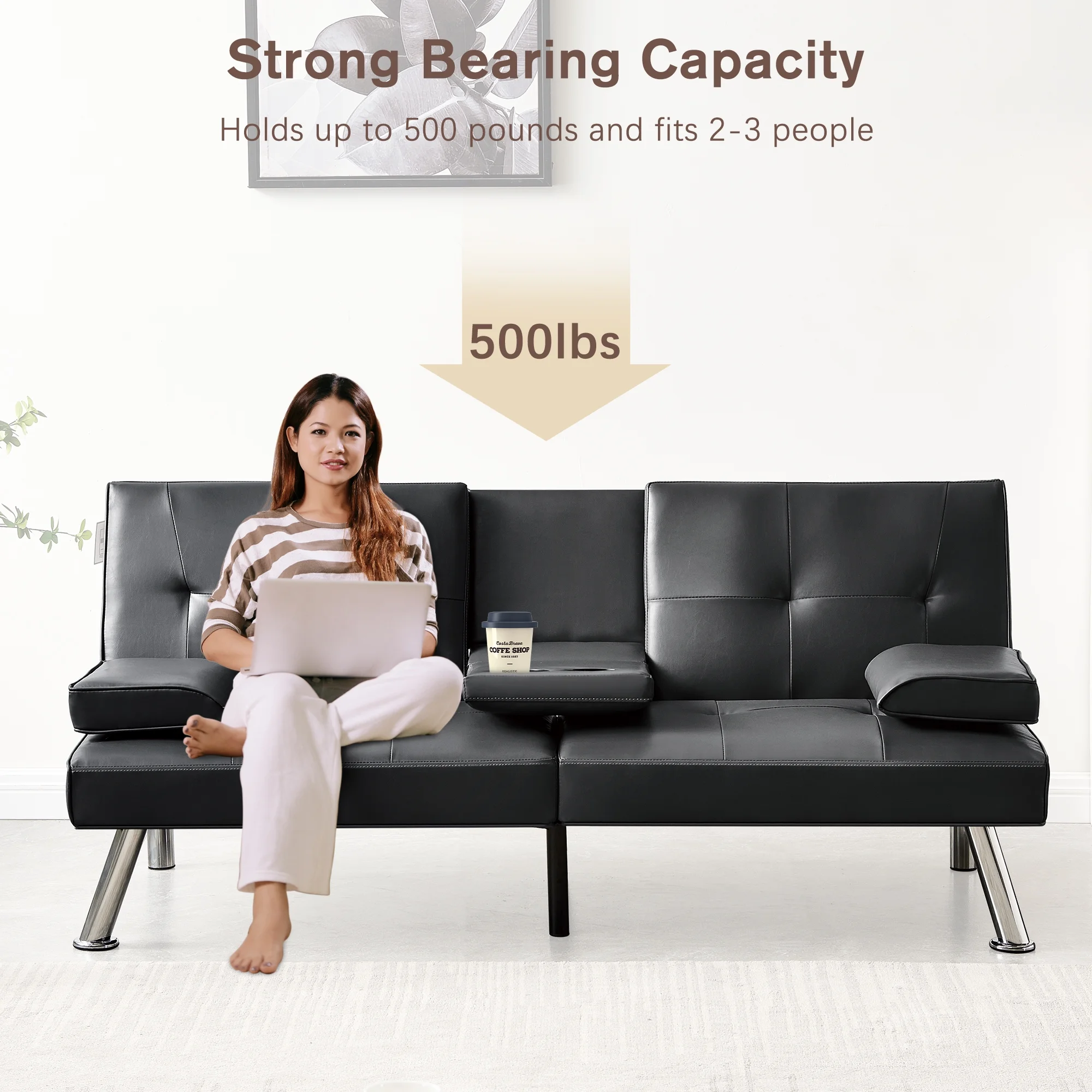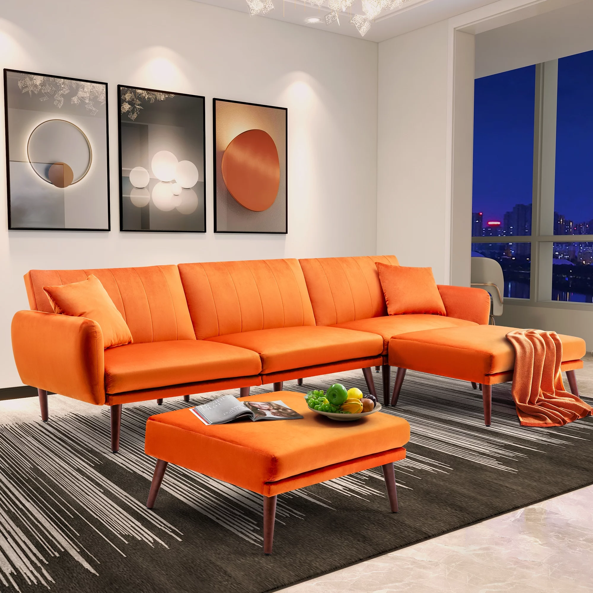 Euroco 80" Pull Out Sofa Bed L Shape Sofa with Storage Chaise and Cup Holder, Linen Fabric 3 Seater Couch, Gray