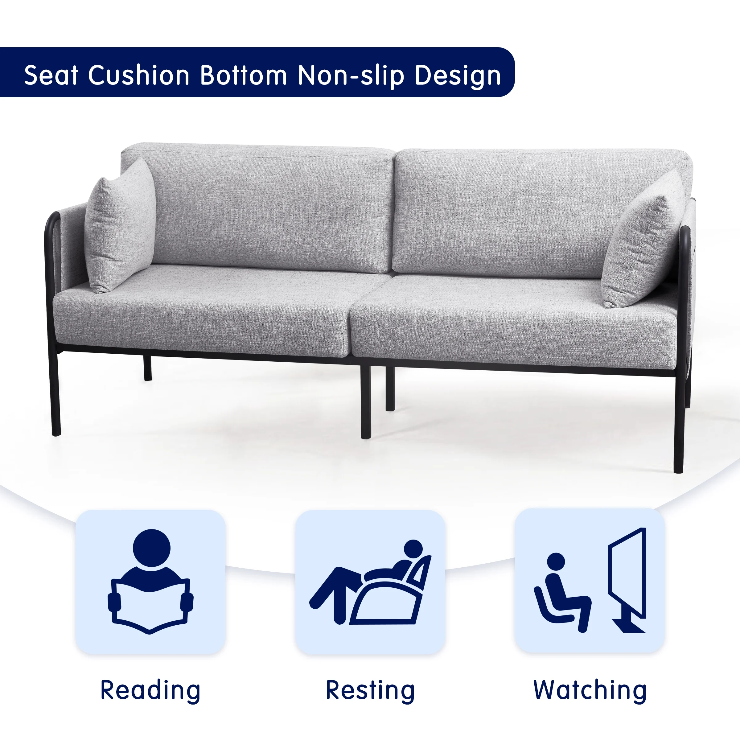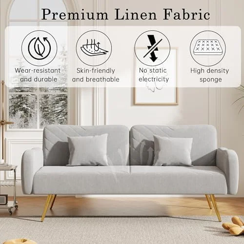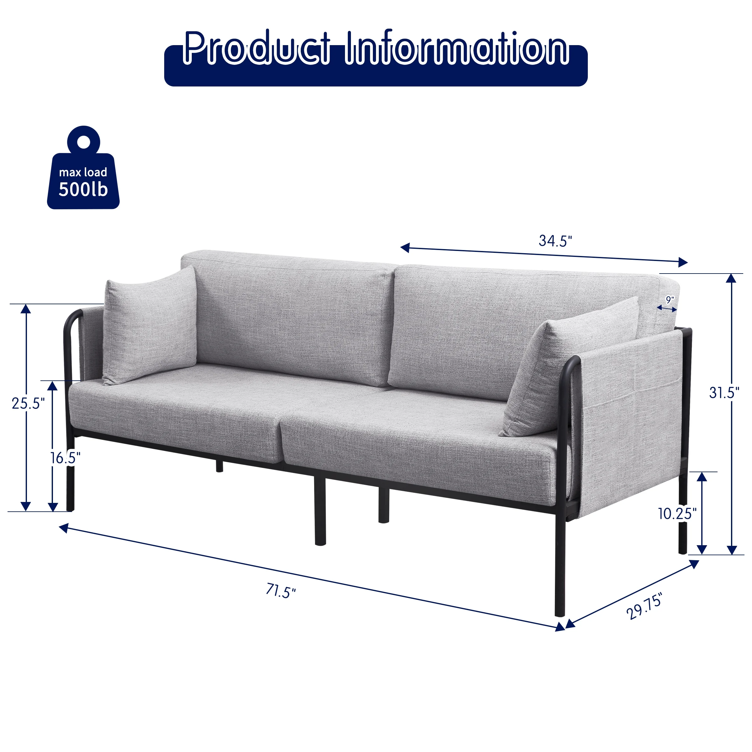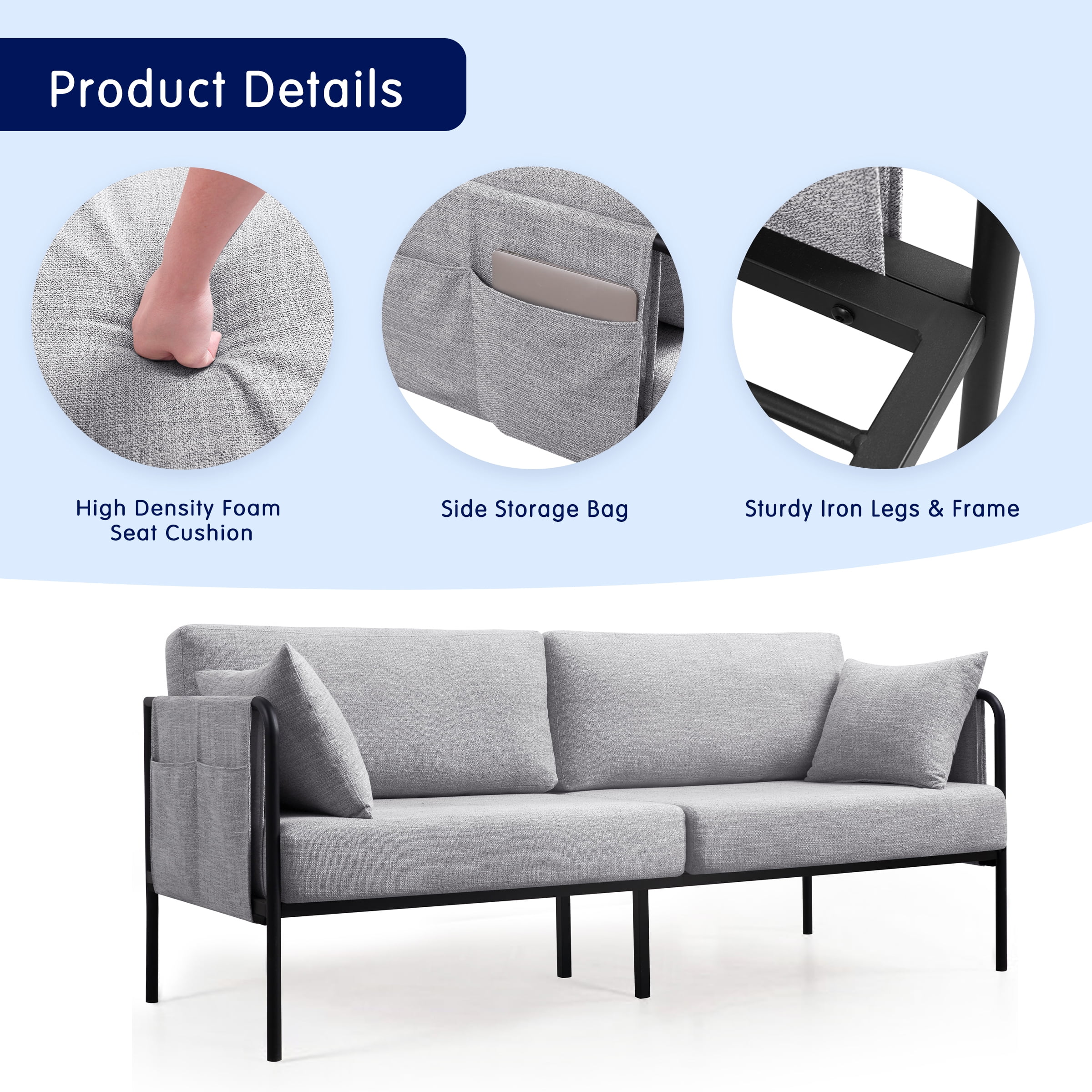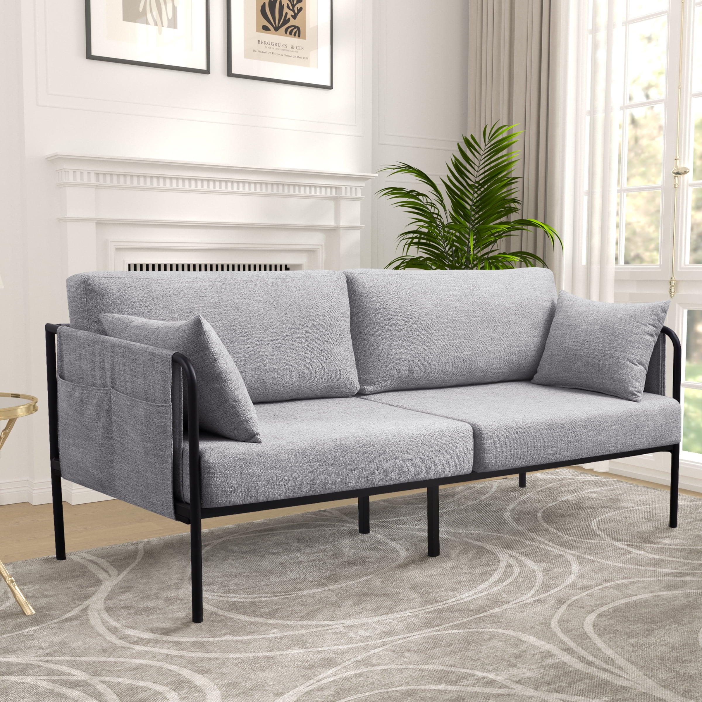Subrtex Sofa Modern Upholstered Linen Fabric Couch with Metal Arm, Gray