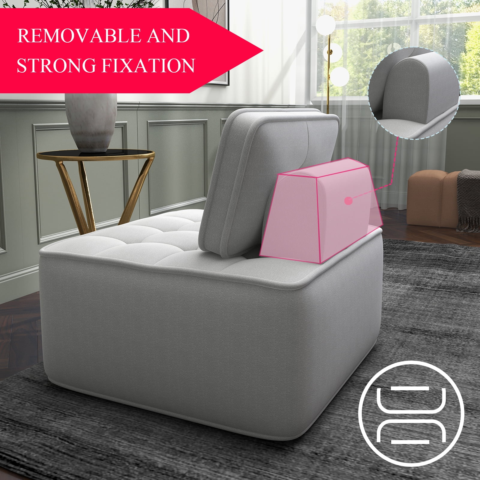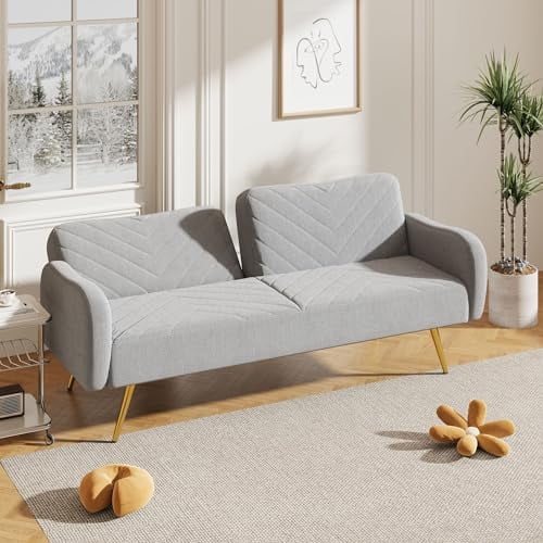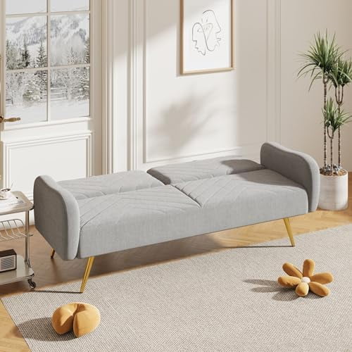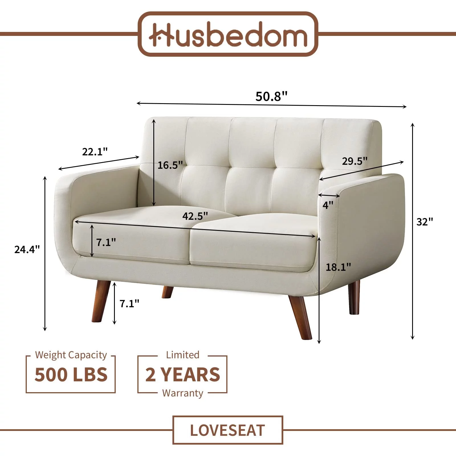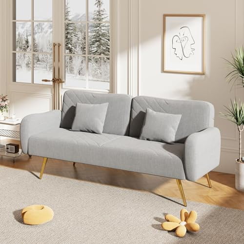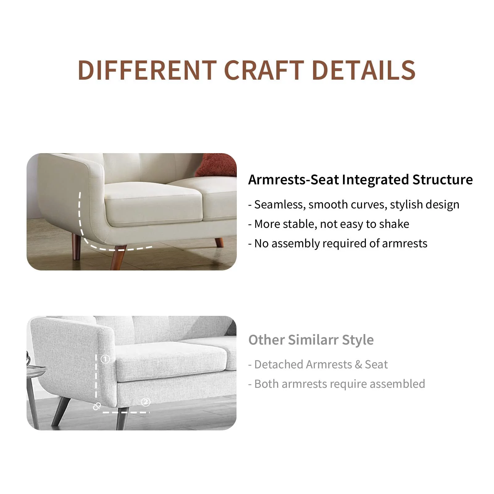 Subrtex Sofa Modern Upholstered Linen Fabric Couch with Metal Arm, Gray