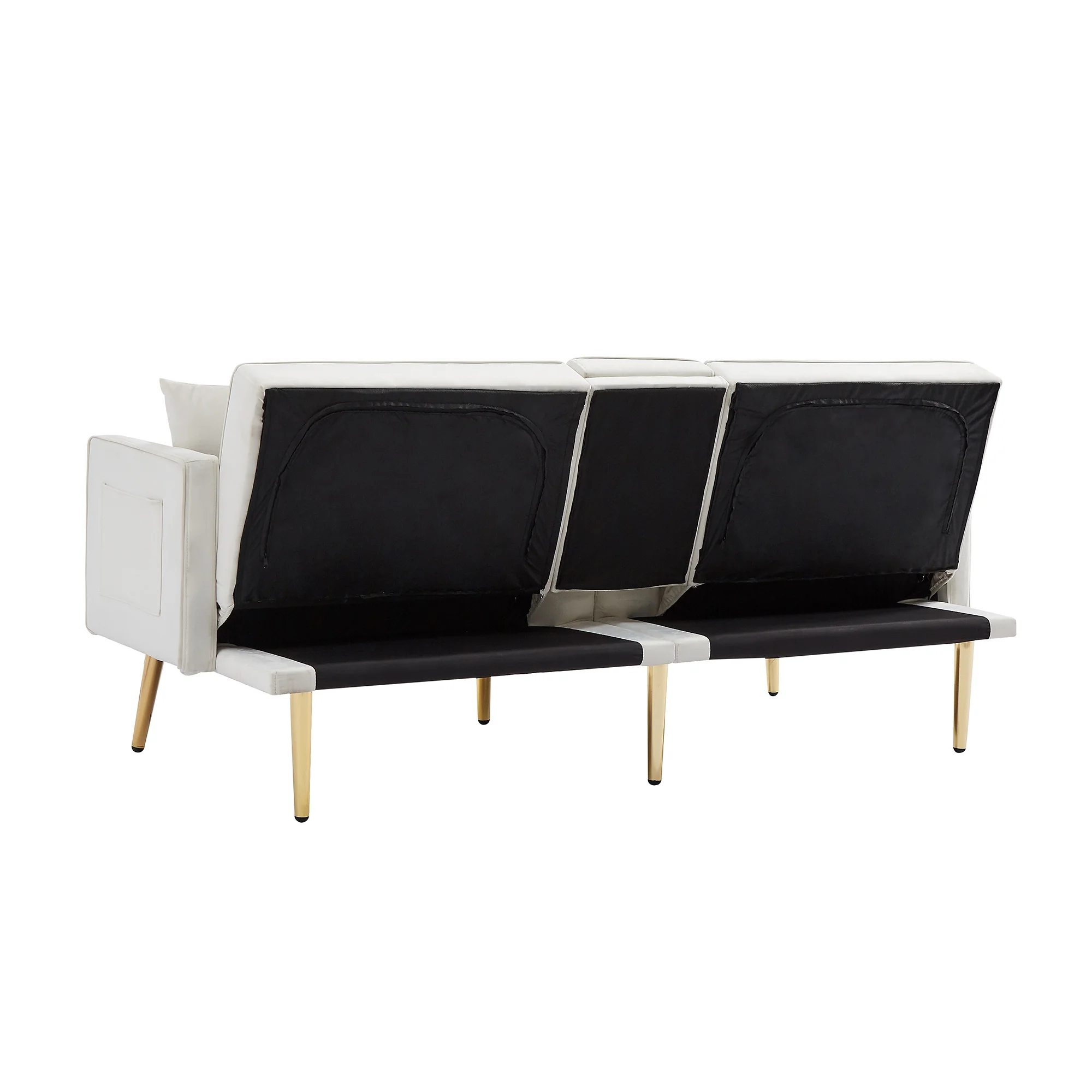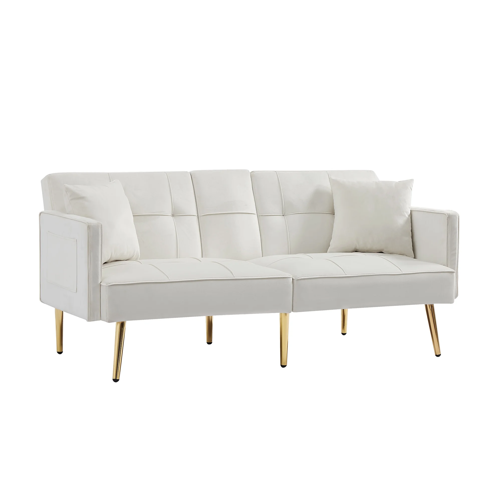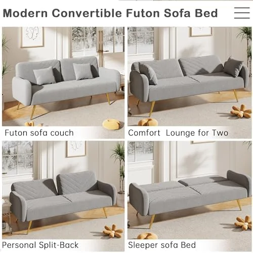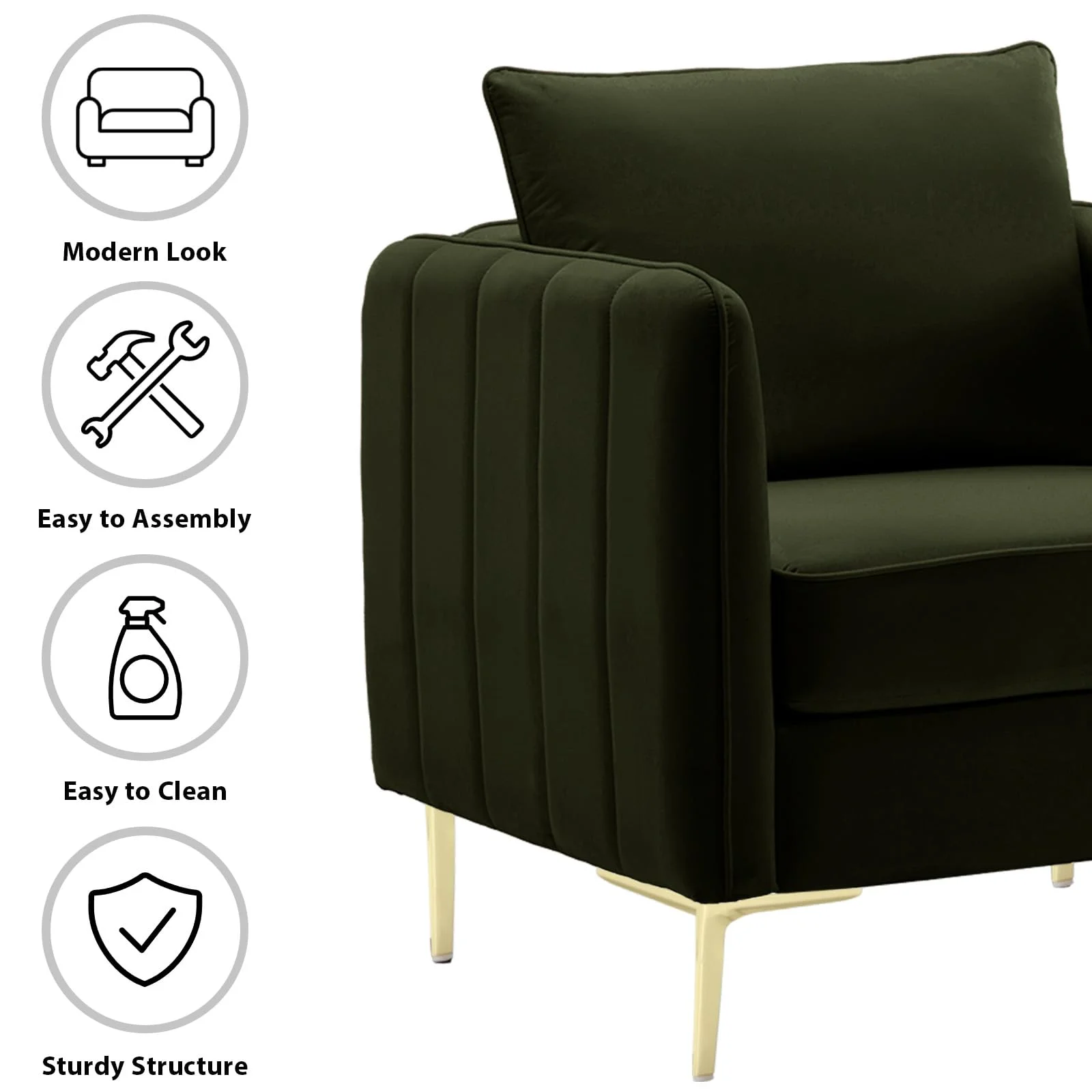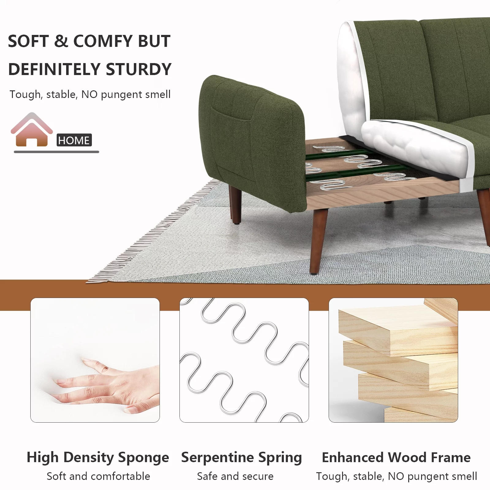 Subrtex Sofa Modern Upholstered Linen Fabric Couch with Metal Arm, Gray
