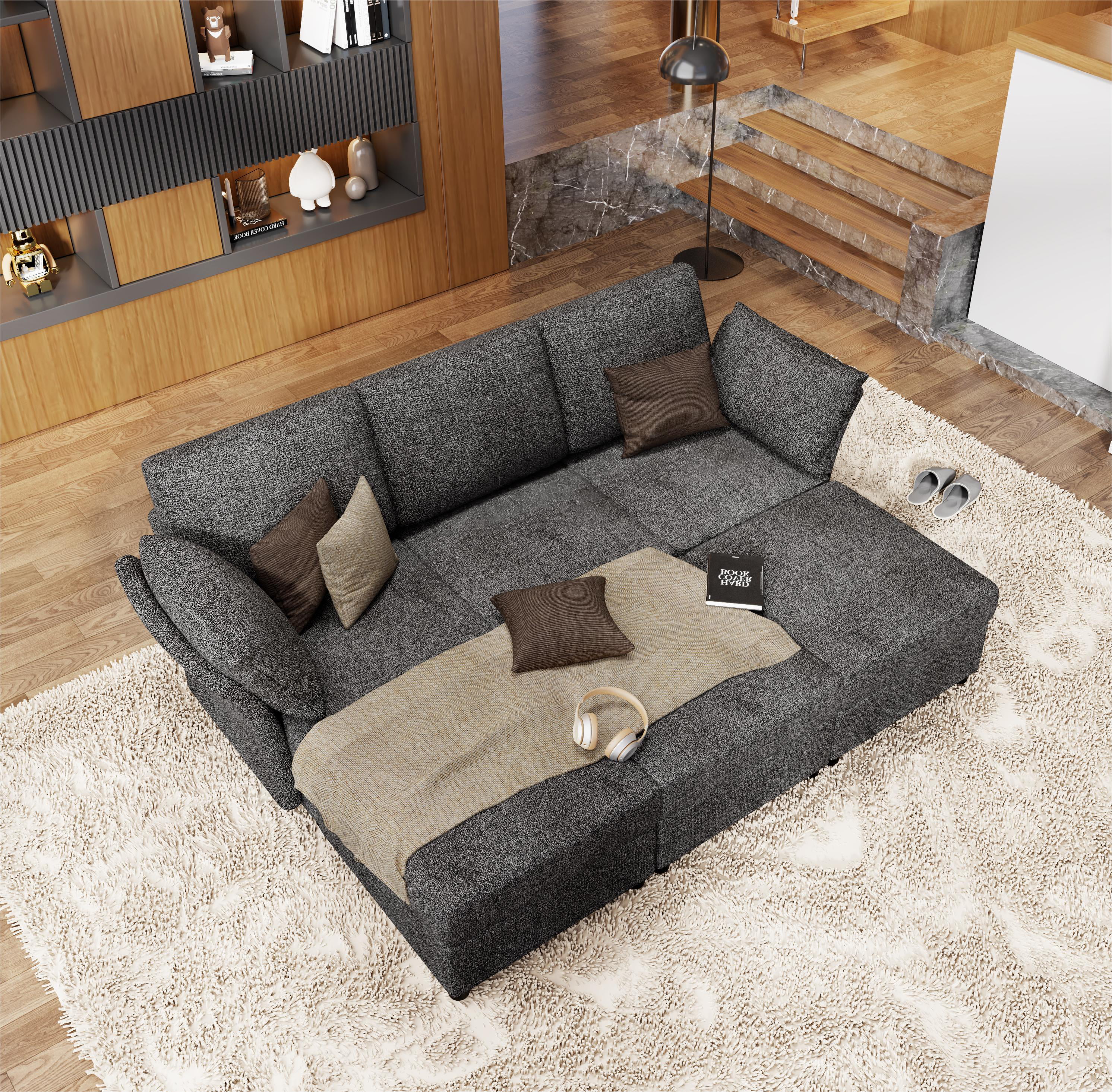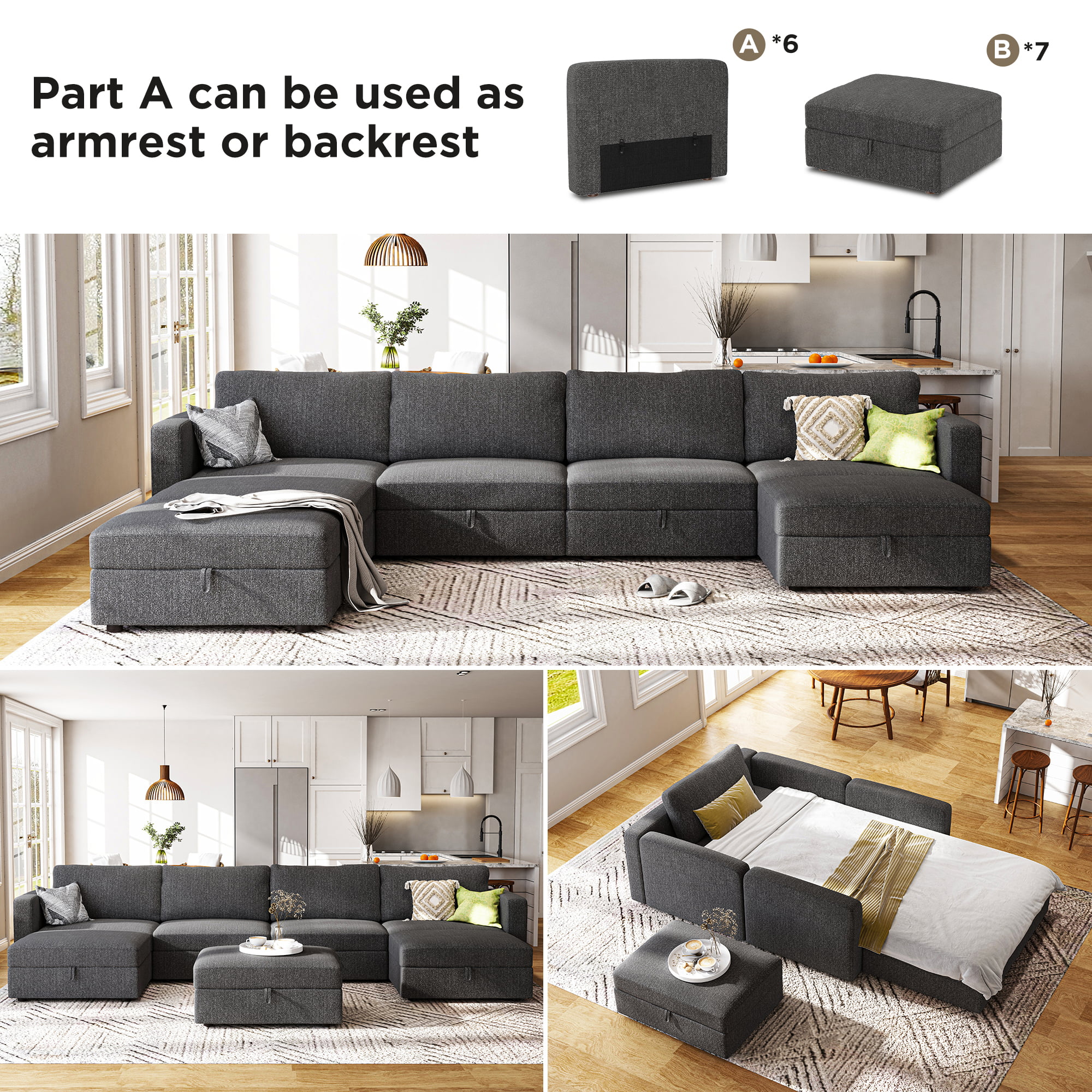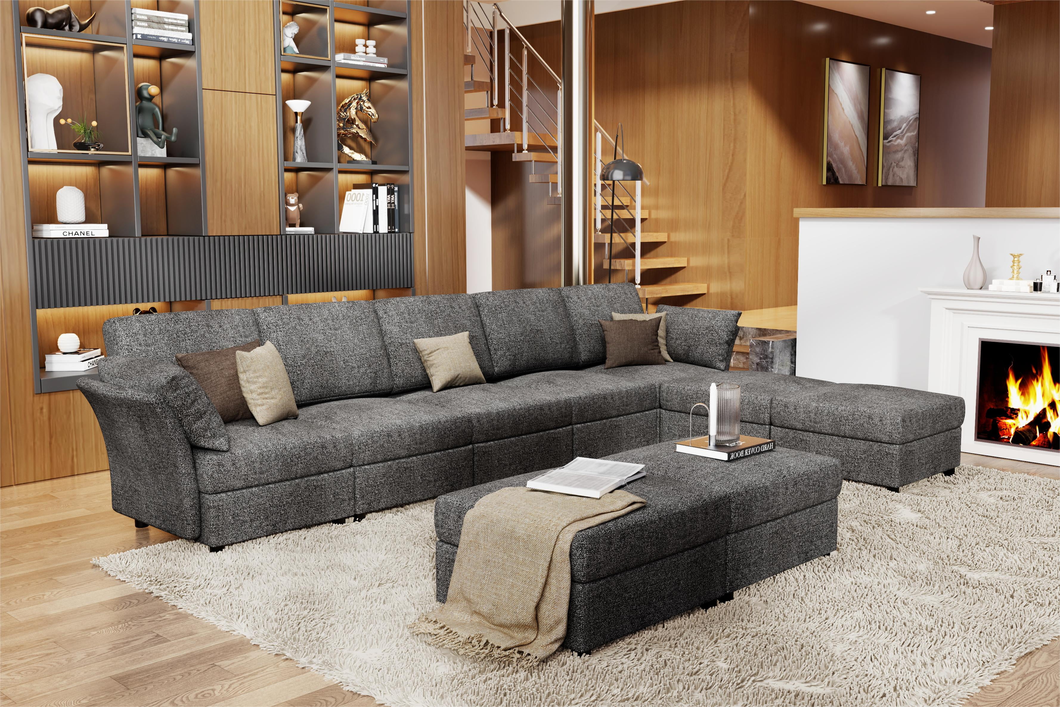 Papajet Sectional Sofa, Modular U Shaped Couch with Ottomans- 9 Seat Sofa for Living Room, Dark Grey