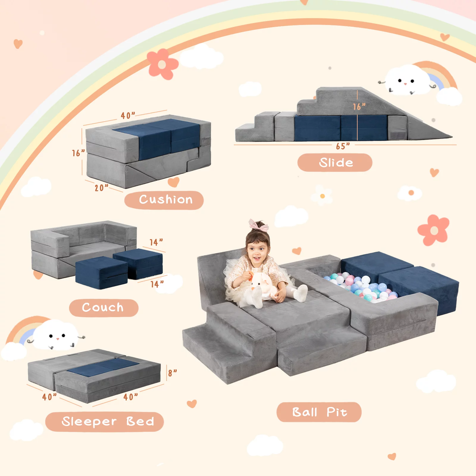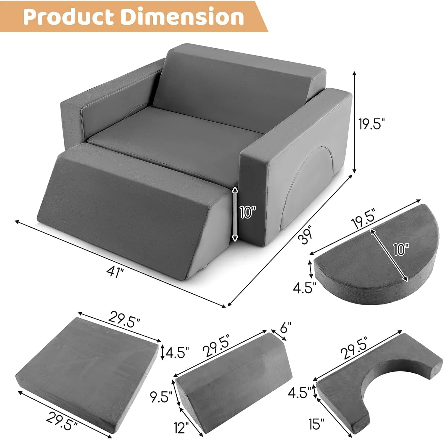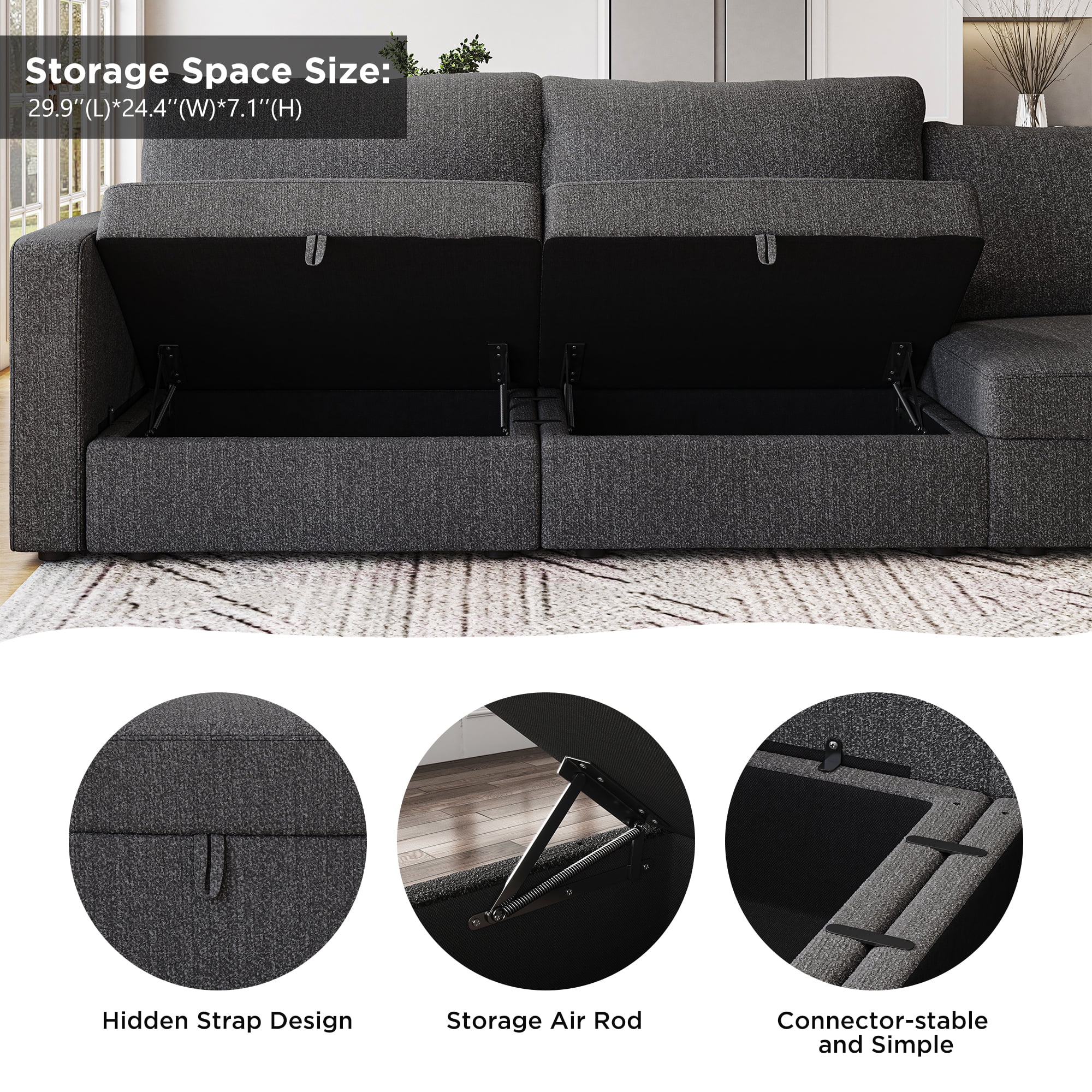 Papajet Sectional Sofa, Modular U Shaped Couch with Ottomans- 9 Seat Sofa for Living Room, Dark Grey