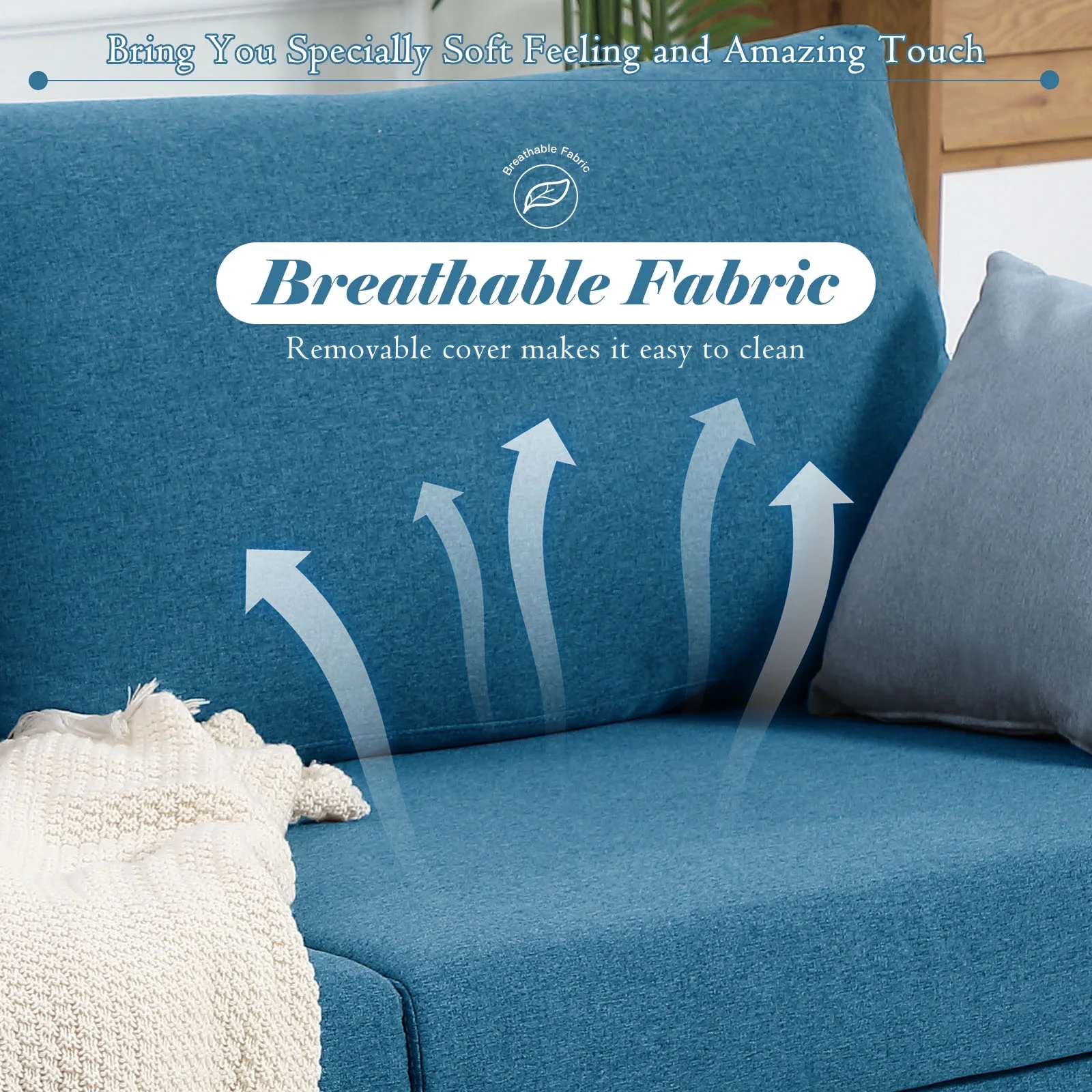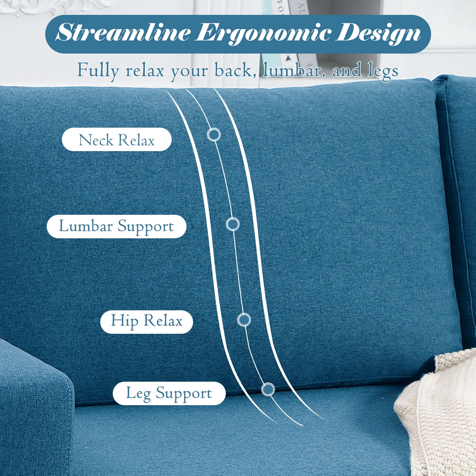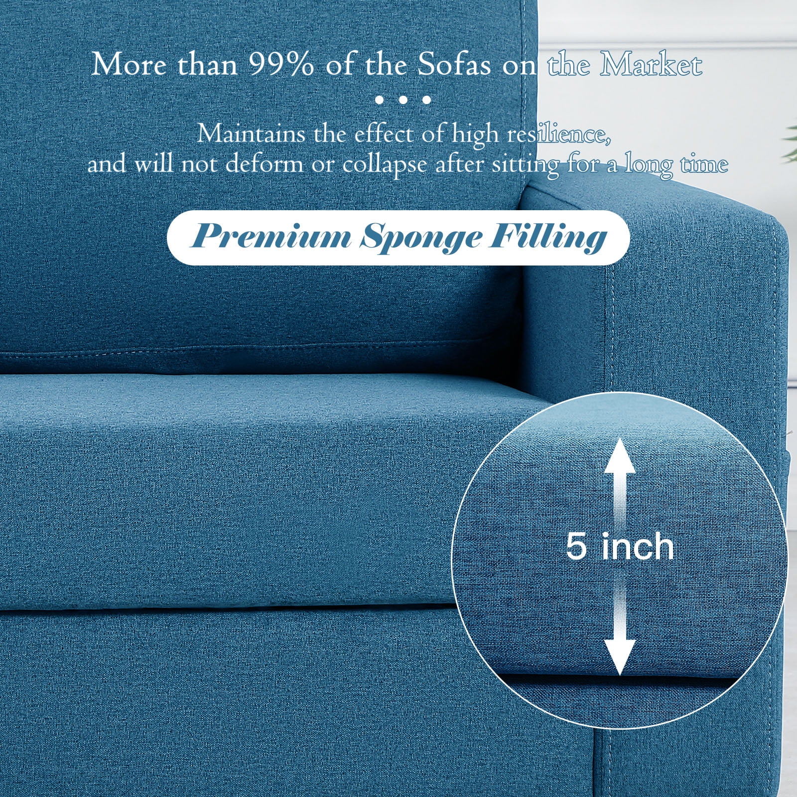 YODOLLA 79" Sectional Sofa Modern Loveseat Couch 3 Seater Fabric Living Room Furniture - Blue