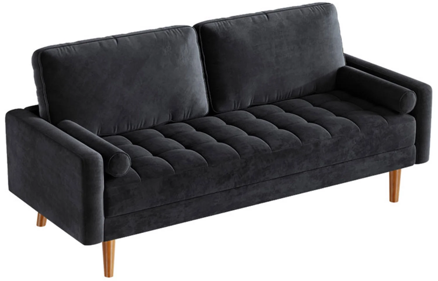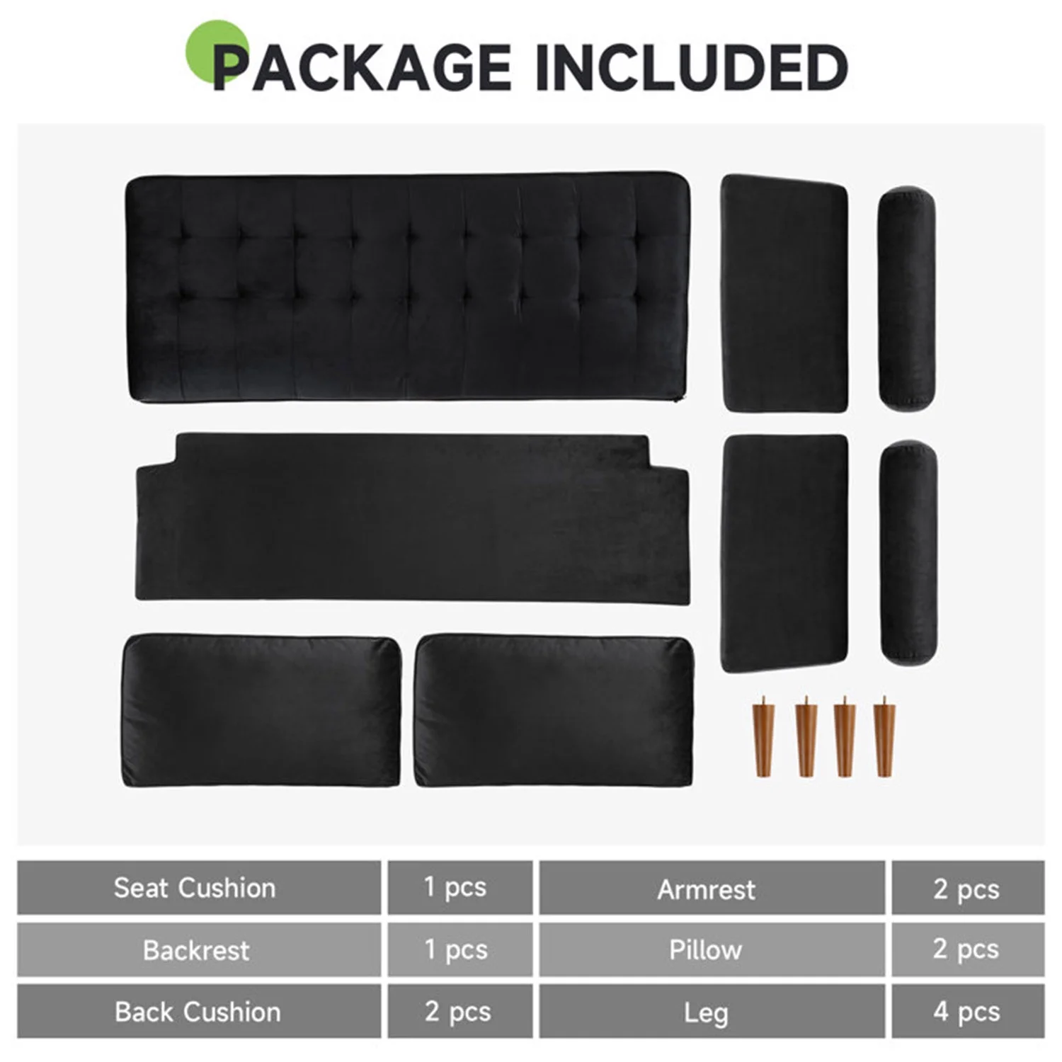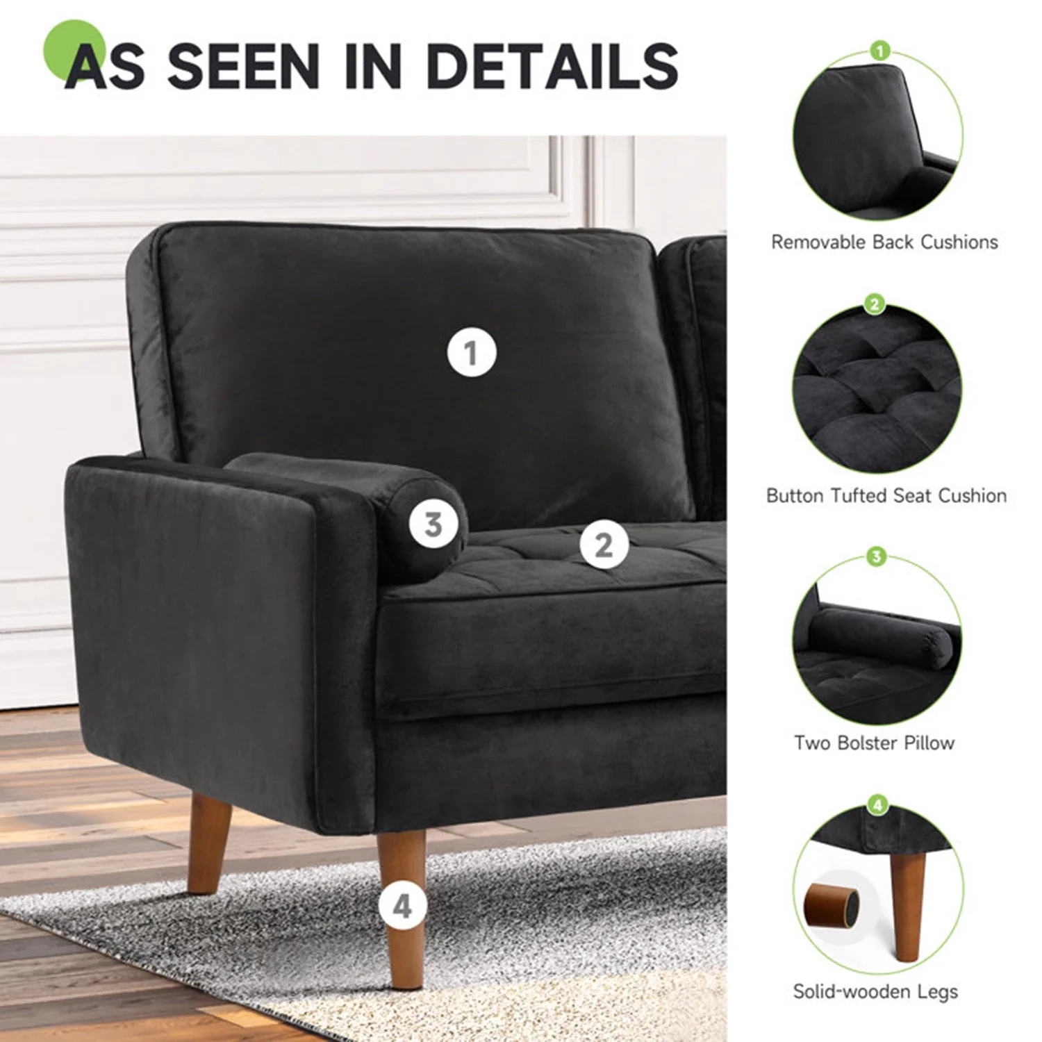 59" Velvet Loveseat,Neche 2 Seater Sofa Modern Upholstered Sofa Couch with 2 Pillows,Black