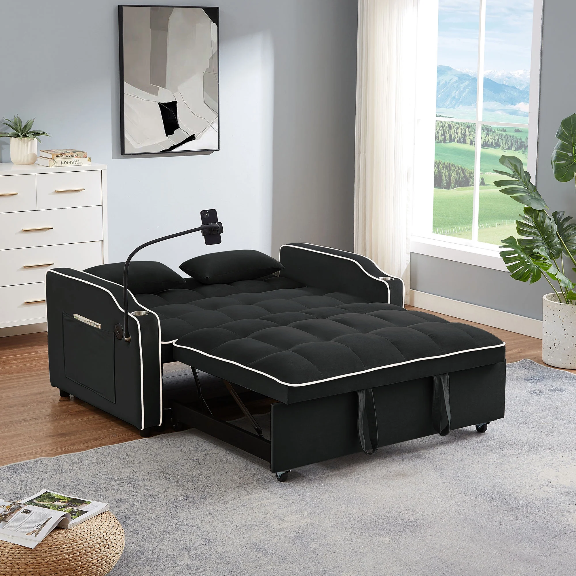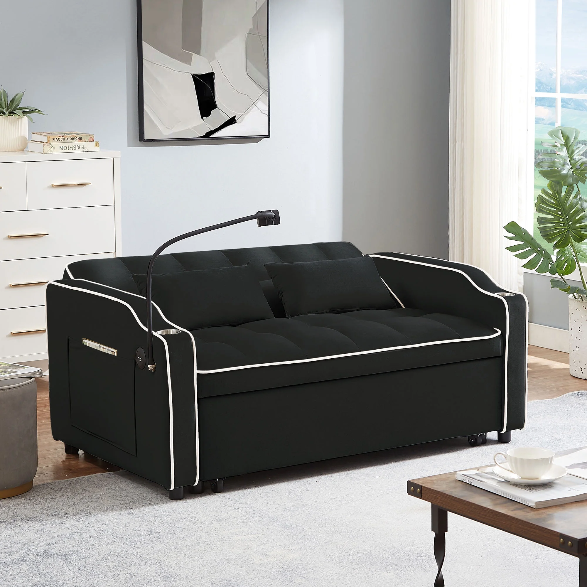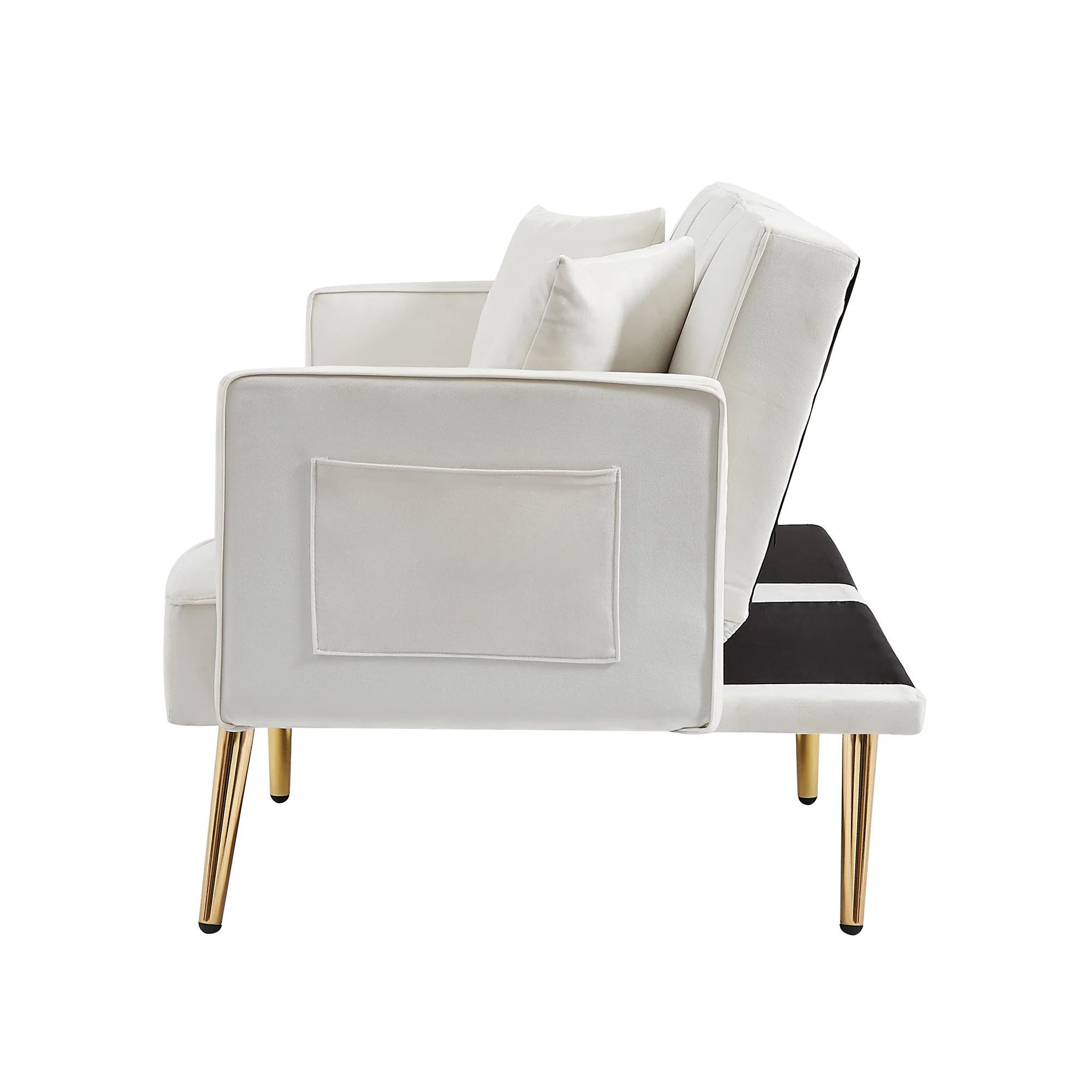 59" Velvet Loveseat,Neche 2 Seater Sofa Modern Upholstered Sofa Couch with 2 Pillows,Black