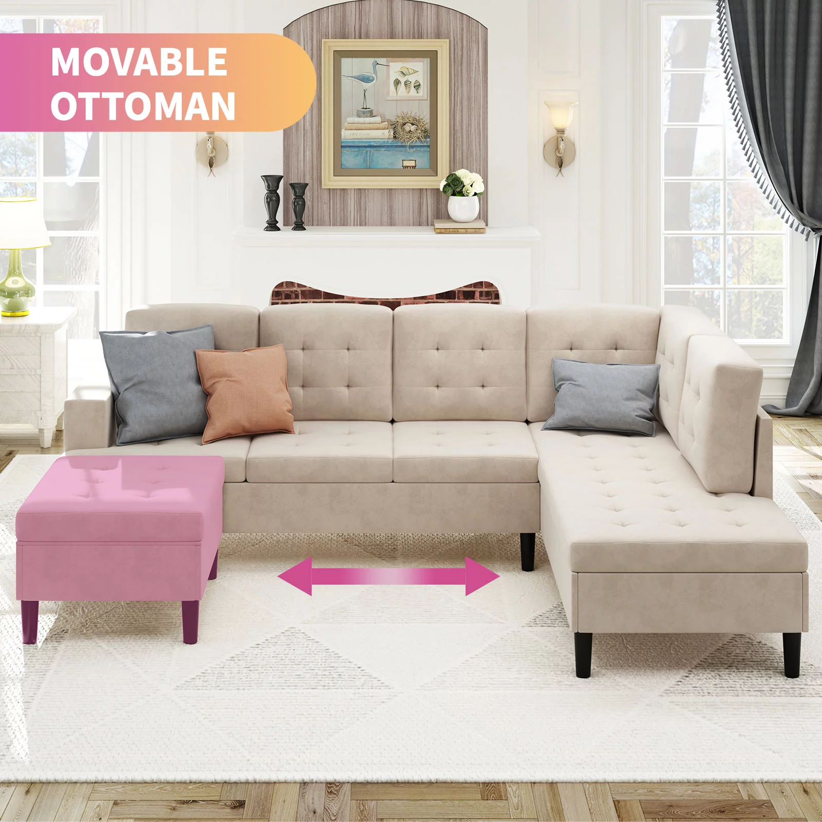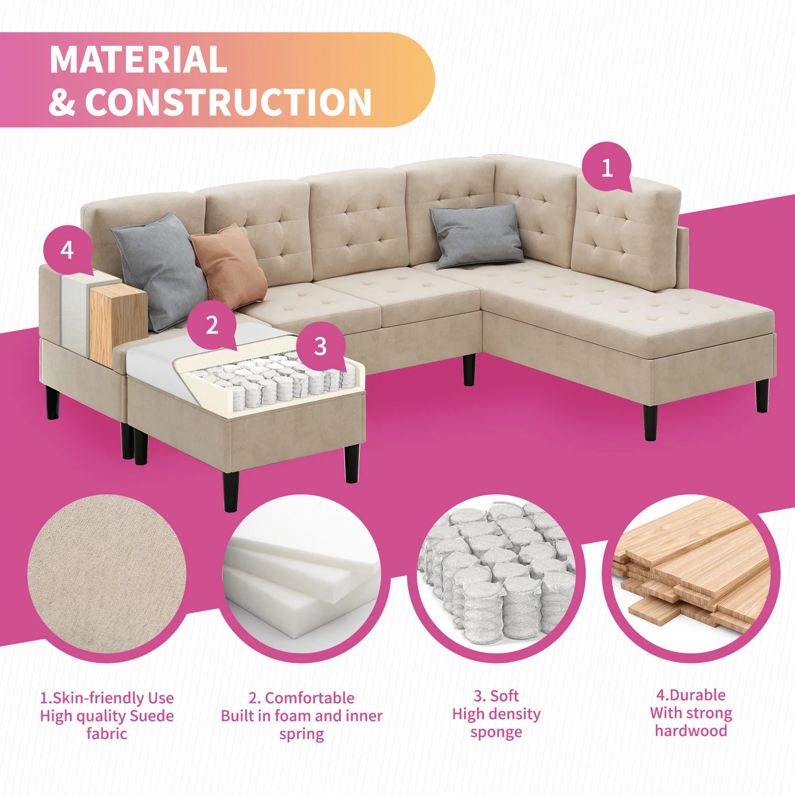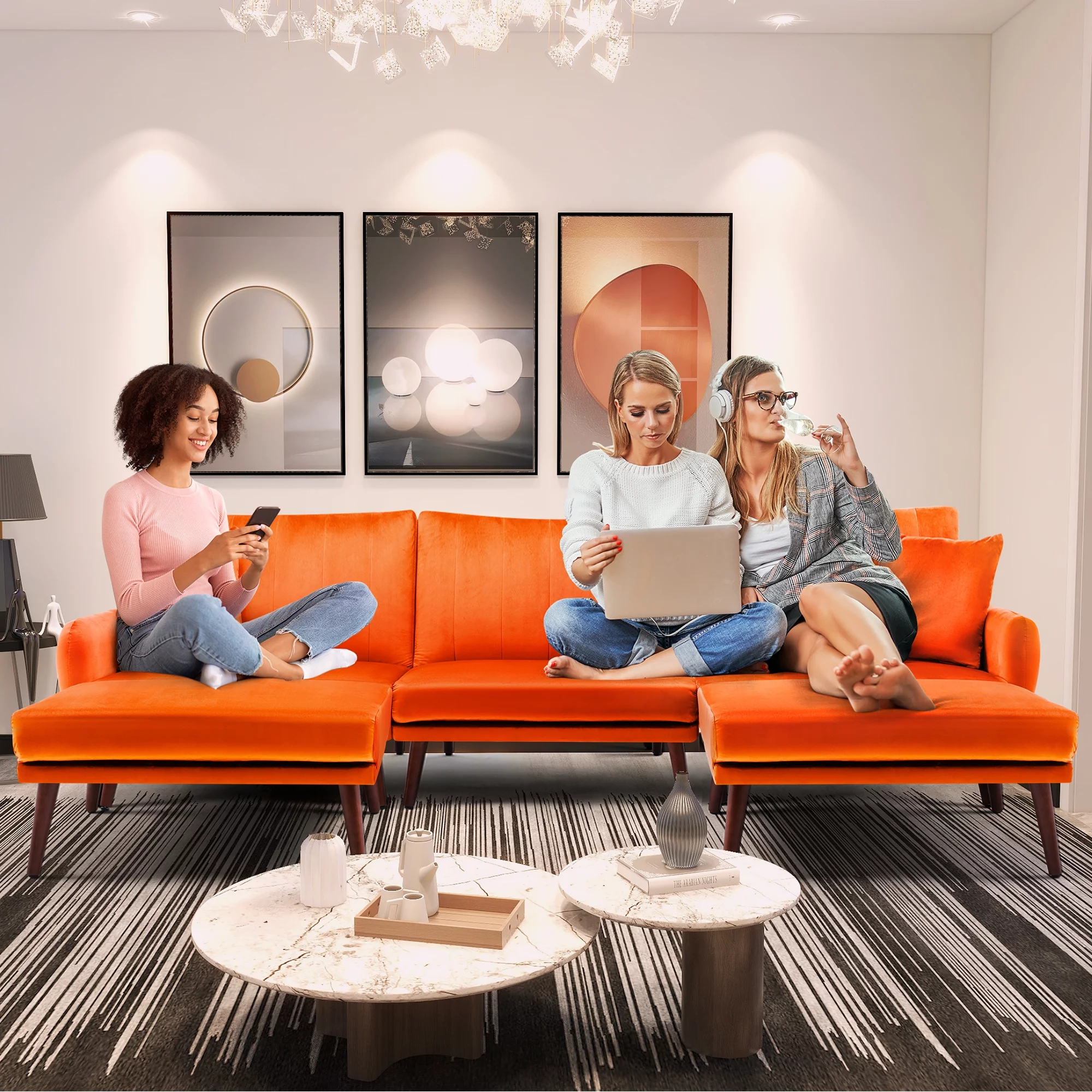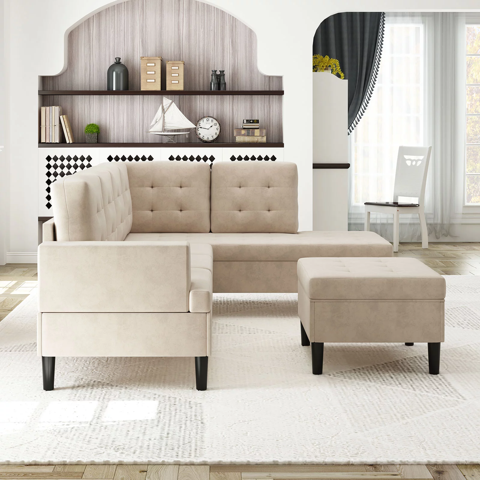 Futzca Sectional Sofa Couch, 3 Seat L Shaped Sofa with Removable Pillows Dark Grey