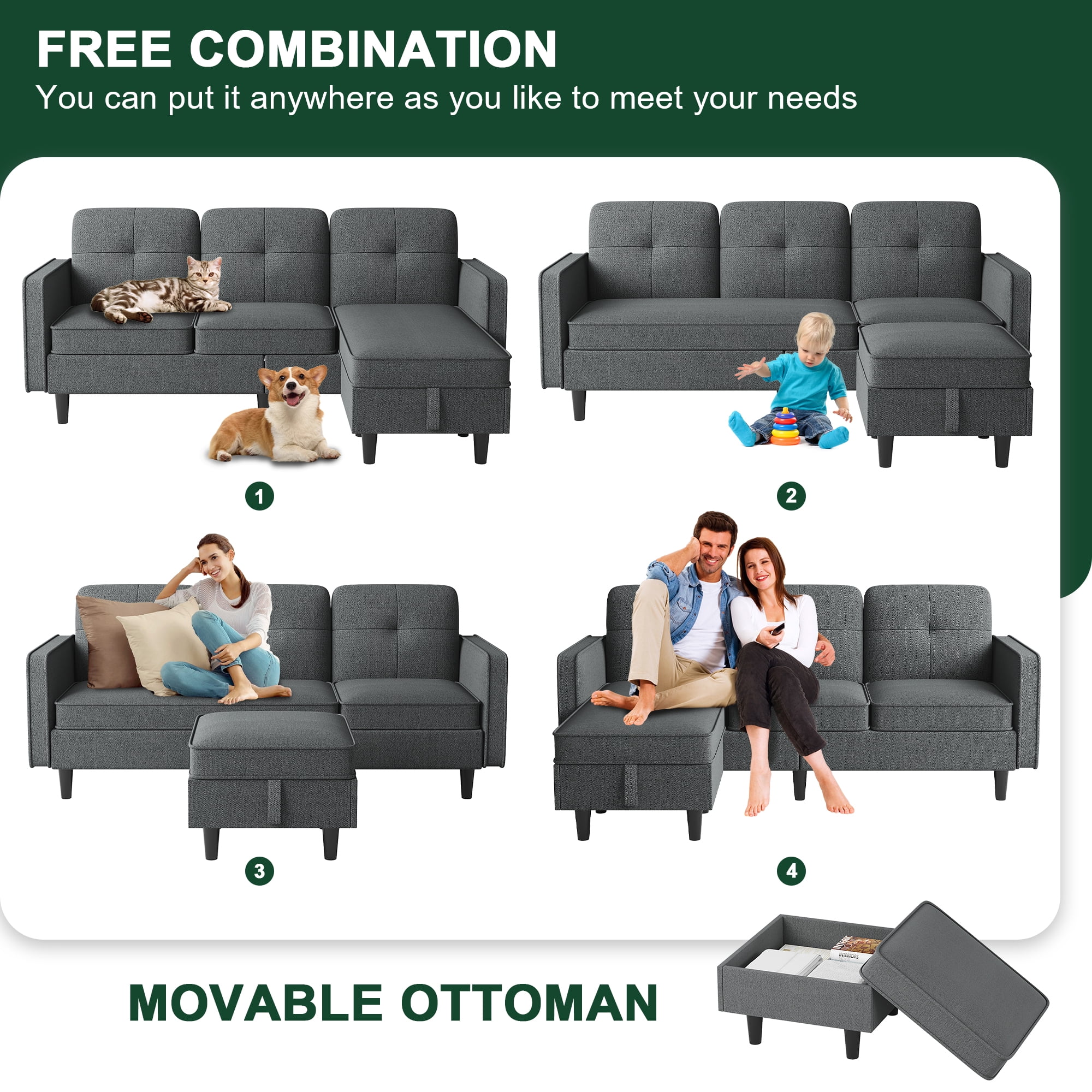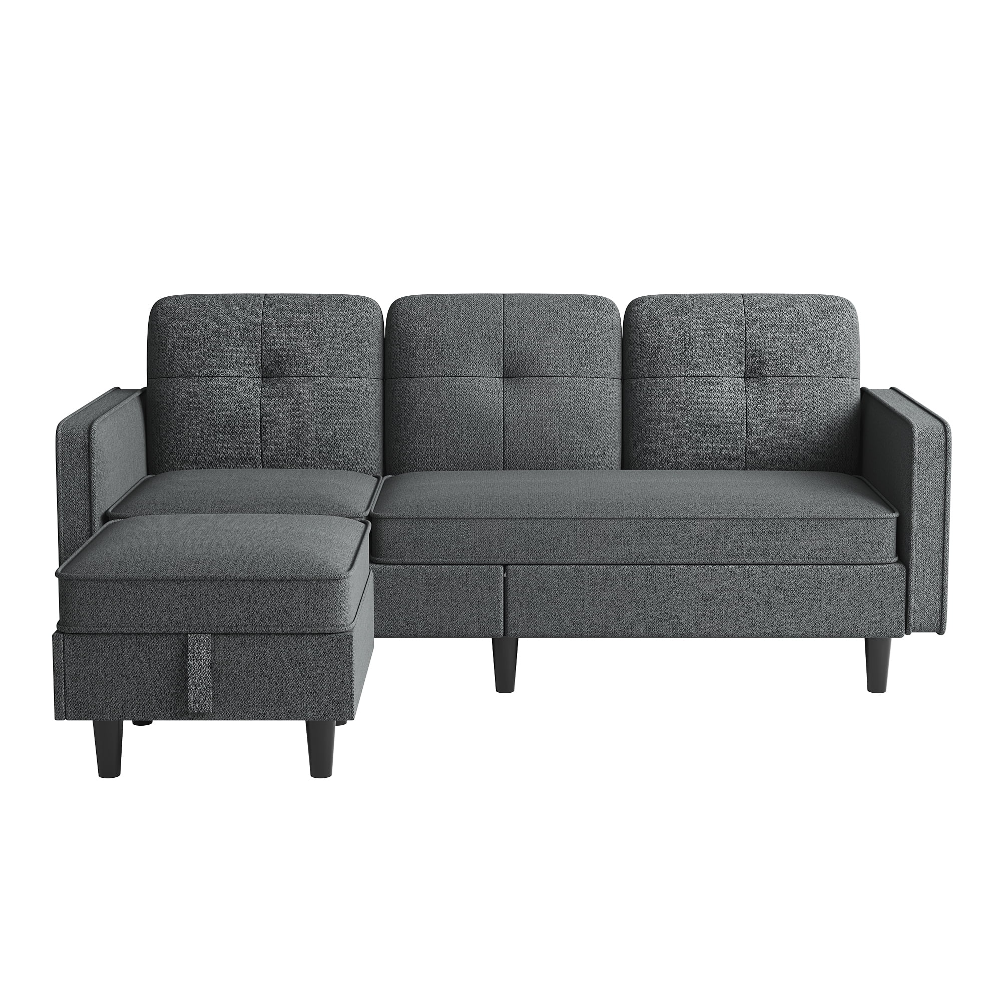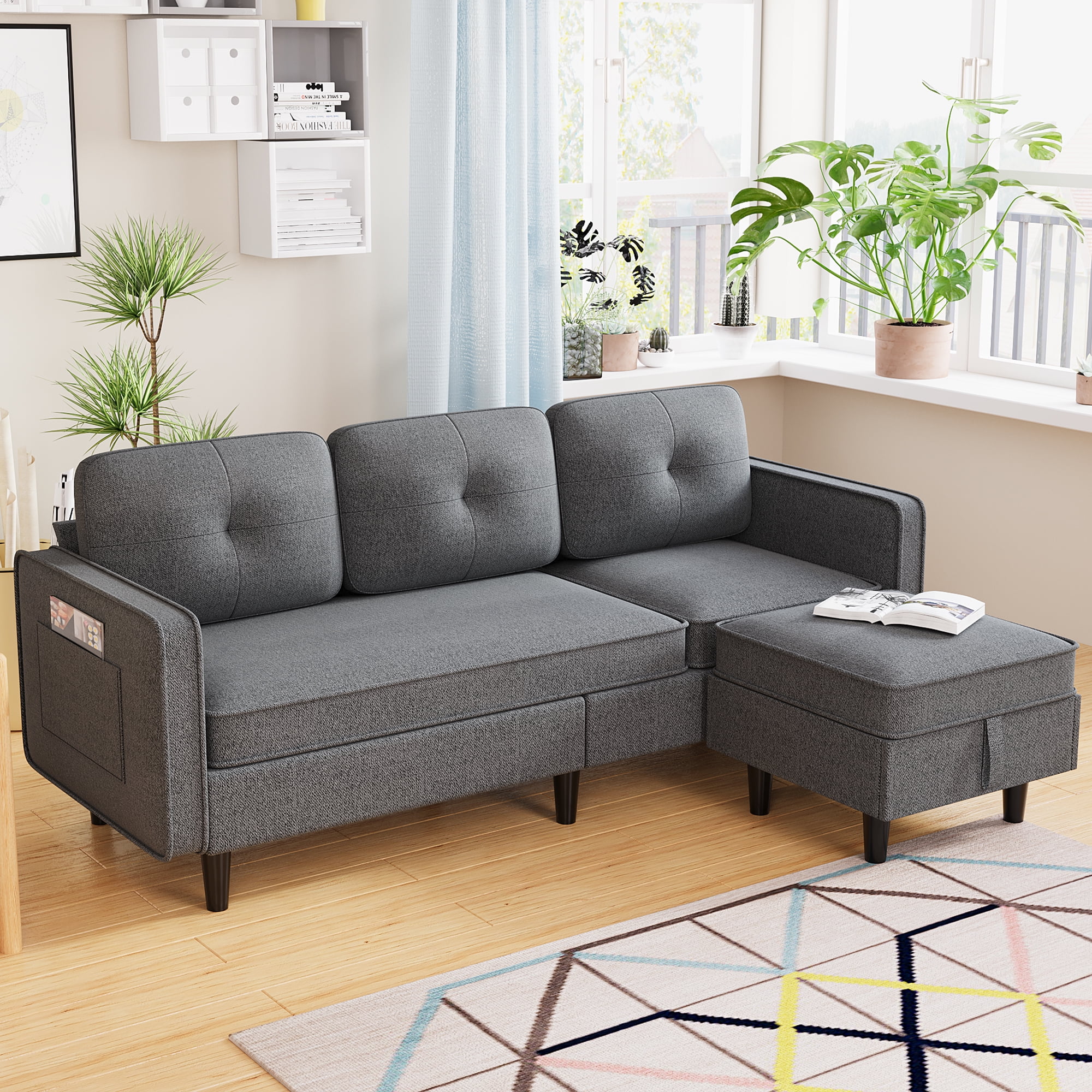 HONBAY Convertible Sectional Sofa Couch, L-Shaped Couch with Modern Linen Fabric for Small Space Dark Grey