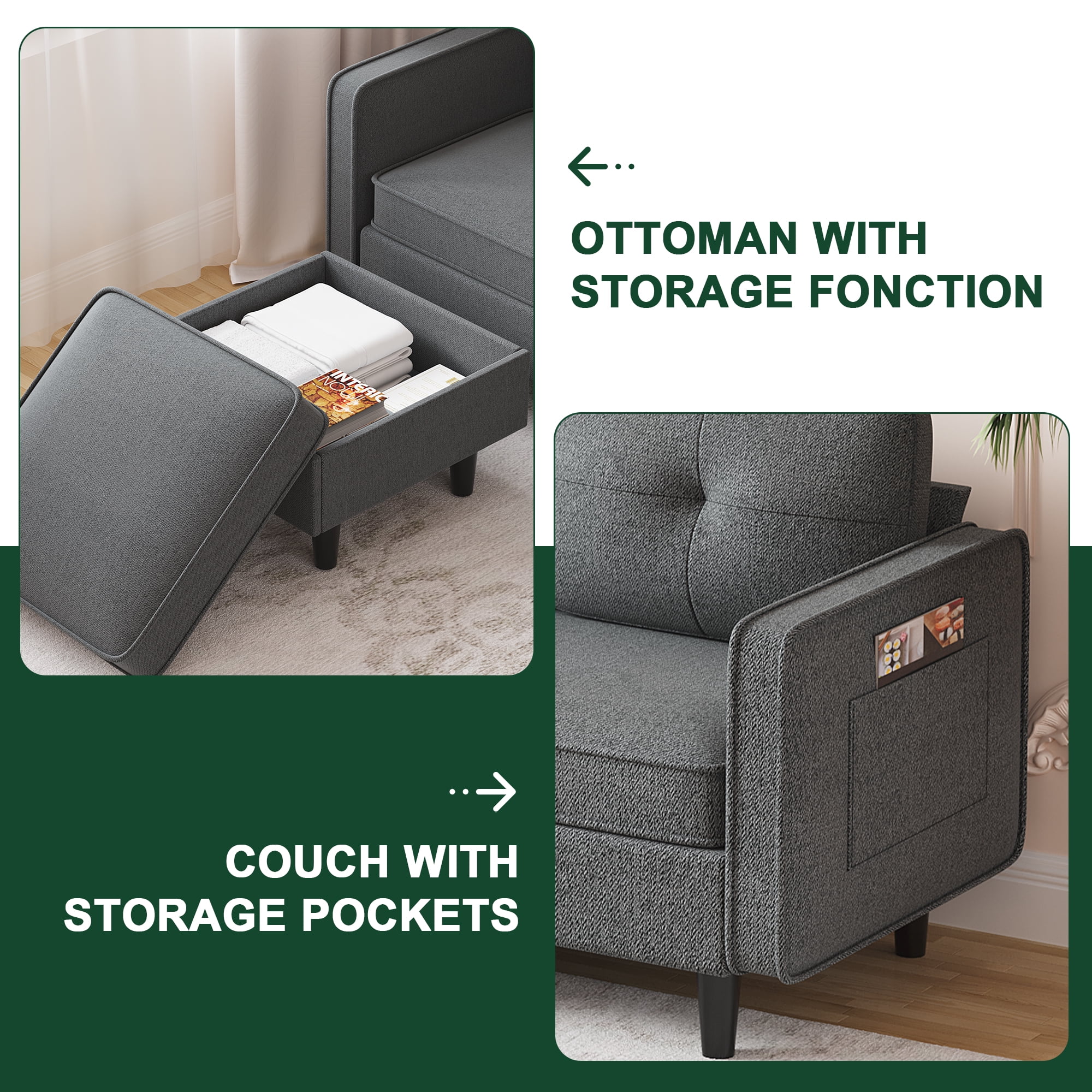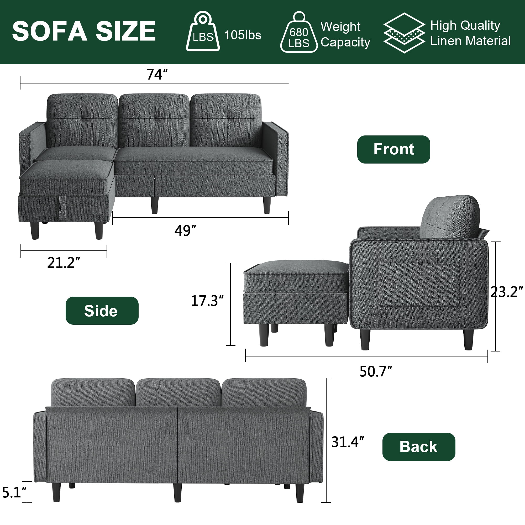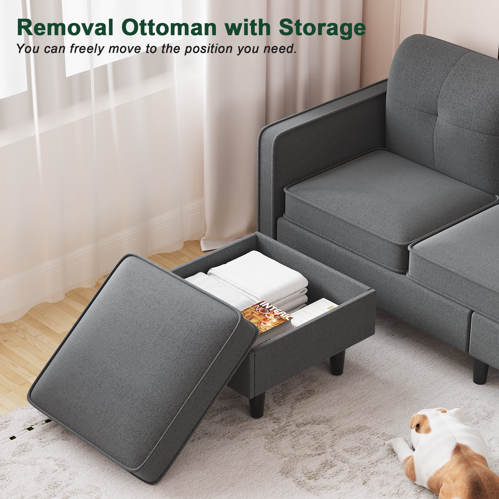 HONBAY Convertible Sectional Sofa Couch, L-Shaped Couch with Modern Linen Fabric for Small Space Dark Grey