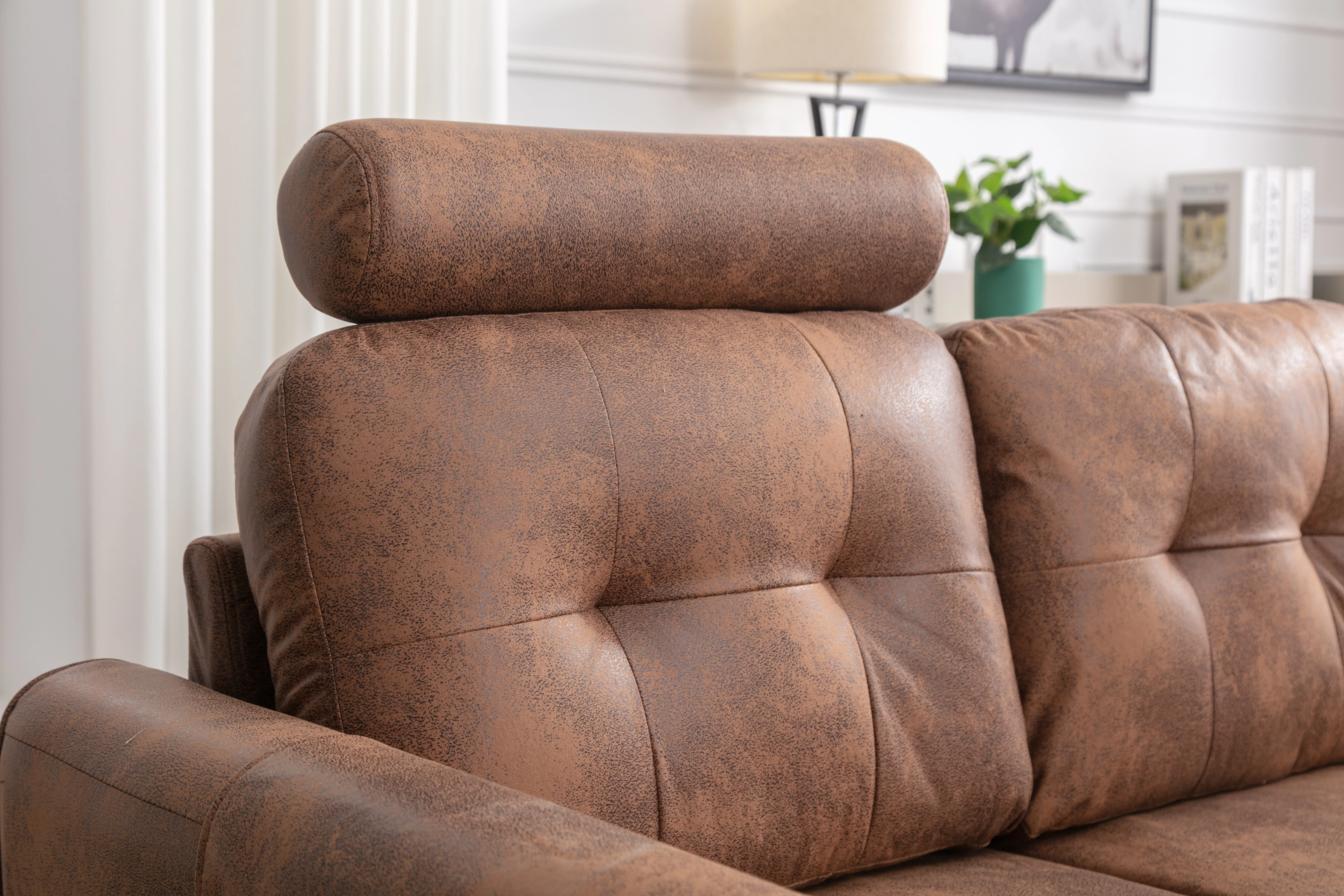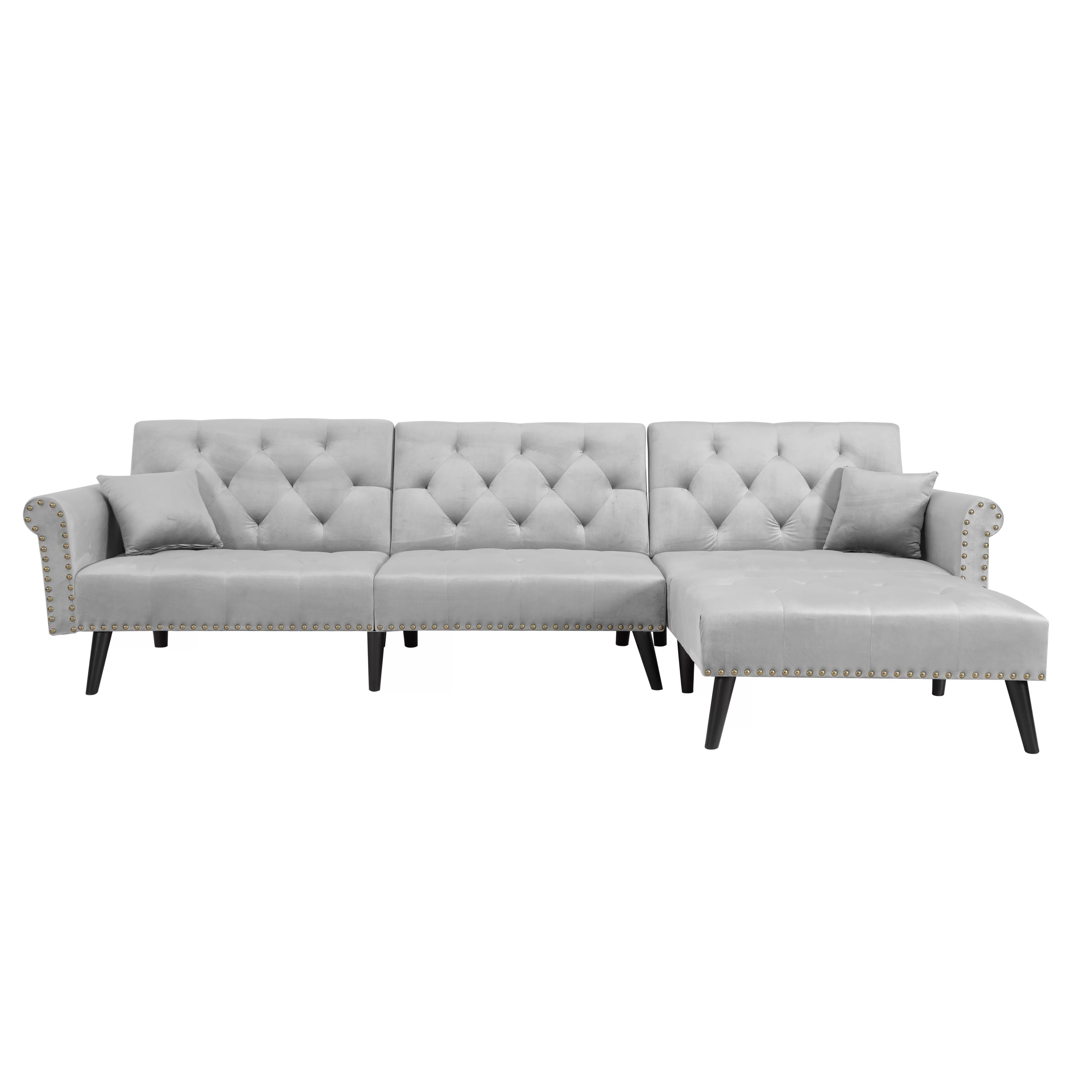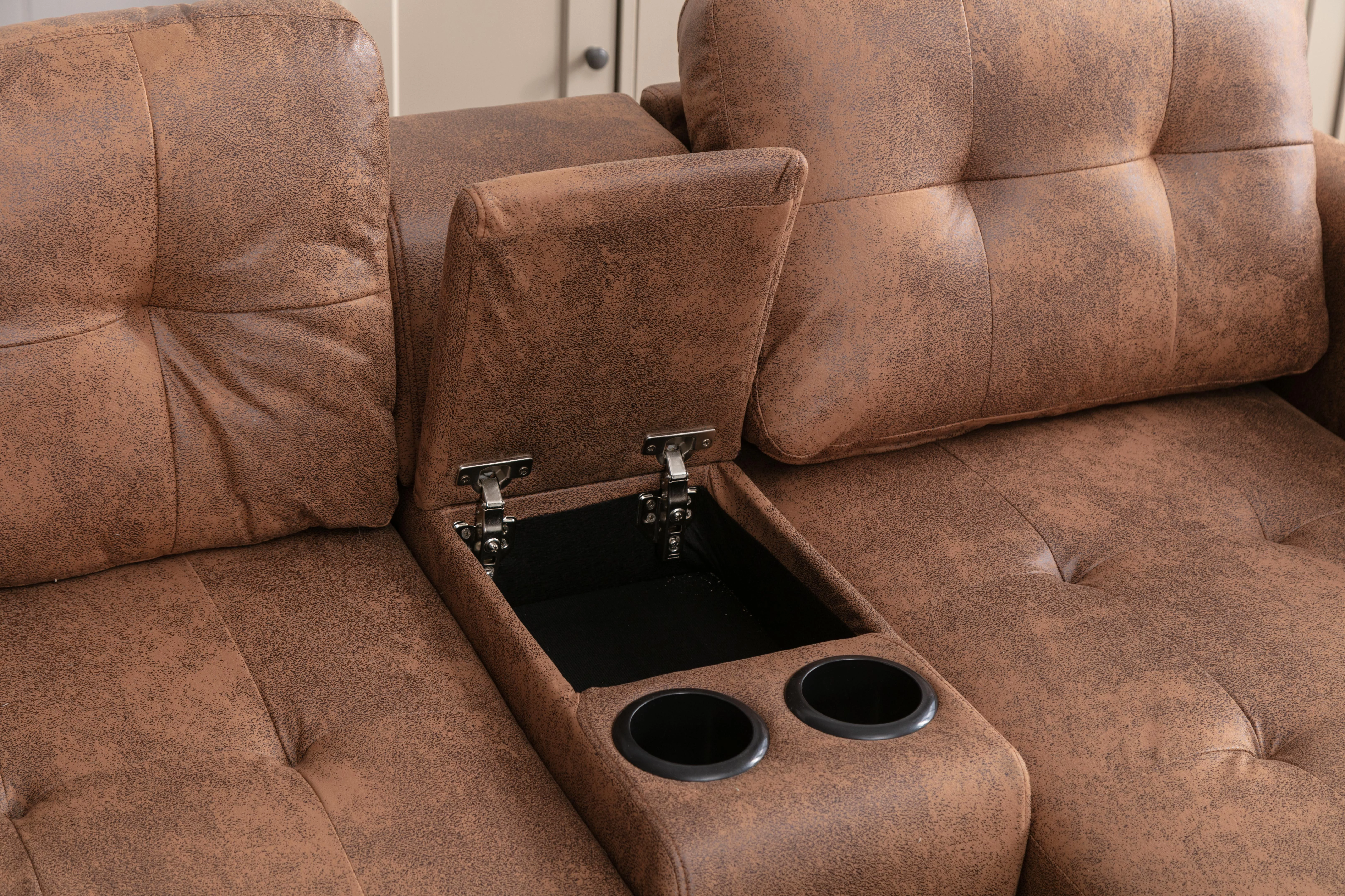 DEALTOPS Mid-Century L-Shaped Sofa Couch, Sectional Couch with Left Chaise and Copper Nails, Dark Brown