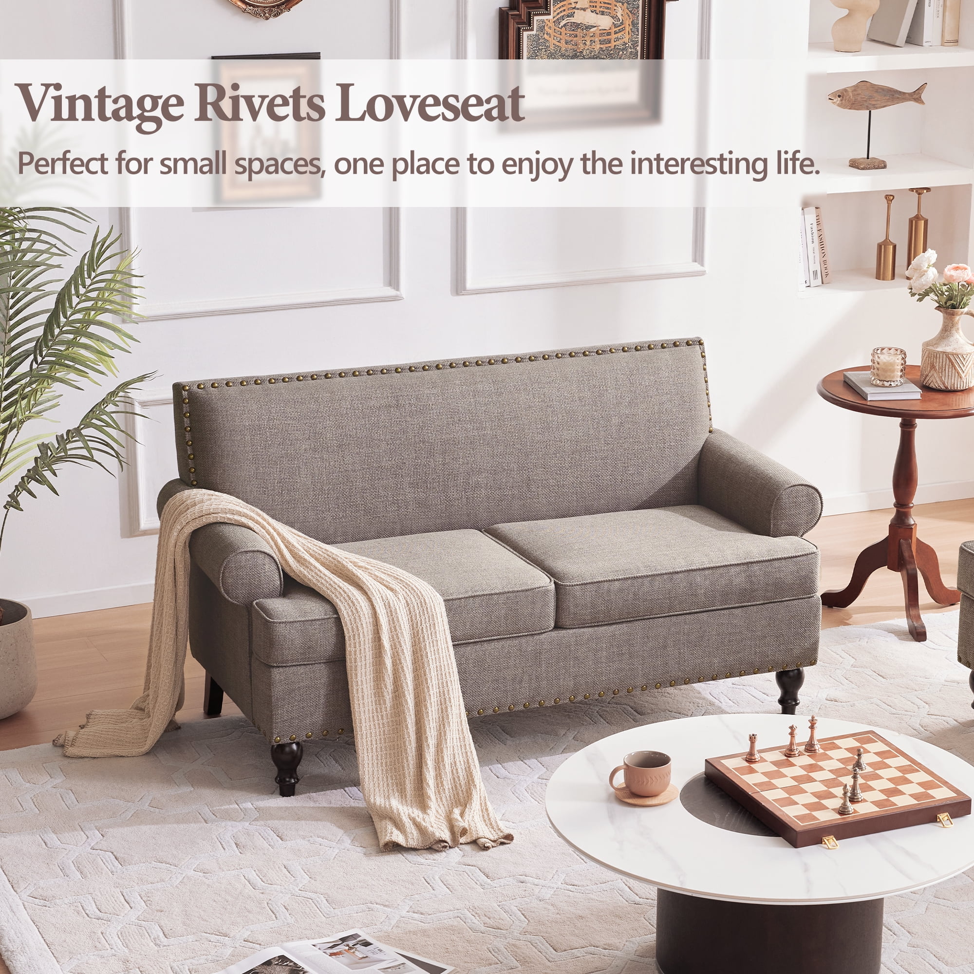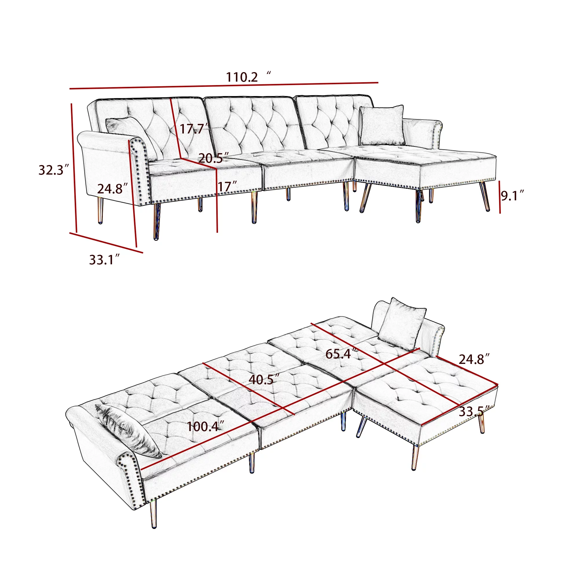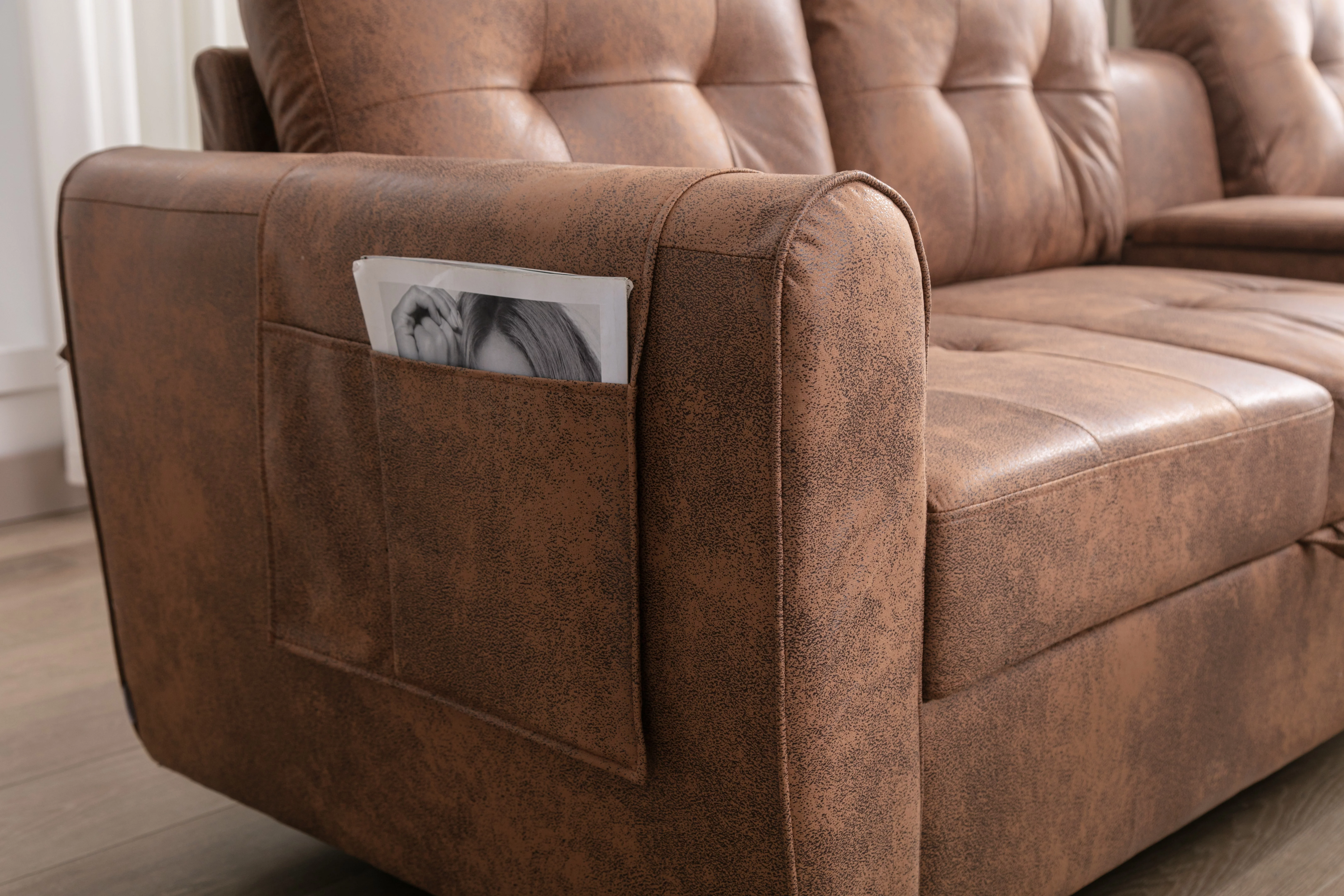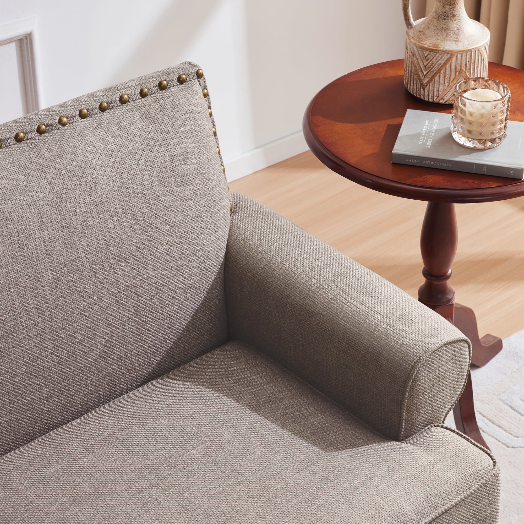 DEALTOPS Mid-Century L-Shaped Sofa Couch, Sectional Couch with Left Chaise and Copper Nails, Dark Brown