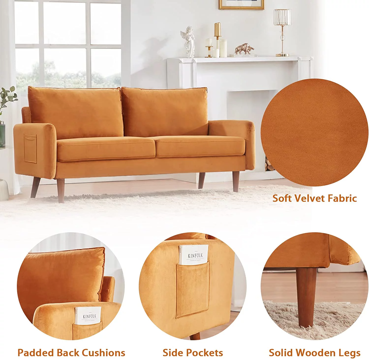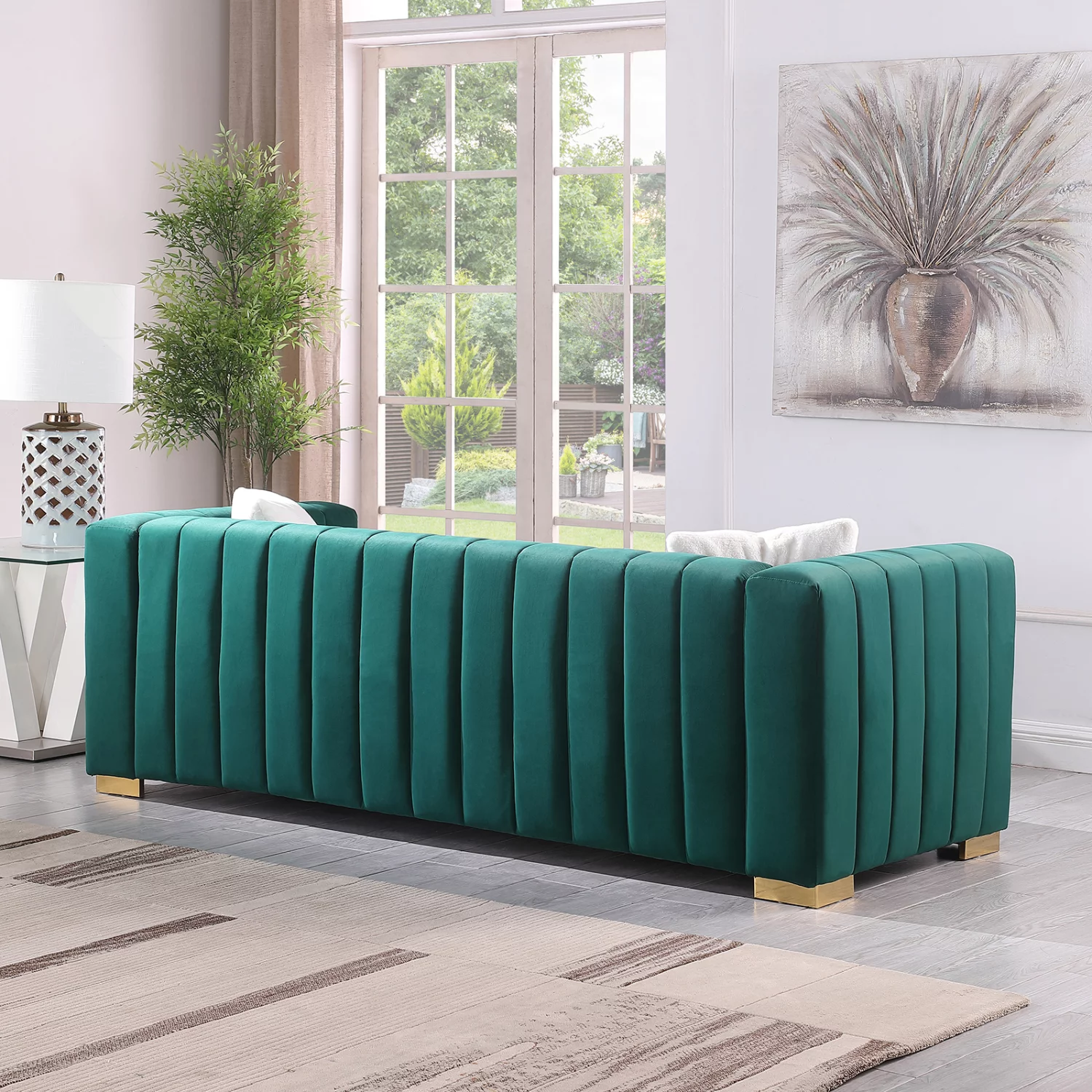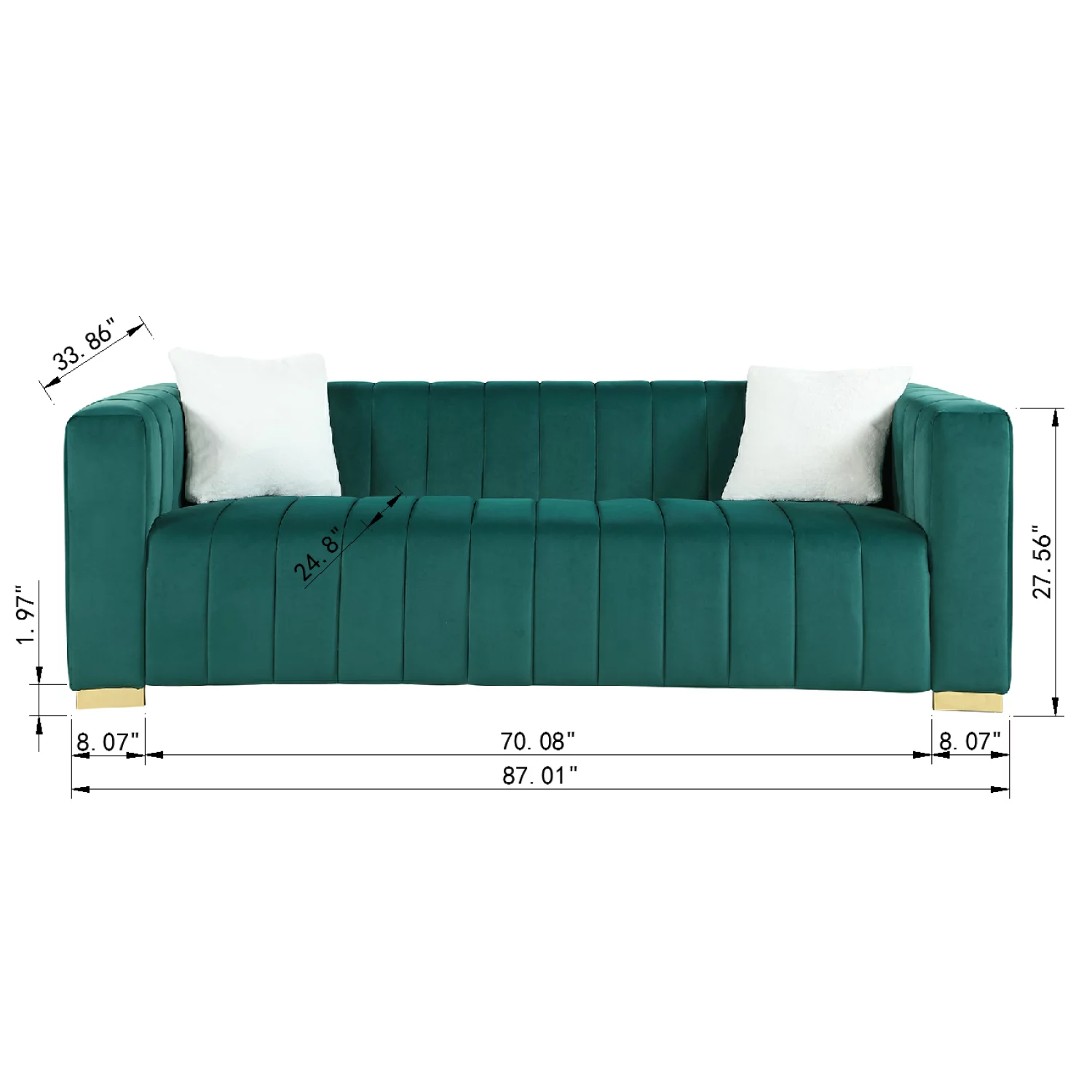Holaki 87" Velvet Couch Sofa Mid-Century Modern Loveseat Chesterfield 3 Seat Couches Sleeper Sofa for Living Room Apartment, Dark Green
