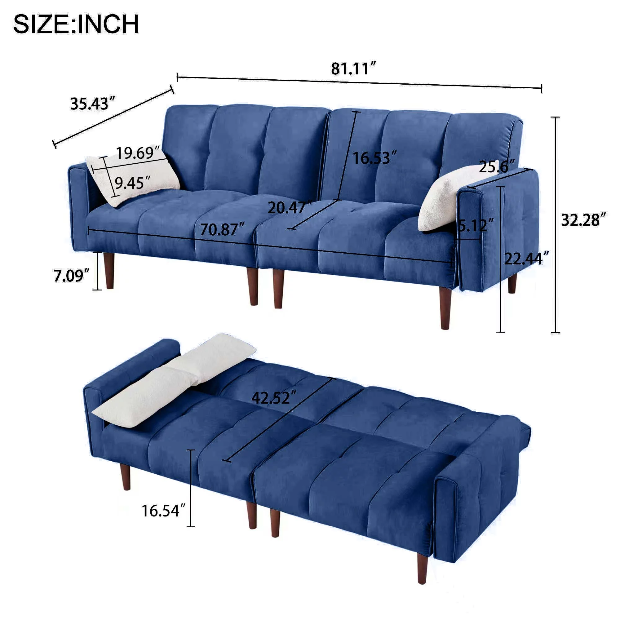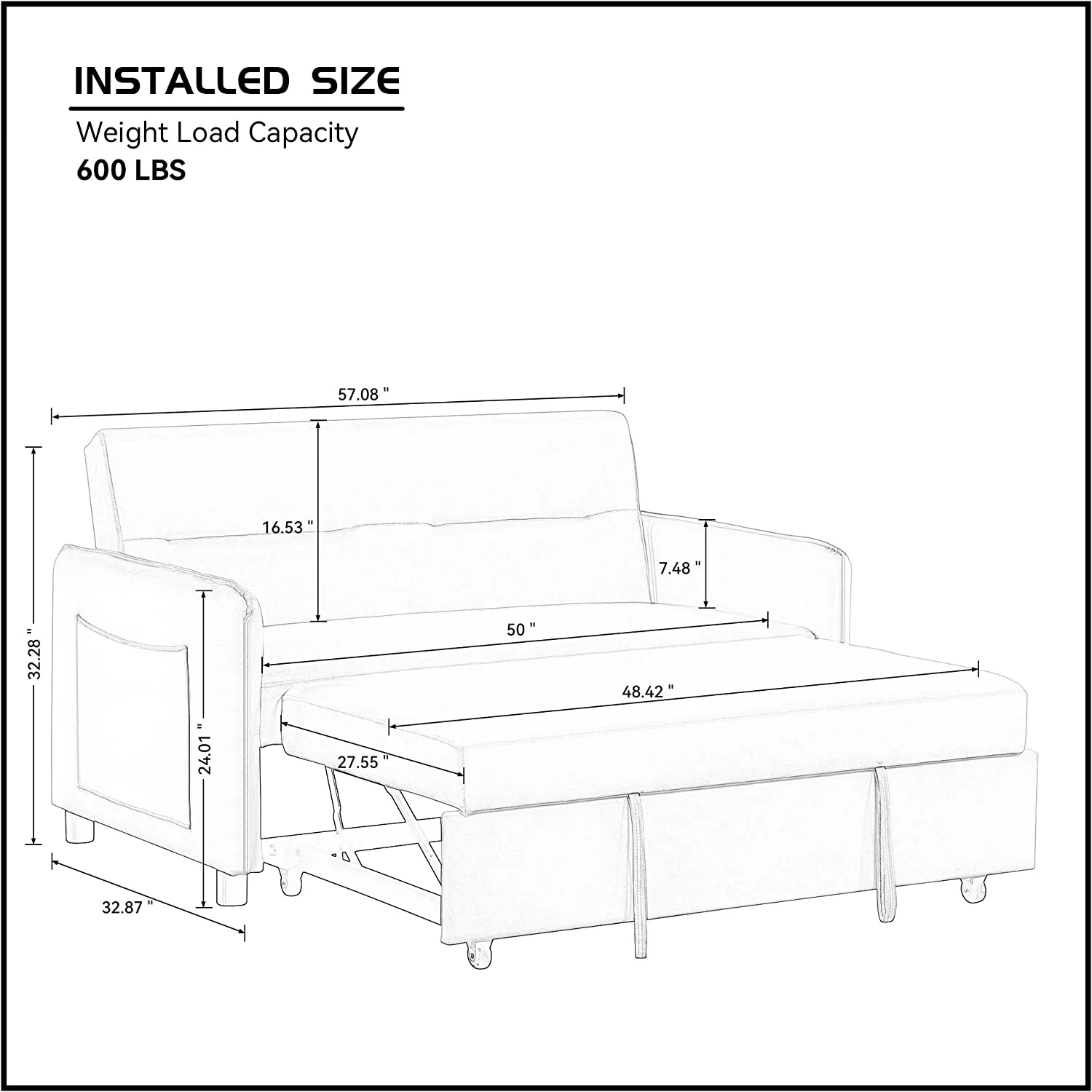 WILLIAMSPACE Sofa Bed -Pull Out Sofa Bed futon -Sleeper couches for Living Room-Suitable for Small Space, RV Sofa Bed, Lounge