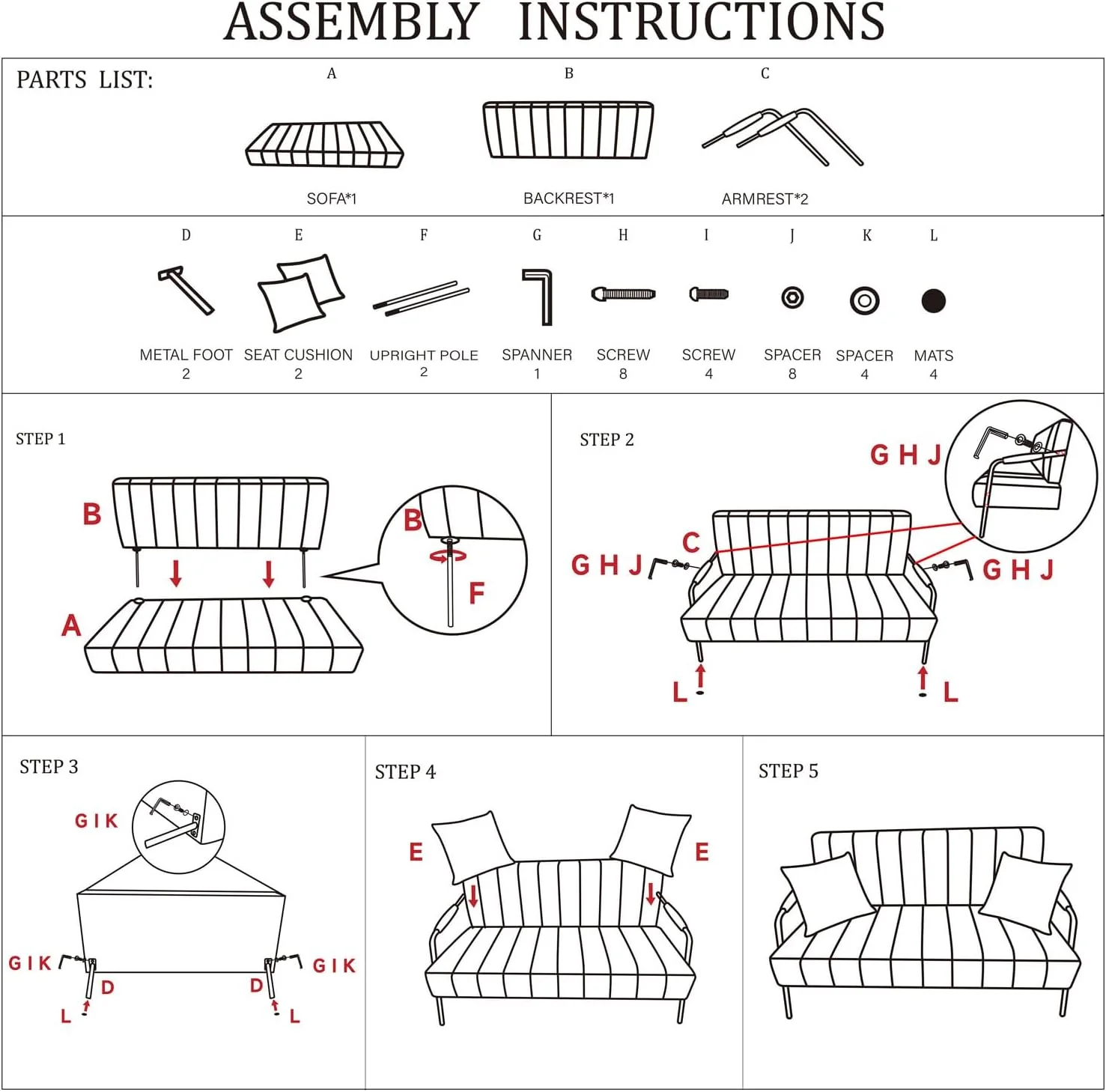 Outdoor Sofa with Cushions Patio Daybed Couch Daybed Adjustable Armrests Backyard Balcony Poolside