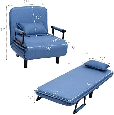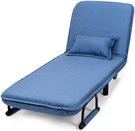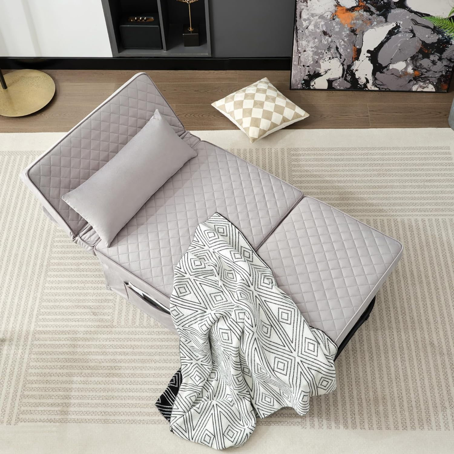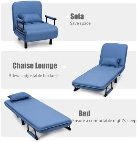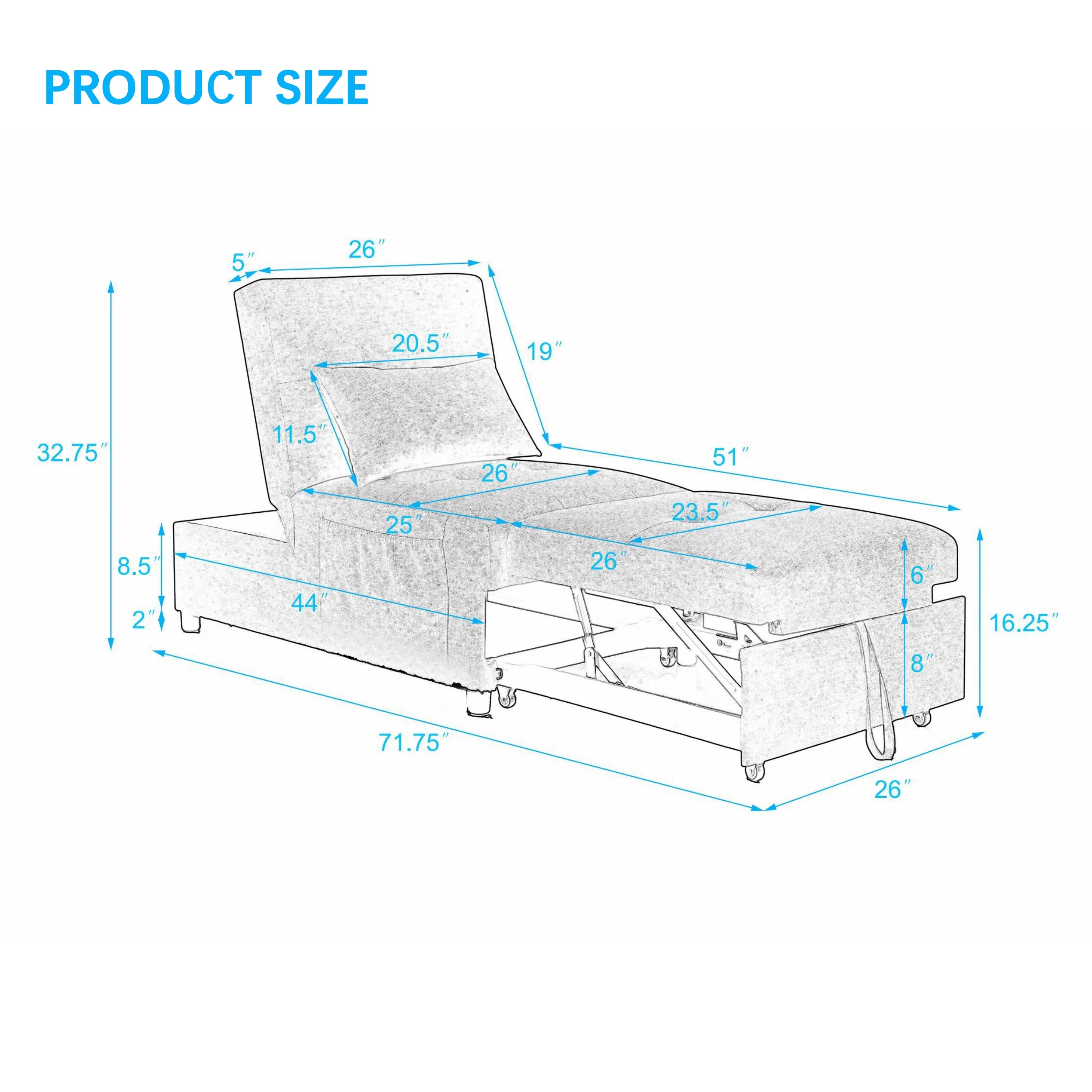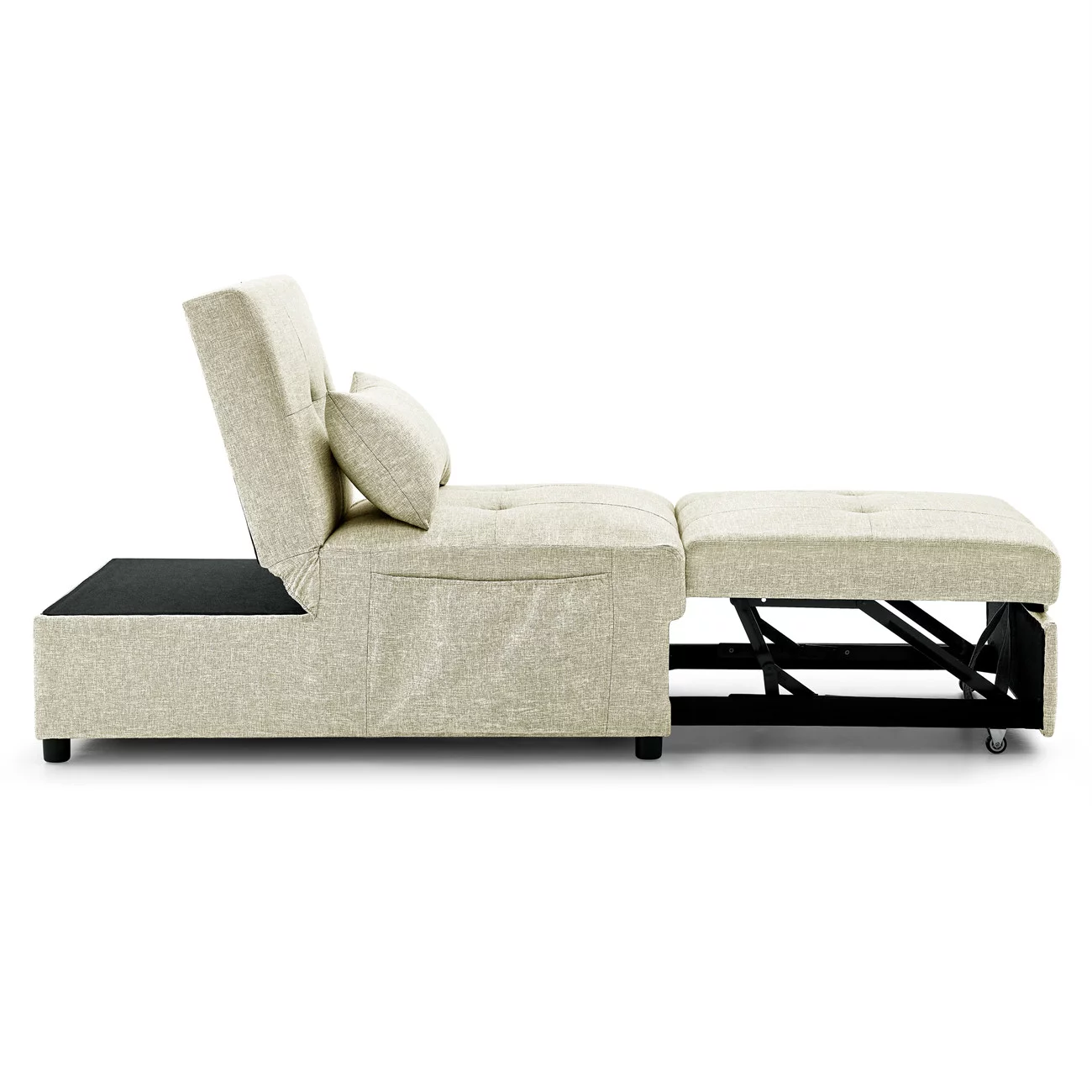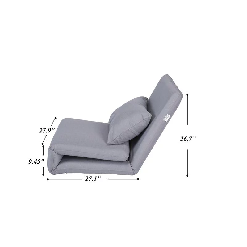 Relaxie Linen 5-Position Adjustable Convertible Flip Chair Sleeper Dorm Bed Couch Lounger Sofa - Grey