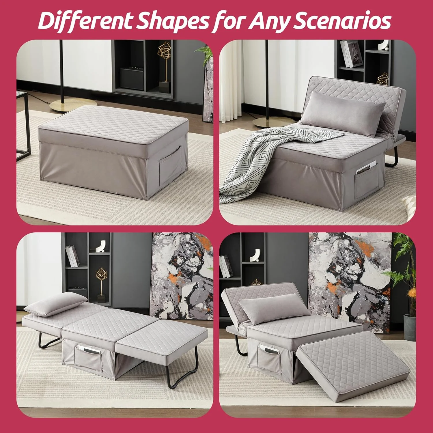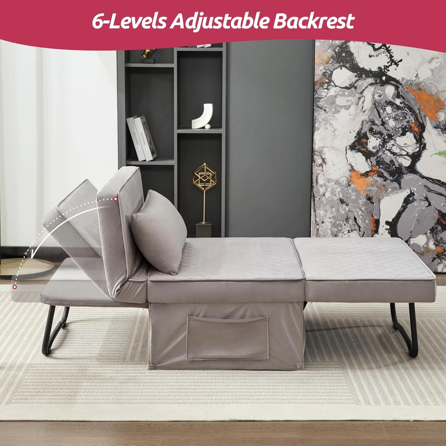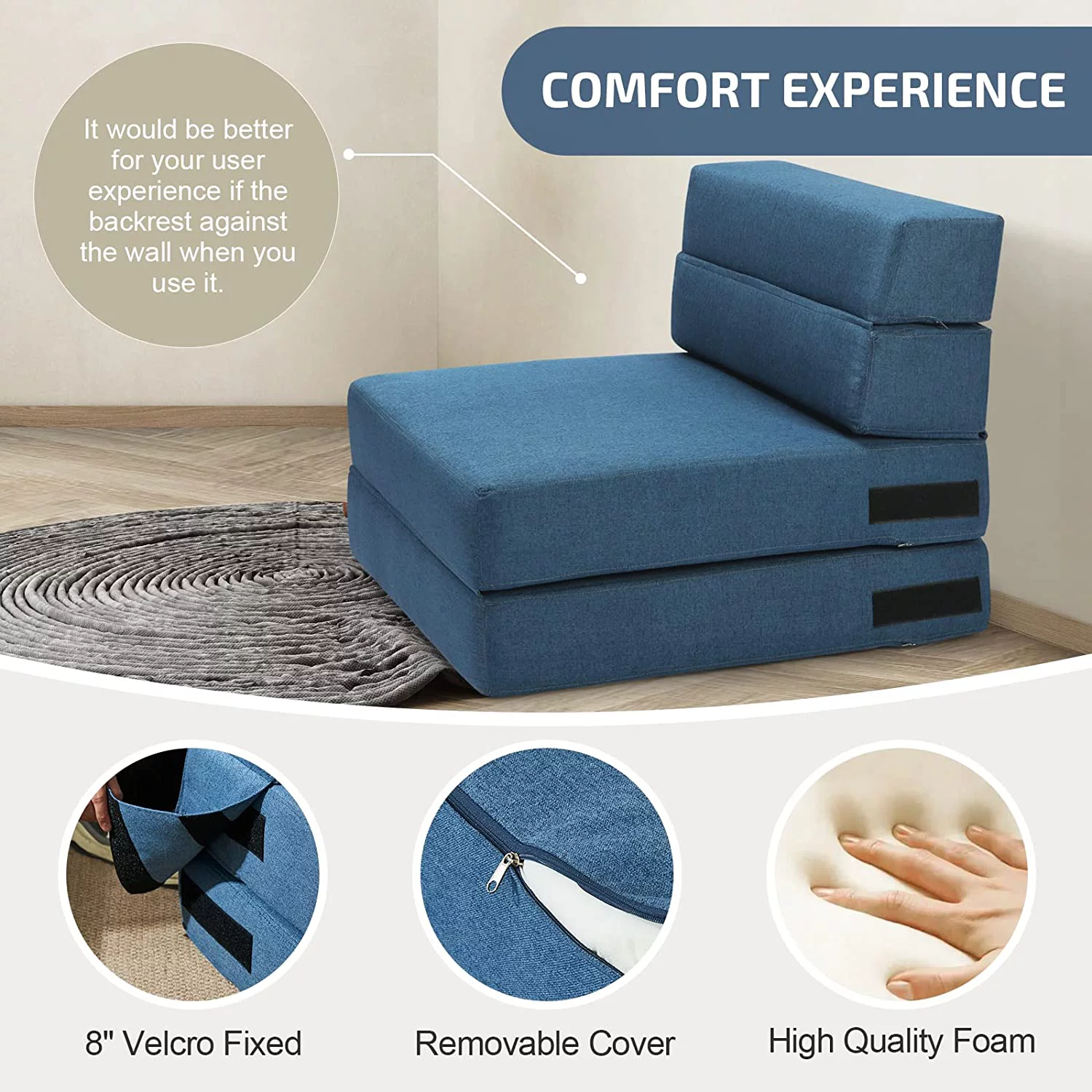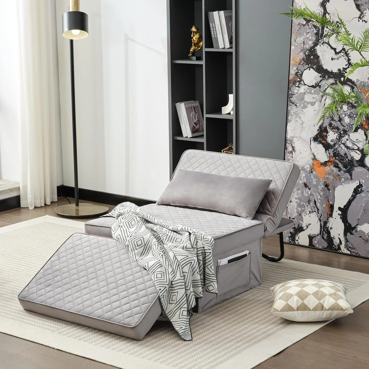 Relaxie Linen 5-Position Adjustable Convertible Flip Chair Sleeper Dorm Bed Couch Lounger Sofa - Grey