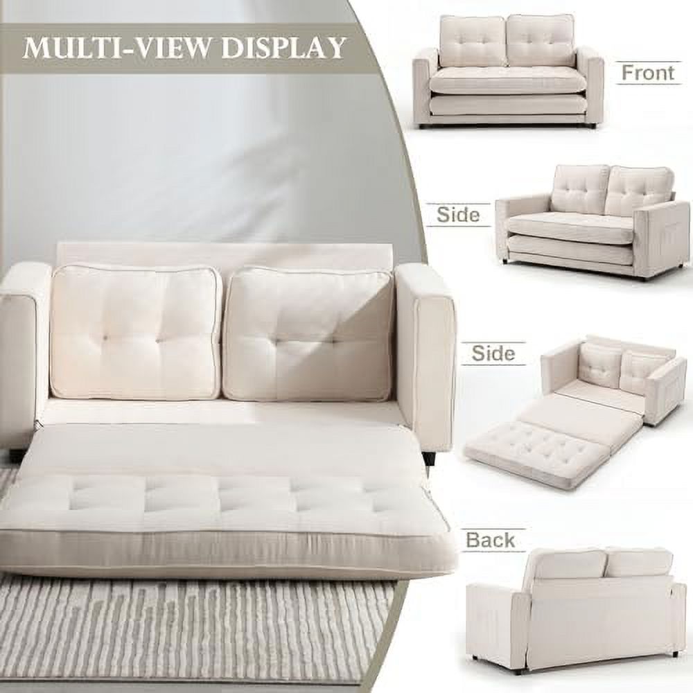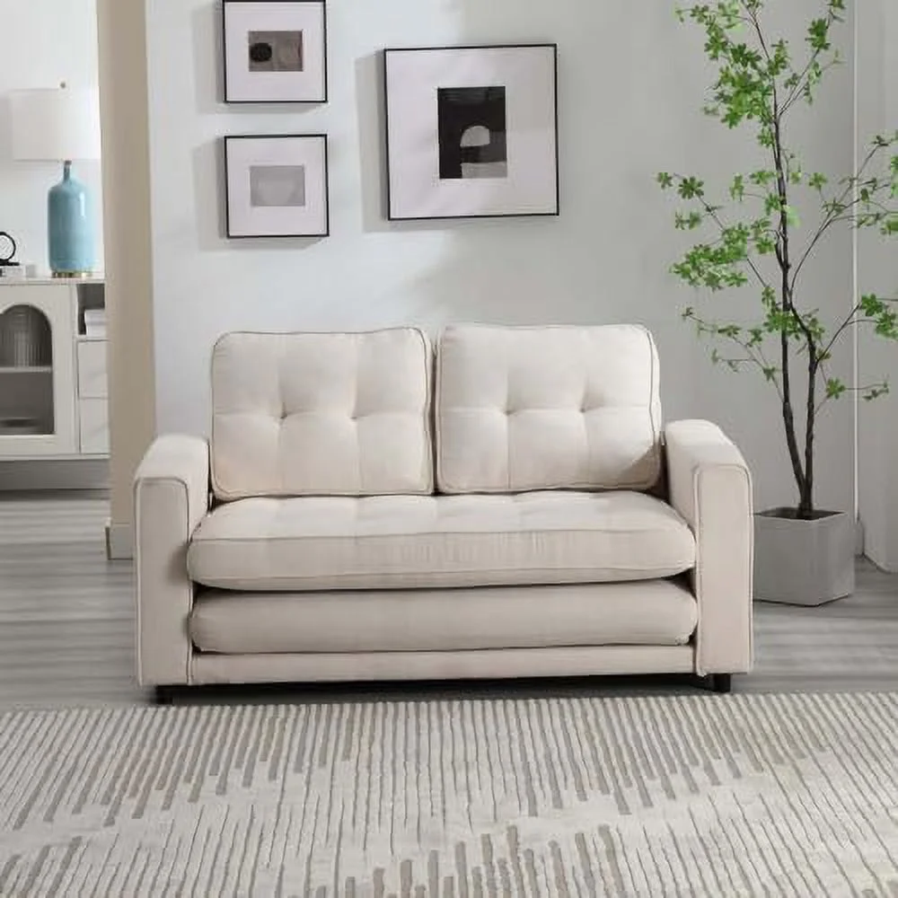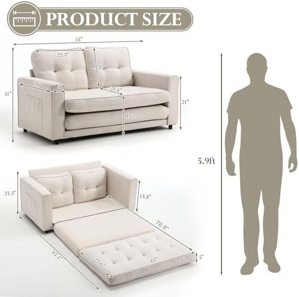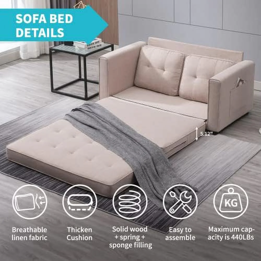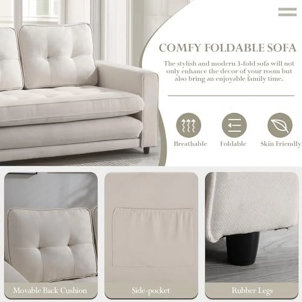XLHAZ Folding Sofa Bed, Linen Convertible Foldable Couch Bed, Loveseat Sleeper Sofa for Adults, Beige