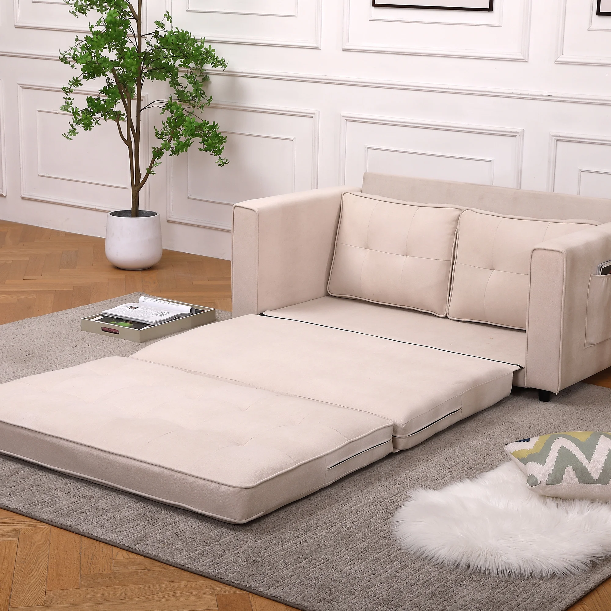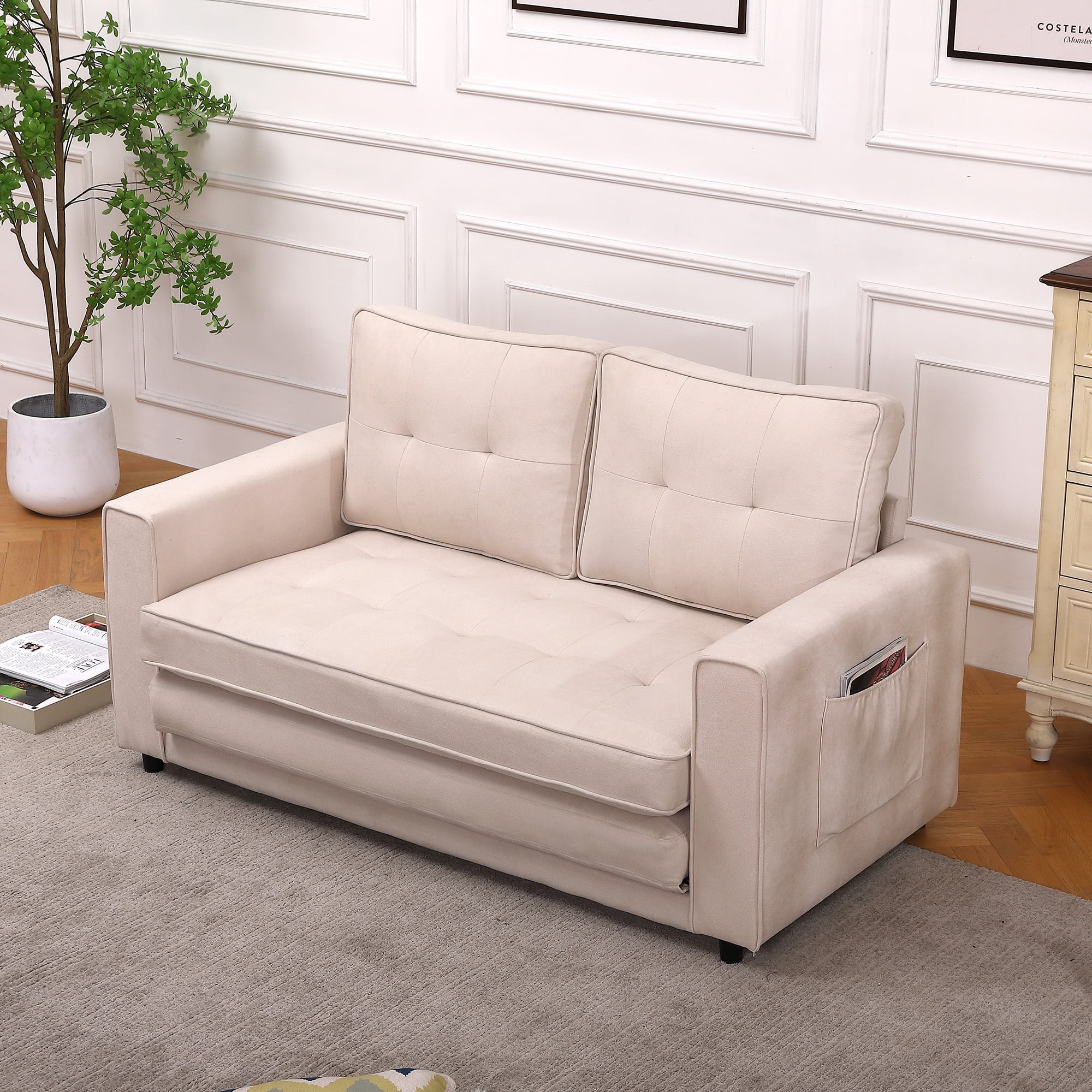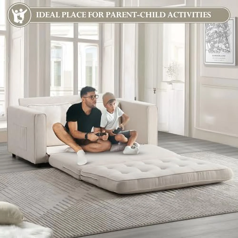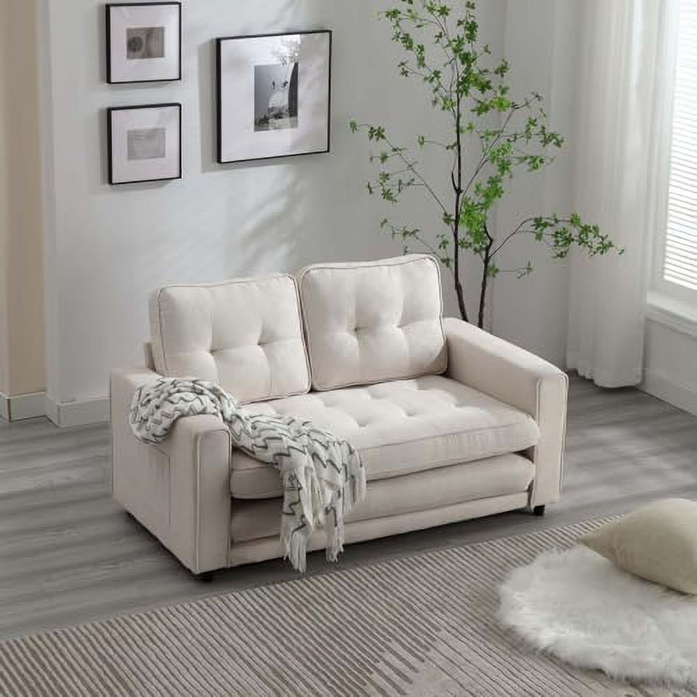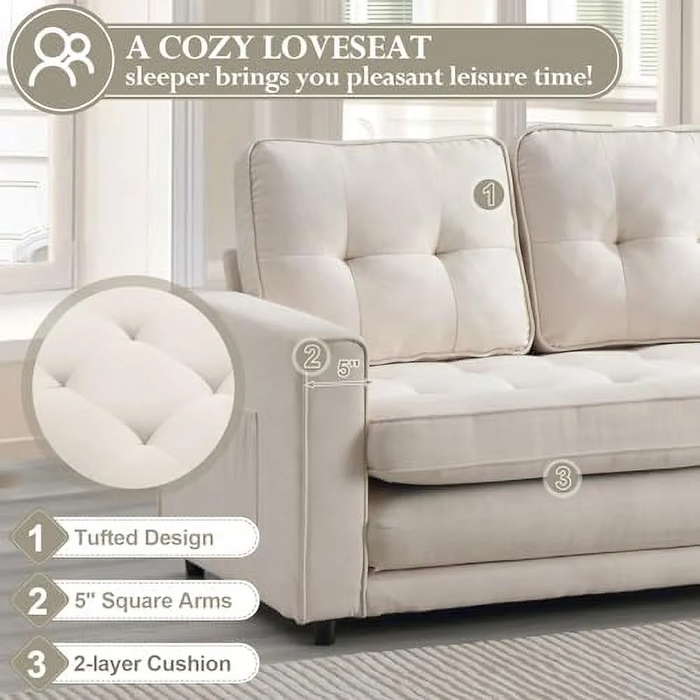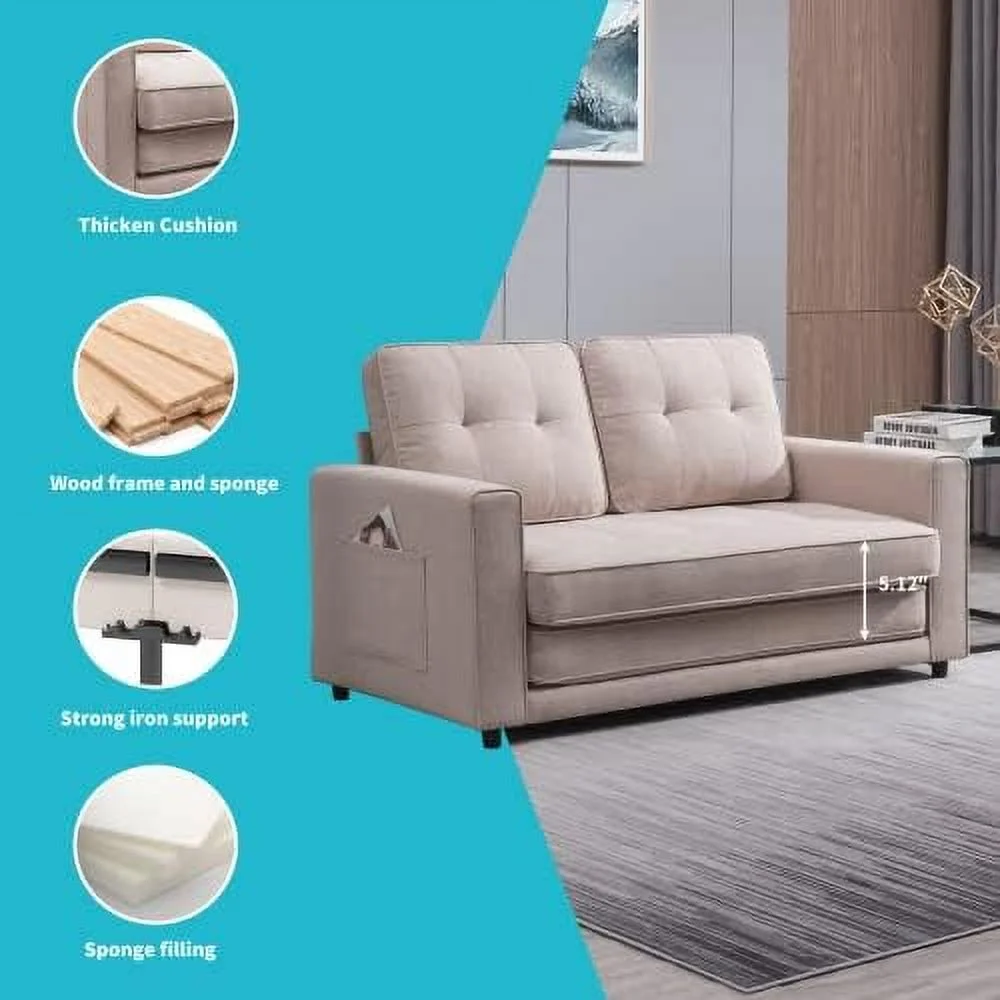 XLHAZ Folding Sofa Bed, Linen Convertible Foldable Couch Bed, Loveseat Sleeper Sofa for Adults, Beige