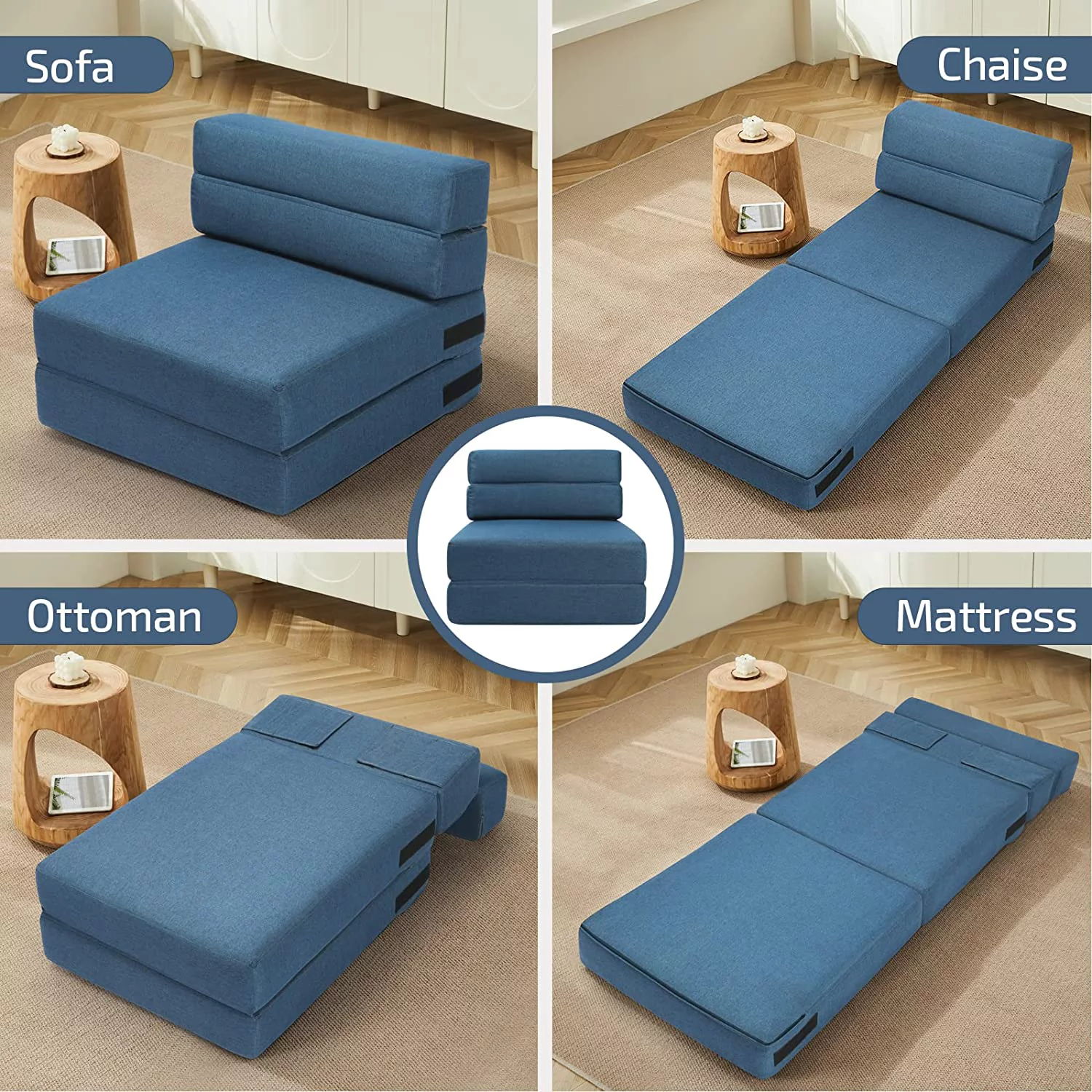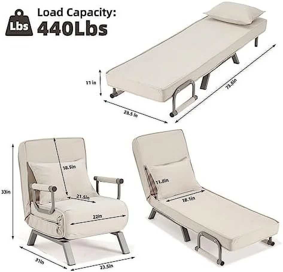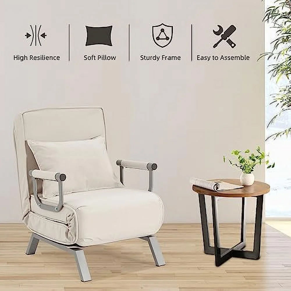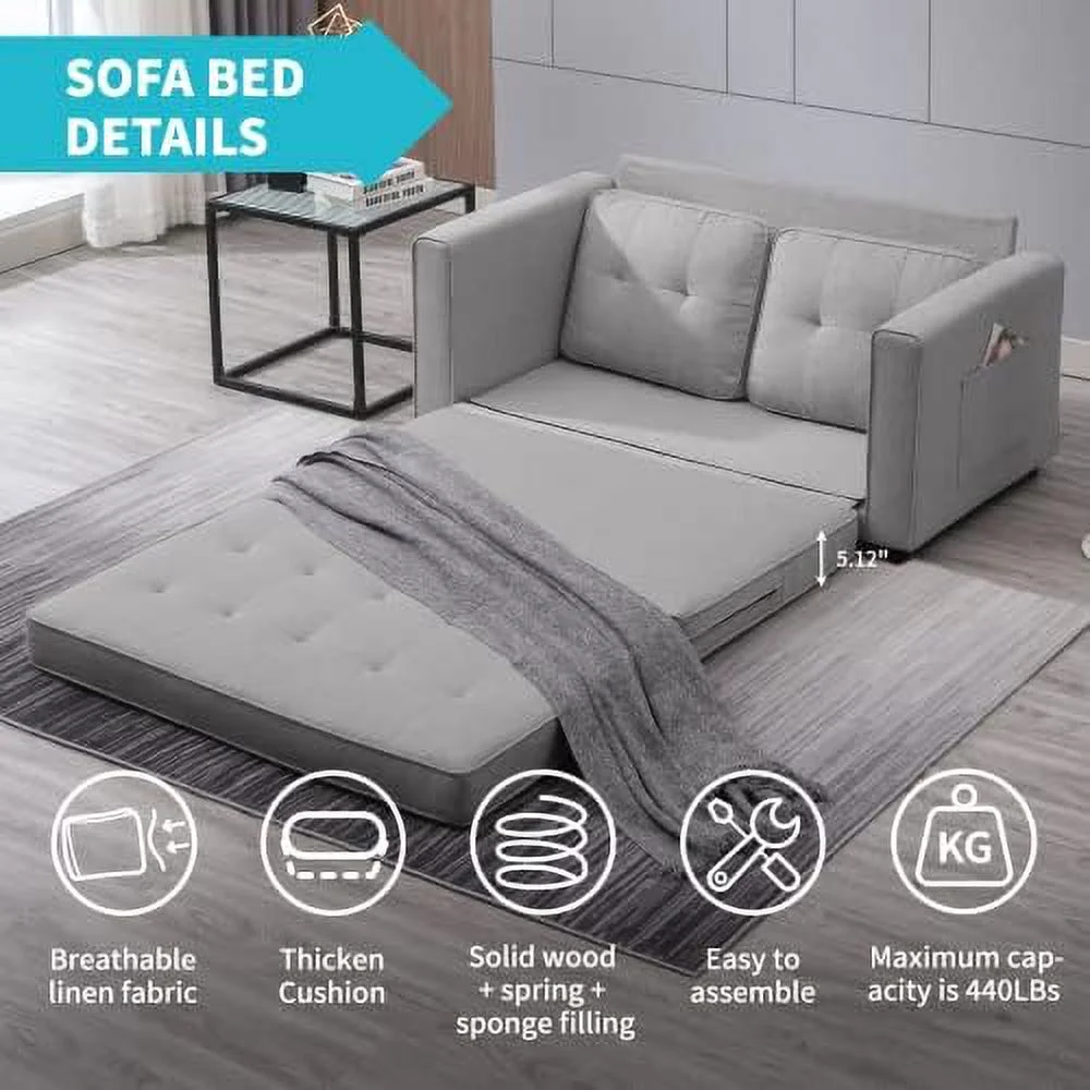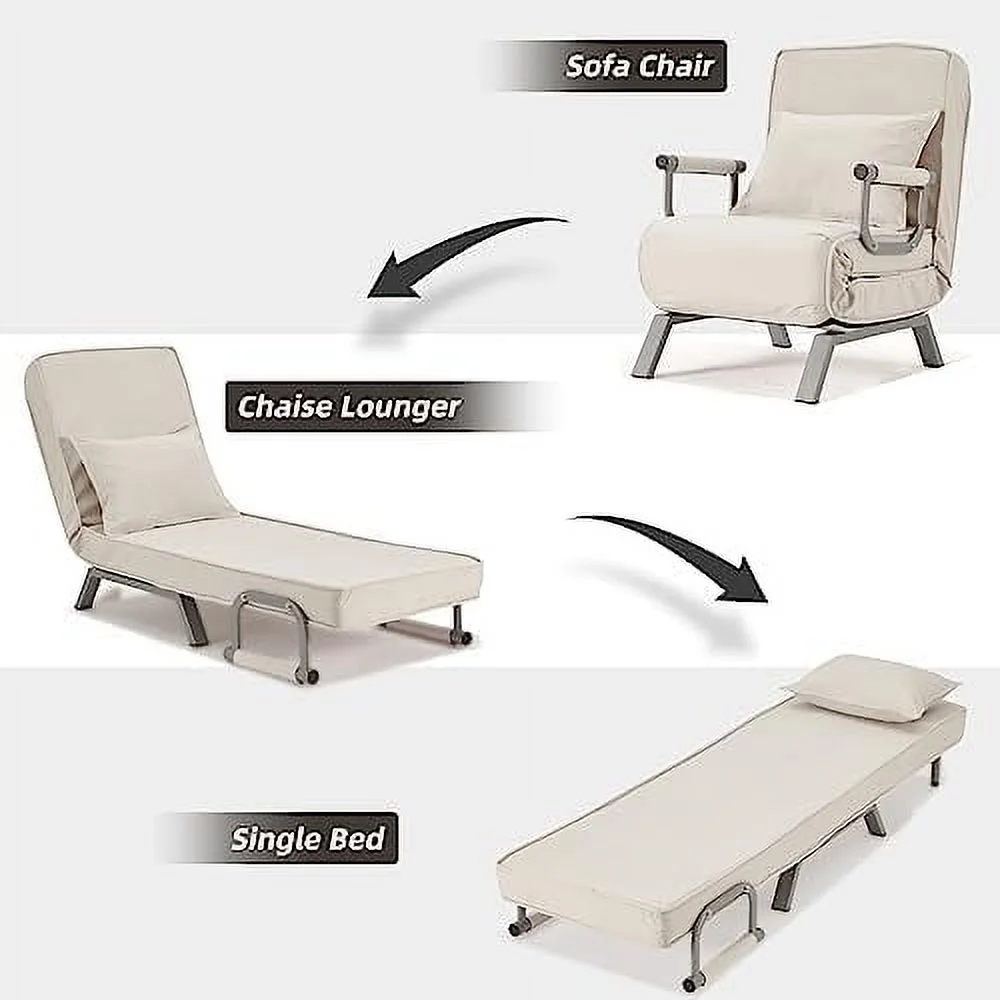 XLHAZ Folding Sofa Bed, Linen Convertible Foldable Couch Bed, Loveseat Sleeper Sofa for Adults, Beige