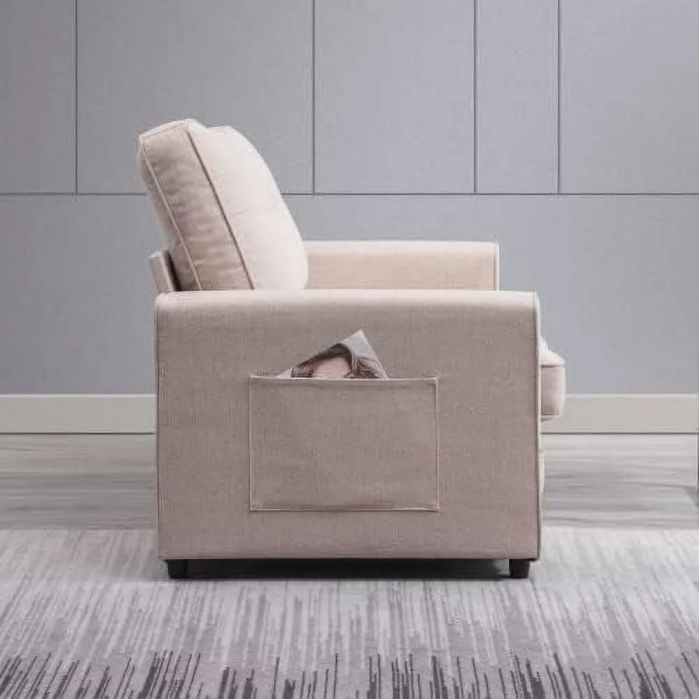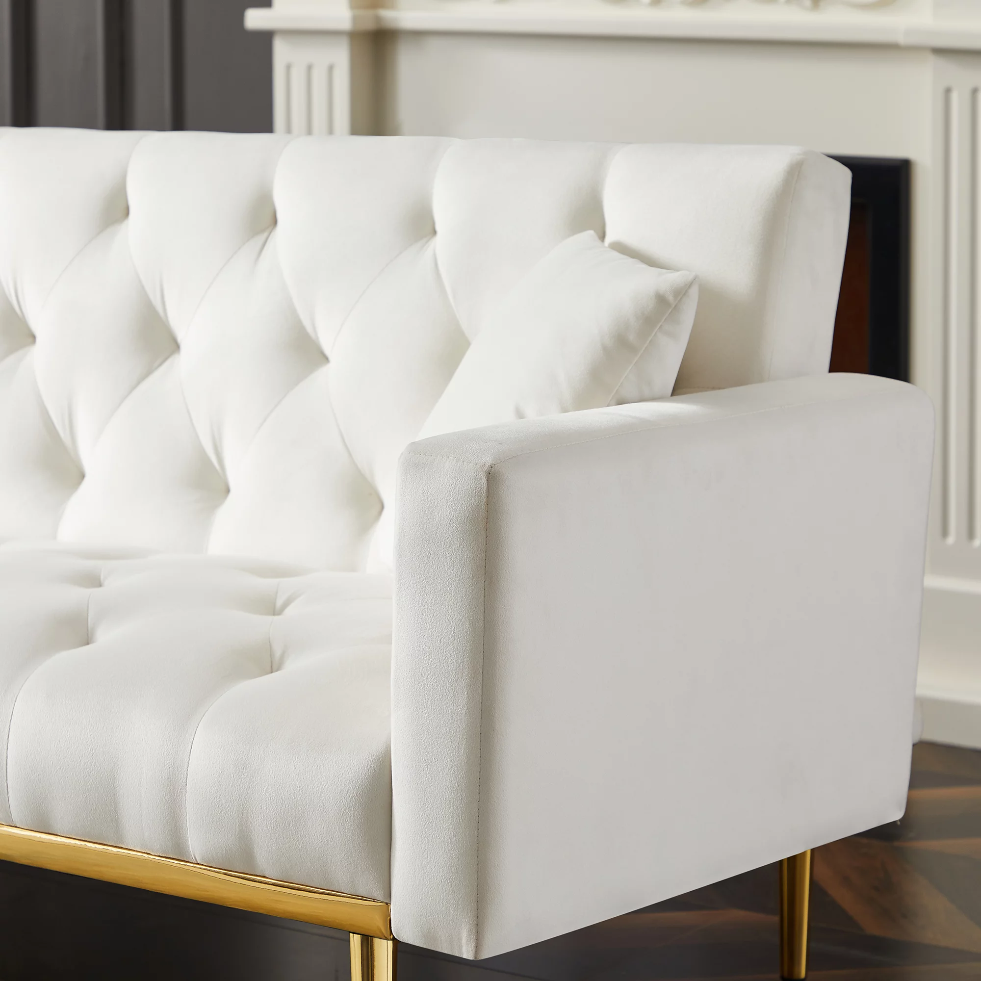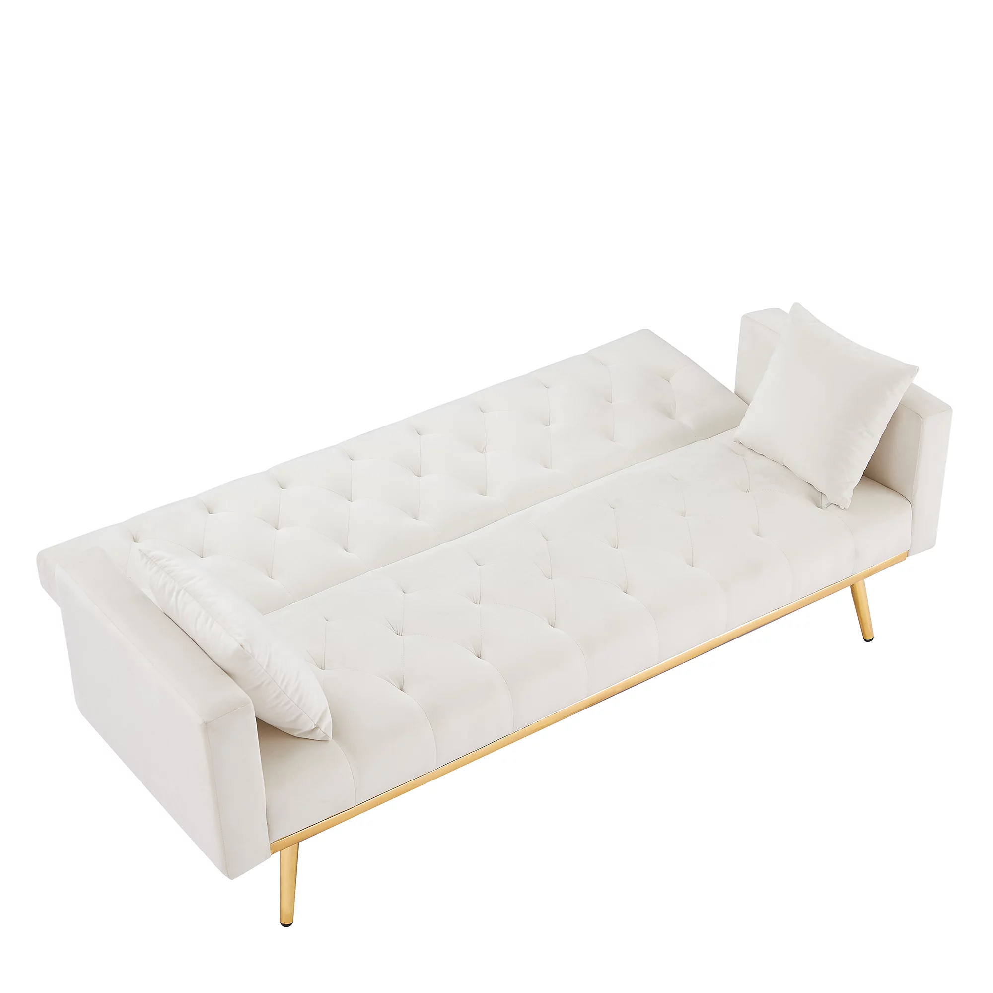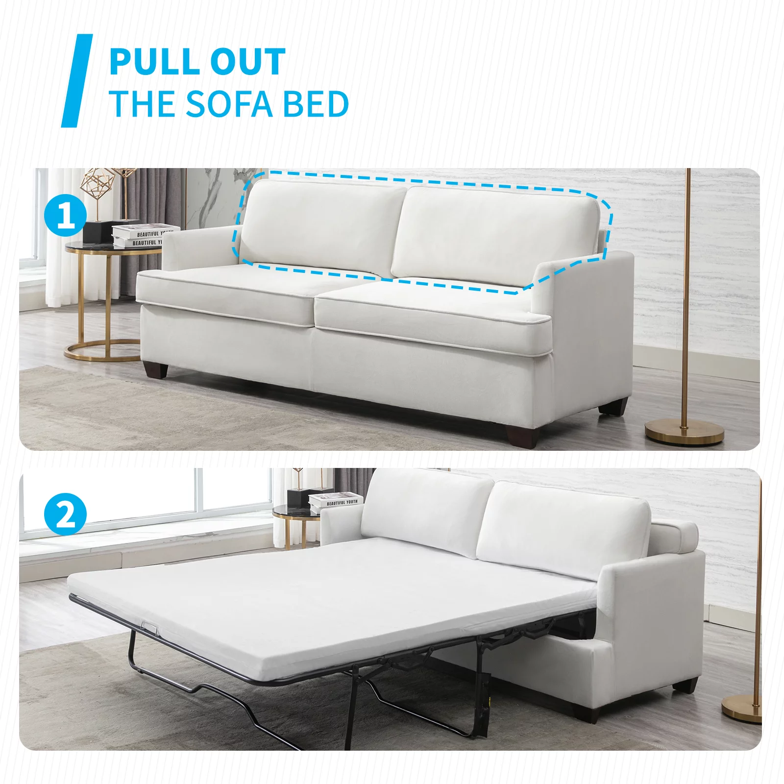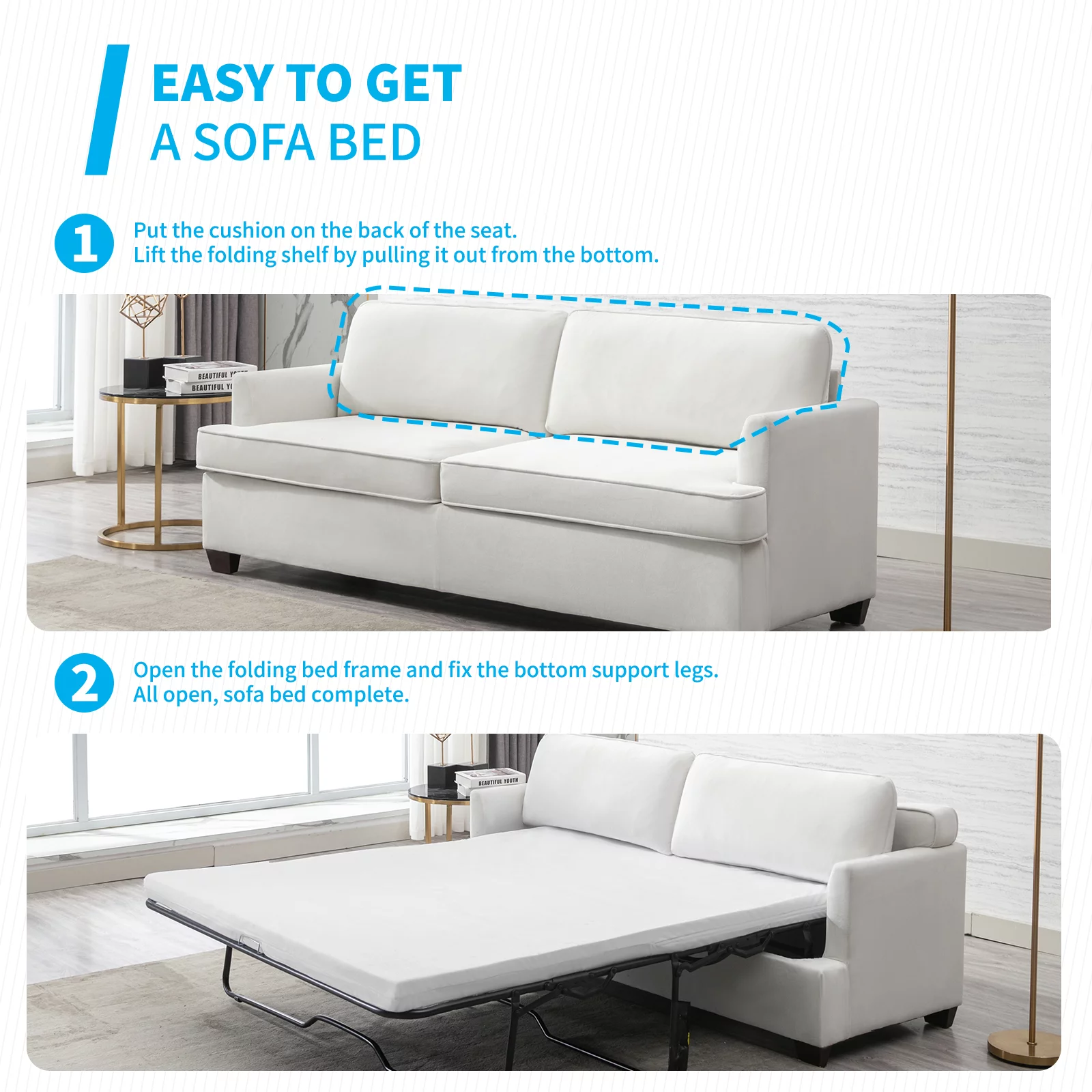 Abanopi Modern Sofa Couch Bed with Armrests and 2 Pillows for Living Room and Bedroom .(White)