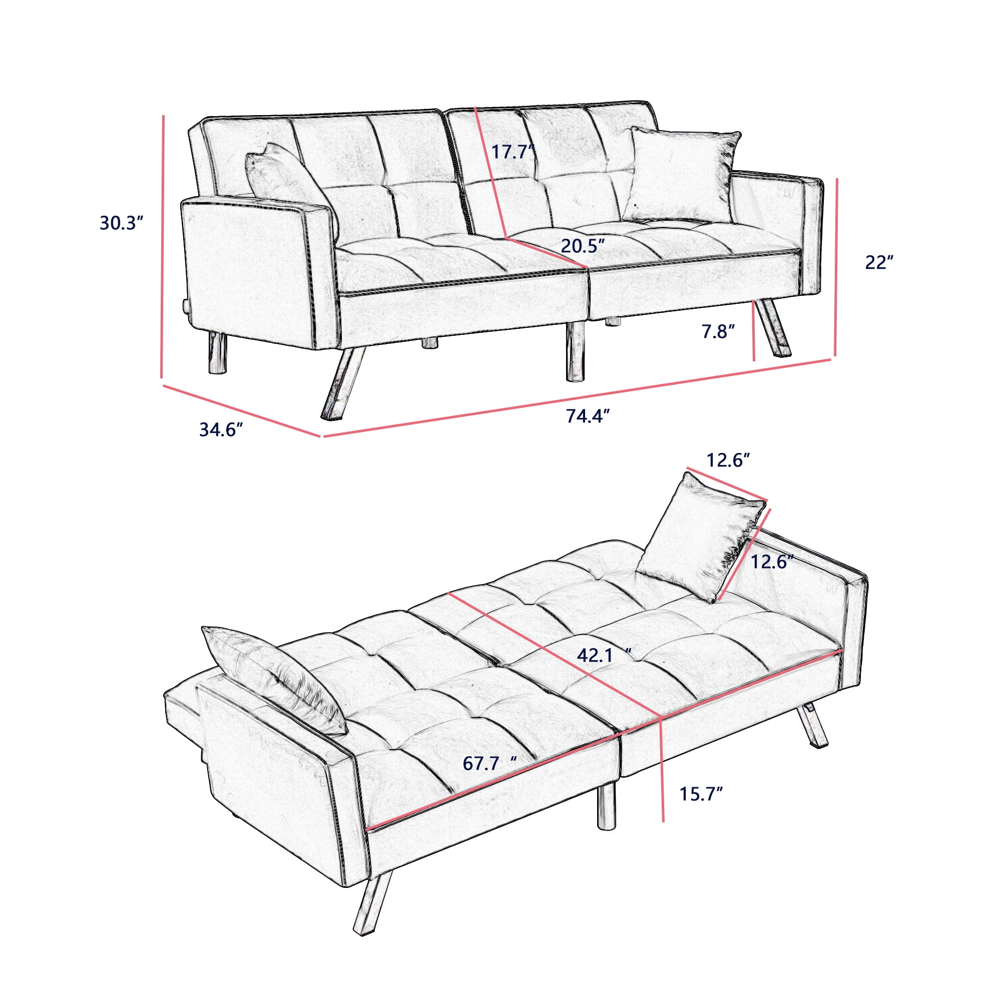 Convertible Folding Sofa Bed with Armrest , Fabric Sleeper Sofa Couch for Living Room .