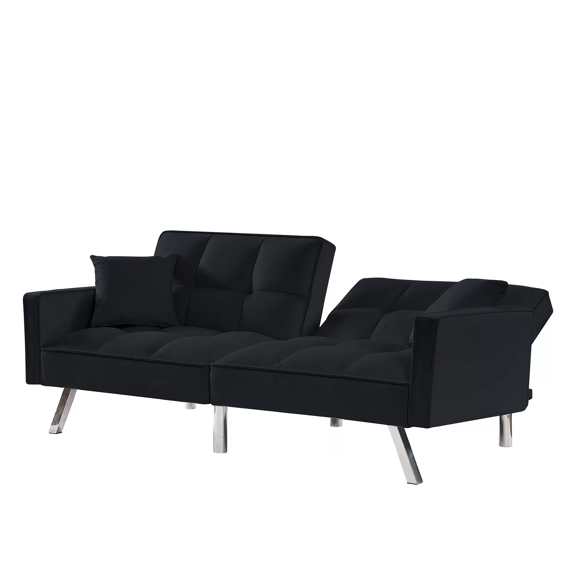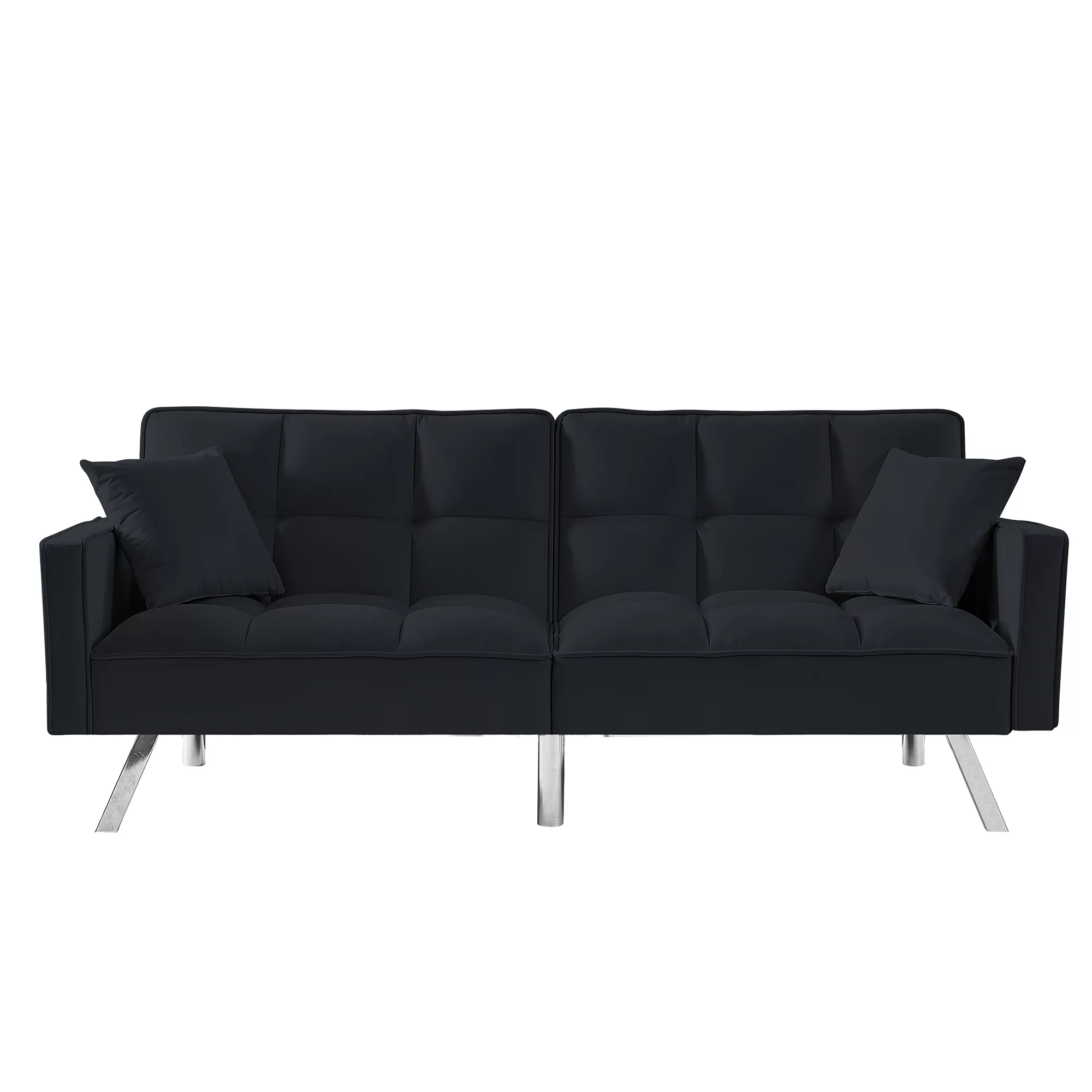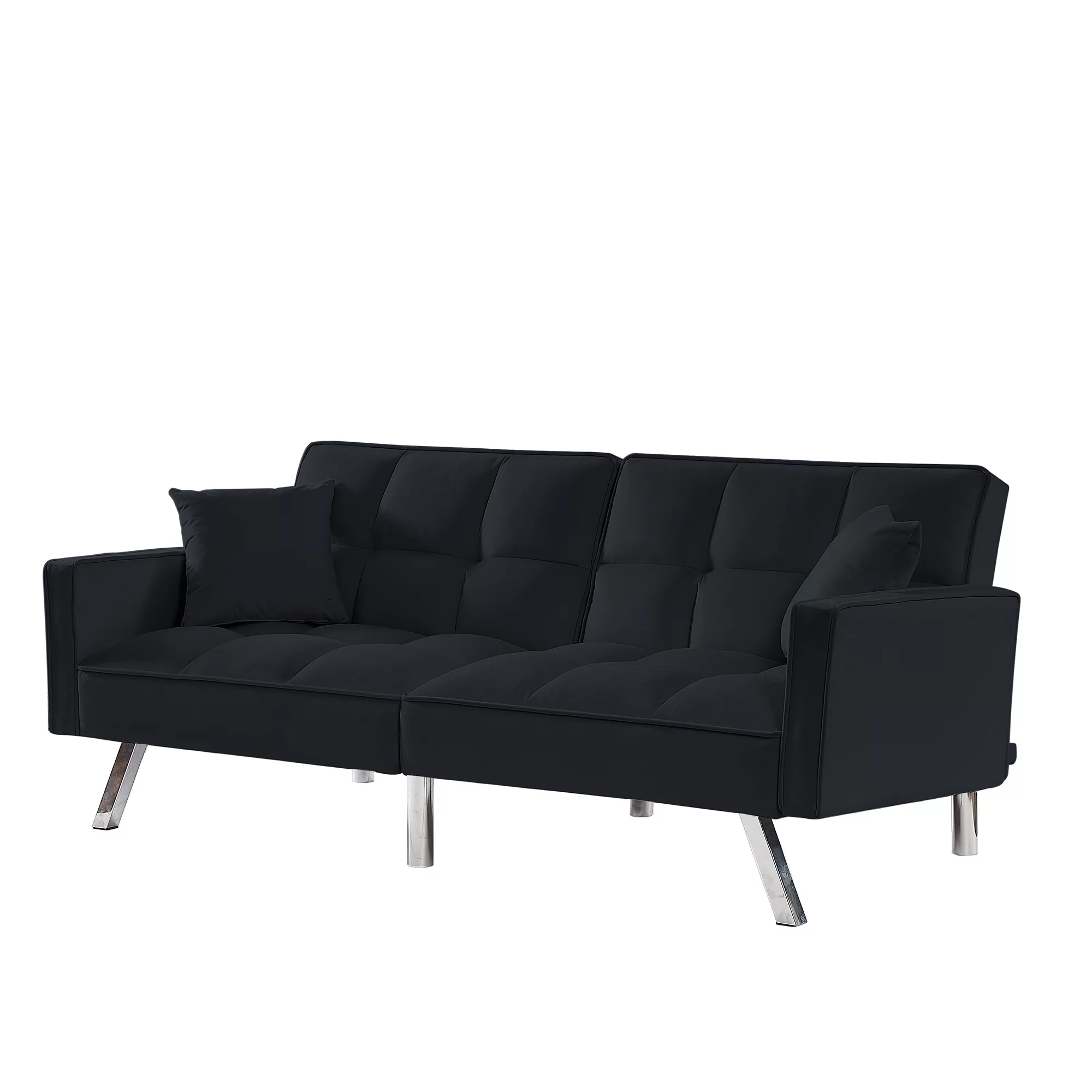 Holaki Modern Velvet Sofa Couch Bed with Armrests and 2 Pillows for Living Room and Bedroom, BLACK