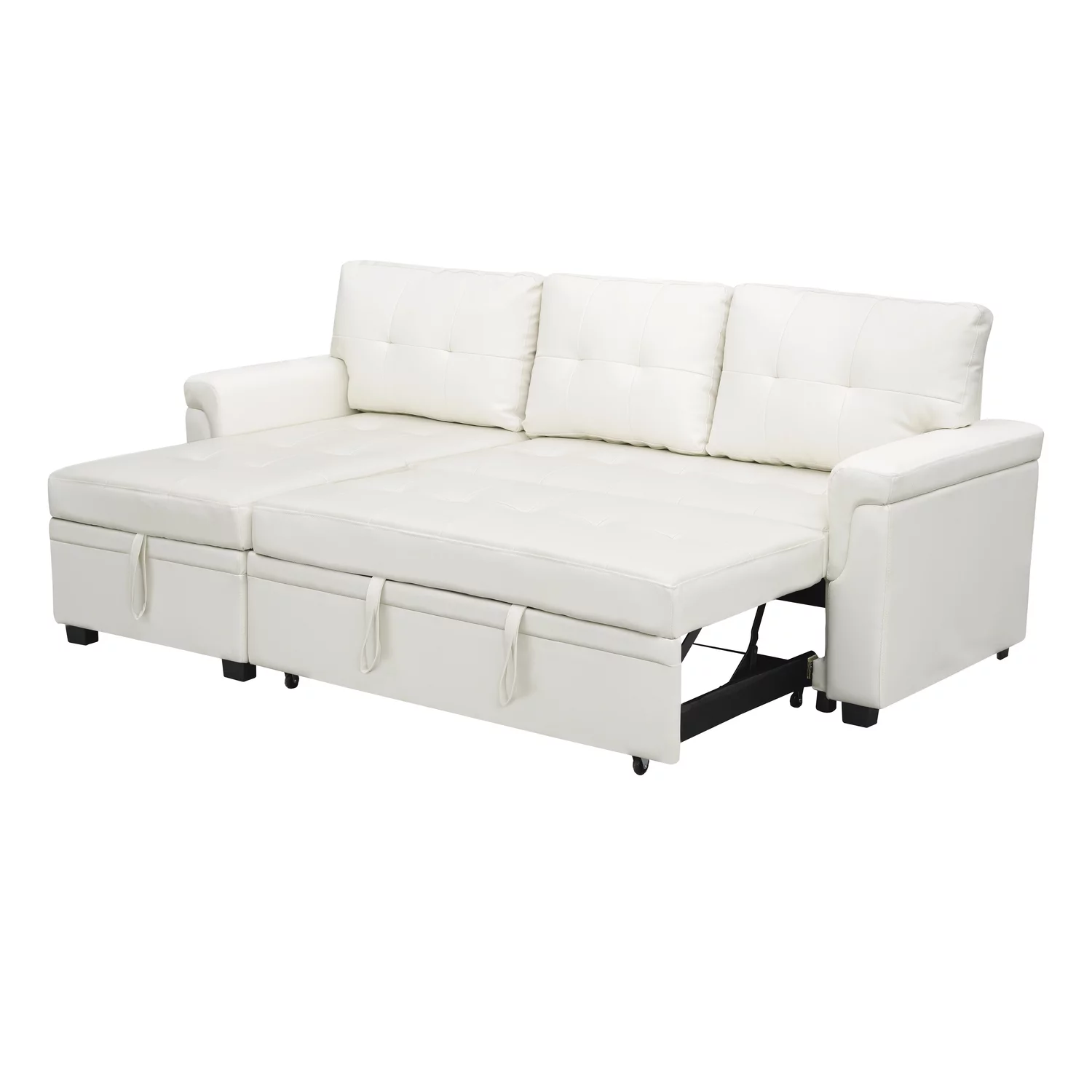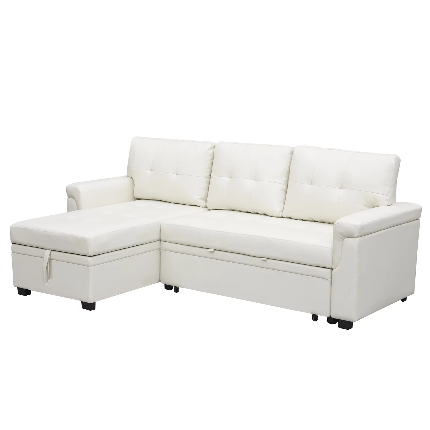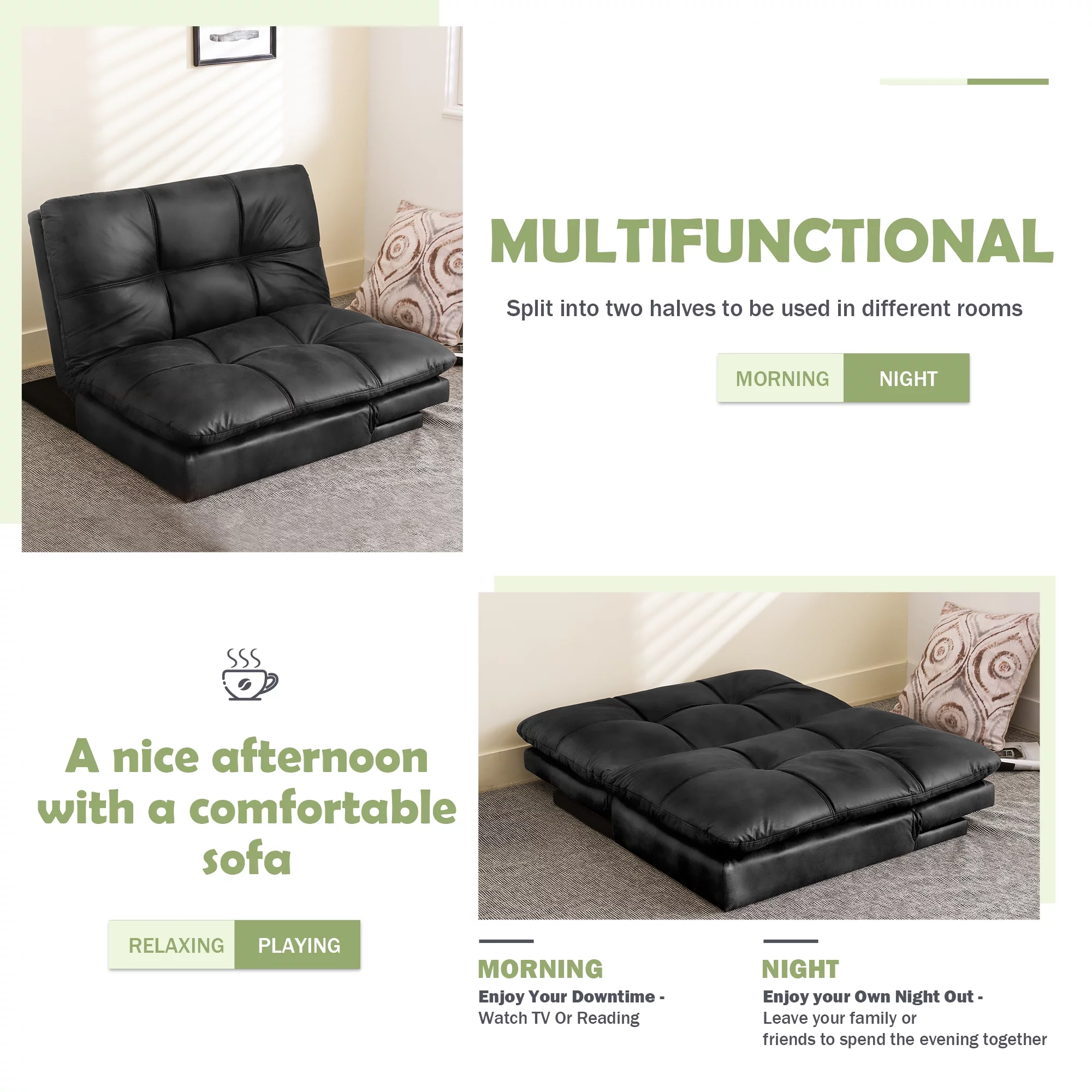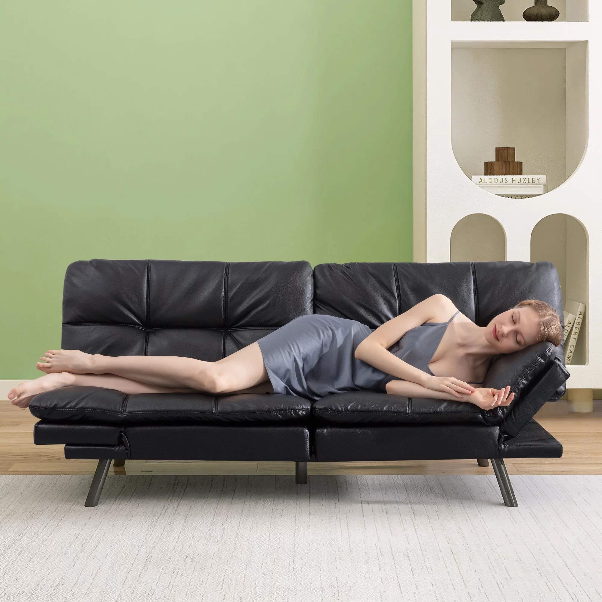 Hcore Memory Foam Convertible Sofa Bed/Couch/Futon Sets with Black Faux Leather for Living Room