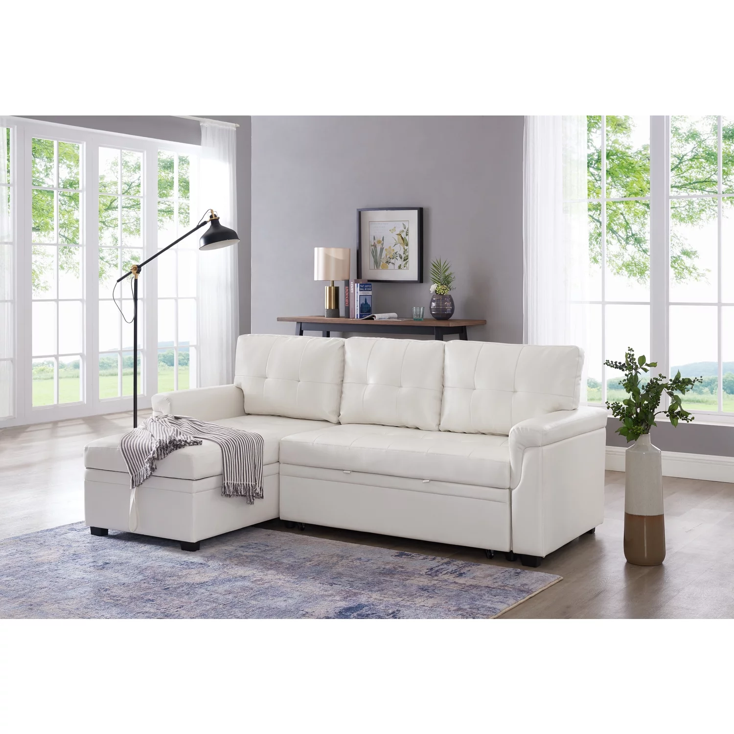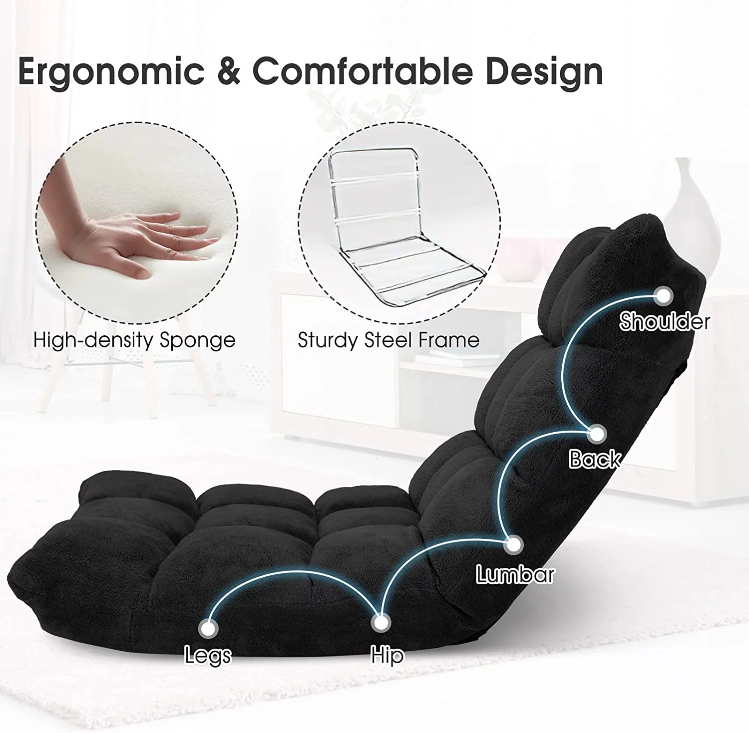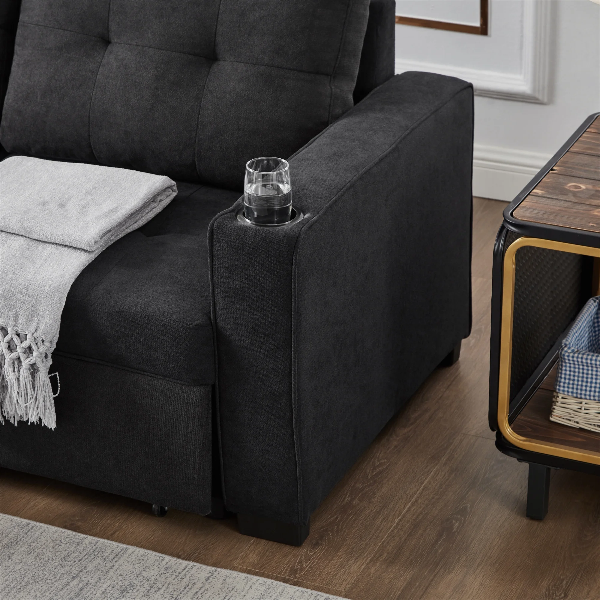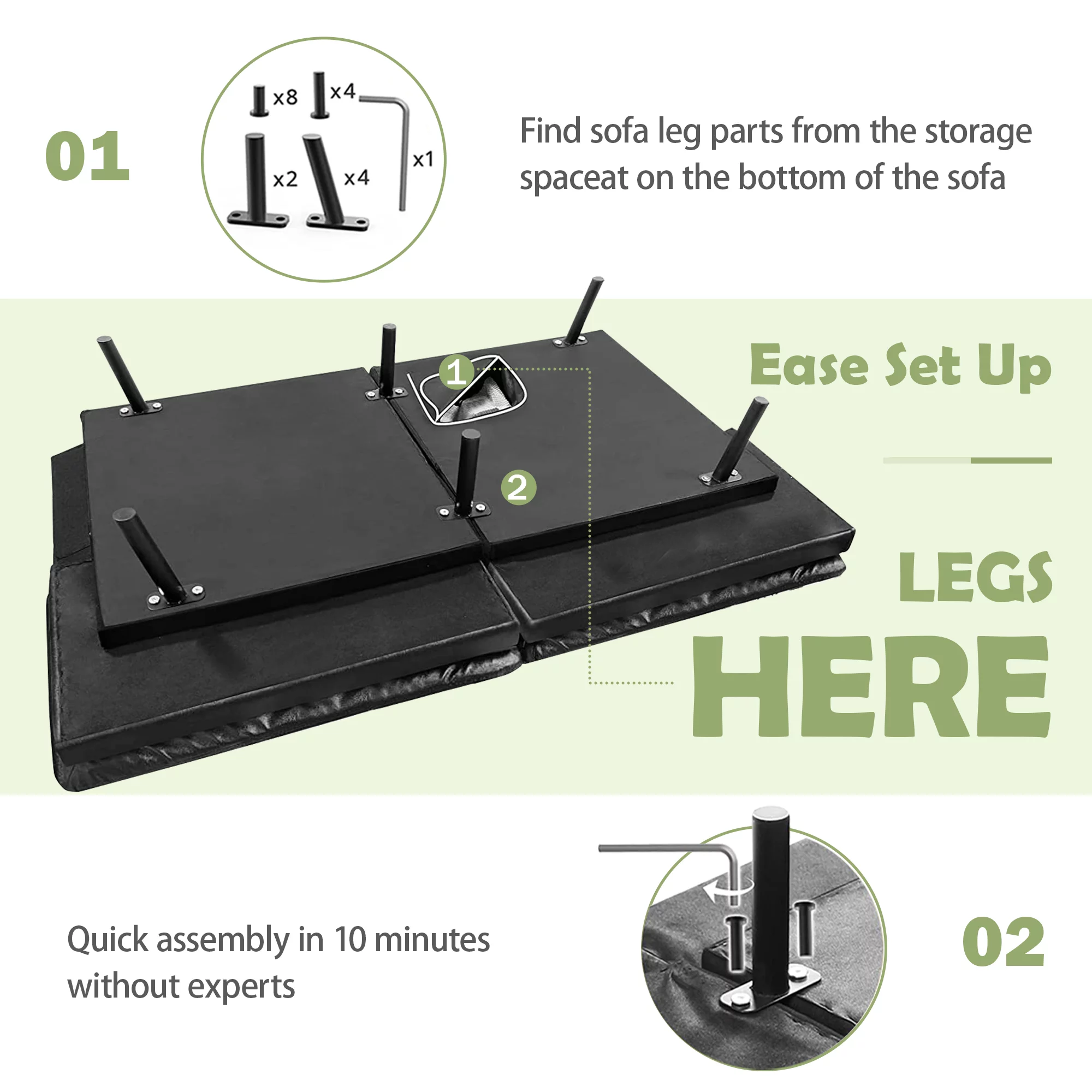 Hcore Memory Foam Convertible Sofa Bed/Couch/Futon Sets with Black Faux Leather for Living Room