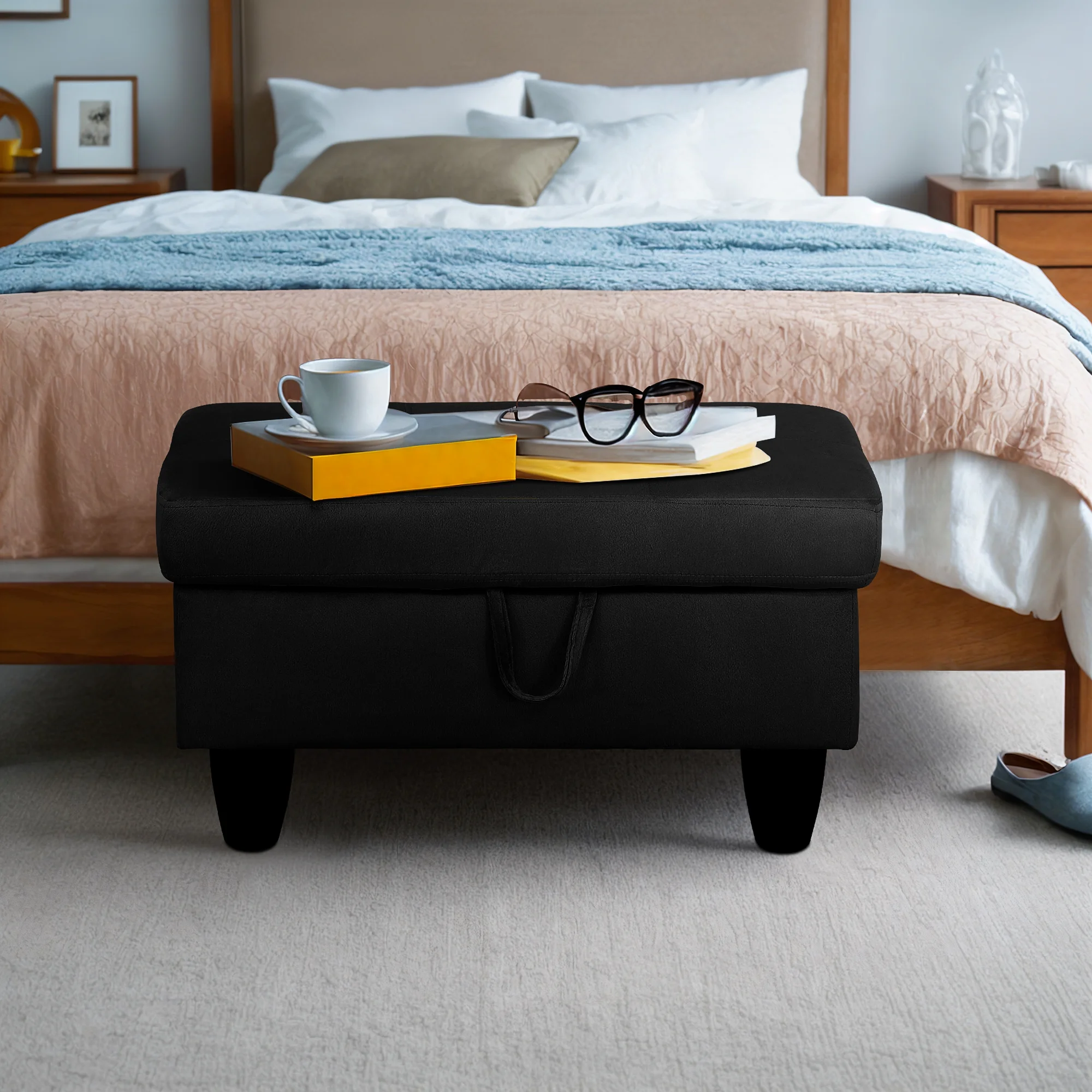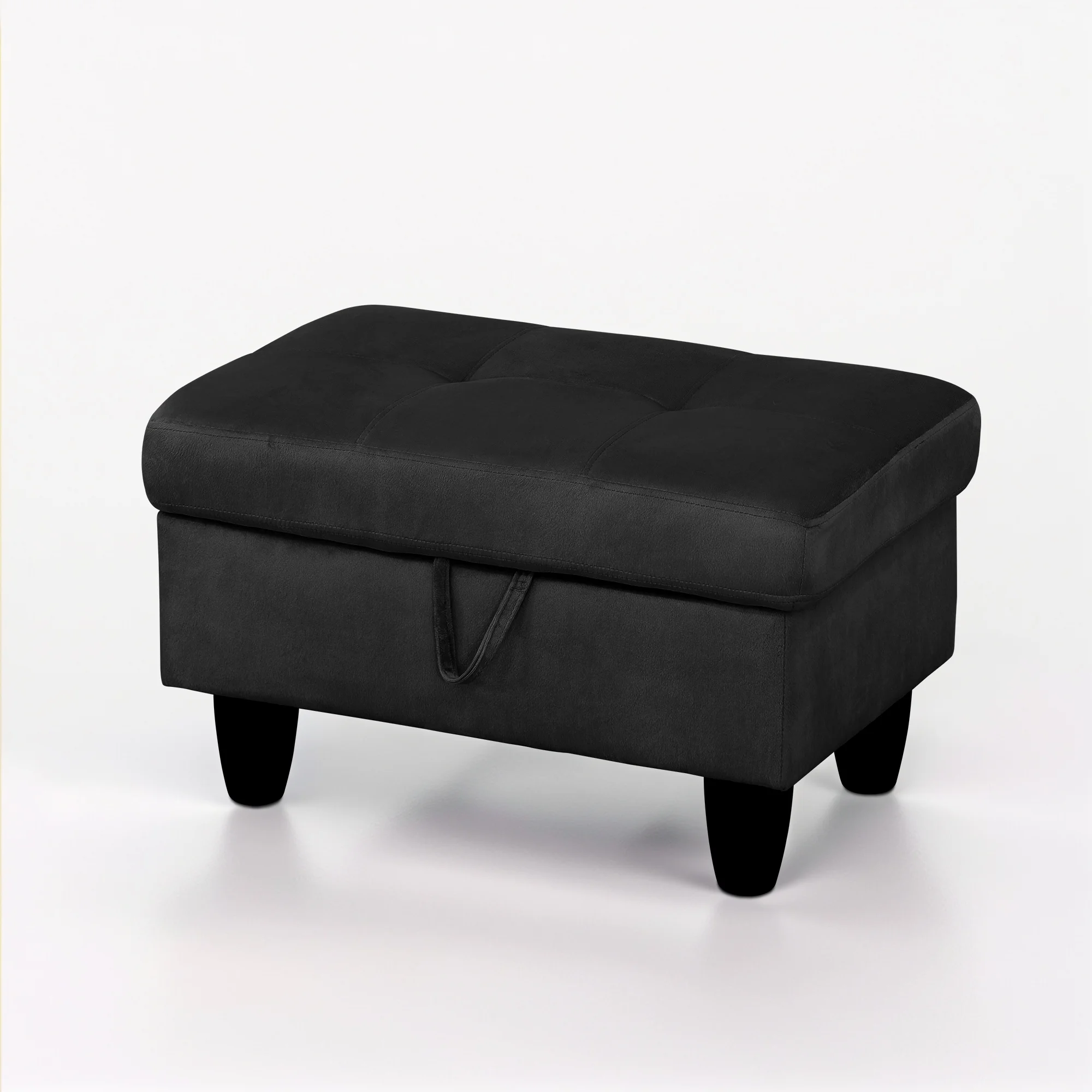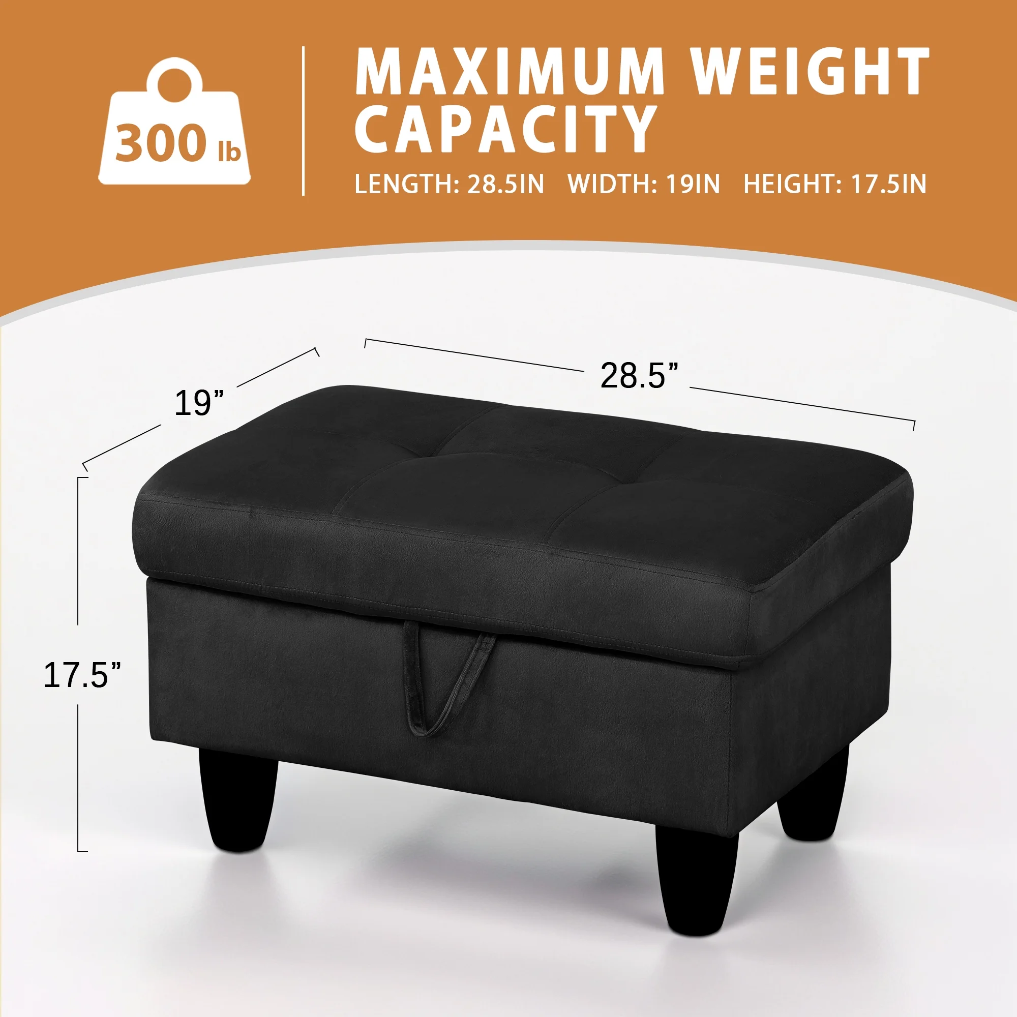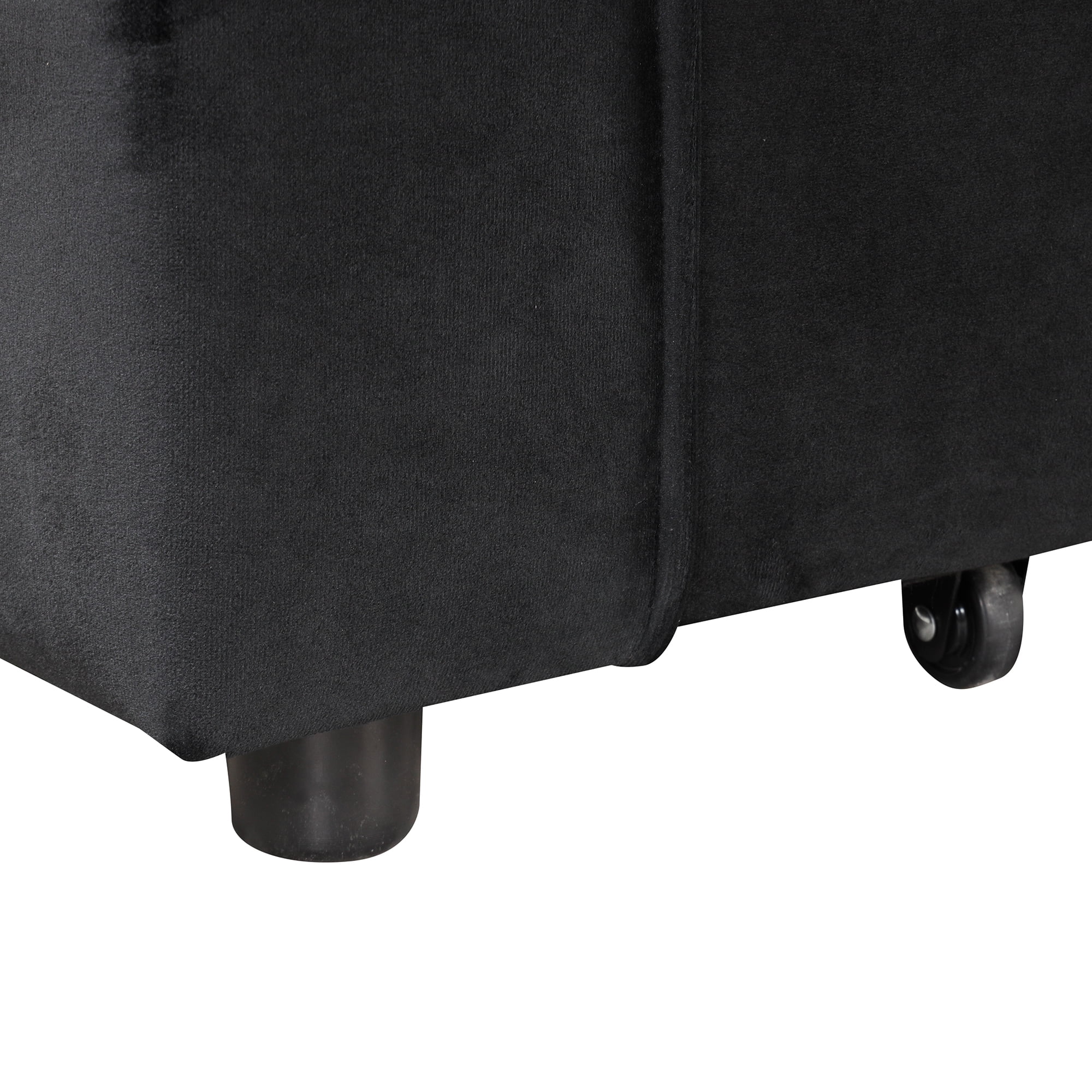Flannel Storage Ottoman Bench Storage Chest Footstools for Sofa Couch Bedroom End of Bed Living Room Black