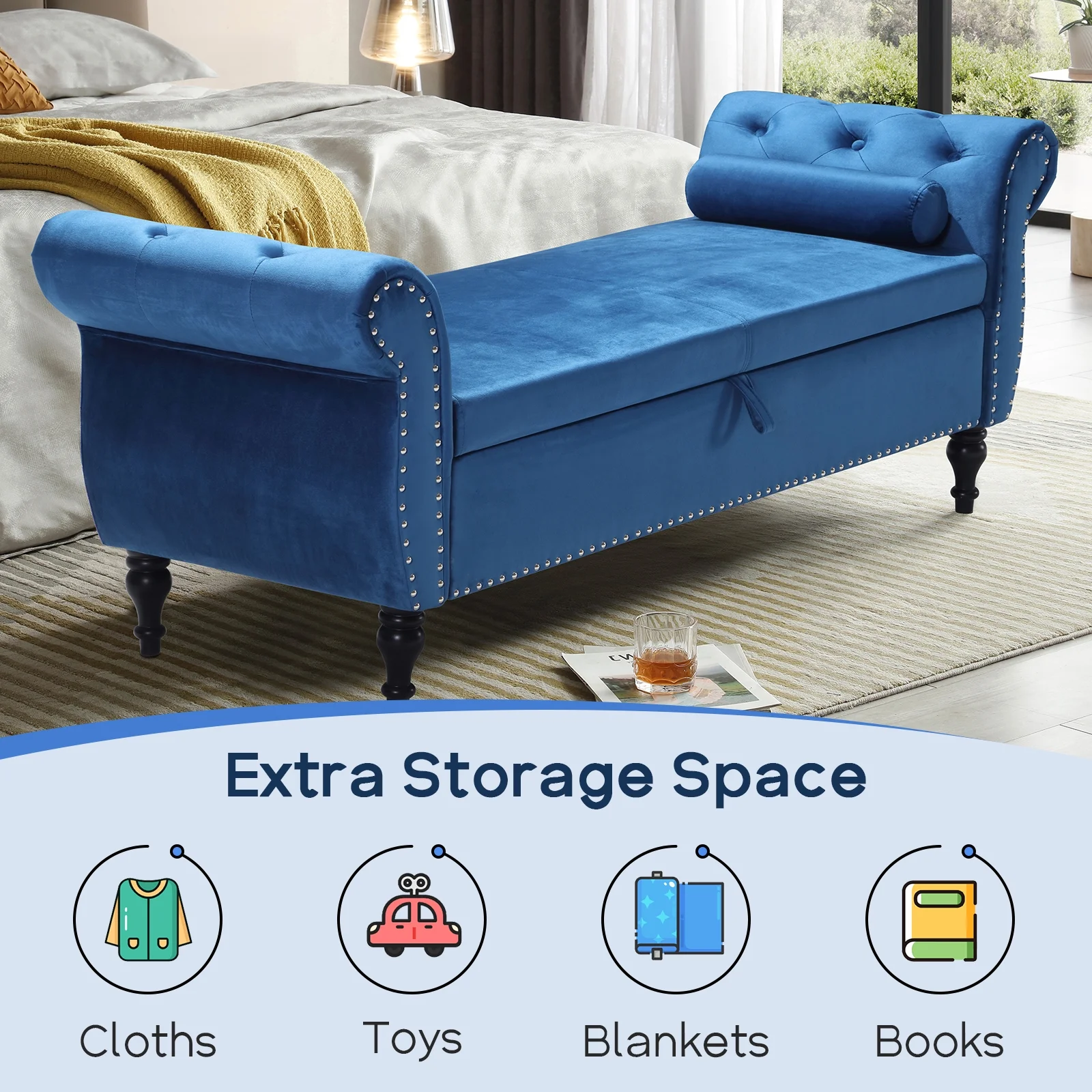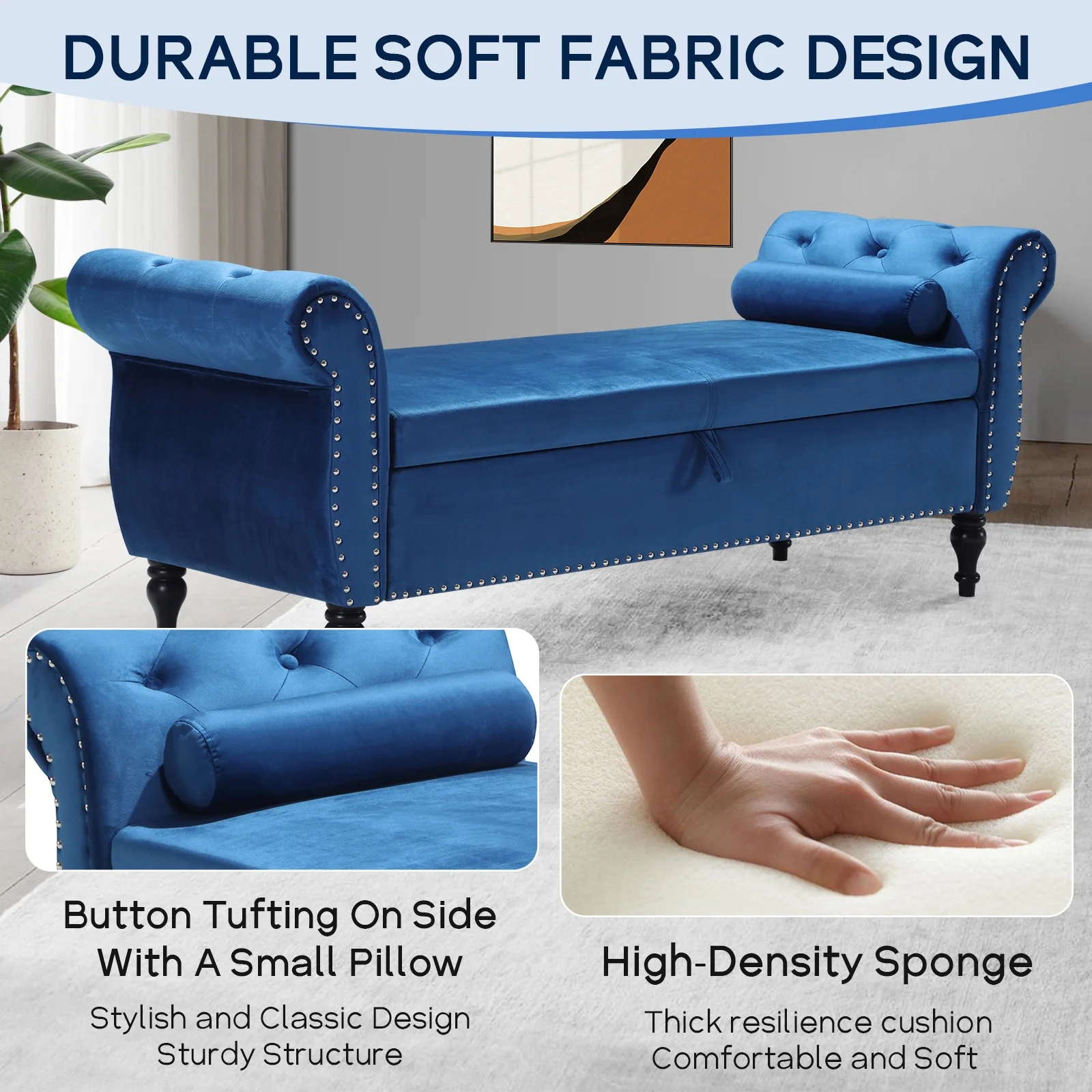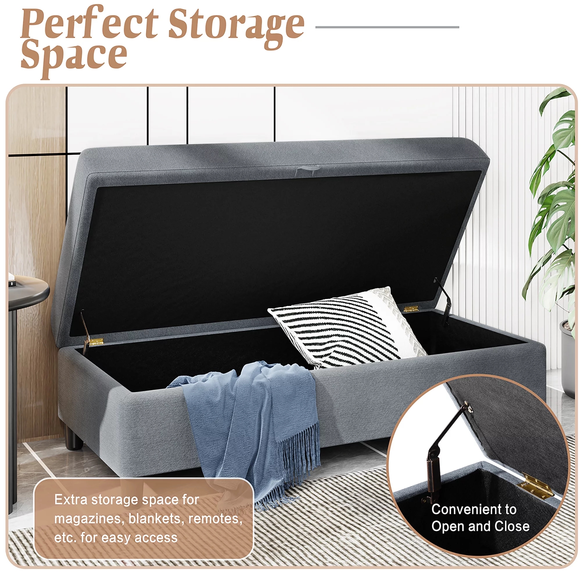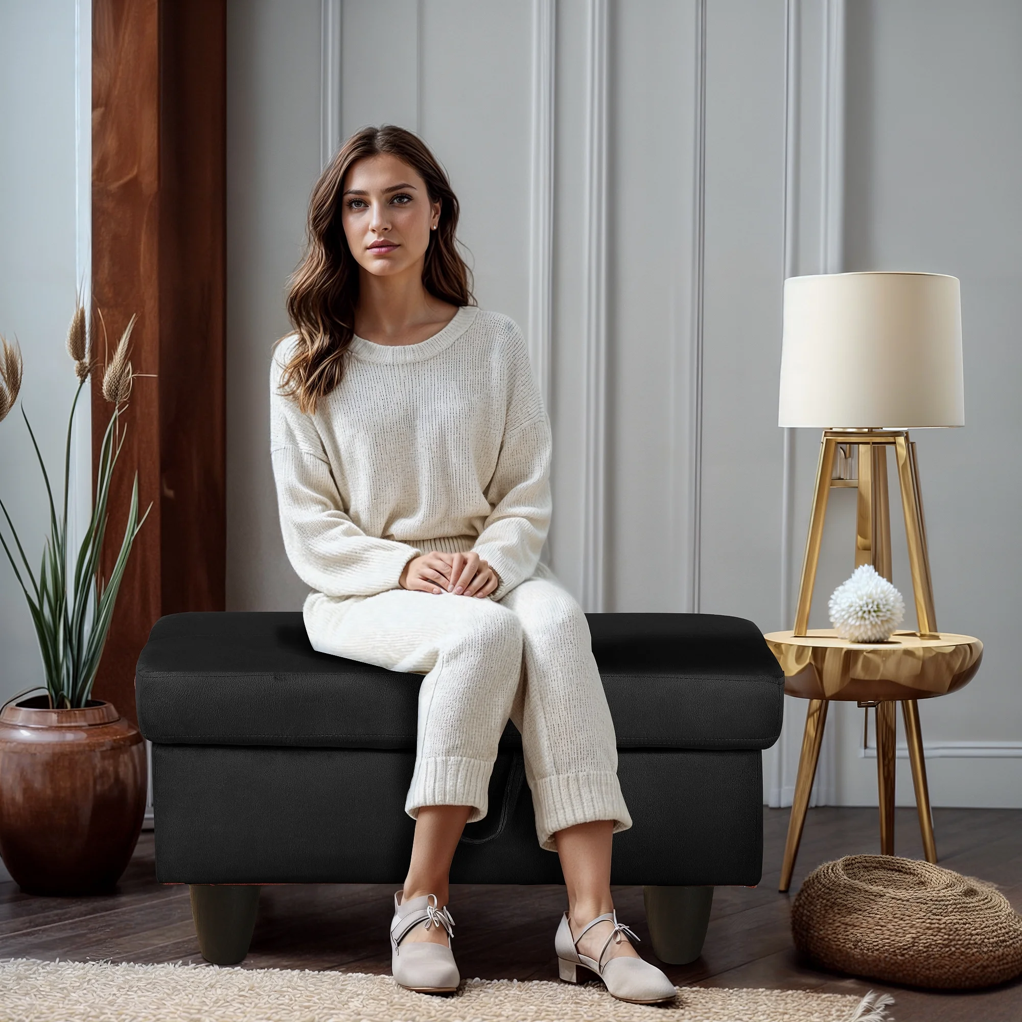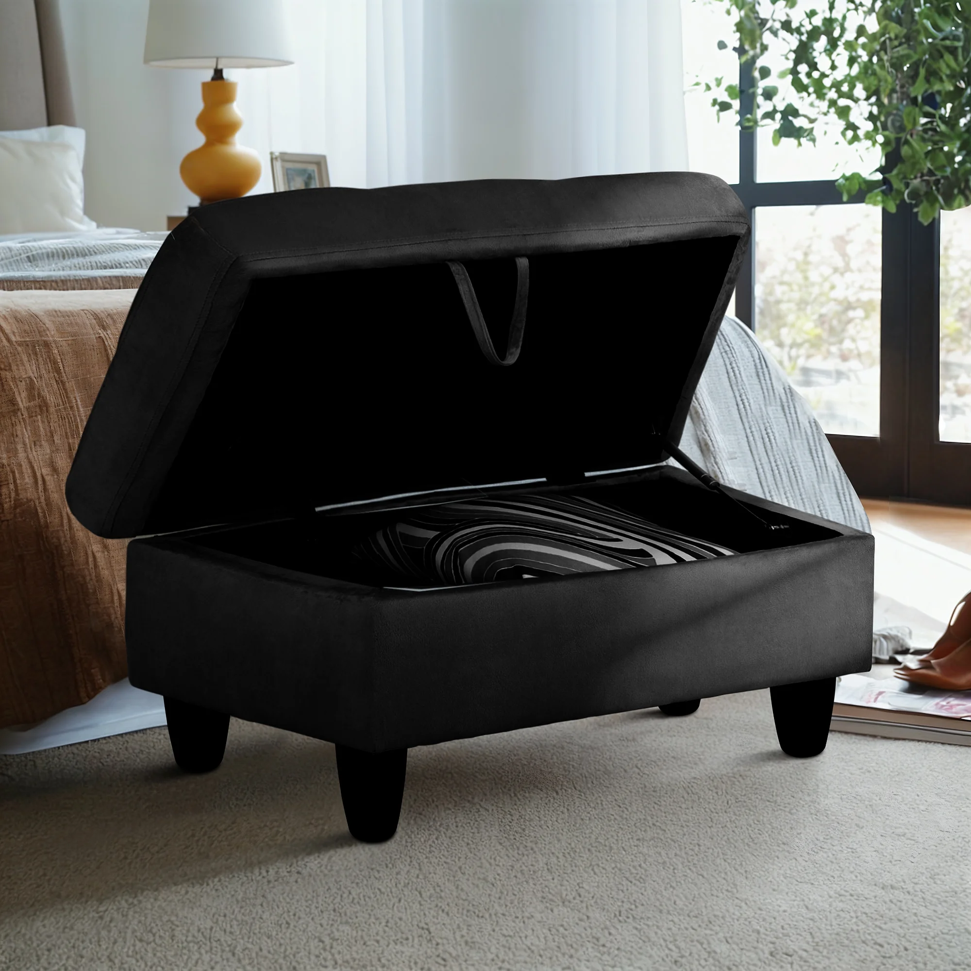 Flannel Storage Ottoman Bench Storage Chest Footstools for Sofa Couch Bedroom End of Bed Living Room Black