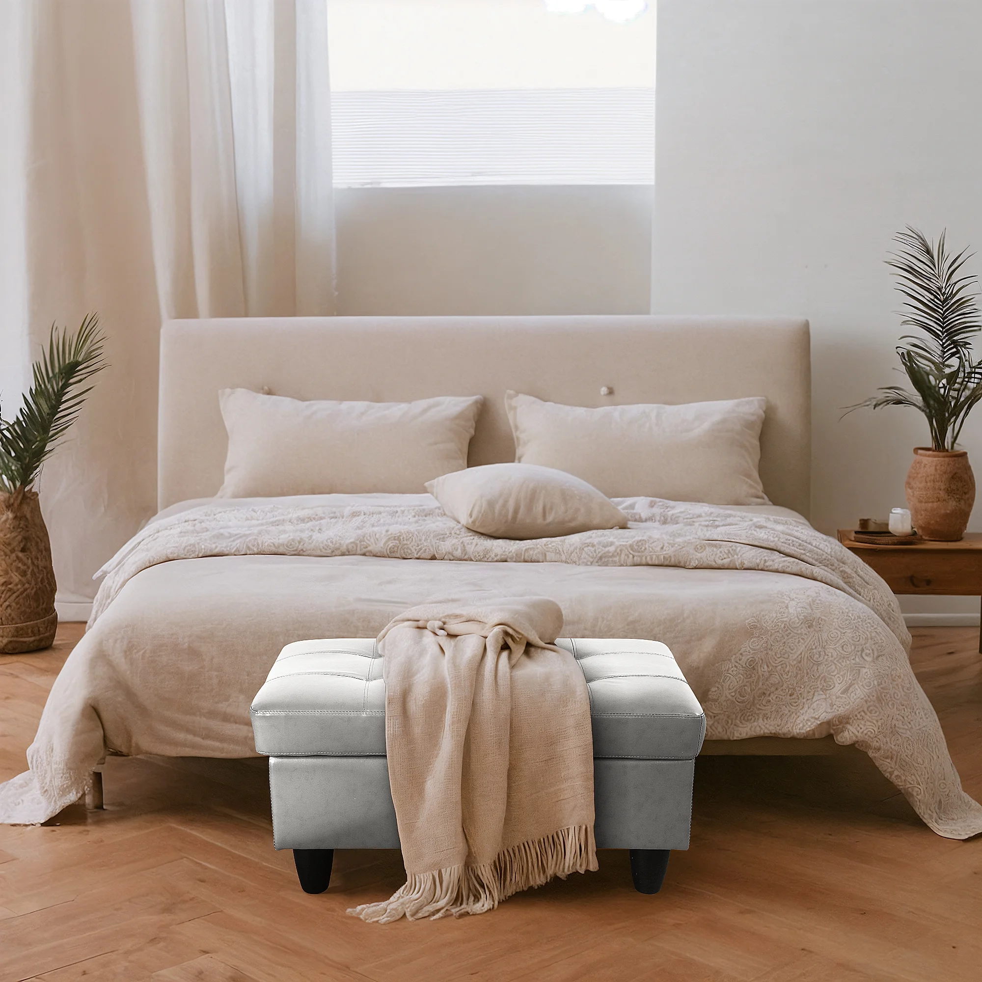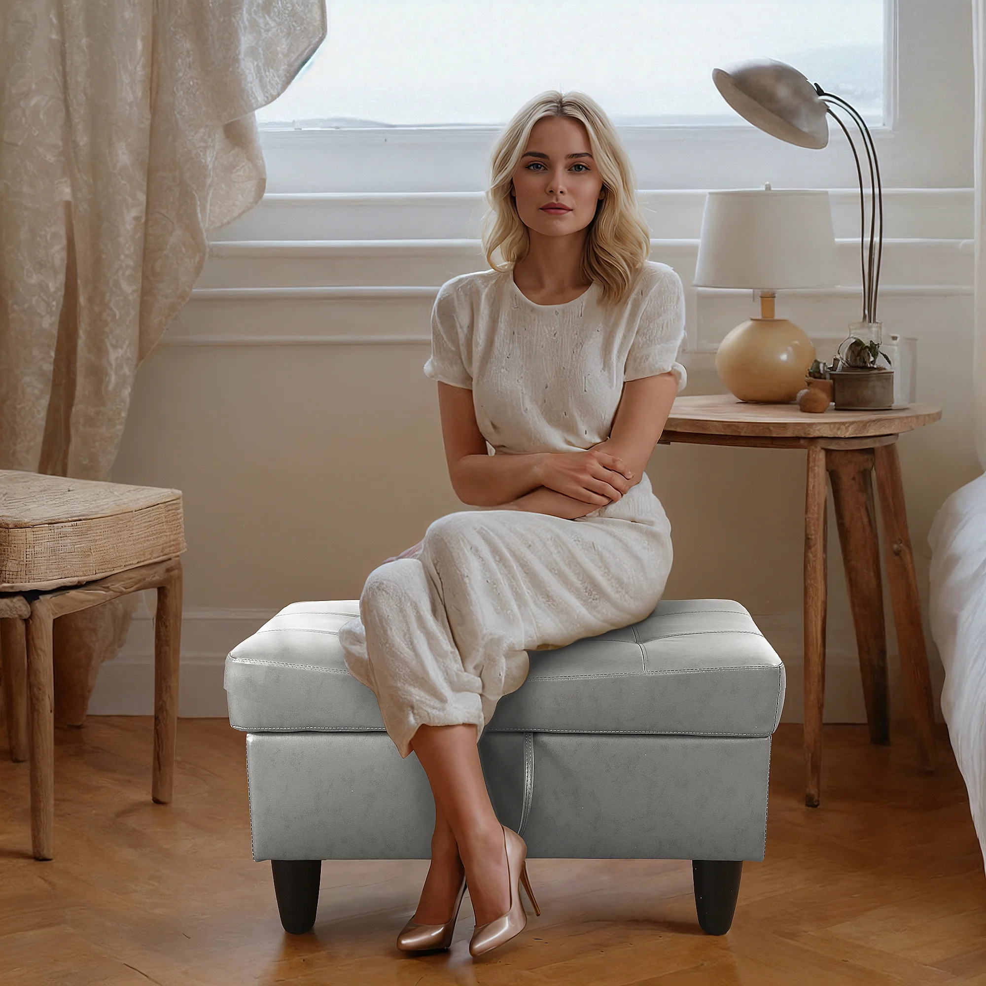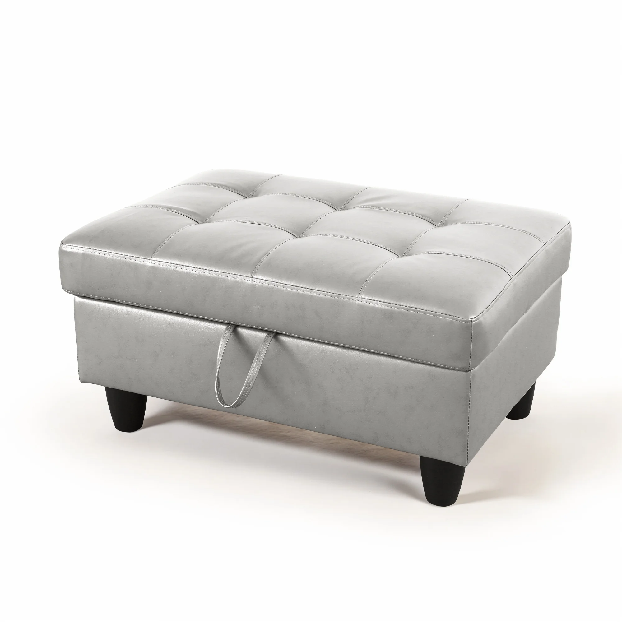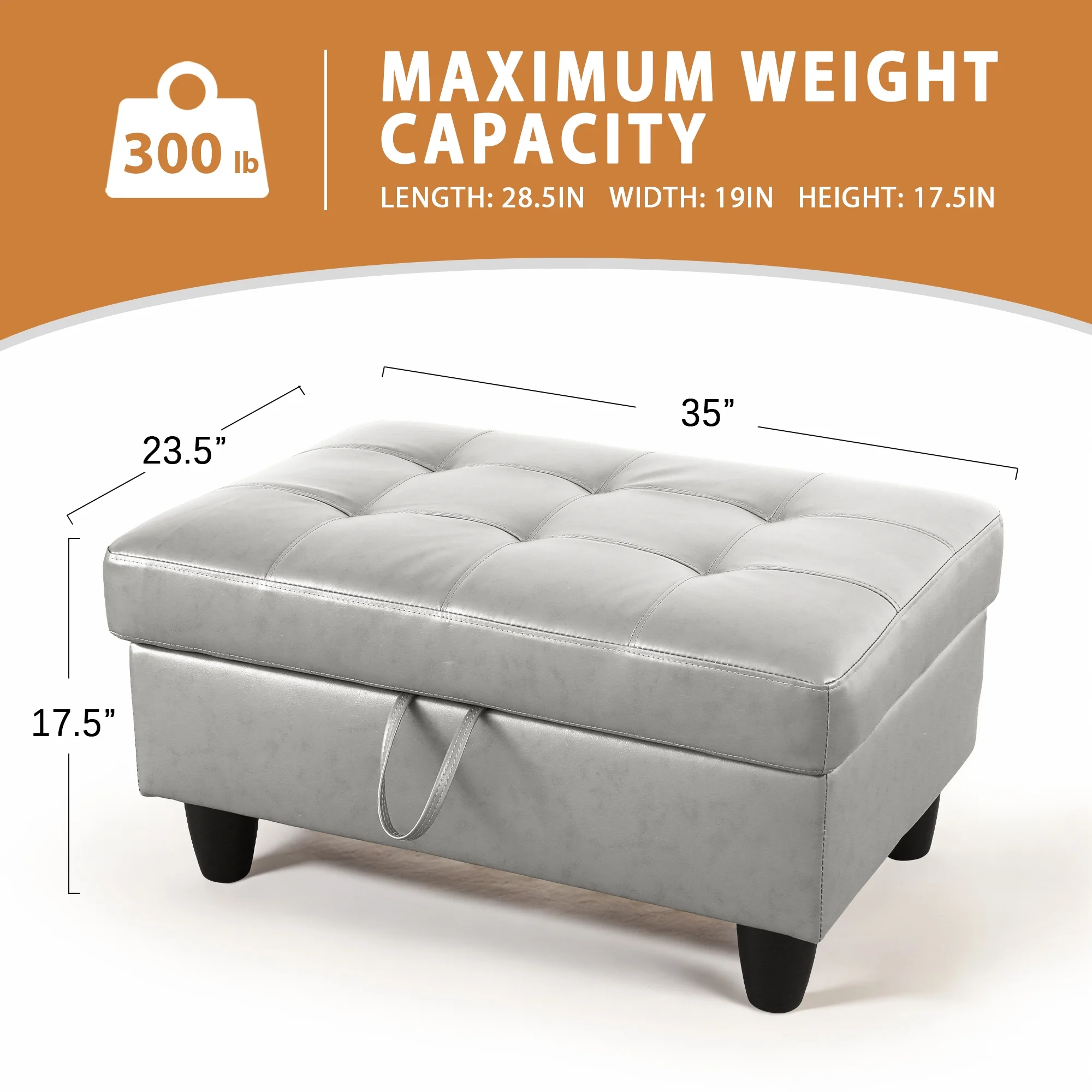Leather Storage Ottoman Bench Storage Chest for Sofa Couch Bedroom End of Bed Living Room Silver-white