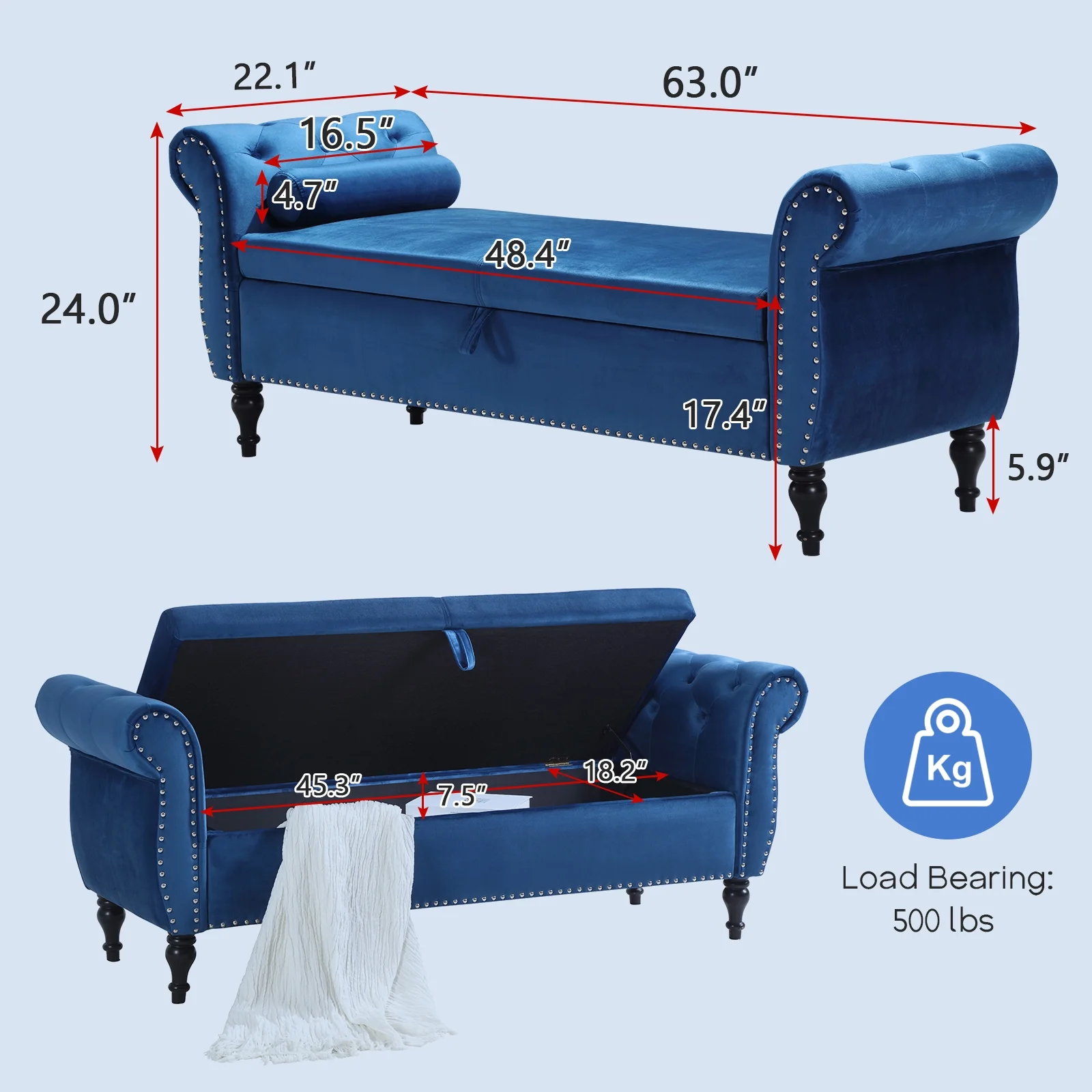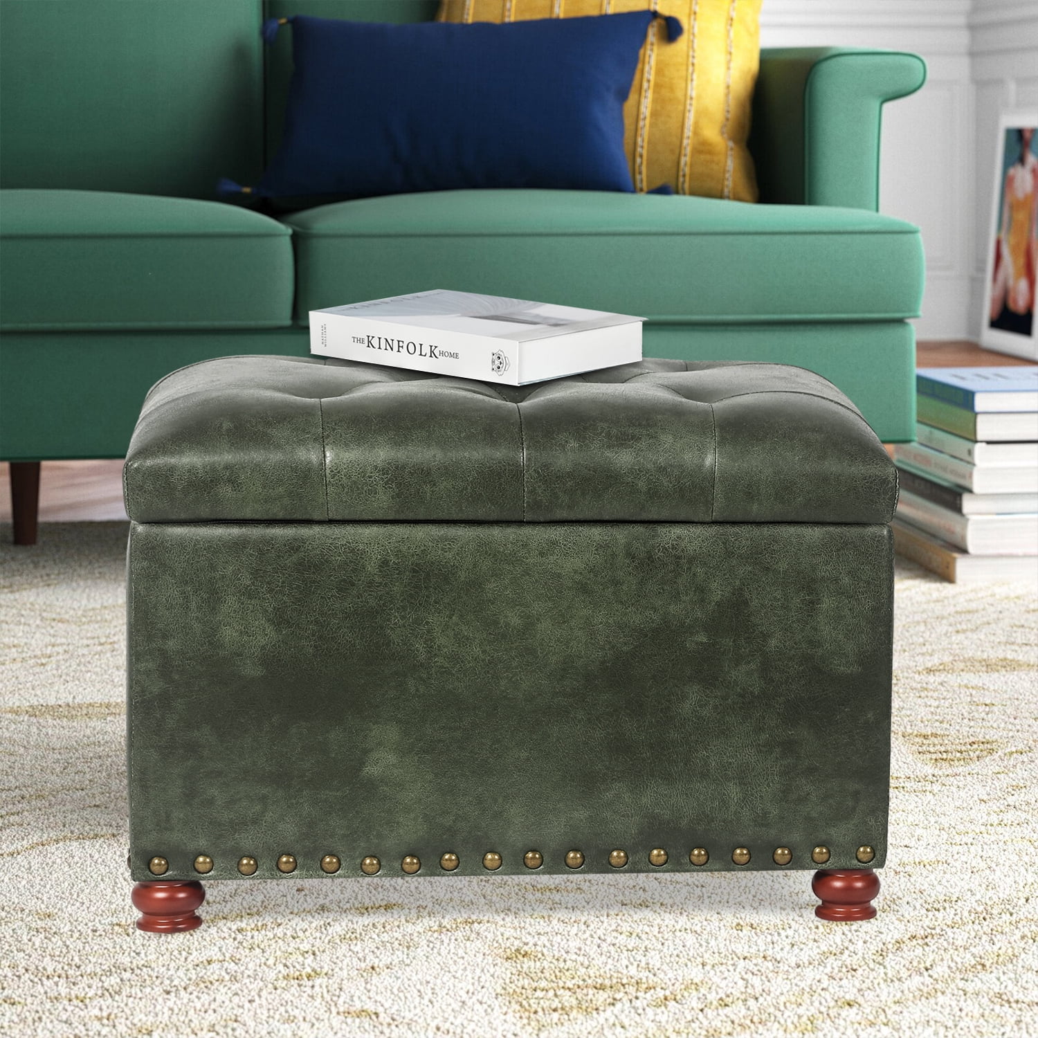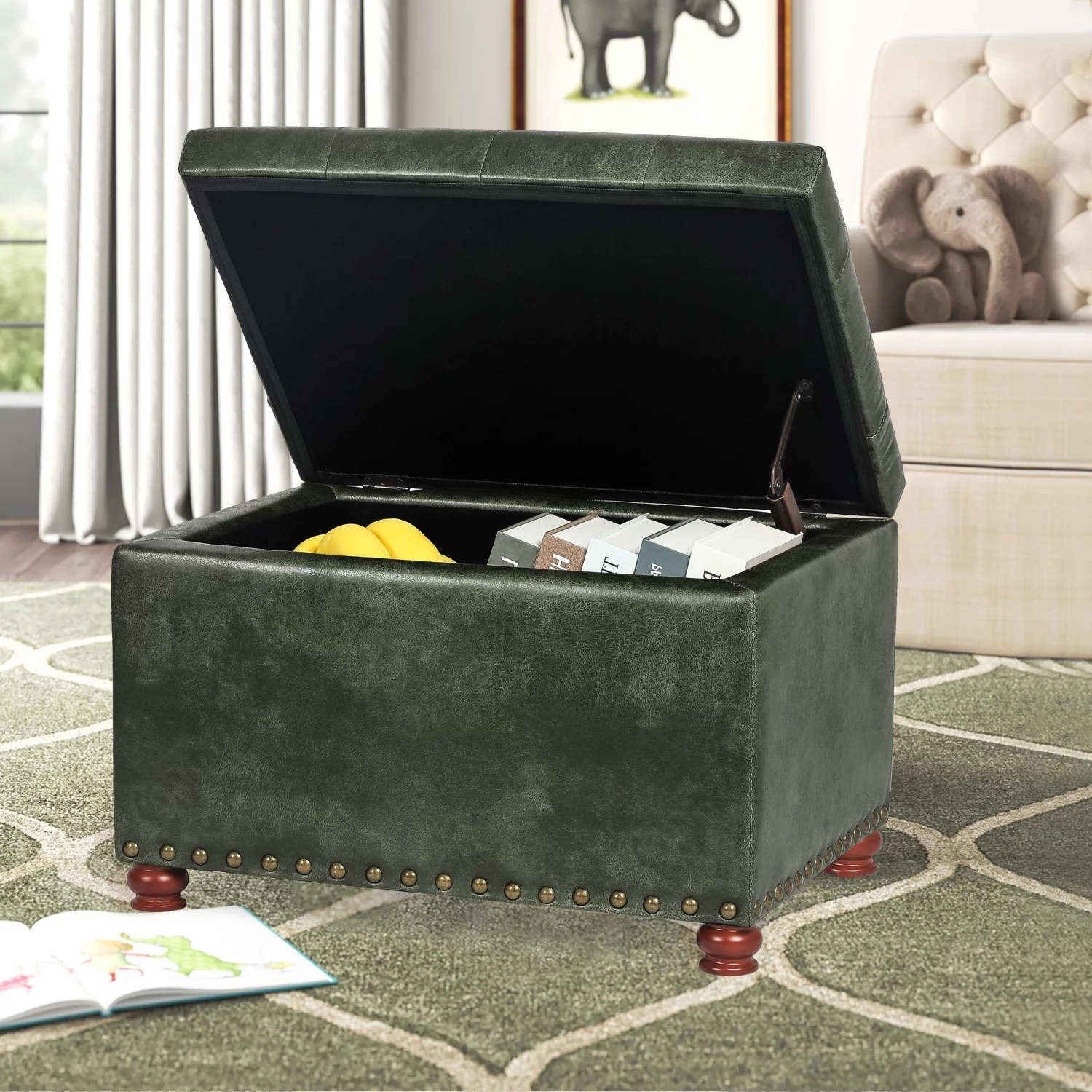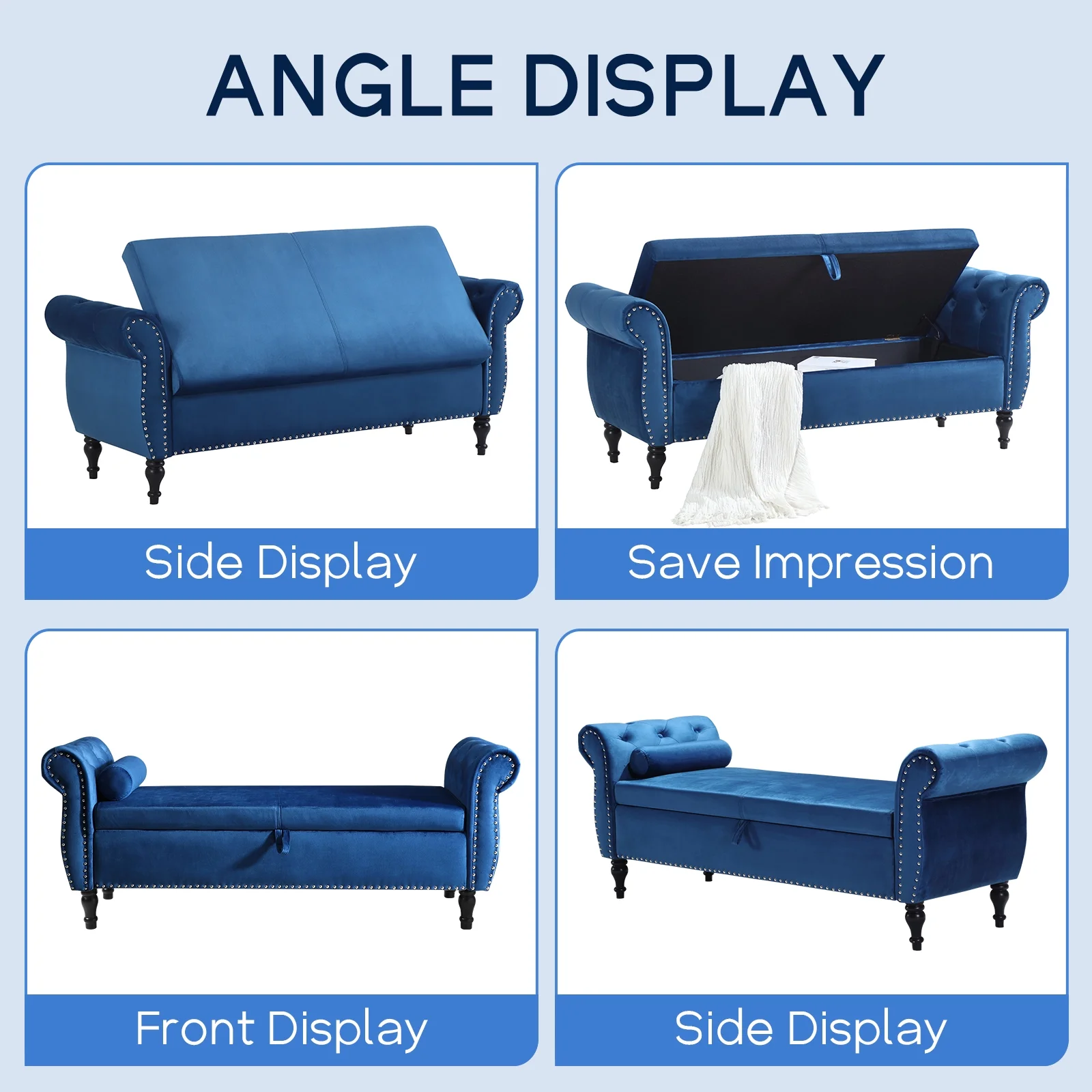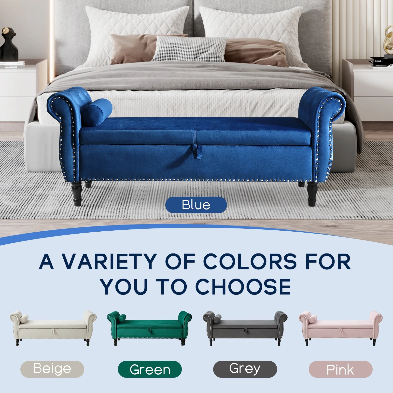 Leather Storage Ottoman Bench Storage Chest for Sofa Couch Bedroom End of Bed Living Room Silver-white