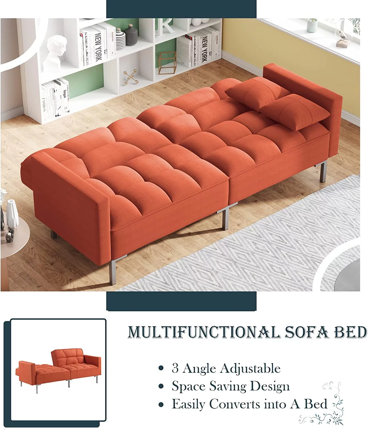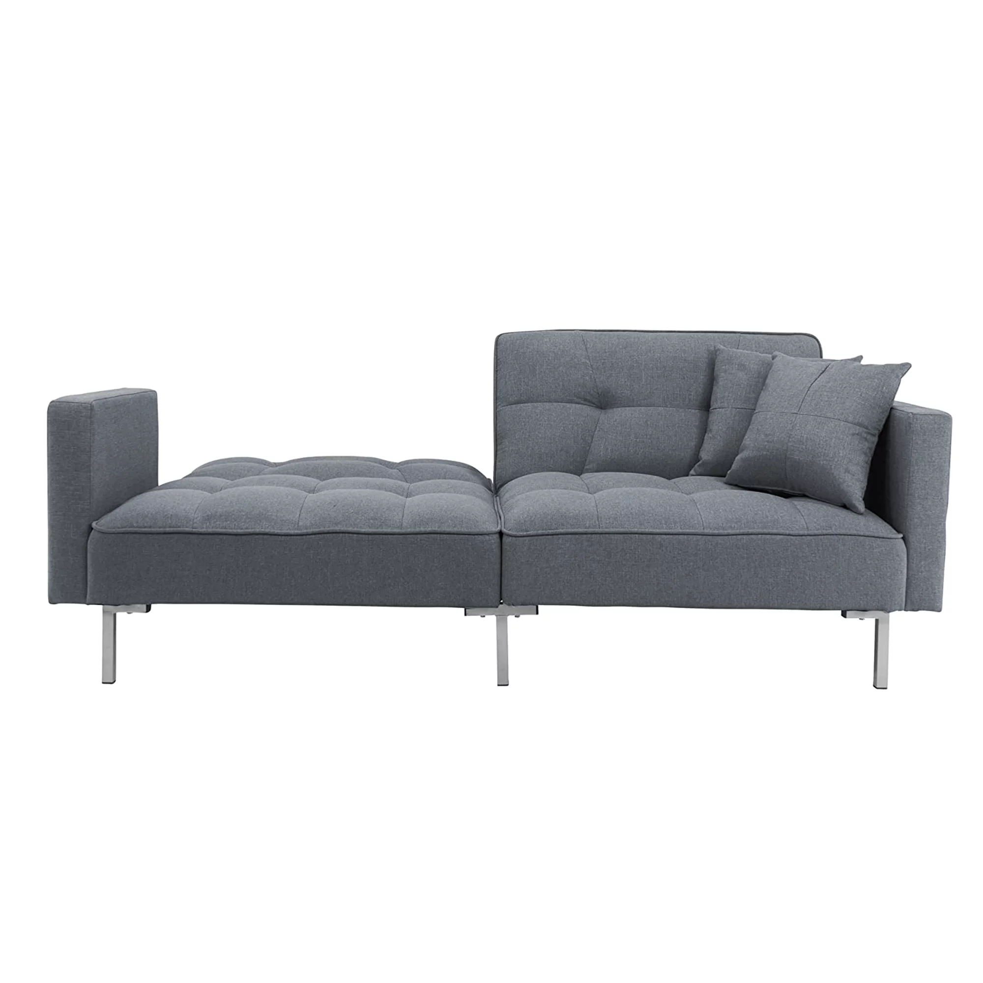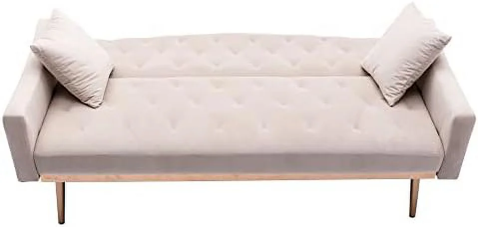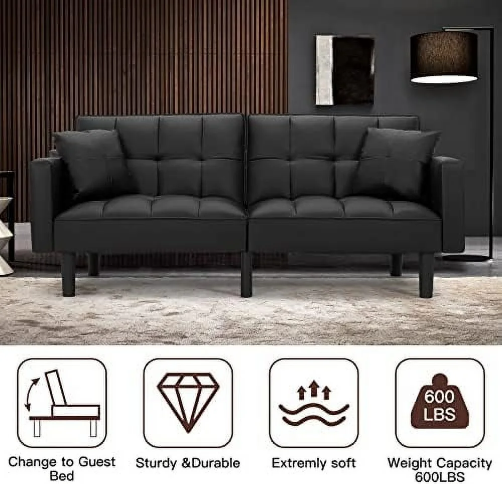 Convertible Futon Sofa Bed with Two Pillows, Modern Upholstered Sleeper Sofa Couch