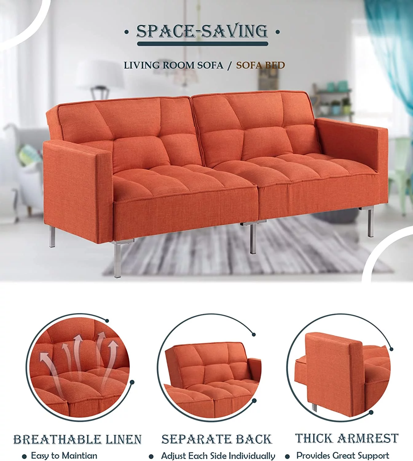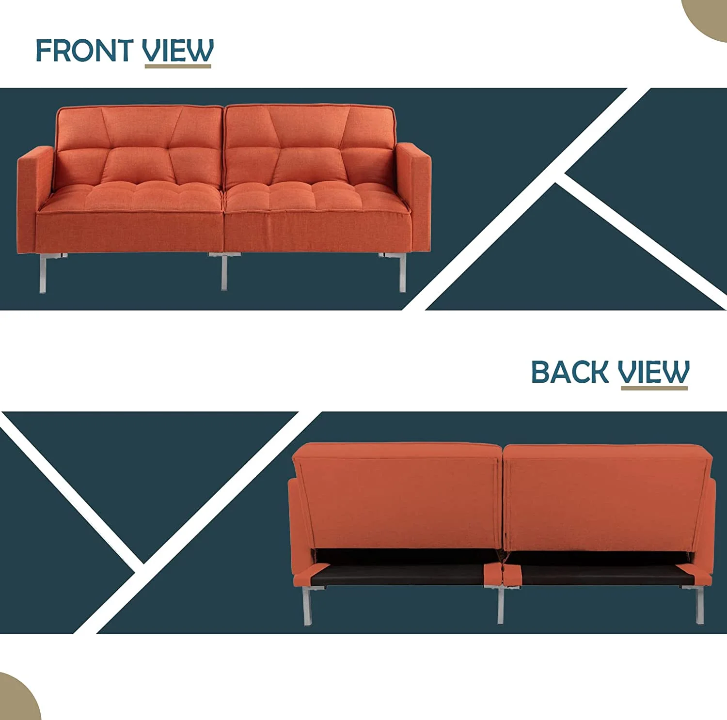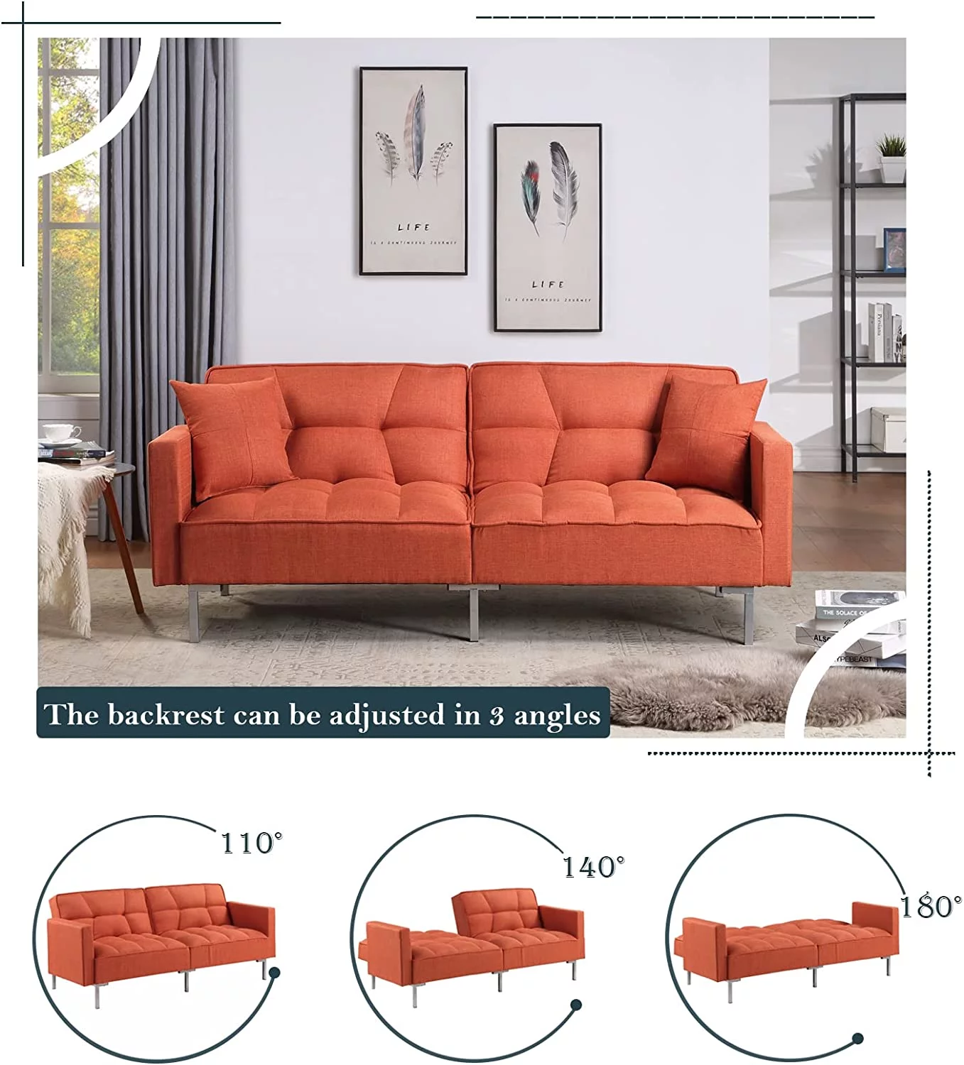 Convertible Futon Sofa Bed with Two Pillows, Modern Upholstered Sleeper Sofa Couch
